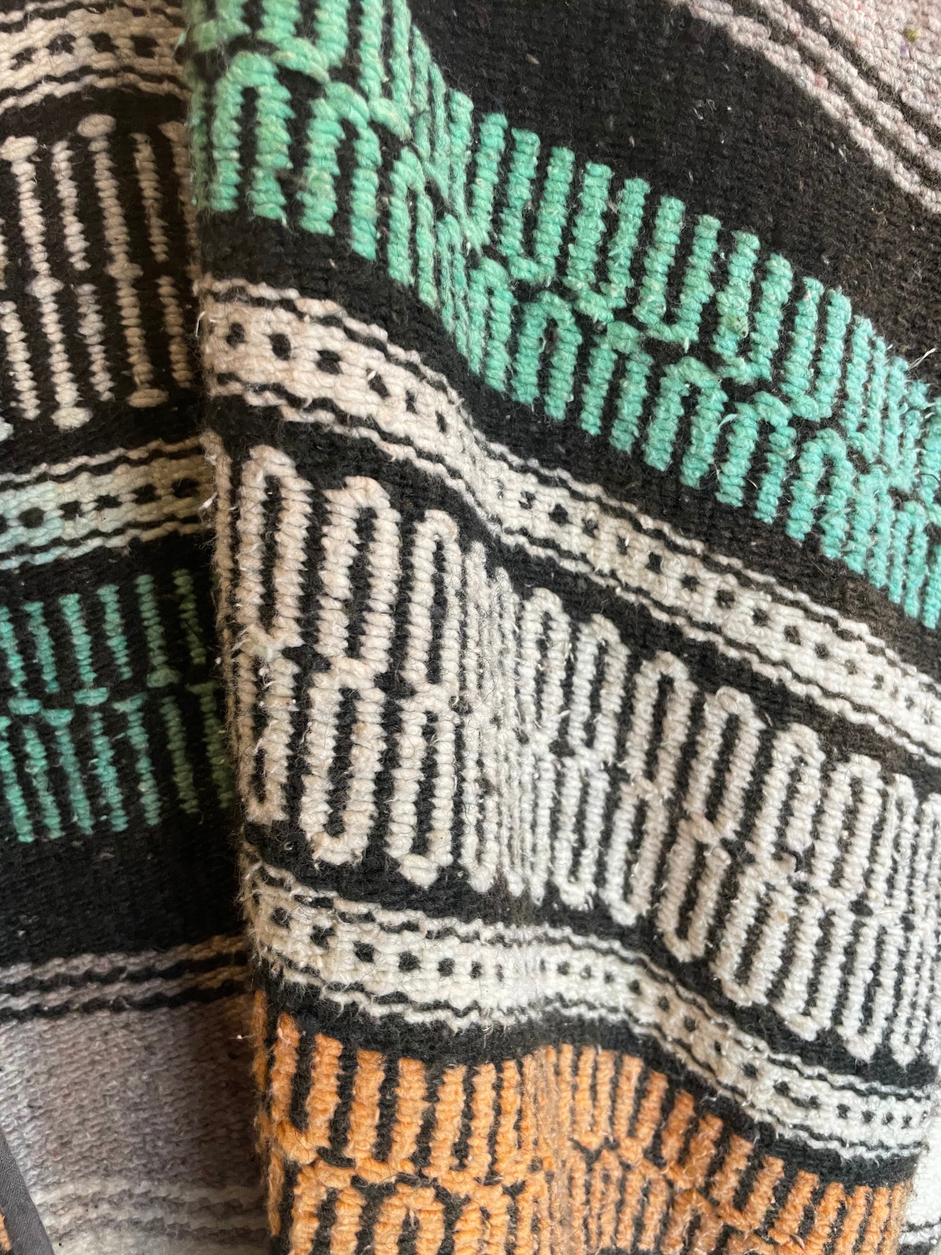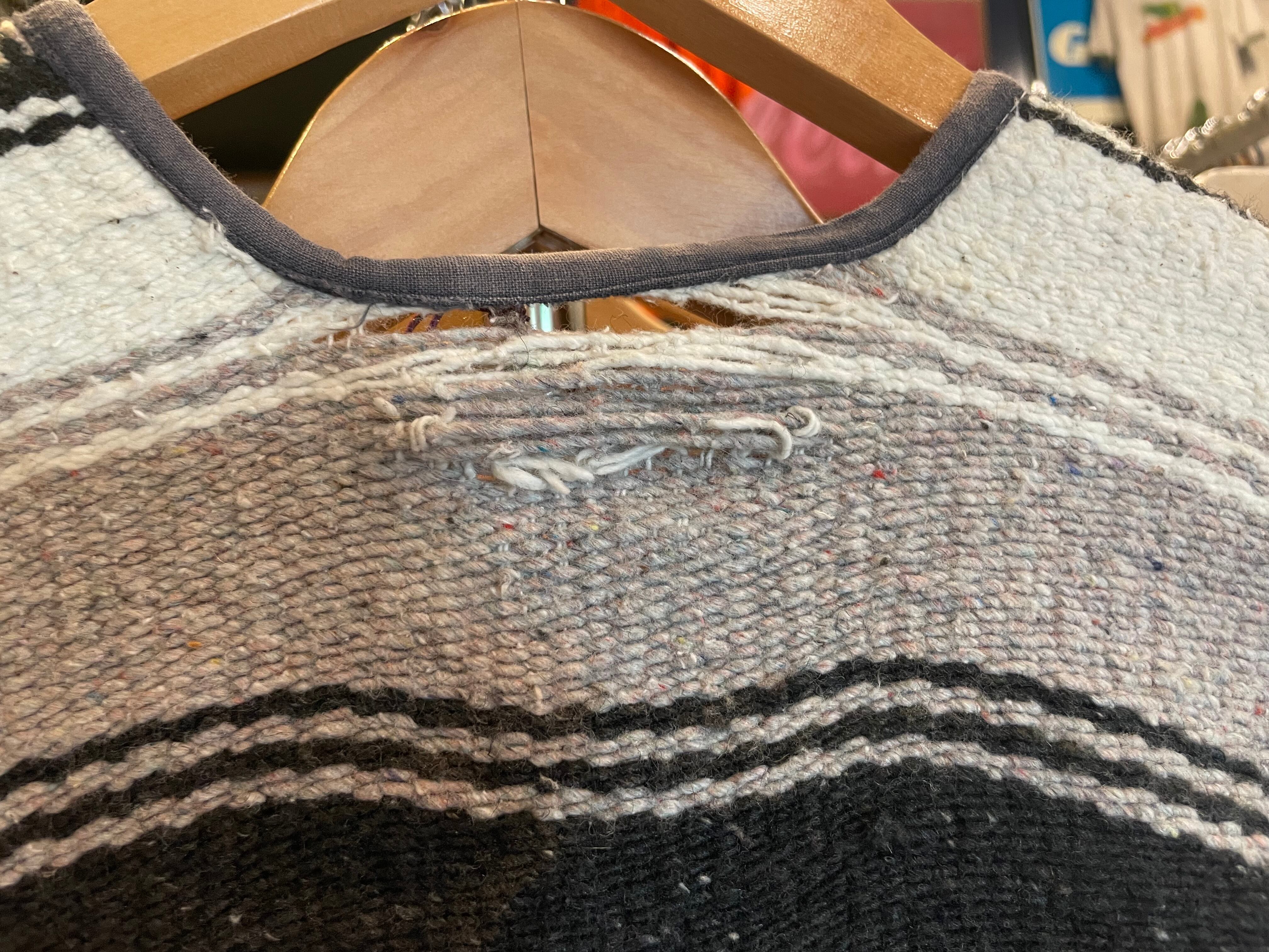 かなりダメージがあり、クタクタな感じがかわいいメキシカンラグのベストです。