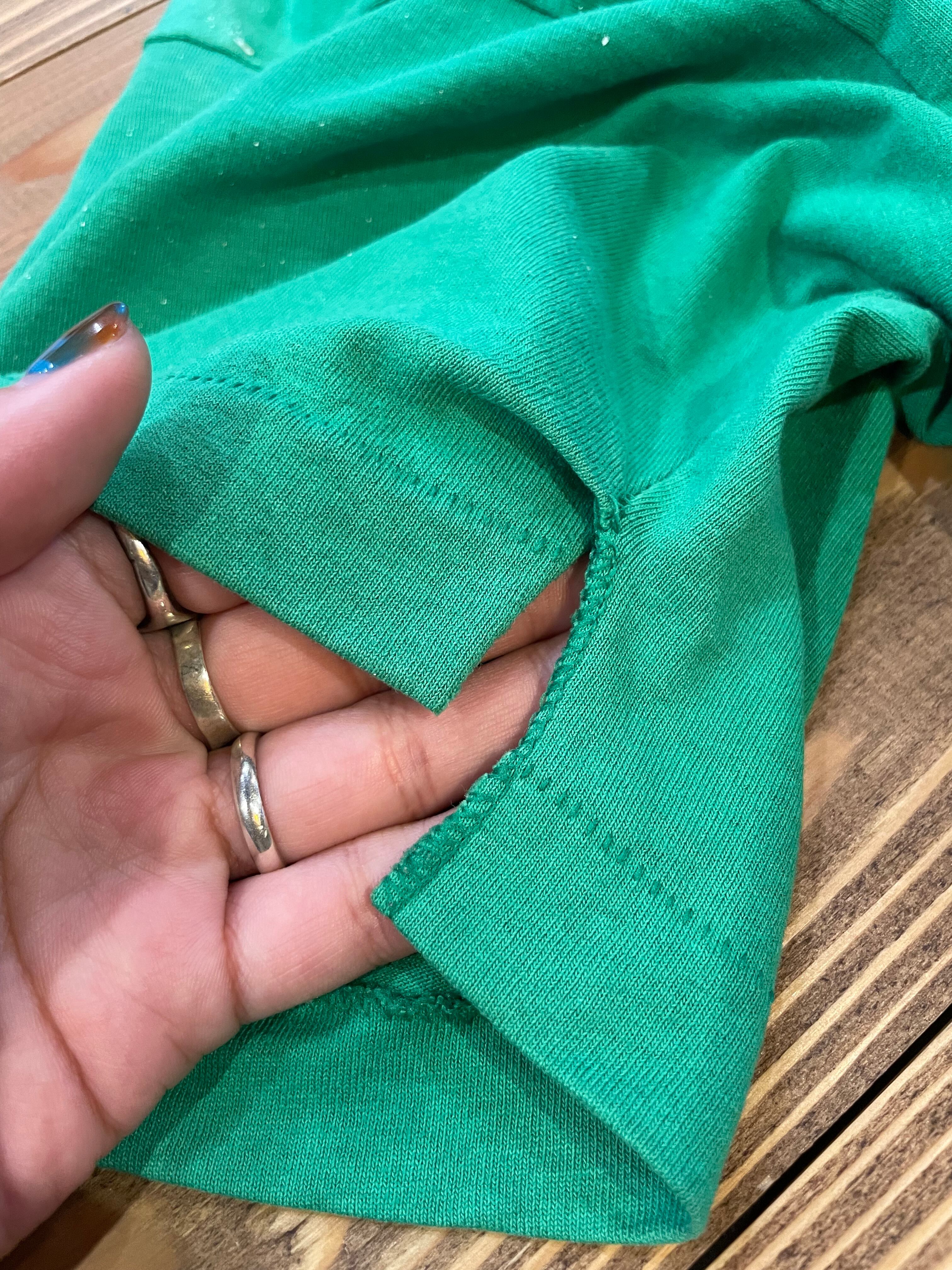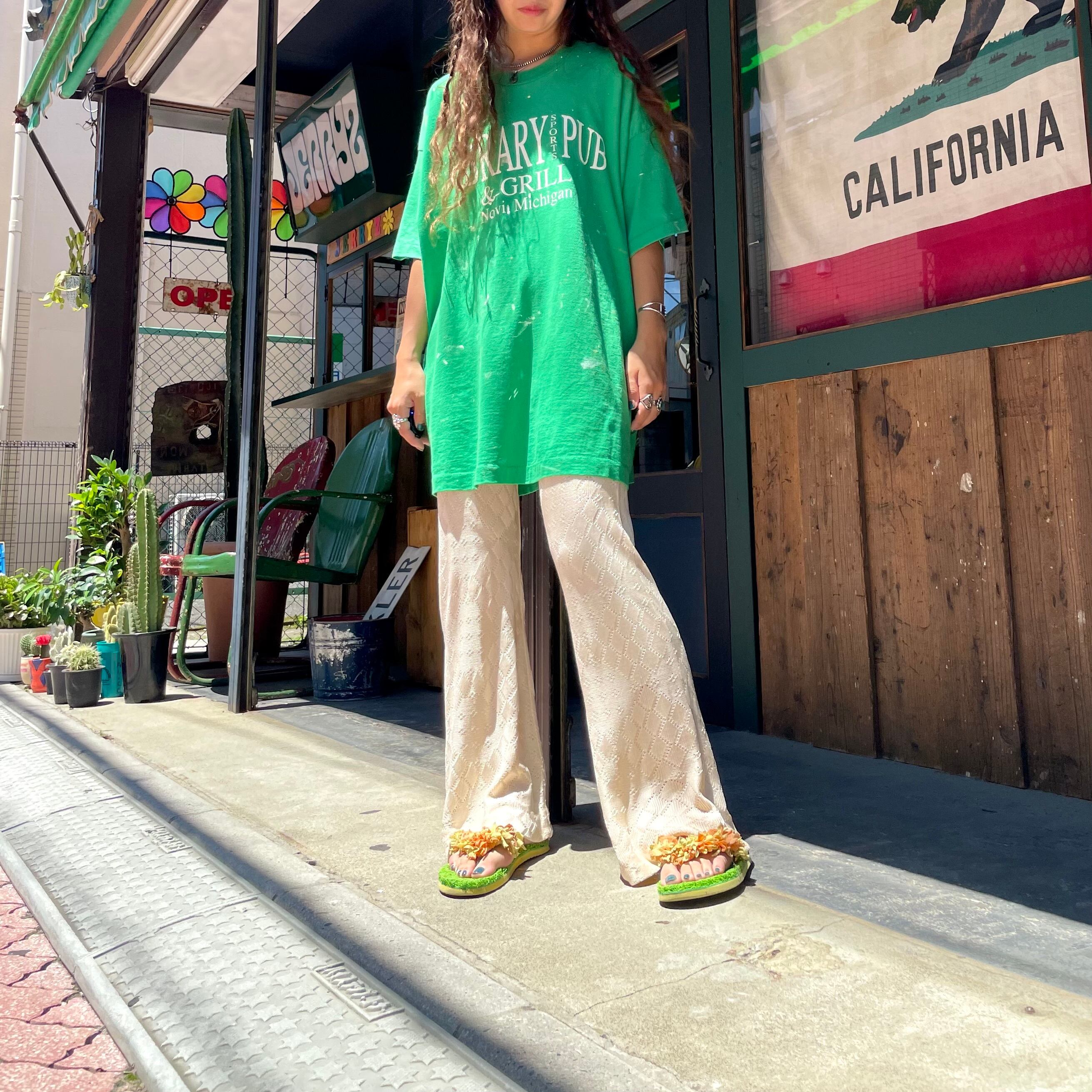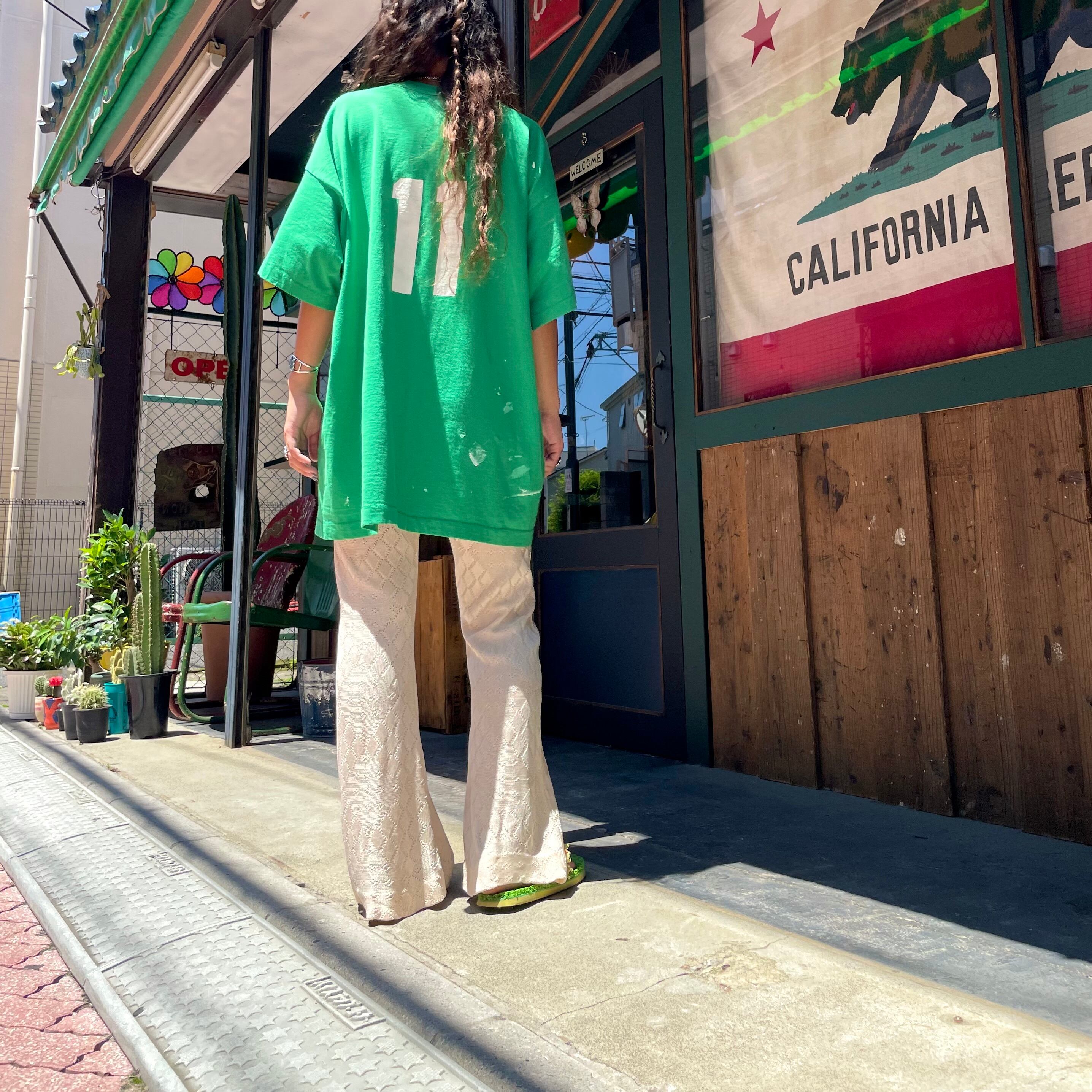 ペンキのような汚れ多数、両肩の日焼け、右袖の縫製ミス、襟ぐりのほつれ等全体的にダメージのある商品ですので古着にご理解のある方のご購入をお願い致します。