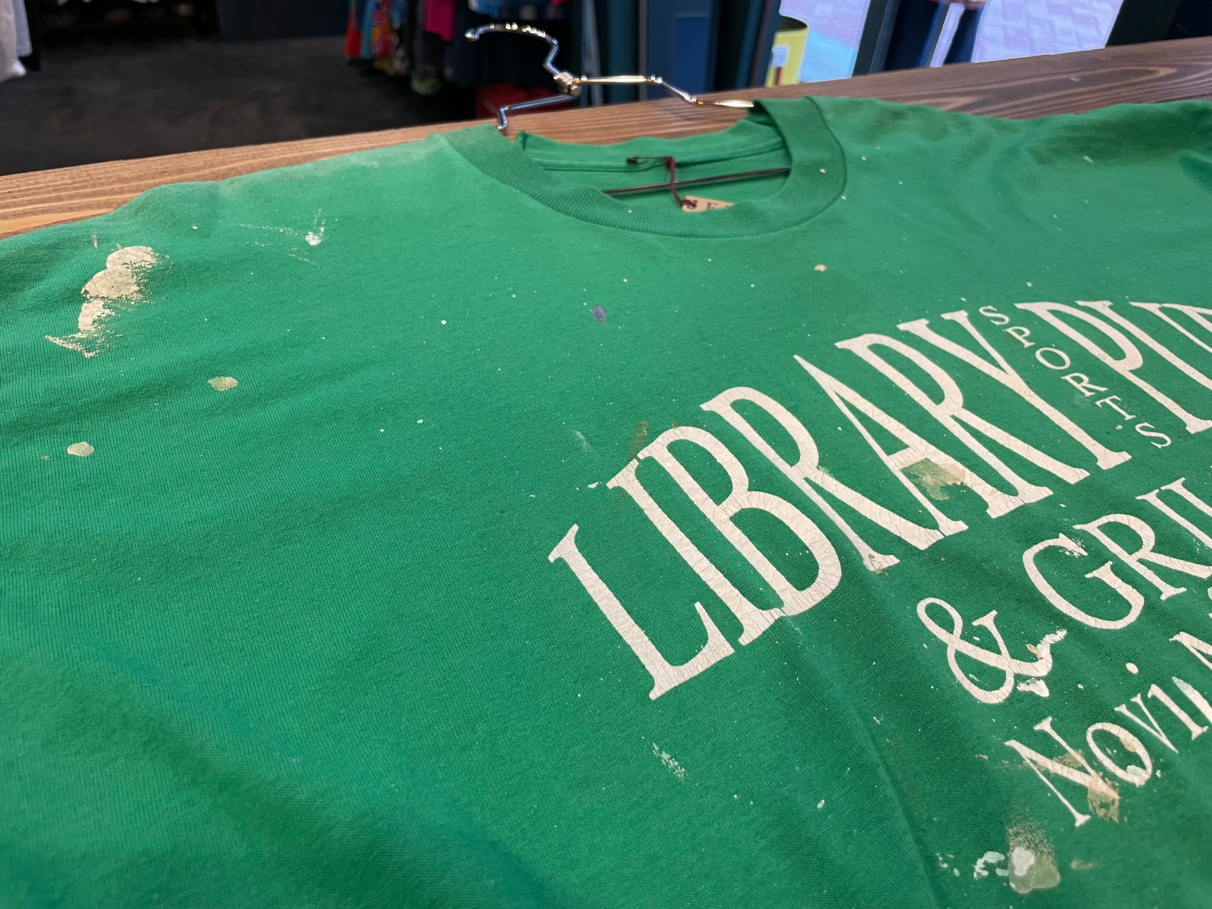ペンキのような汚れが多数あり、雰囲気があってかっこいいプリントTシャツです。