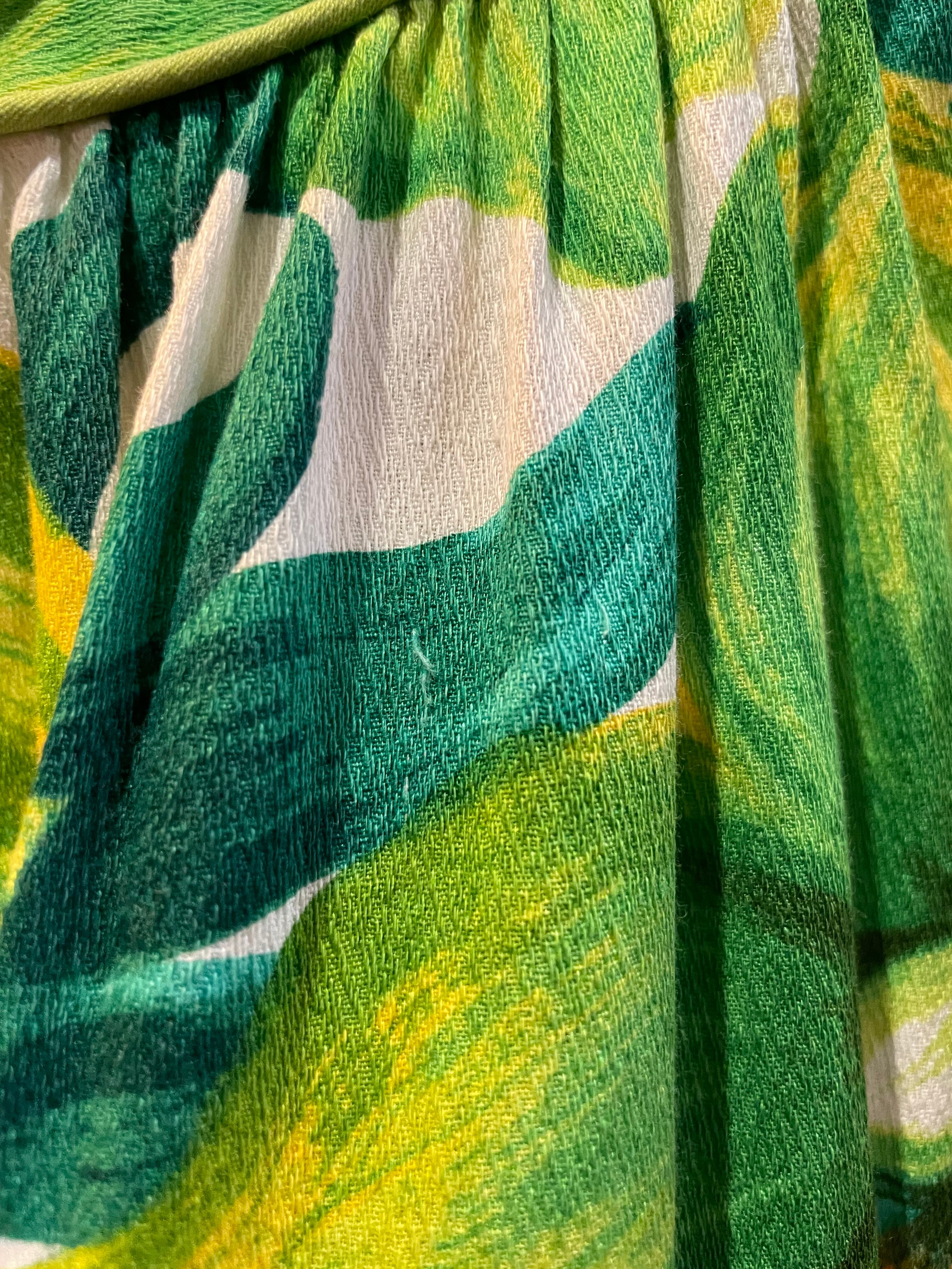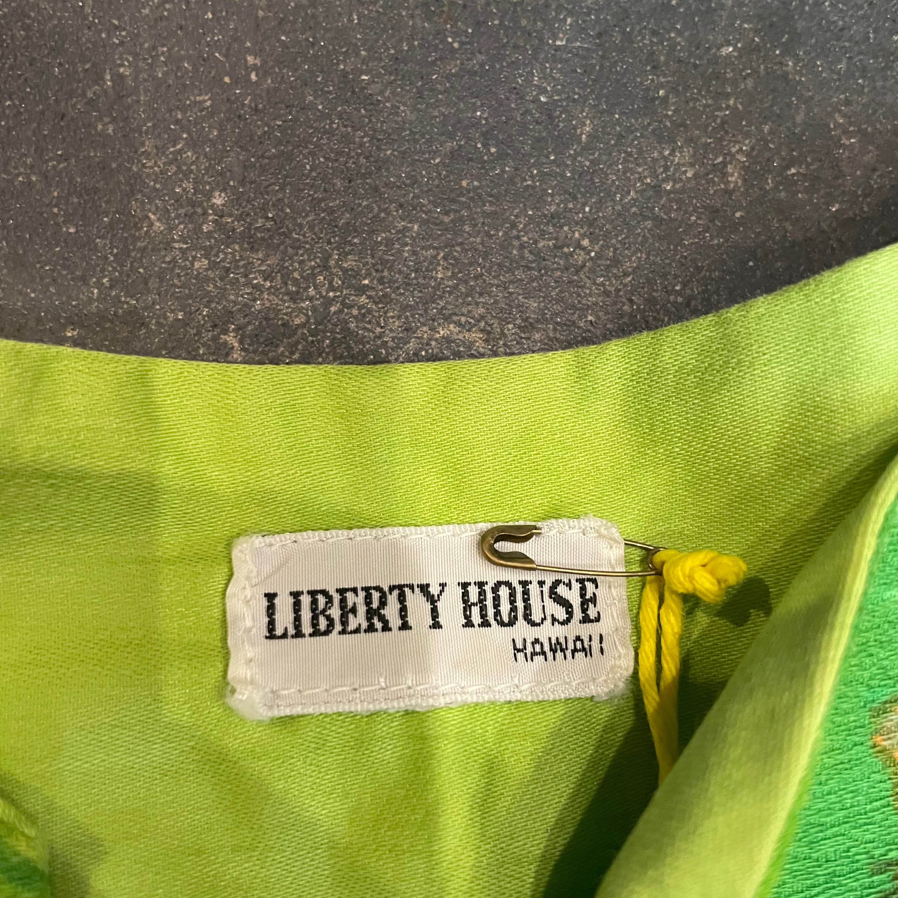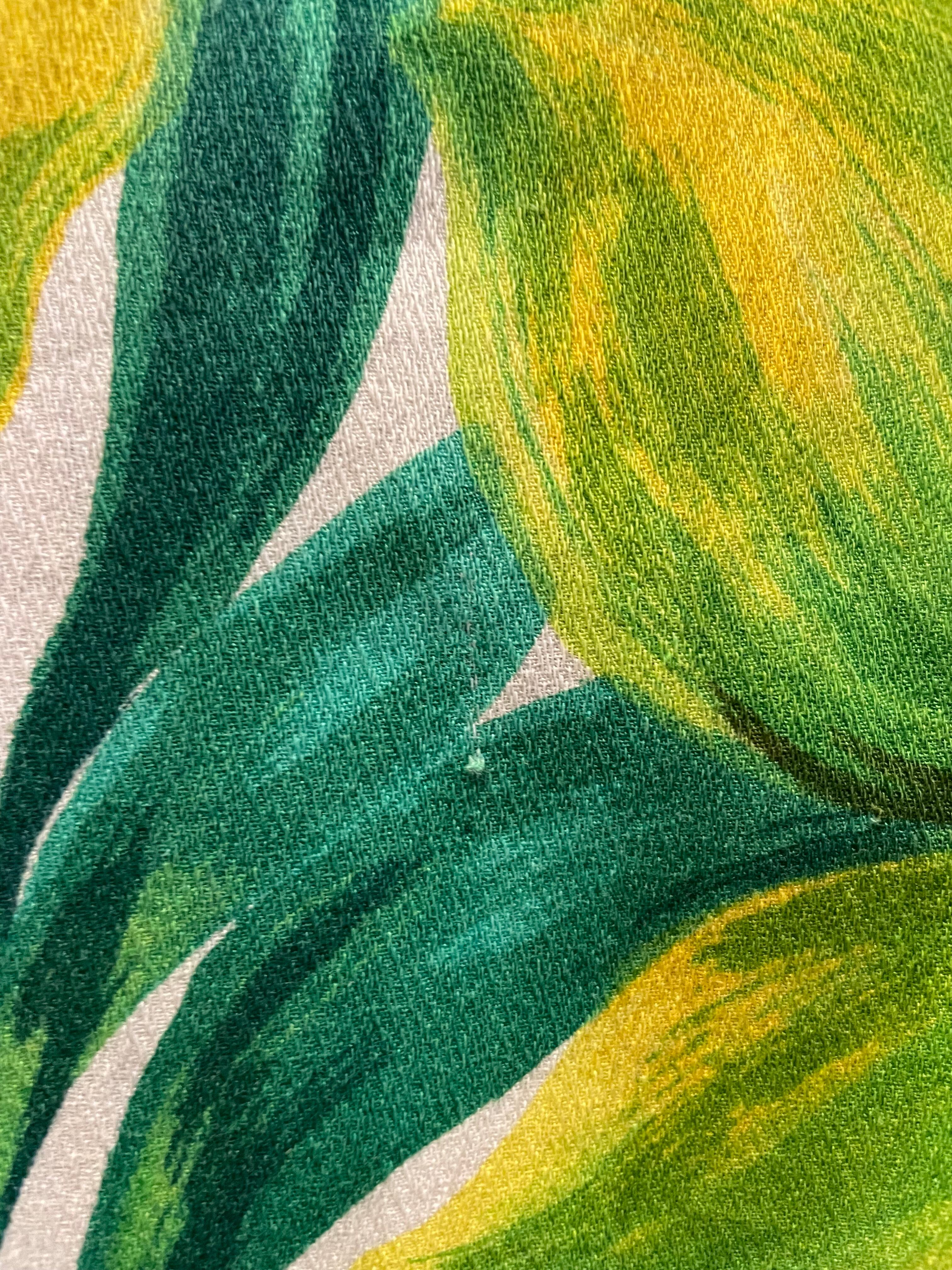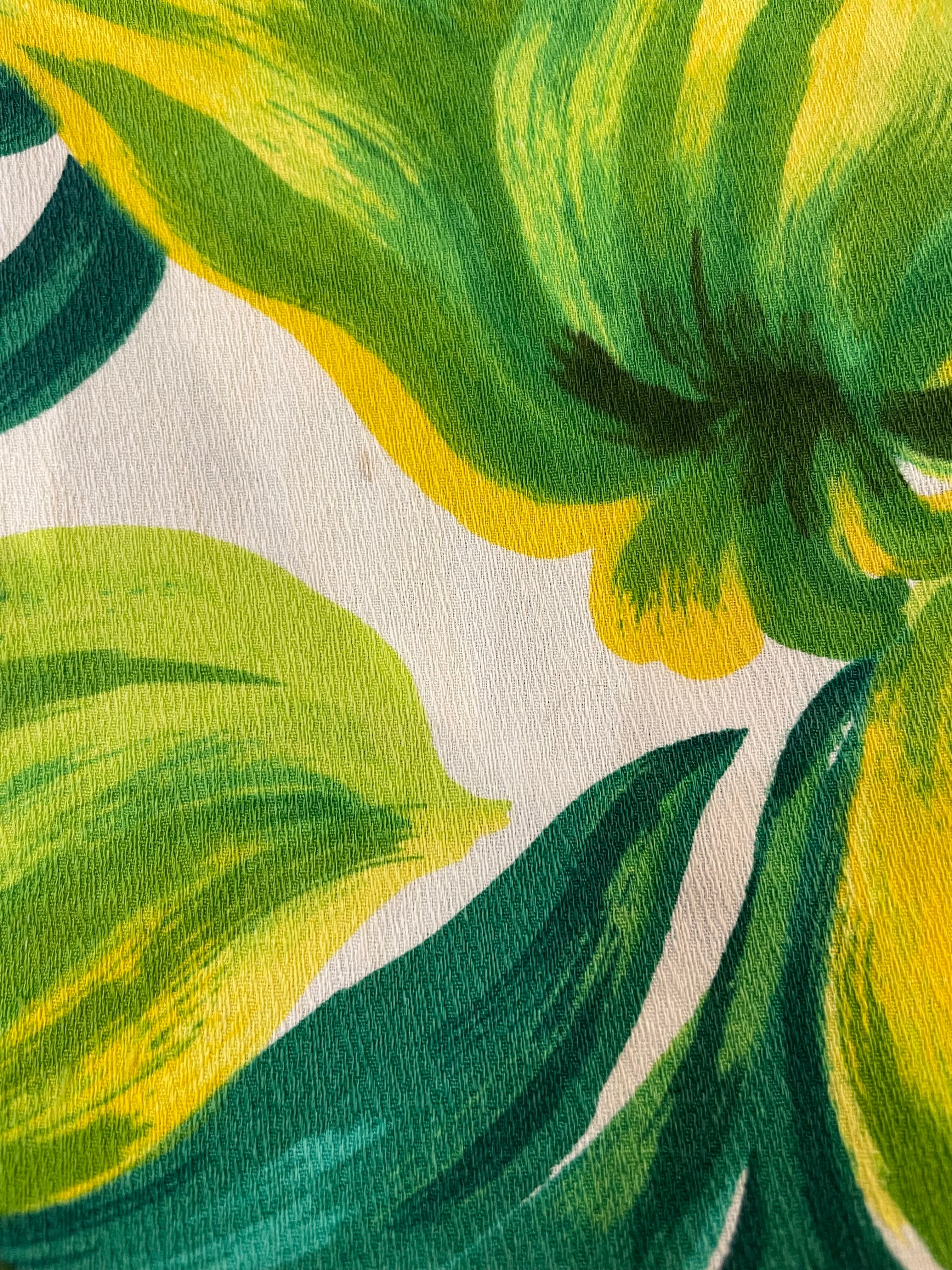 緑の大きな花柄がとても爽やかで涼しげな60〜70年代ごろのハワイアンワンピースです。