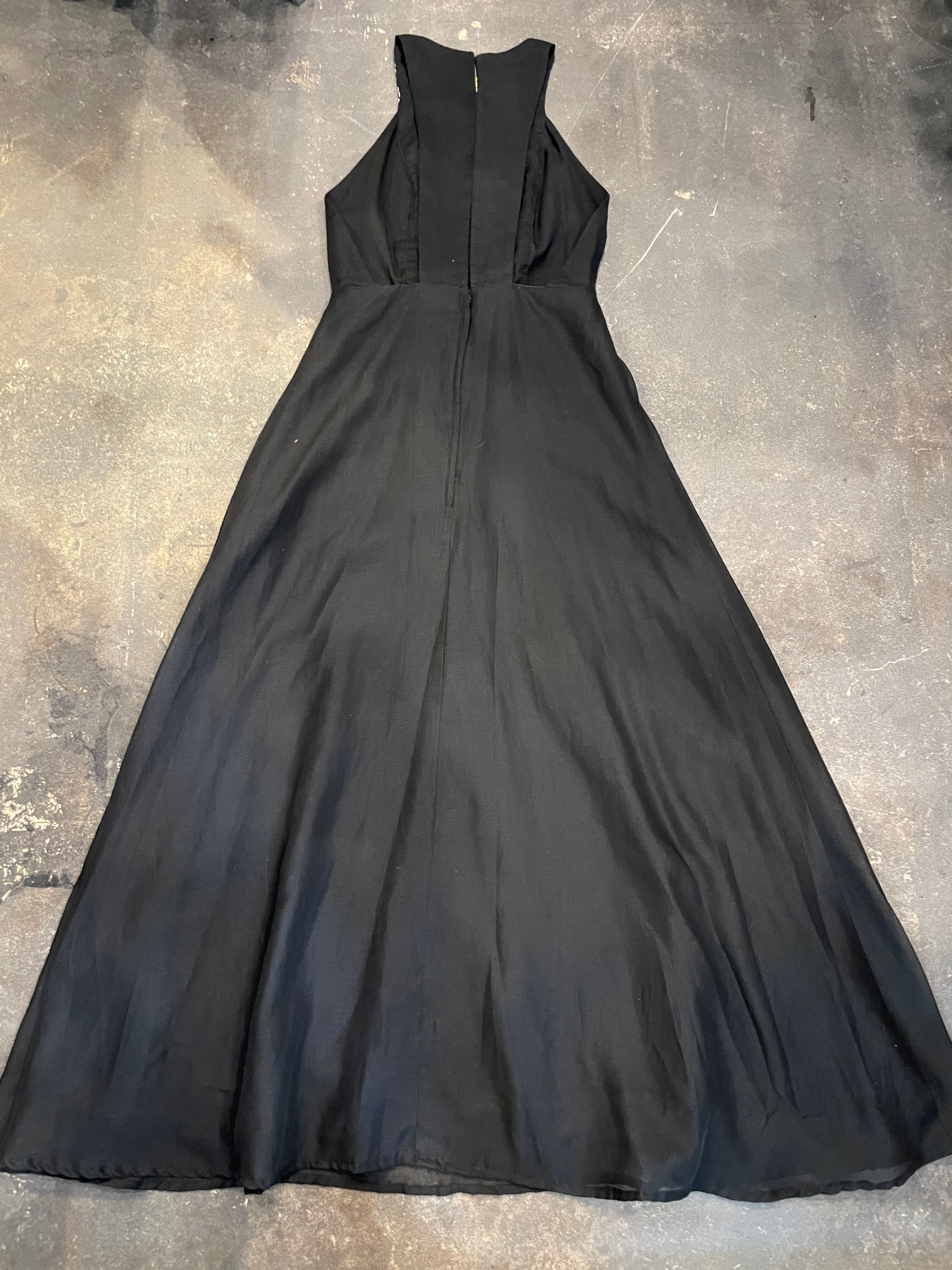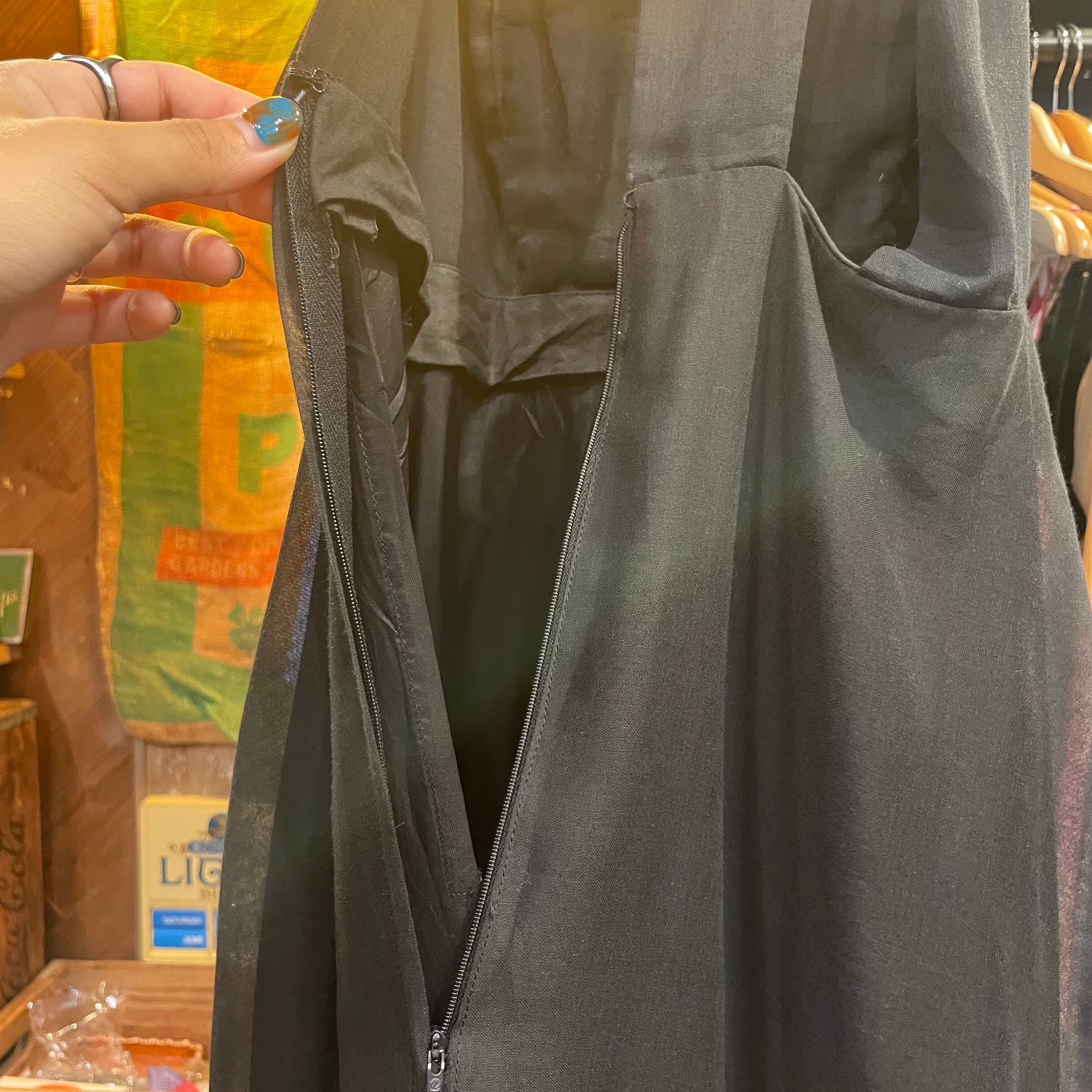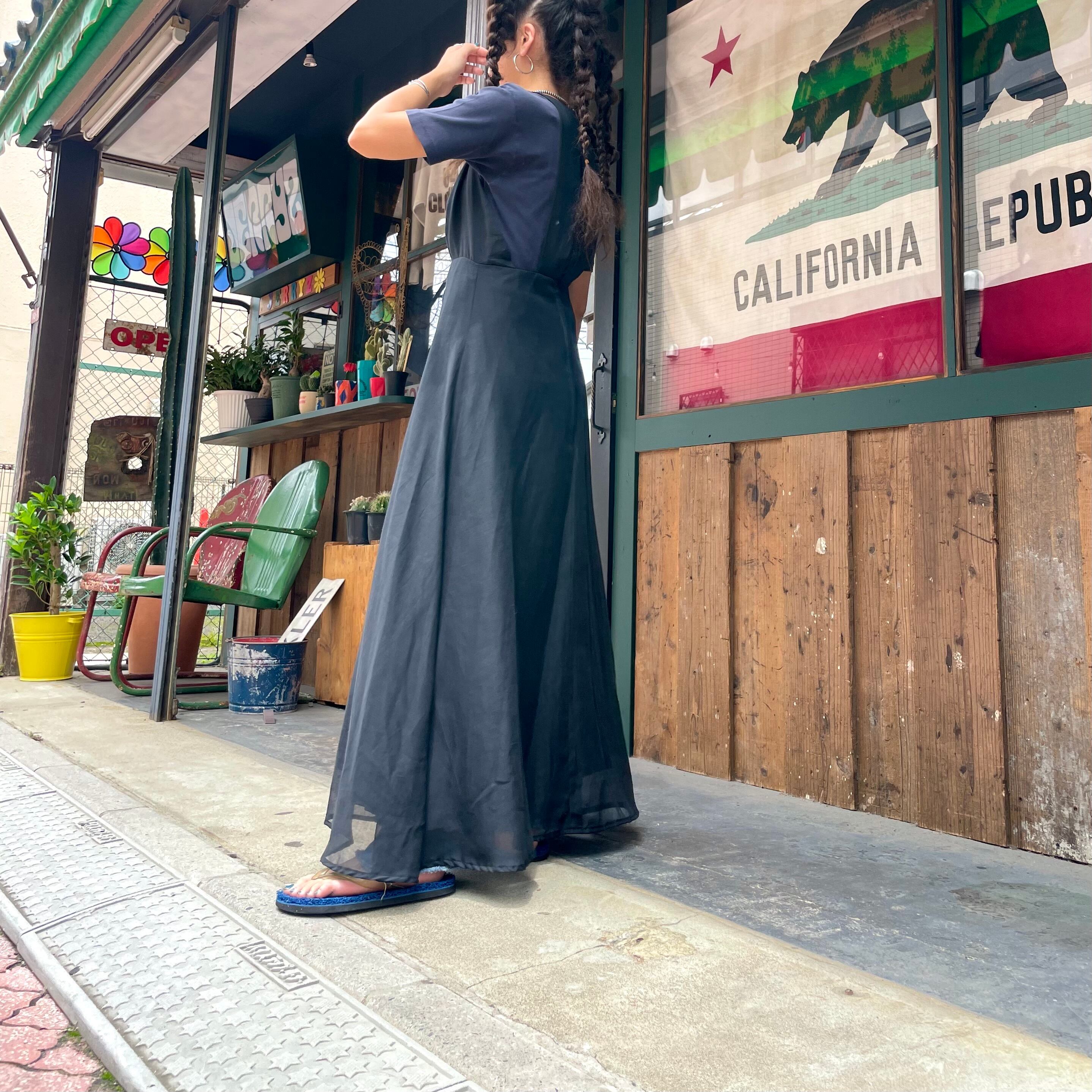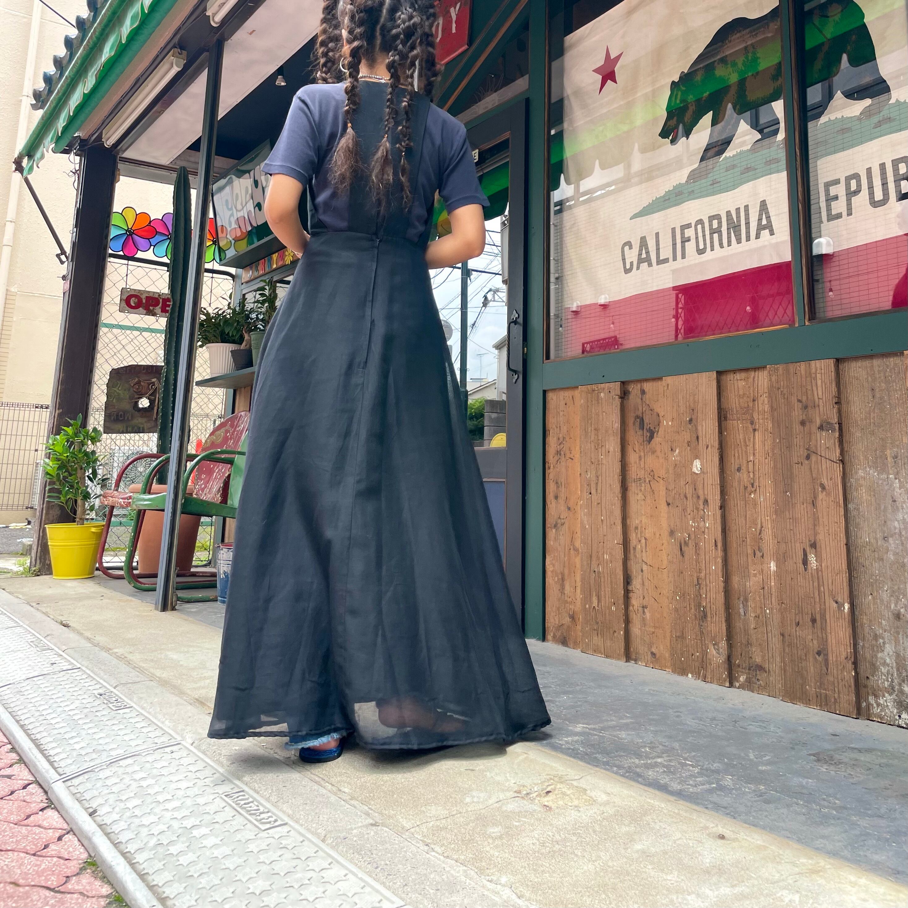 身頃部分はシースルーな生地が二重になっており、スカート部分はつるっとした裏地にシースルーな生地がふんわり重なっていて、黒ですが軽やかな印象です。
