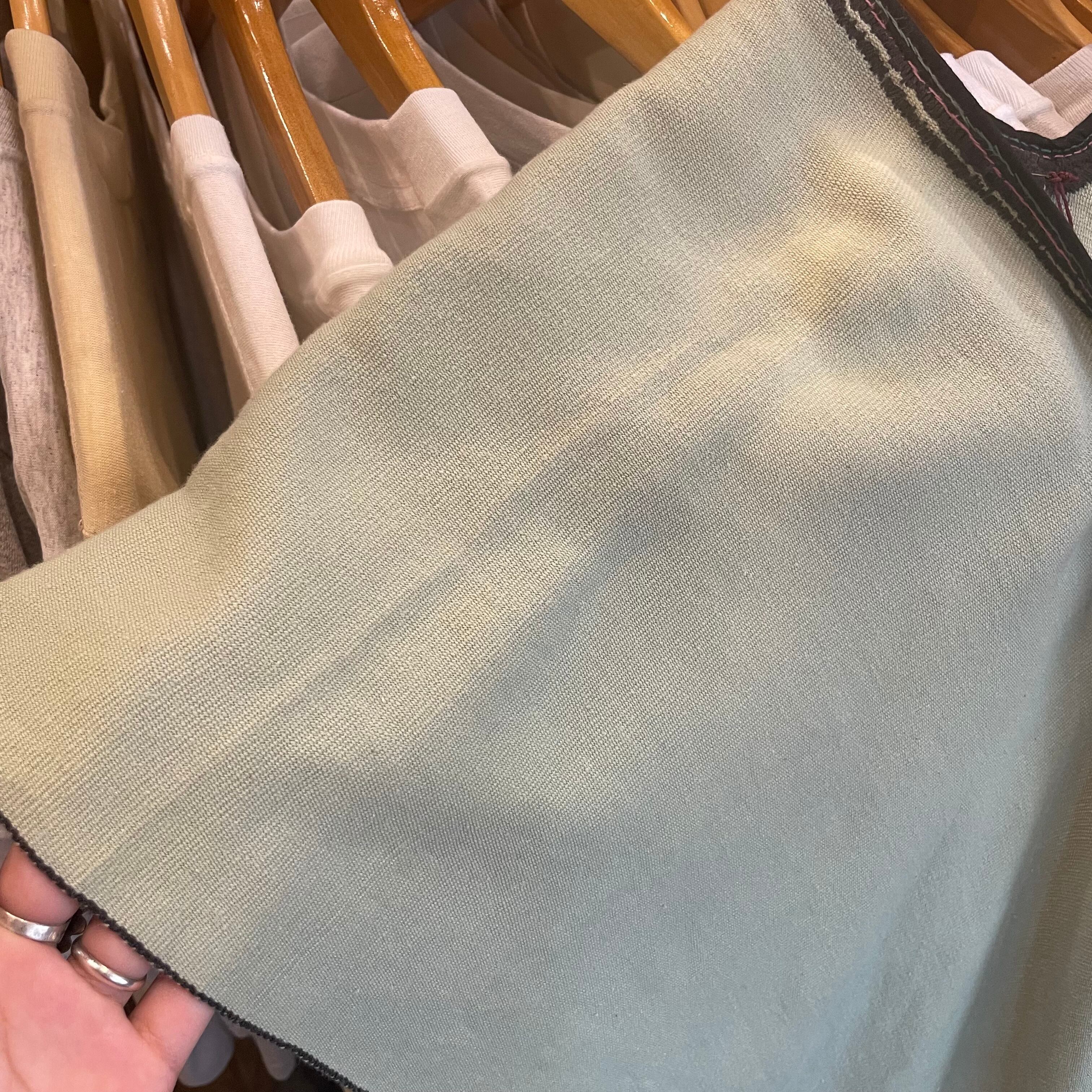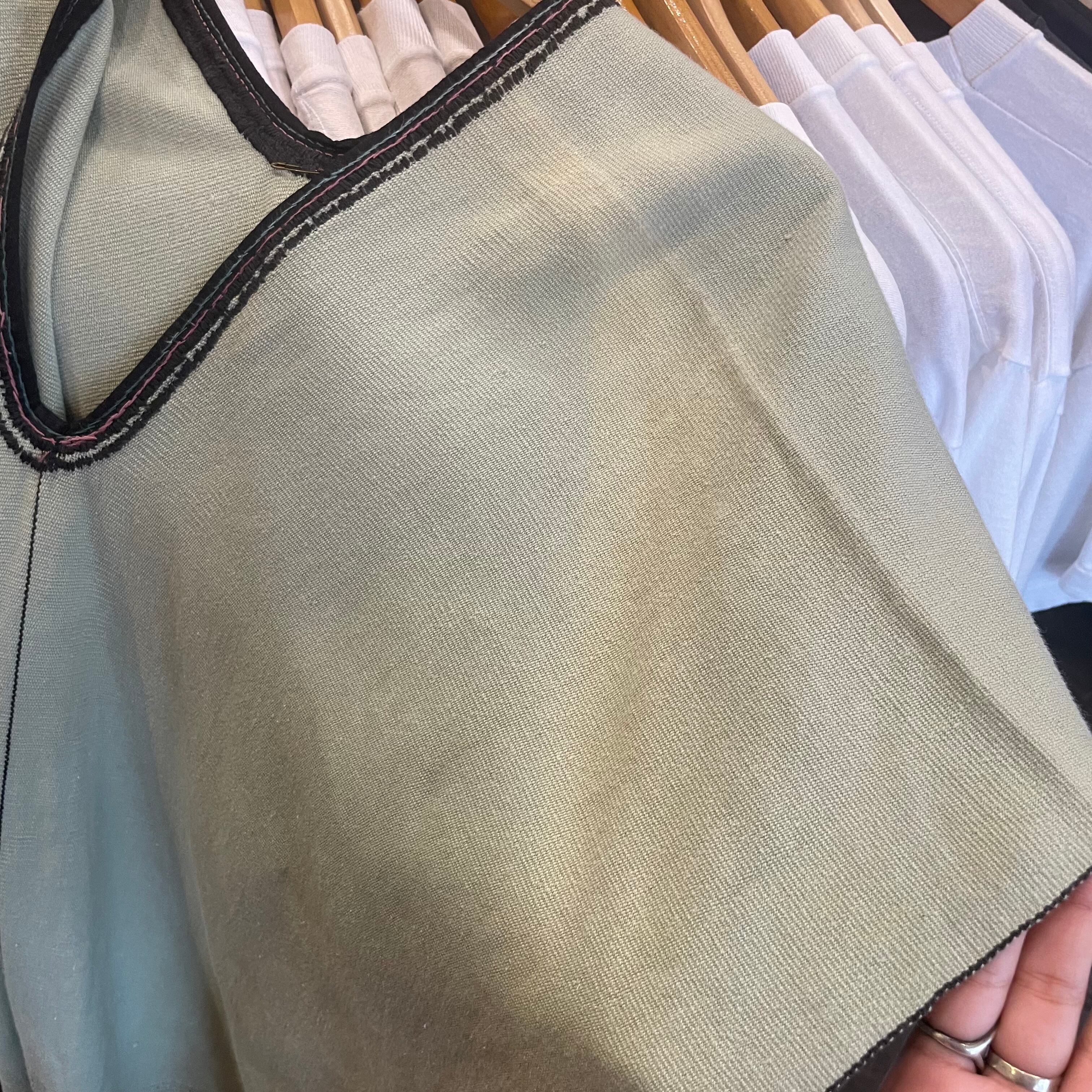 とても淡い緑色が爽やかで、襟ぐりの手縫いな感じも雰囲気がありますね。
