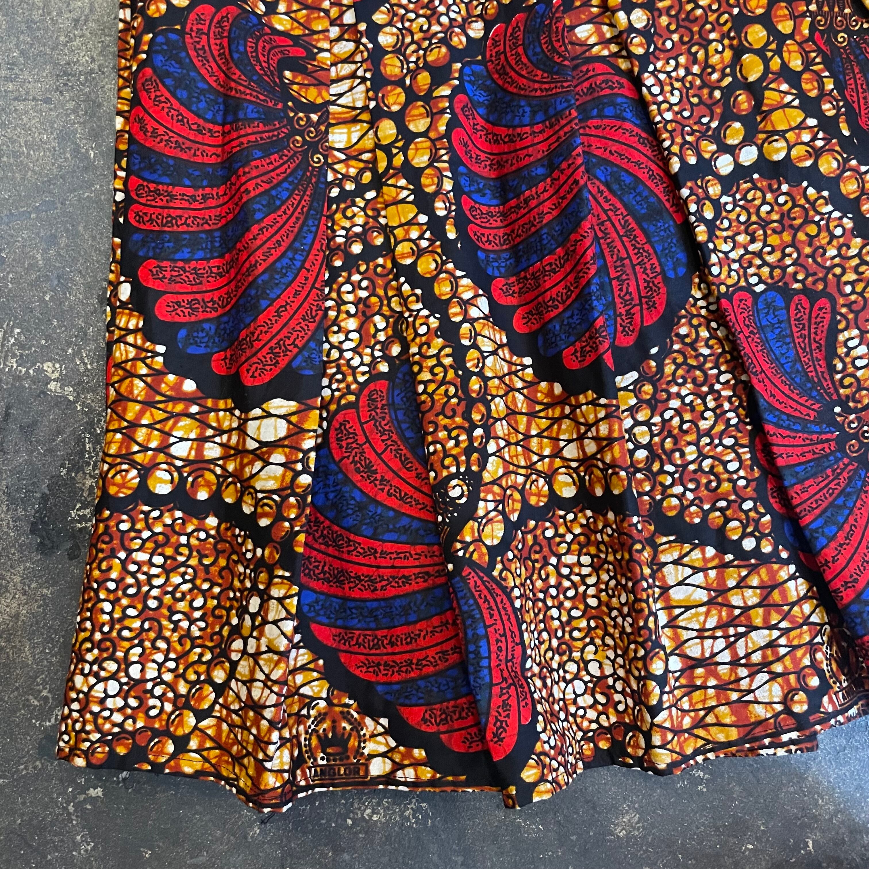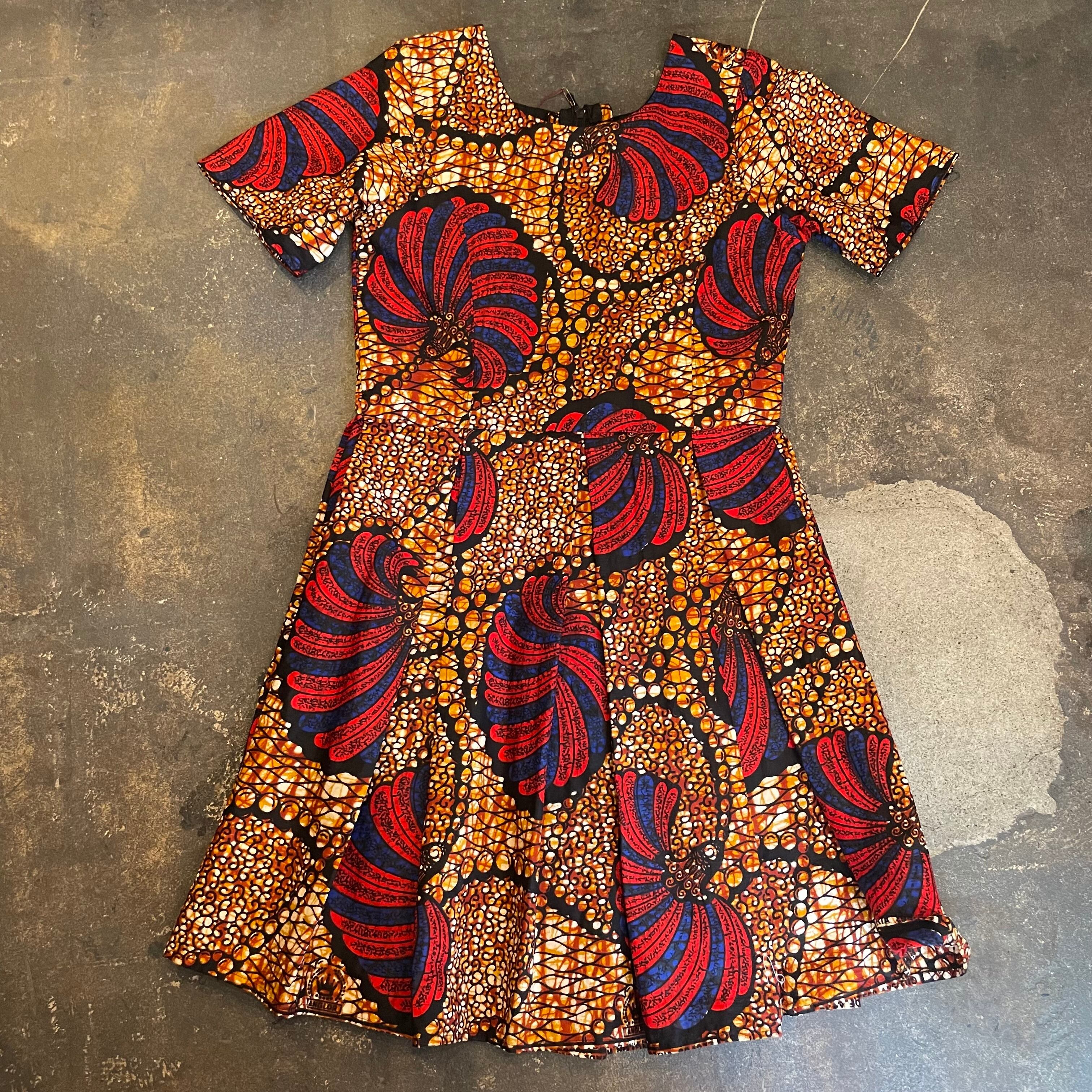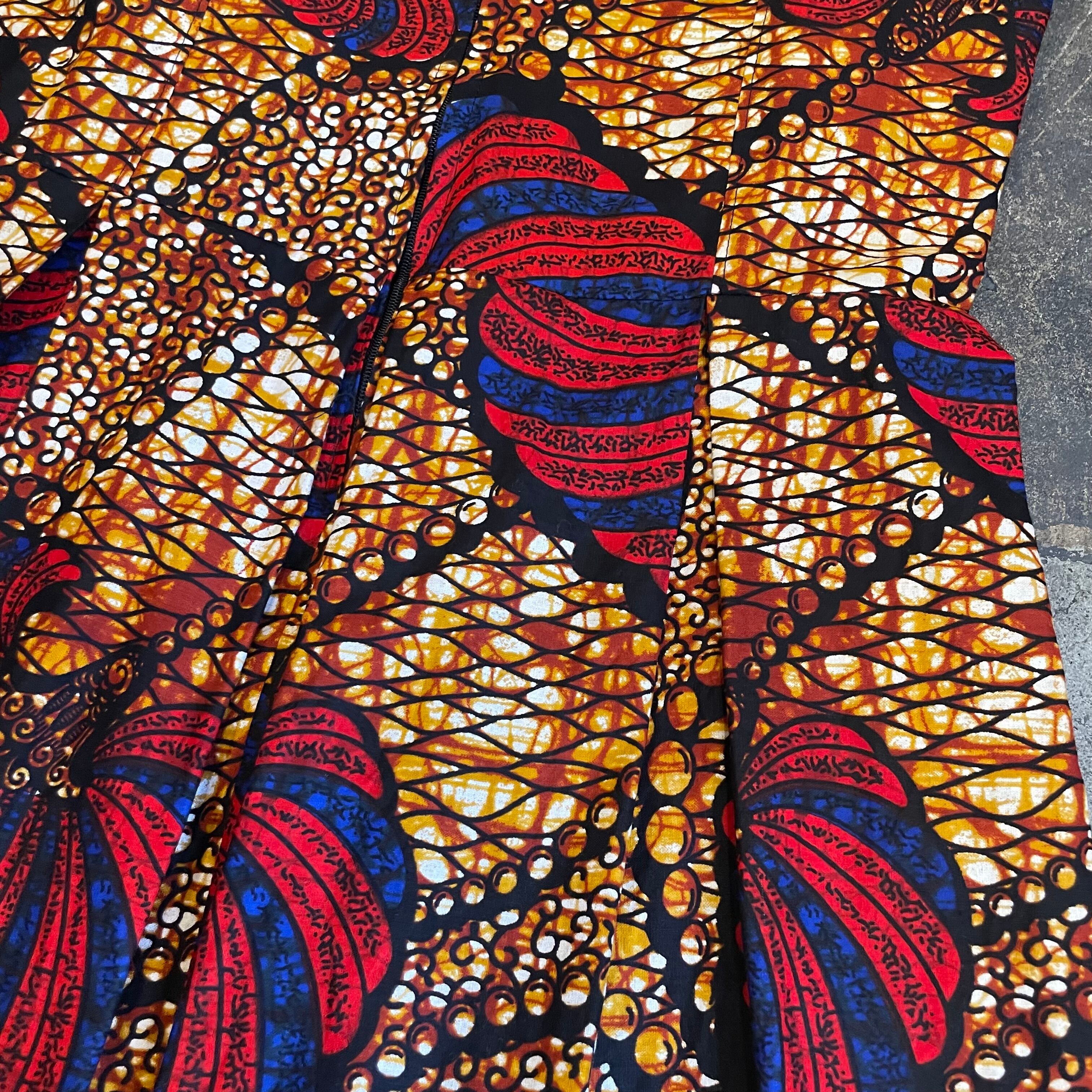 アフリカンバティック独特な色合わせや不思議な思い切りの良い柄などがとてもかわいいワンピースです。