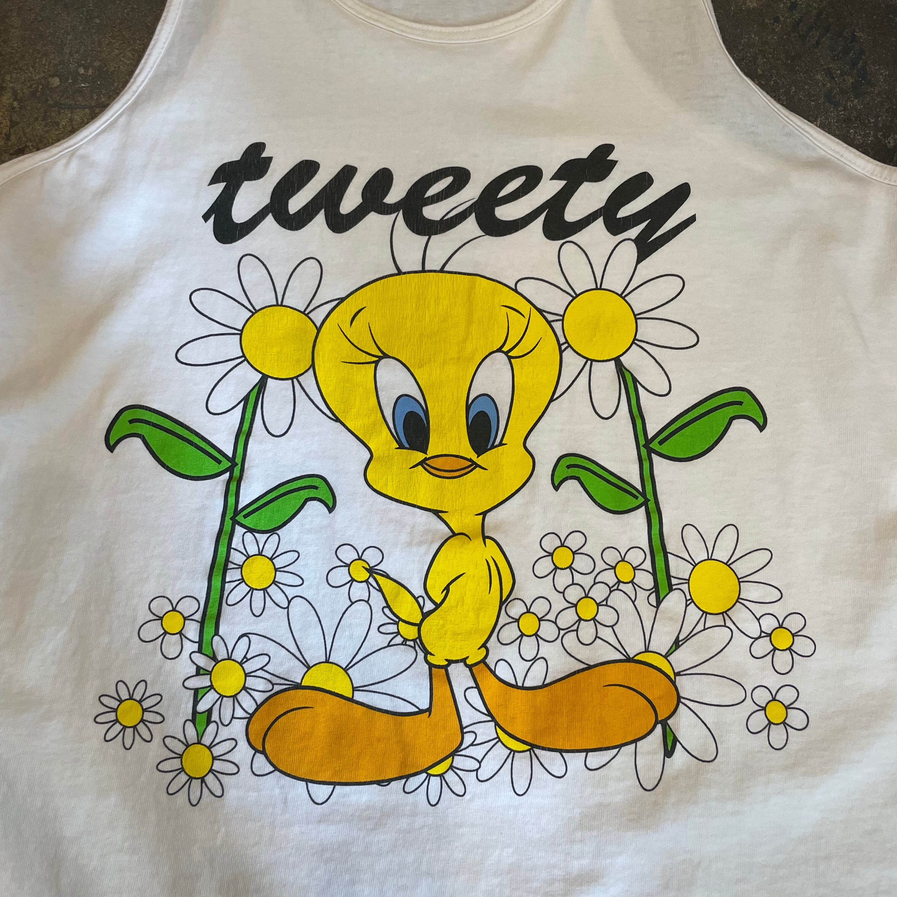 トゥイーティーとお花のプリントがかわいいタンクトップです。