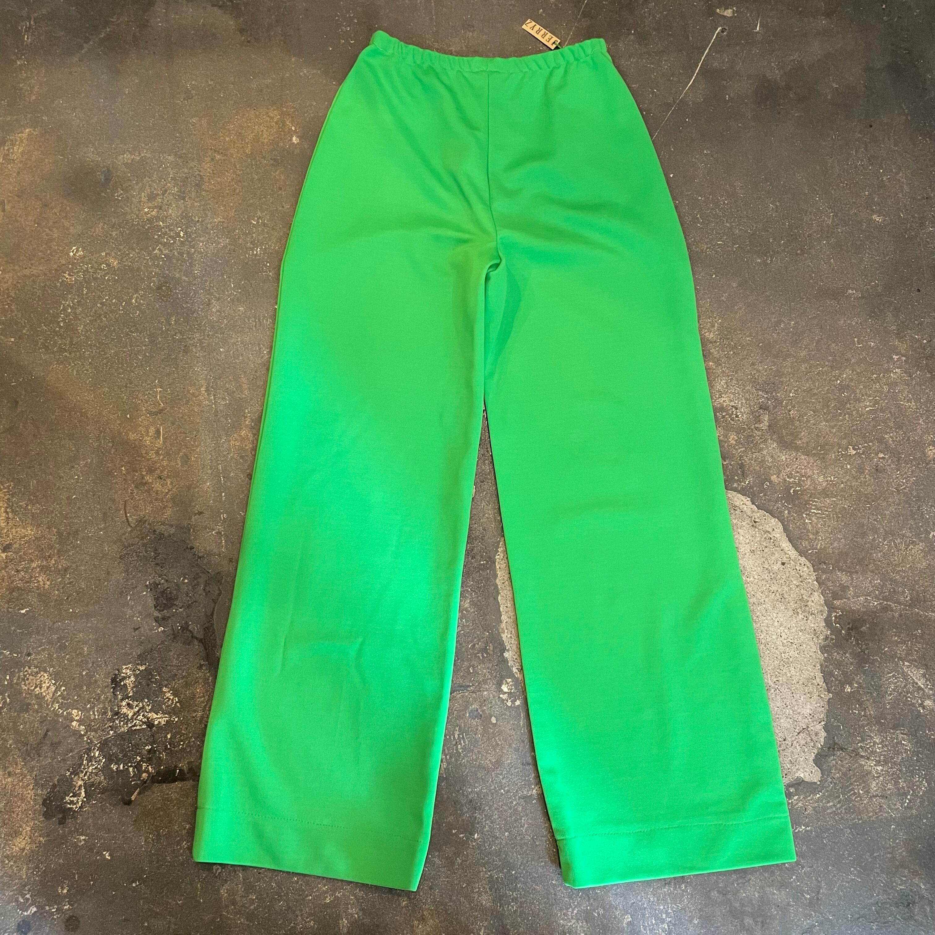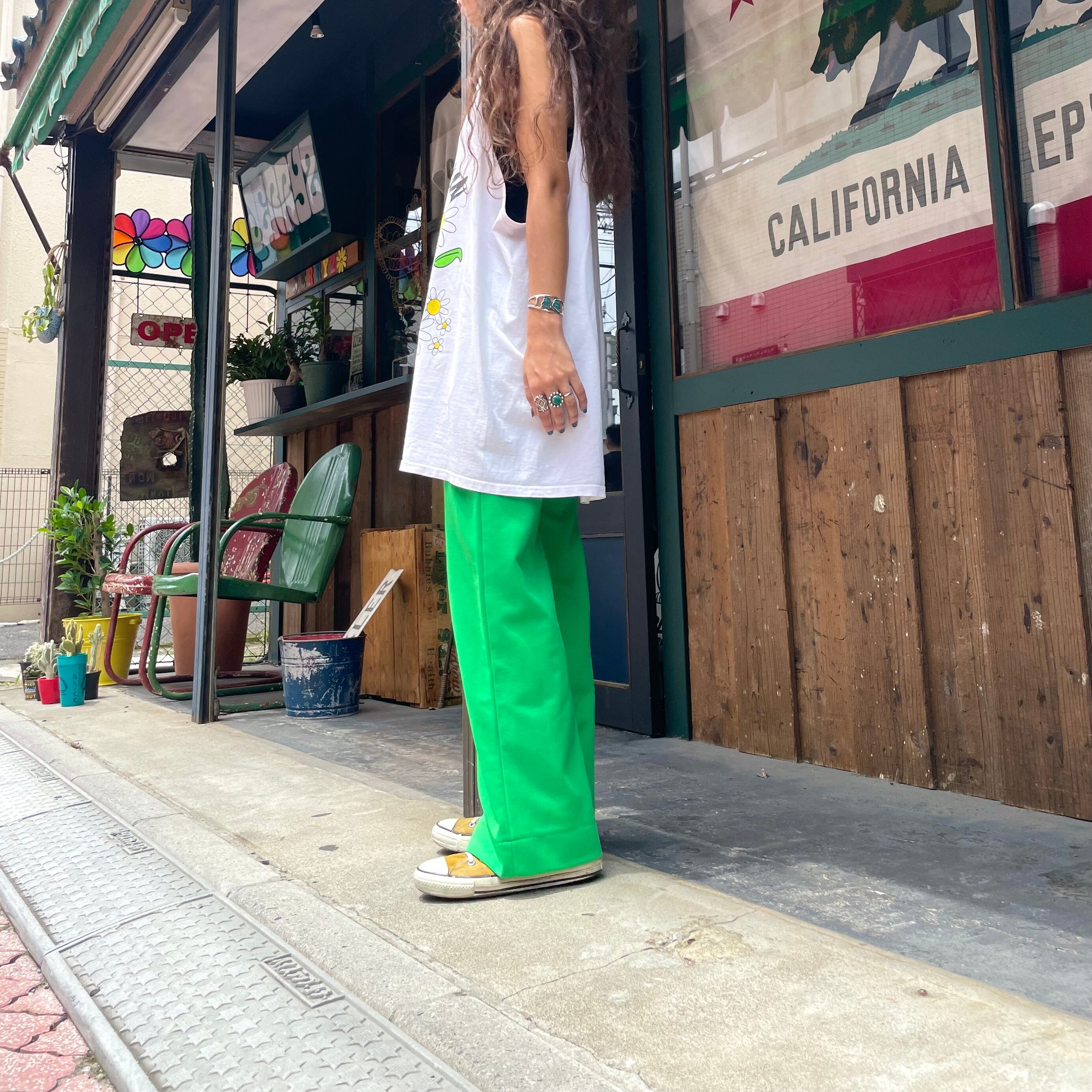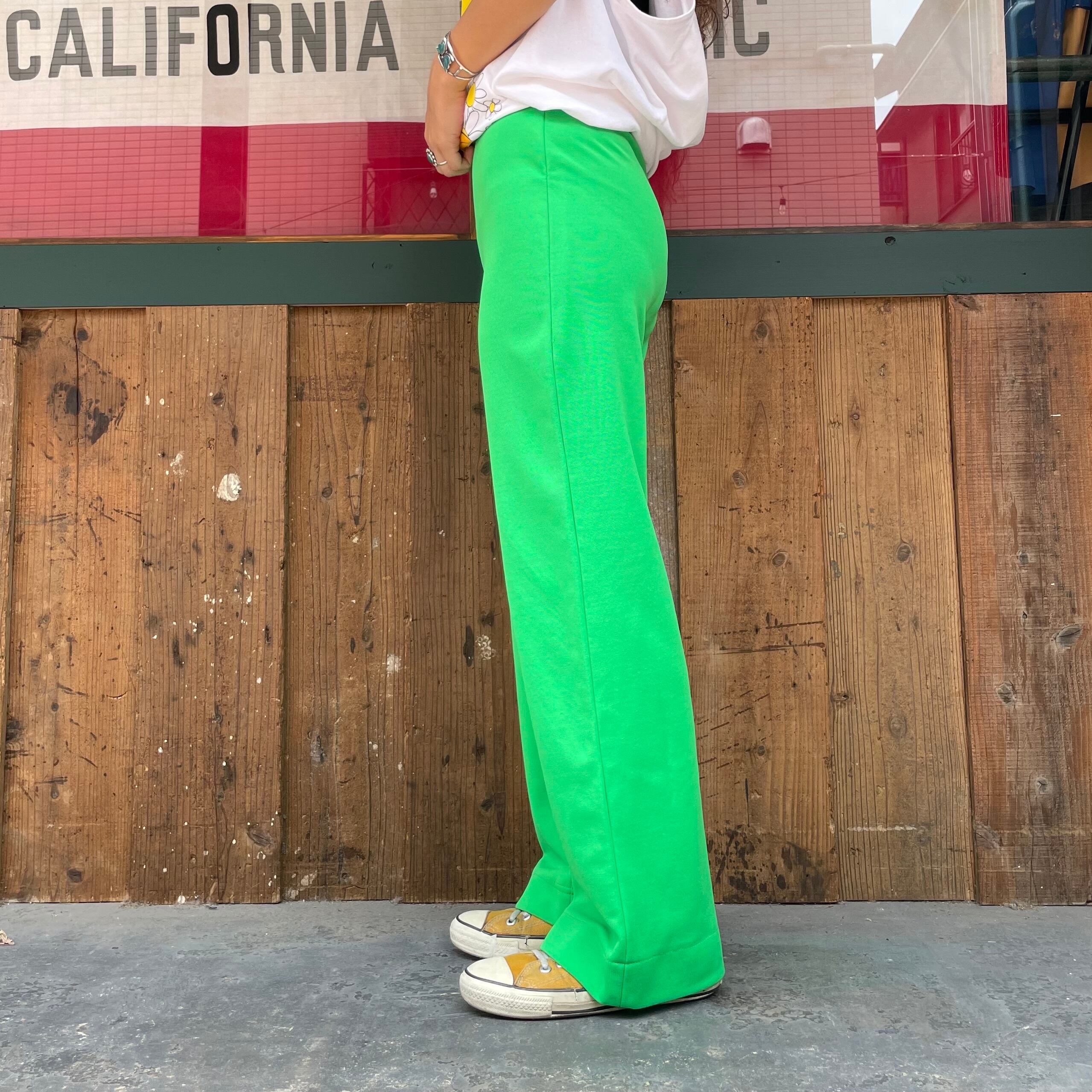 鮮やかなキミドリ色がかわいいイージーパンツです。