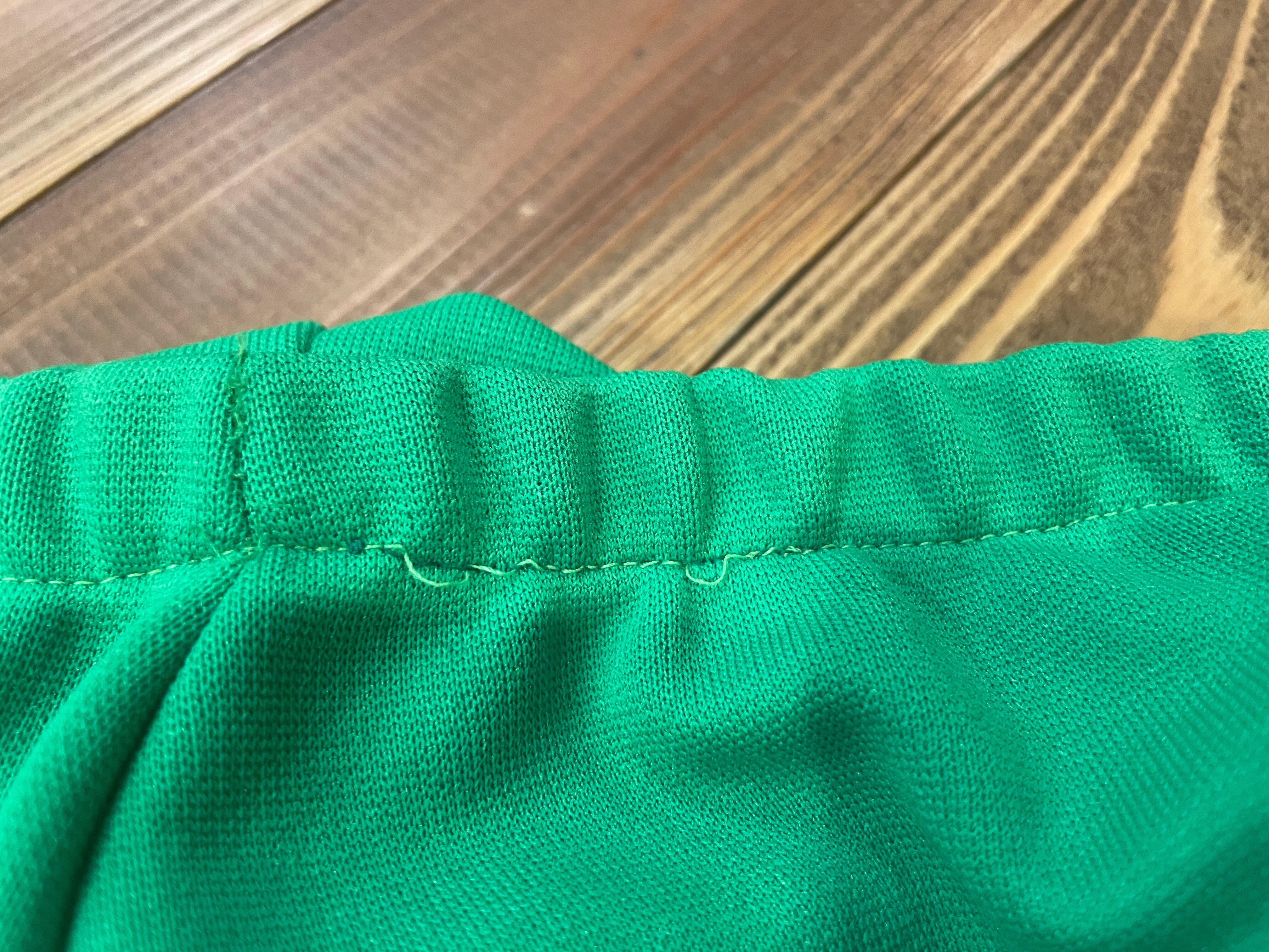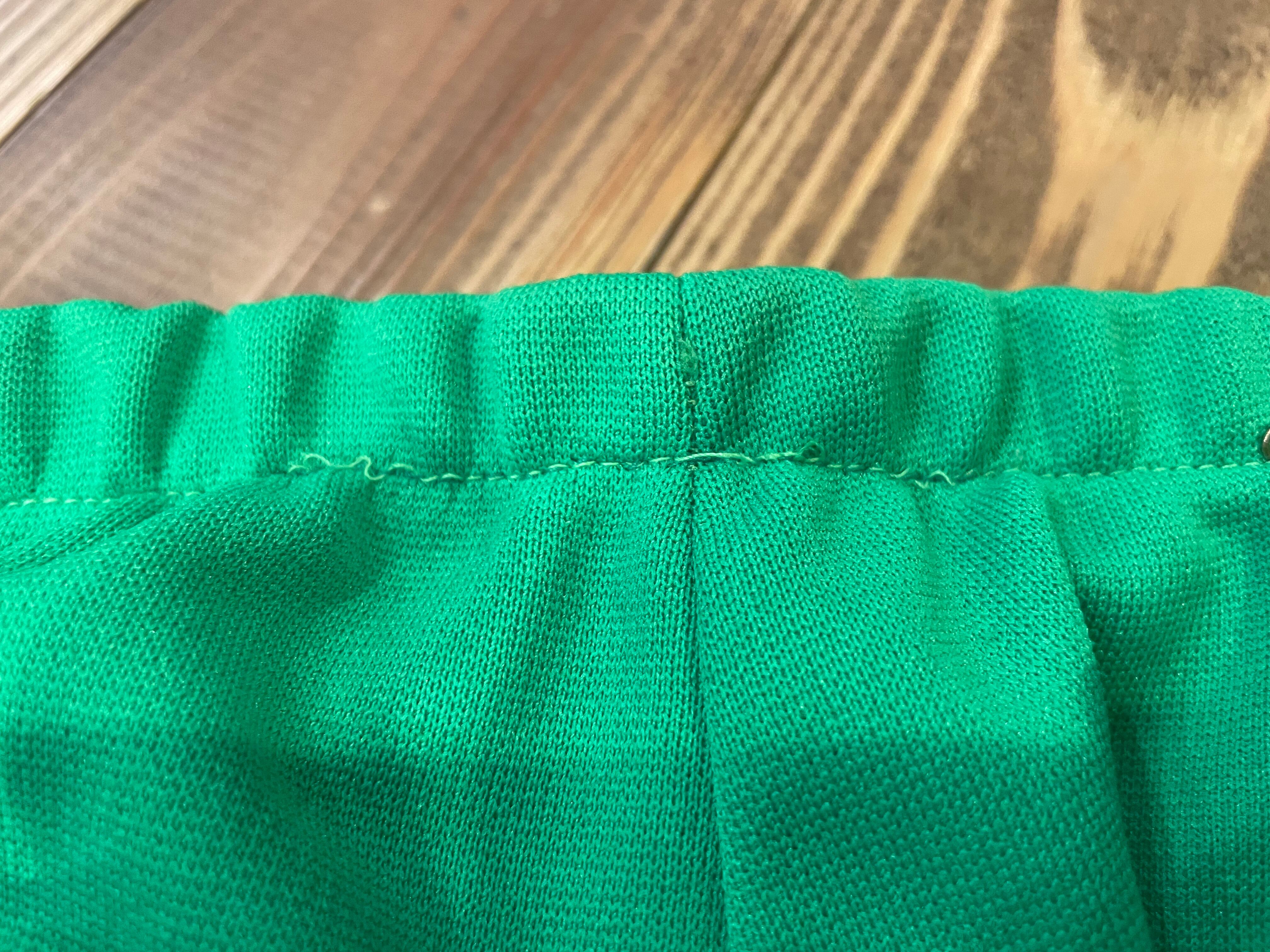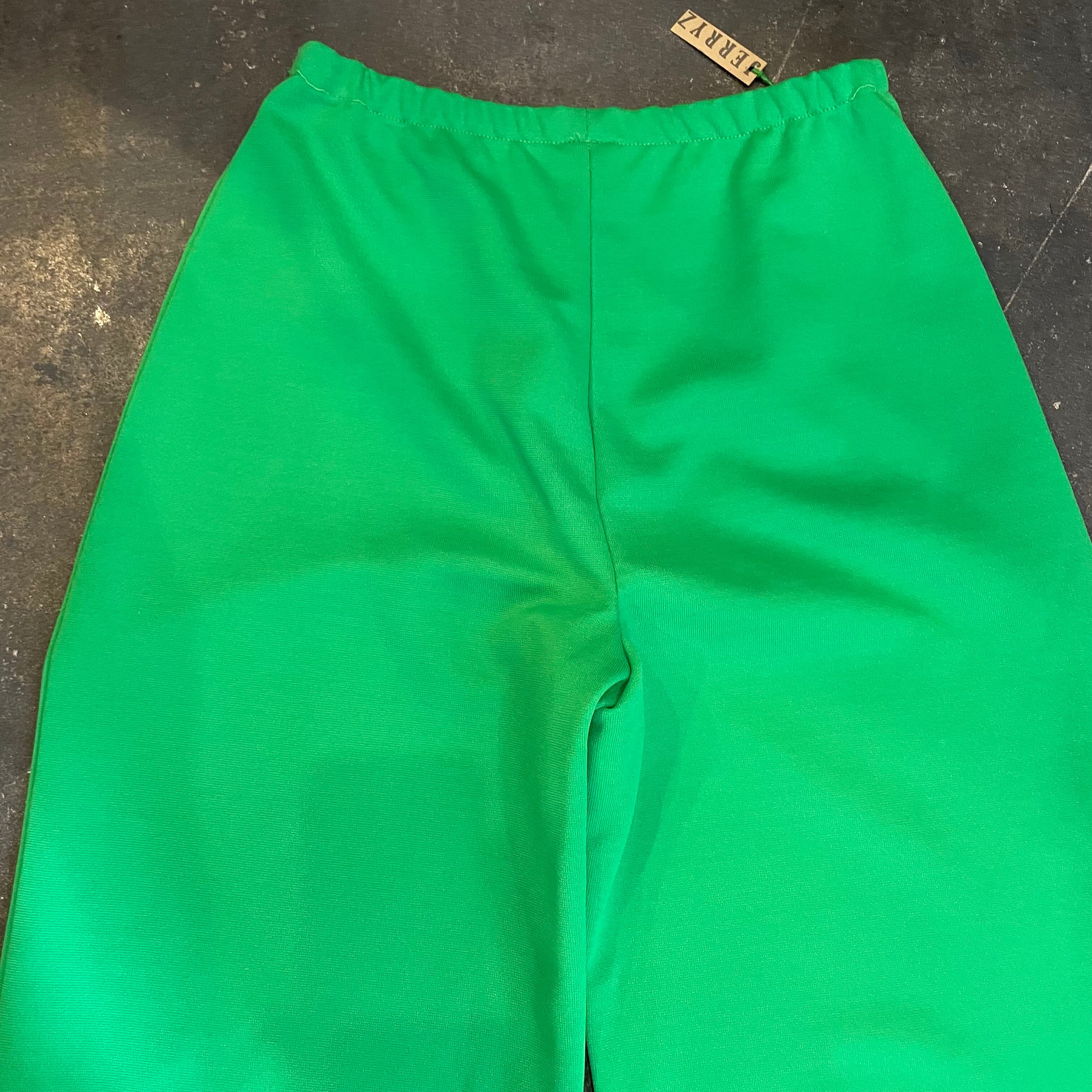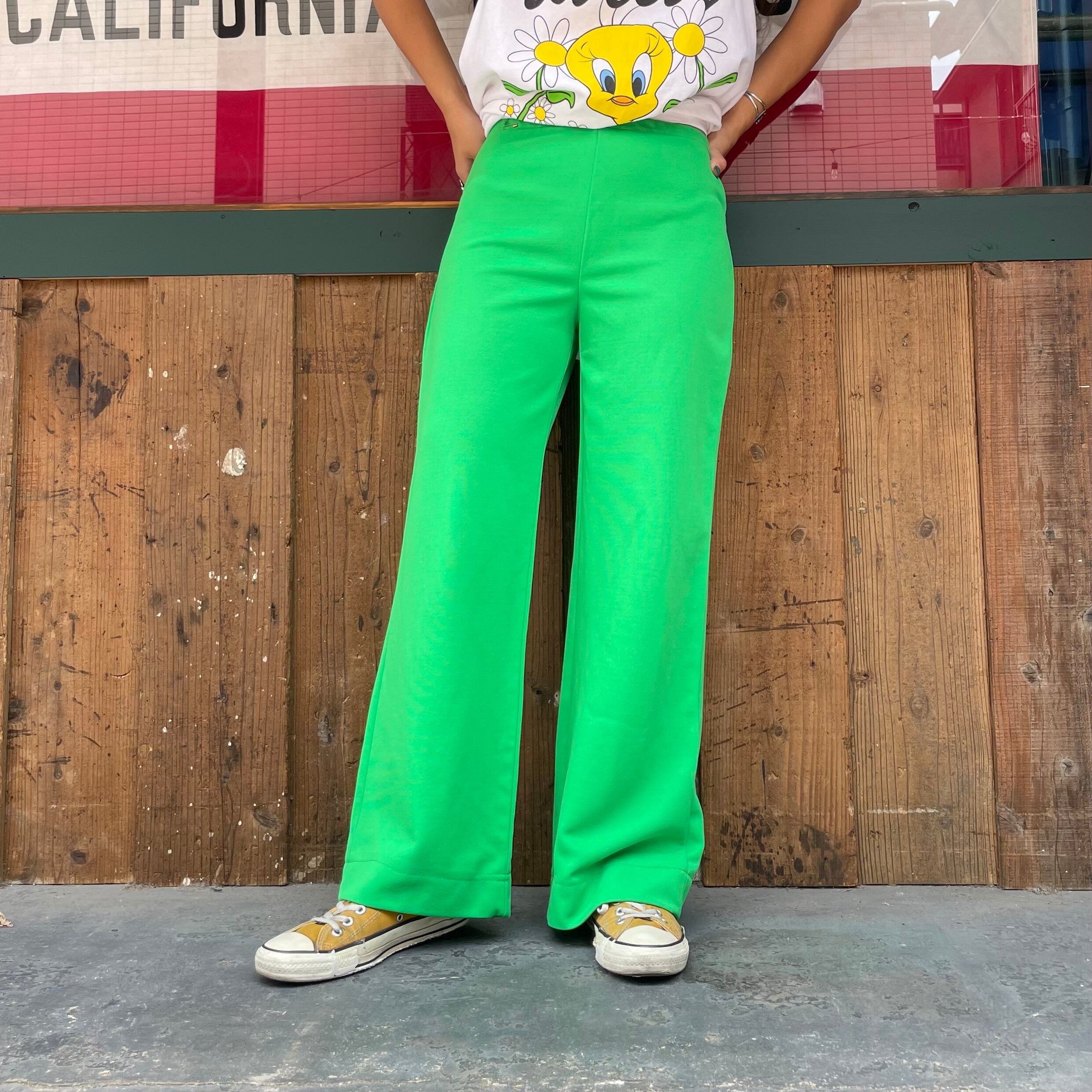 鮮やかなキミドリ色がかわいいイージーパンツです。