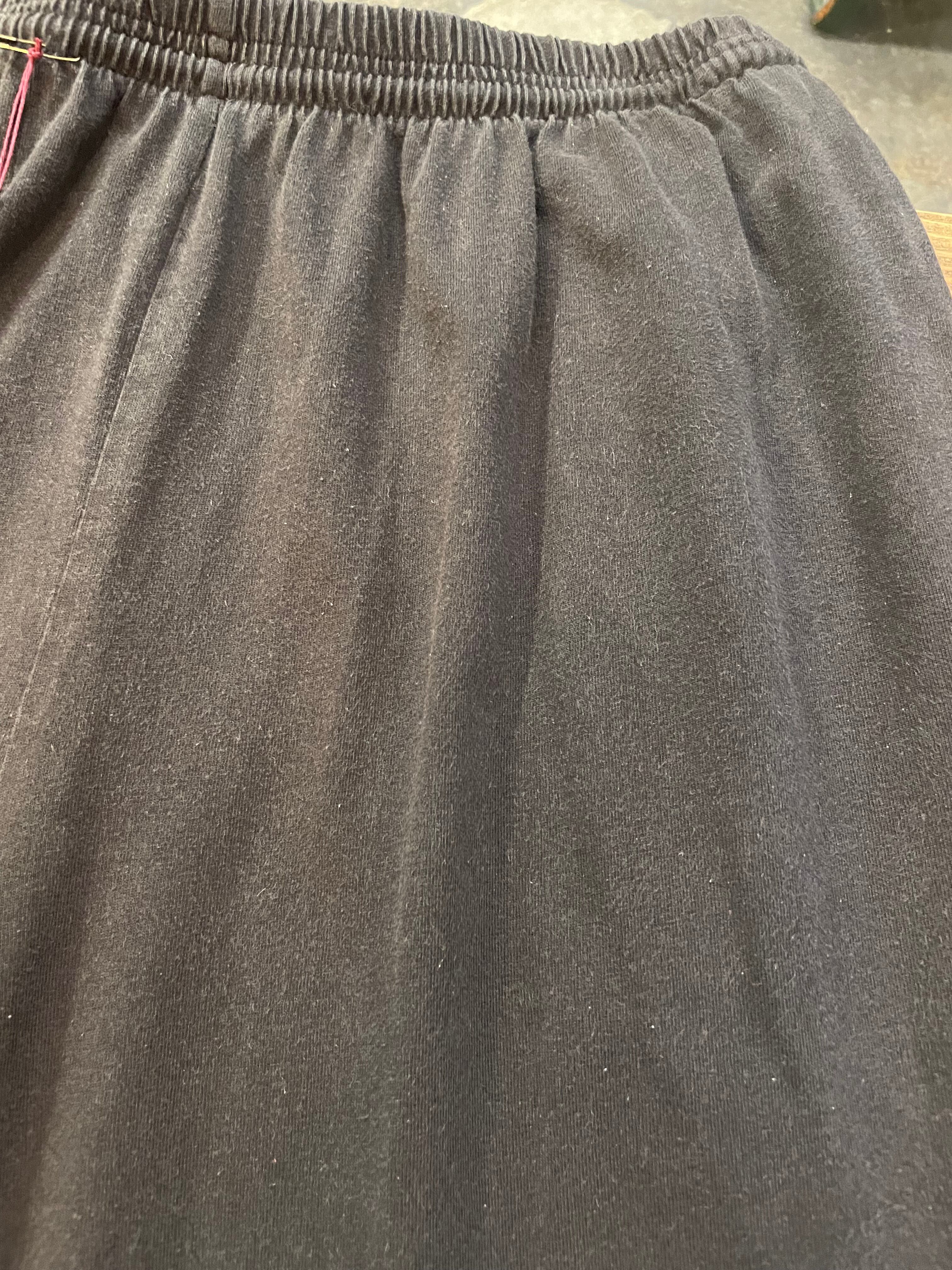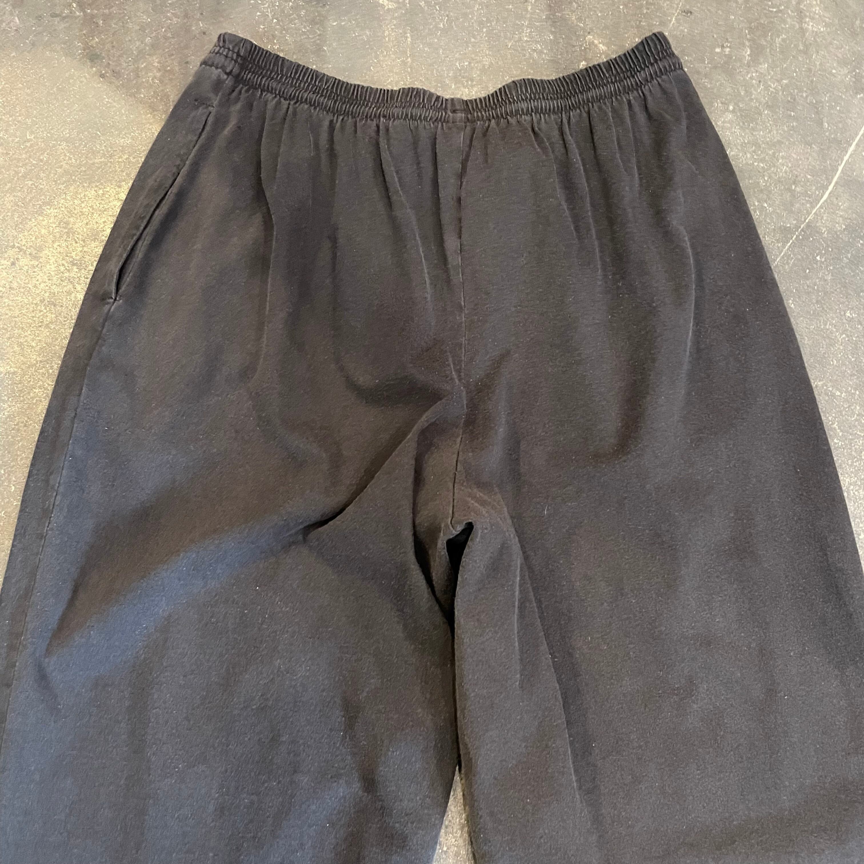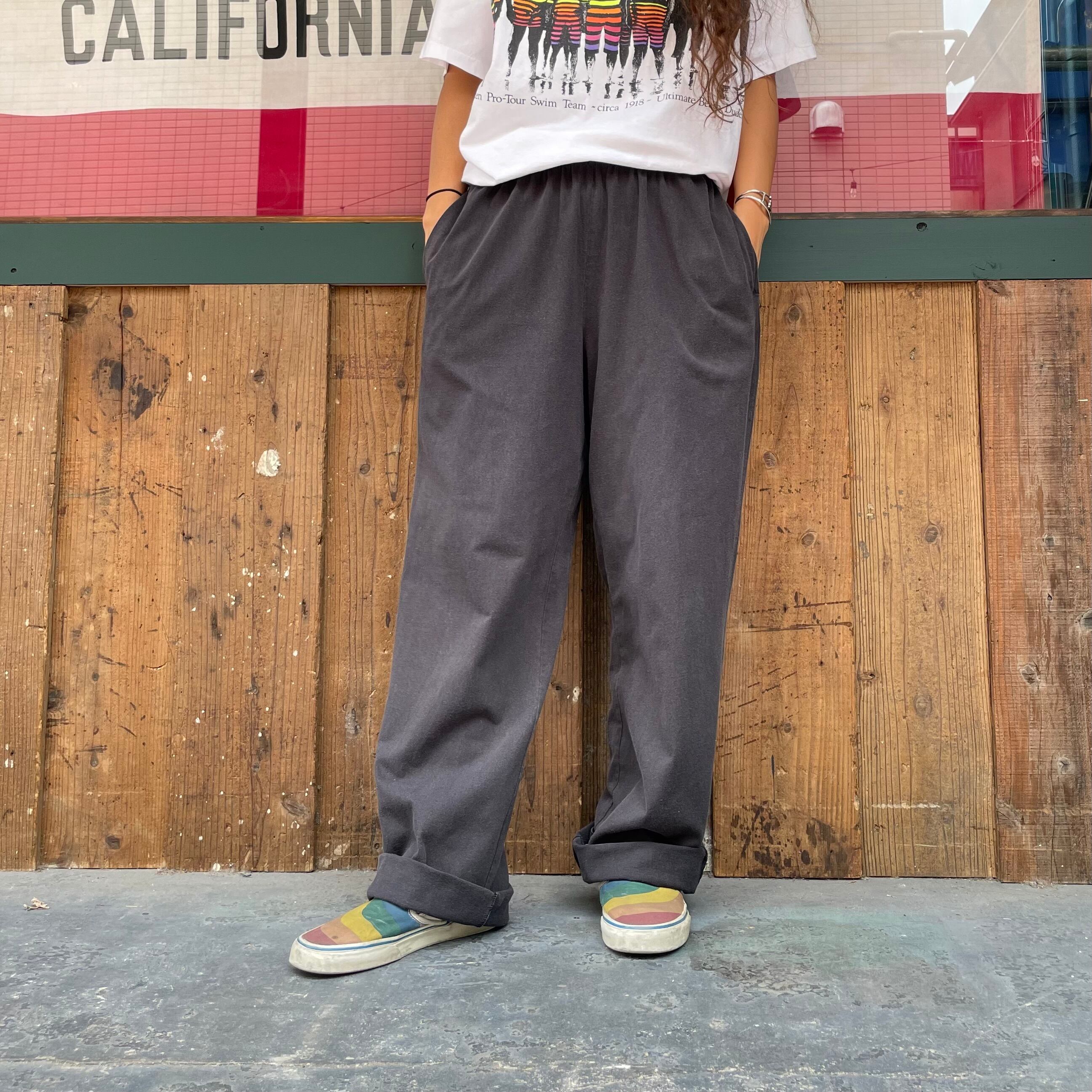 色褪せた黒の墨黒感が良い雰囲気のイージーパンツです。かなりゆったり大きめなサイズ感が緩くて楽ちんでかっこいいですし、ポケットもあって助かります。