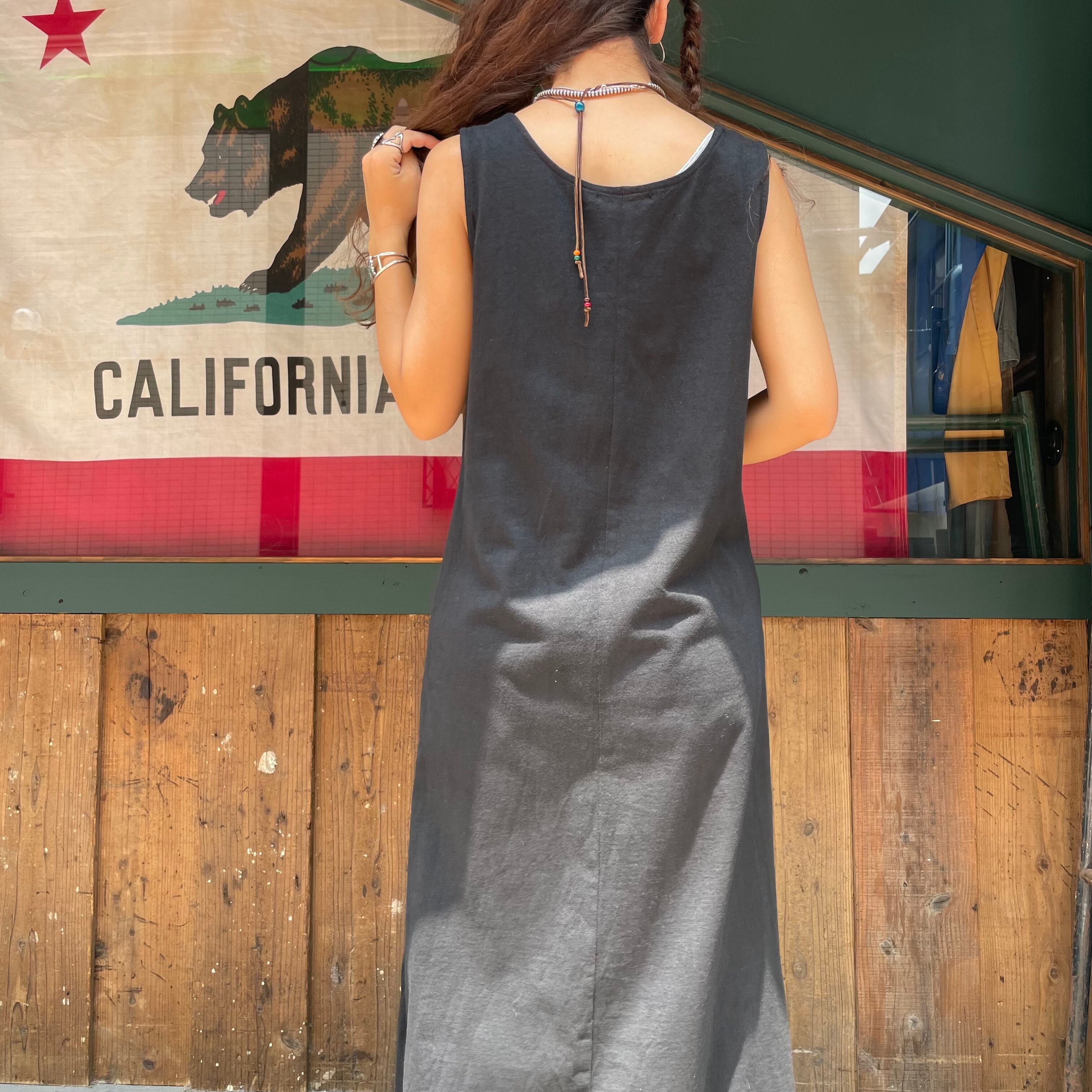 しっかり厚手のTシャツのような生地感が楽ちんでかわいいノースリーブワンピースです。