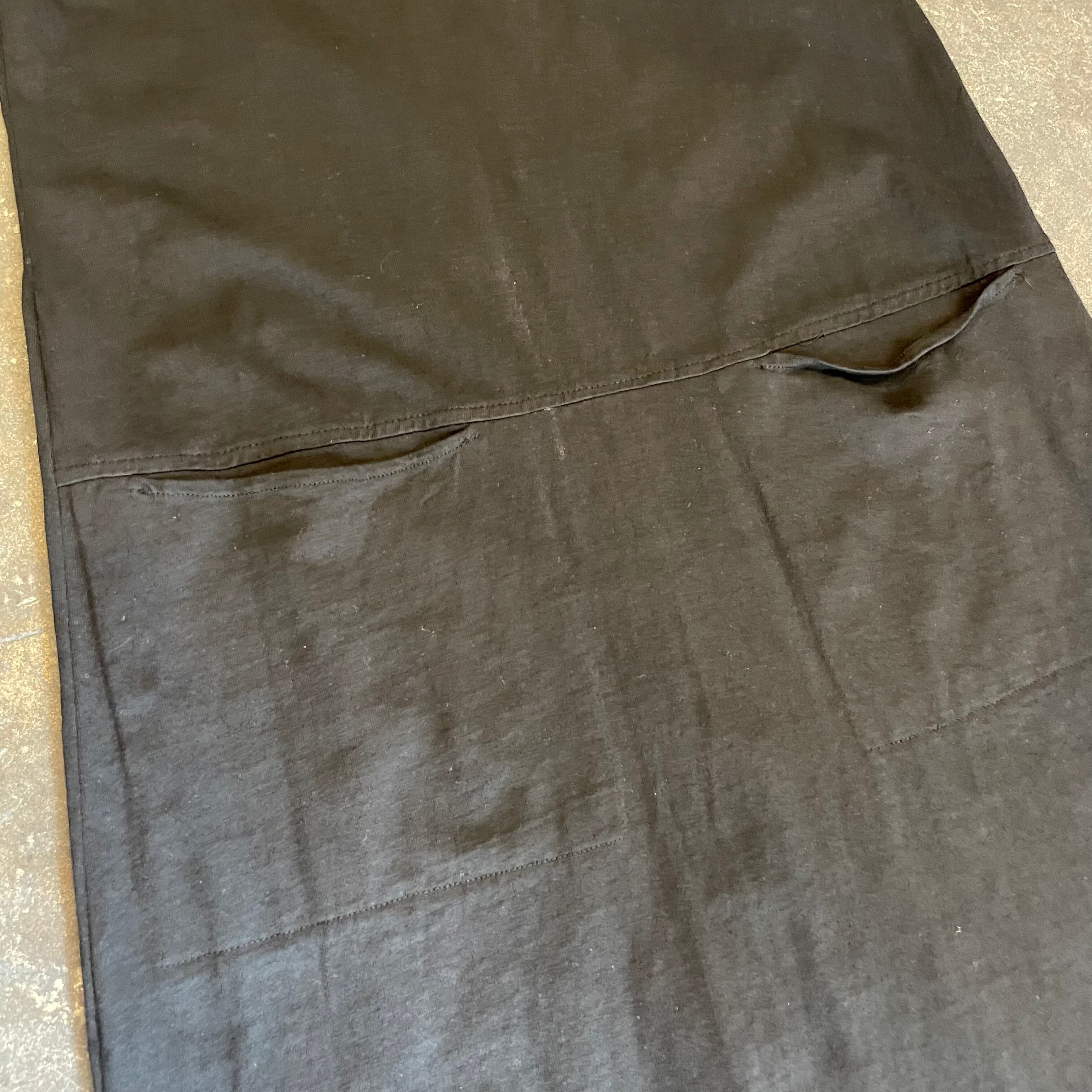 真っ黒でとてもシンプルですがすっきりしたきれいなAラインのシルエットや、両サイドのスリット、前に少し変わったデザインのポケットなど、ポイントがあってかわいいです。