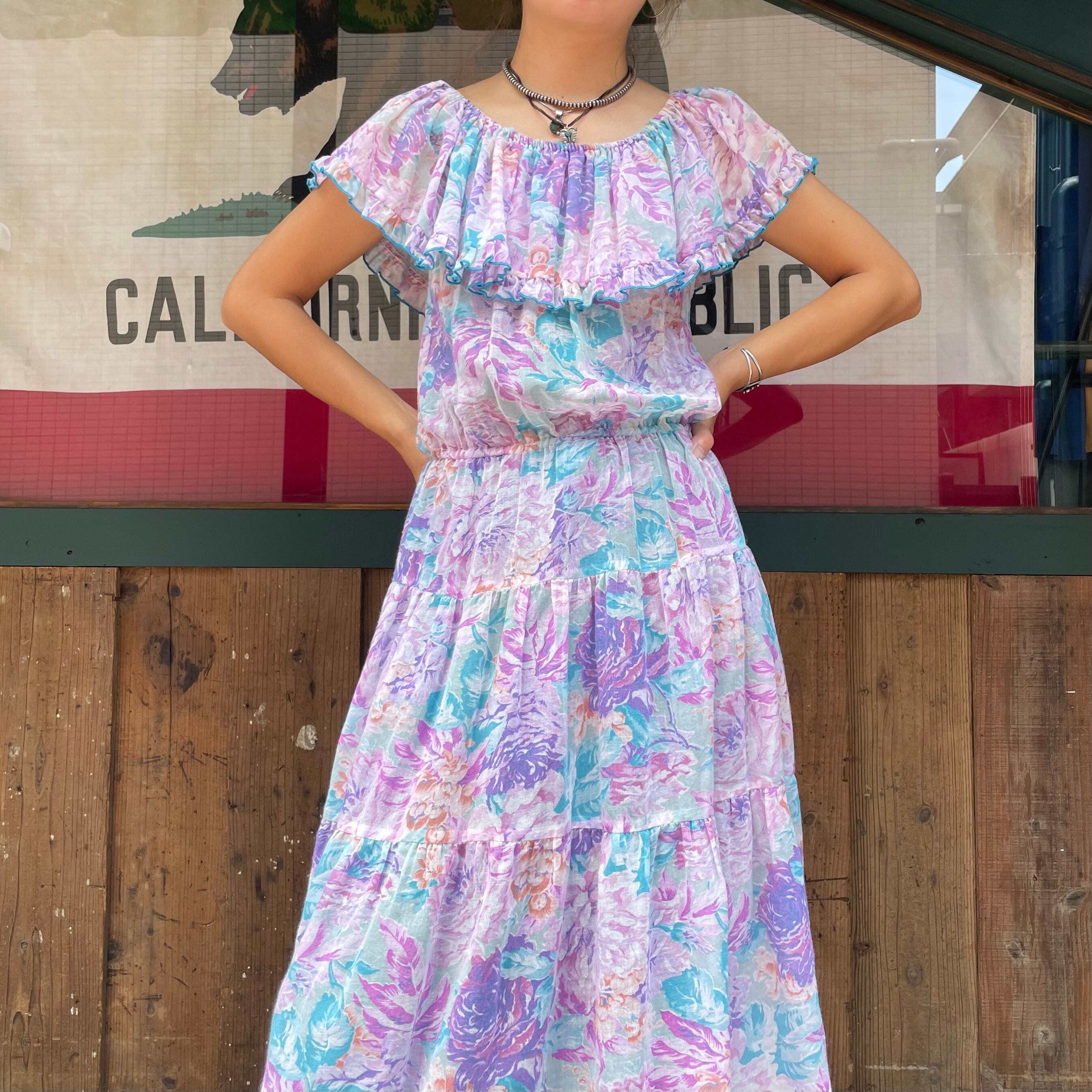 シースルーな透明感のある花柄が爽やかなワンピースです。