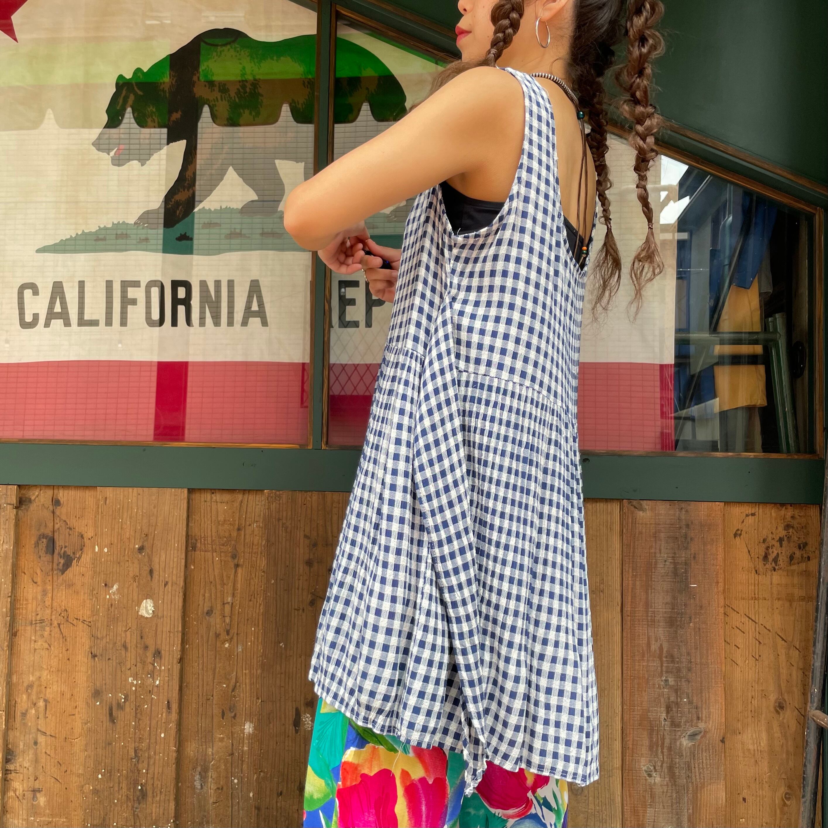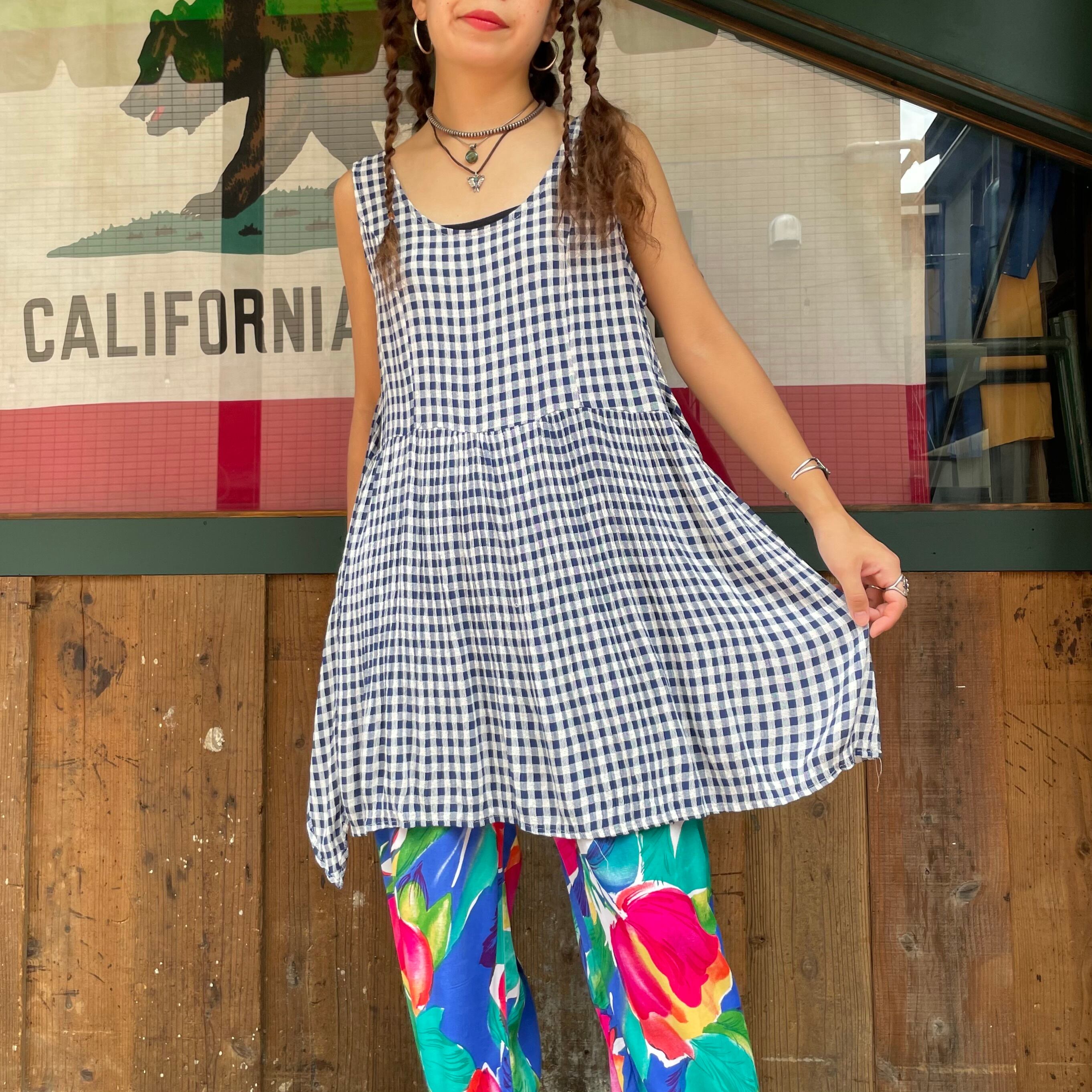ネイビー×白のギンガムチェックがかわいいミニワンピースです。