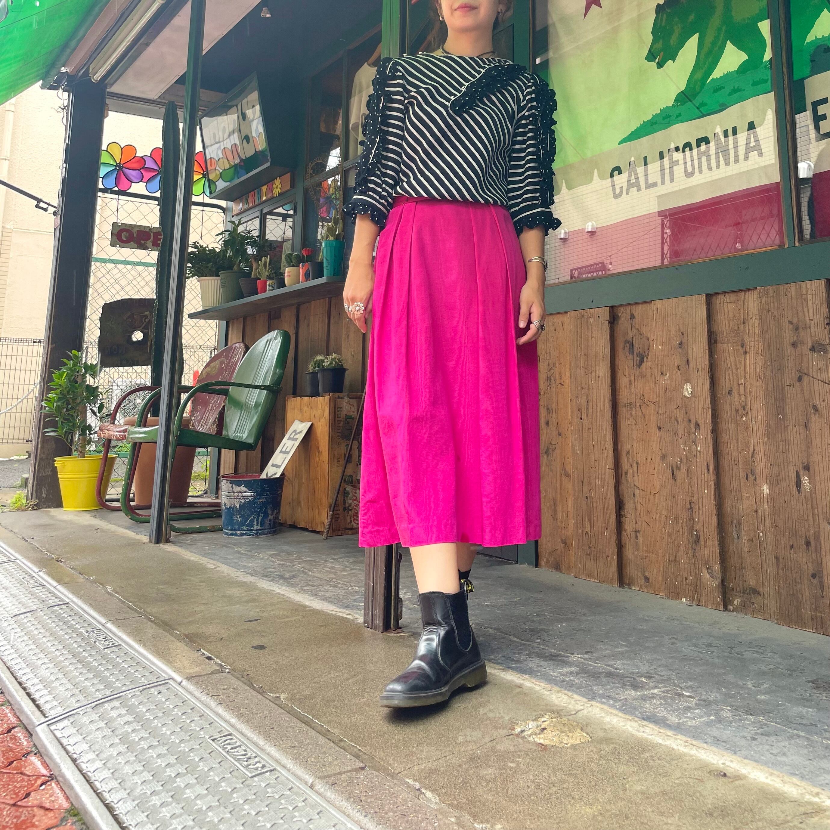 あまり広がらずなシルエットで、品のある印象ですのでコーディネート次第ではパーティーシーンにも使えそうですし、Tシャツにスニーカーでカジュアルに合わせてもかわいいと思います。