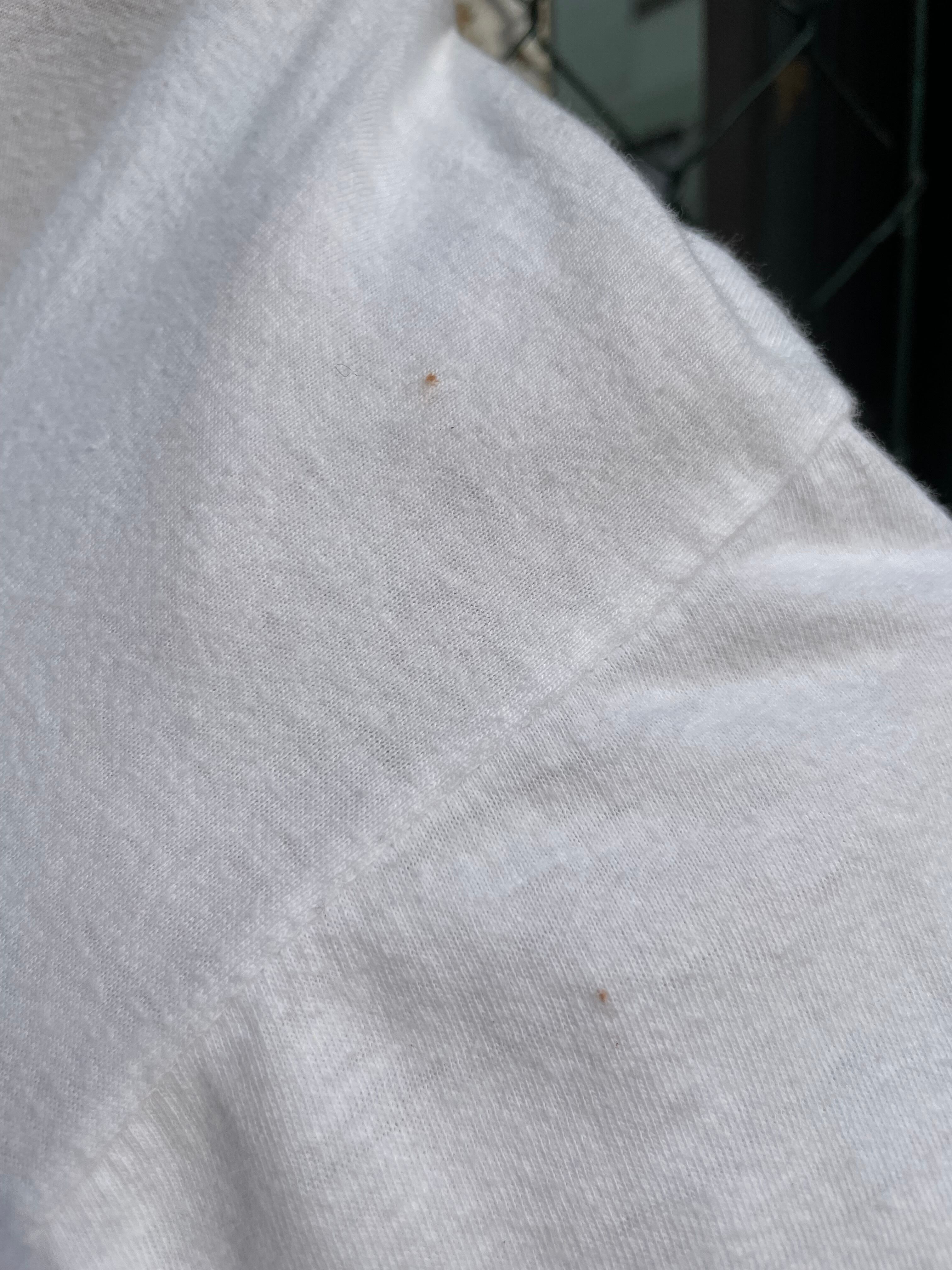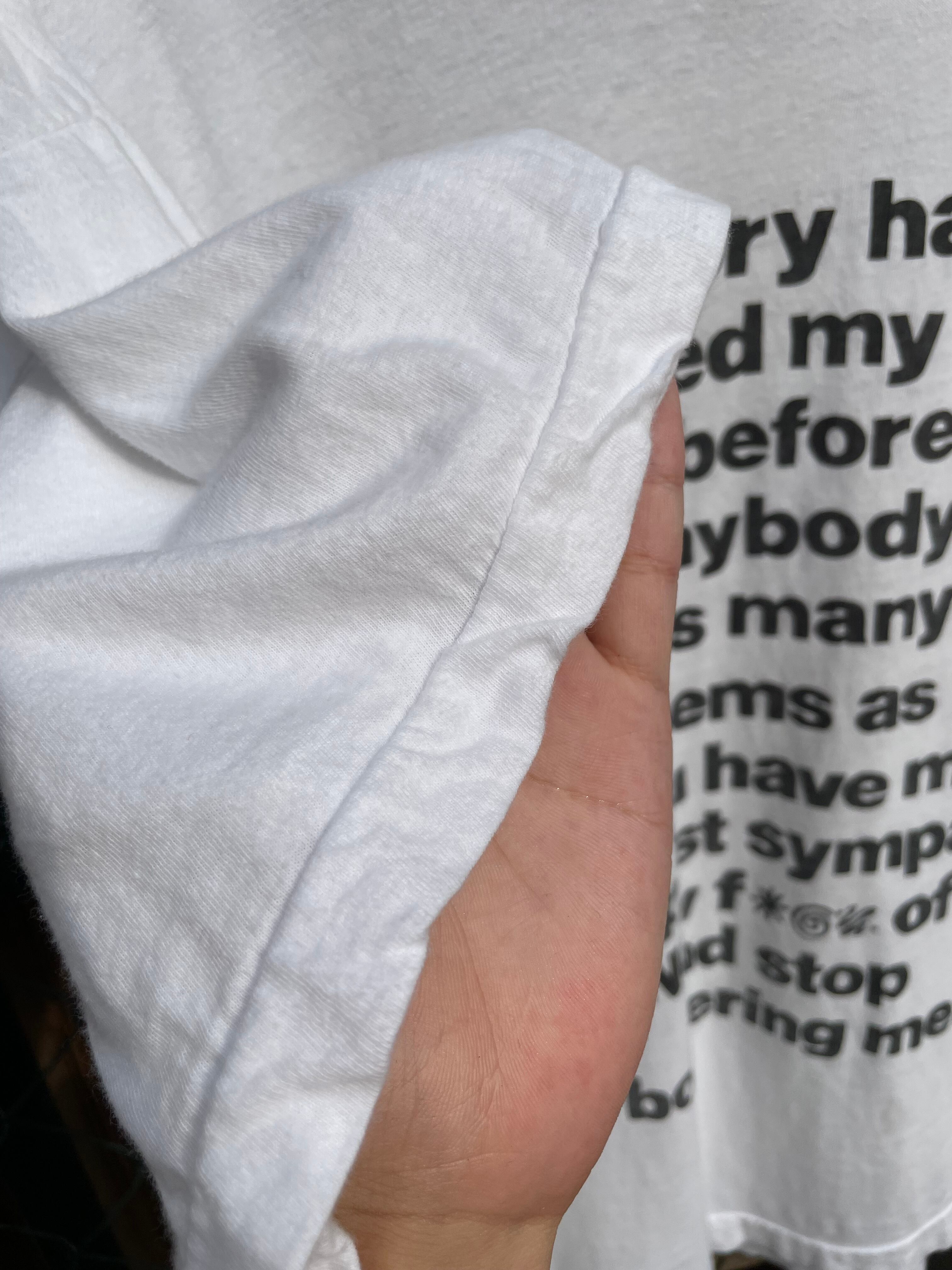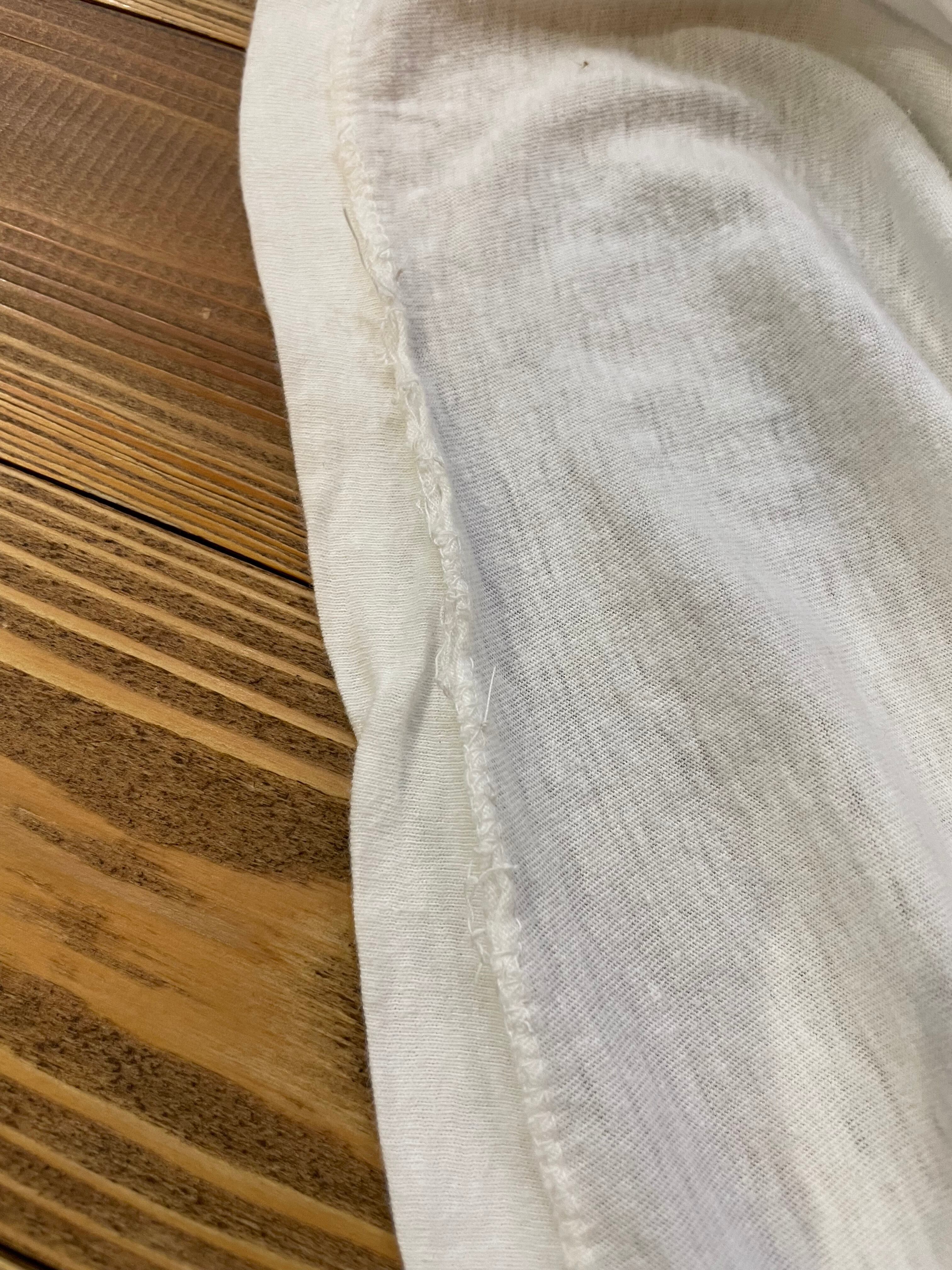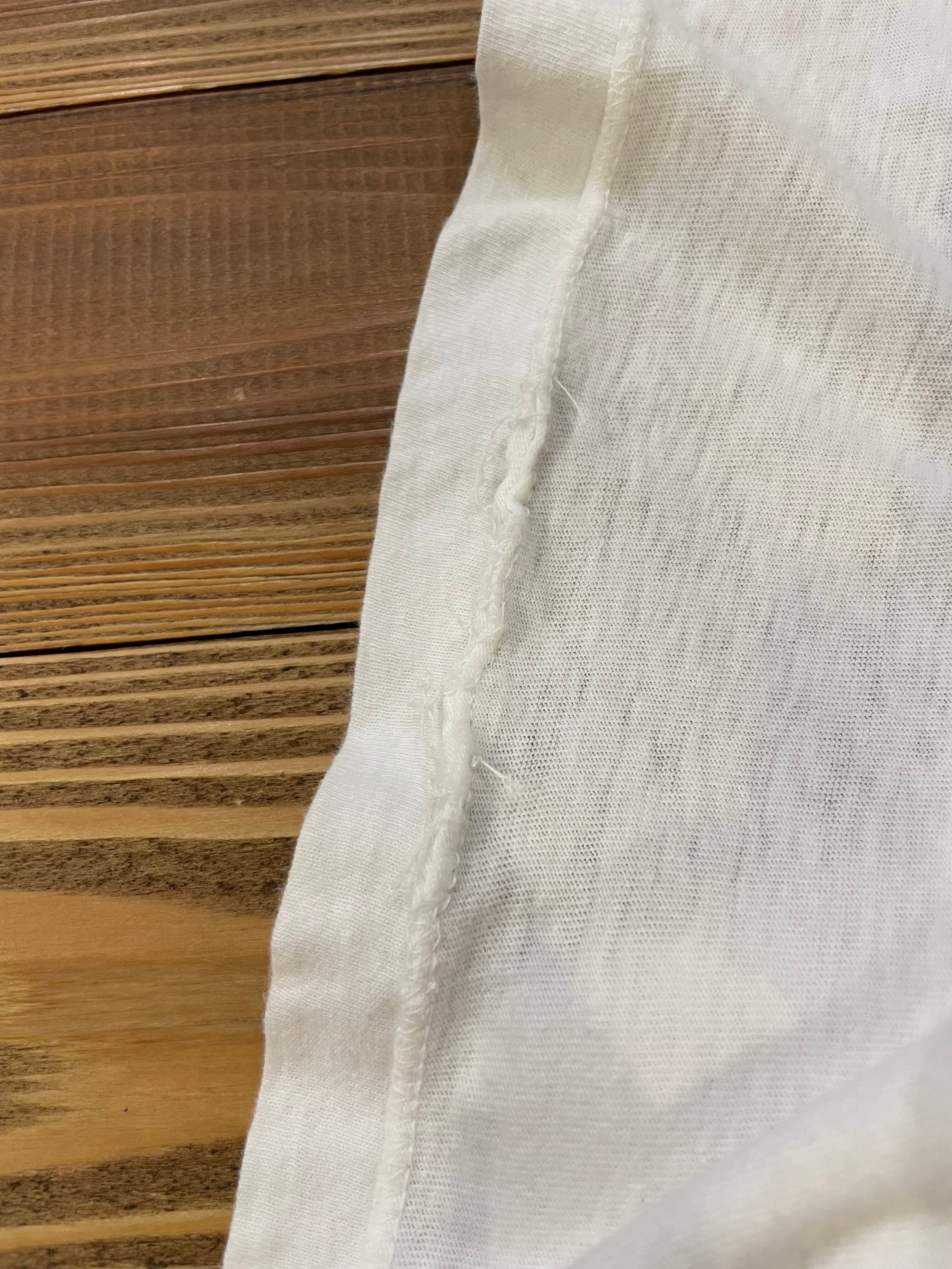 身幅が広く、着丈は身幅の割に短めなボックスシルエットが良い感じの一枚です。太いパンツでもロングスカートでも、ショートパンツでもバランスが取りやすいかと思います。