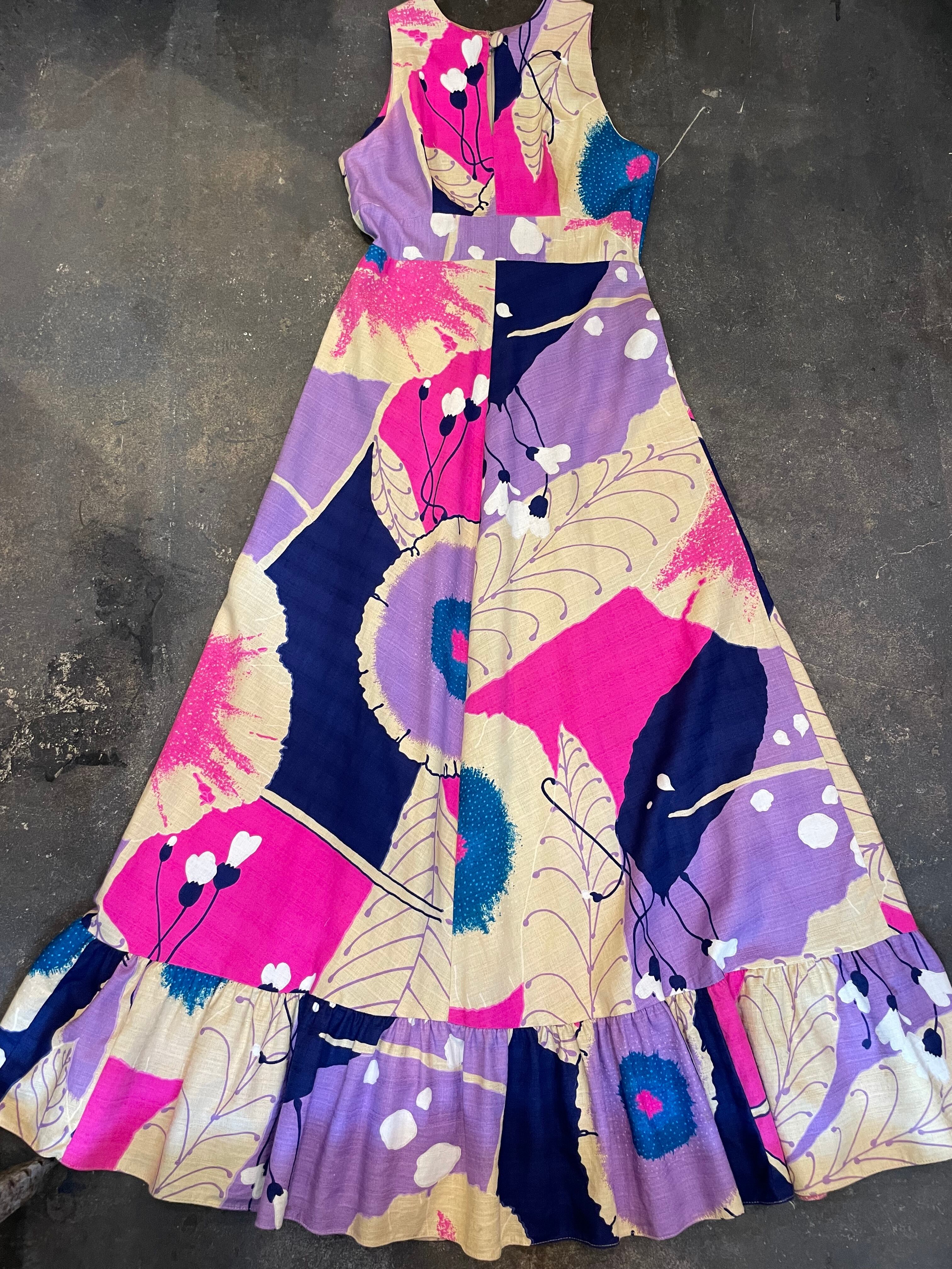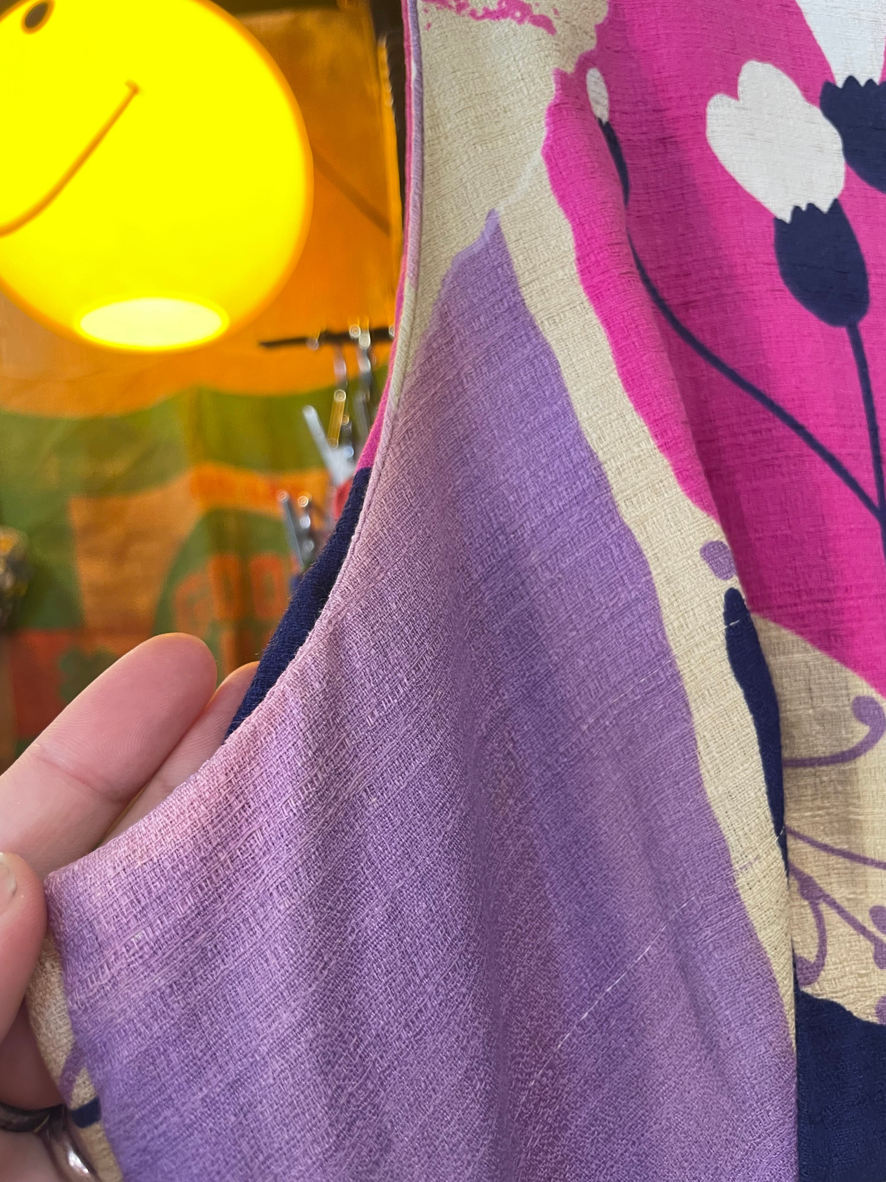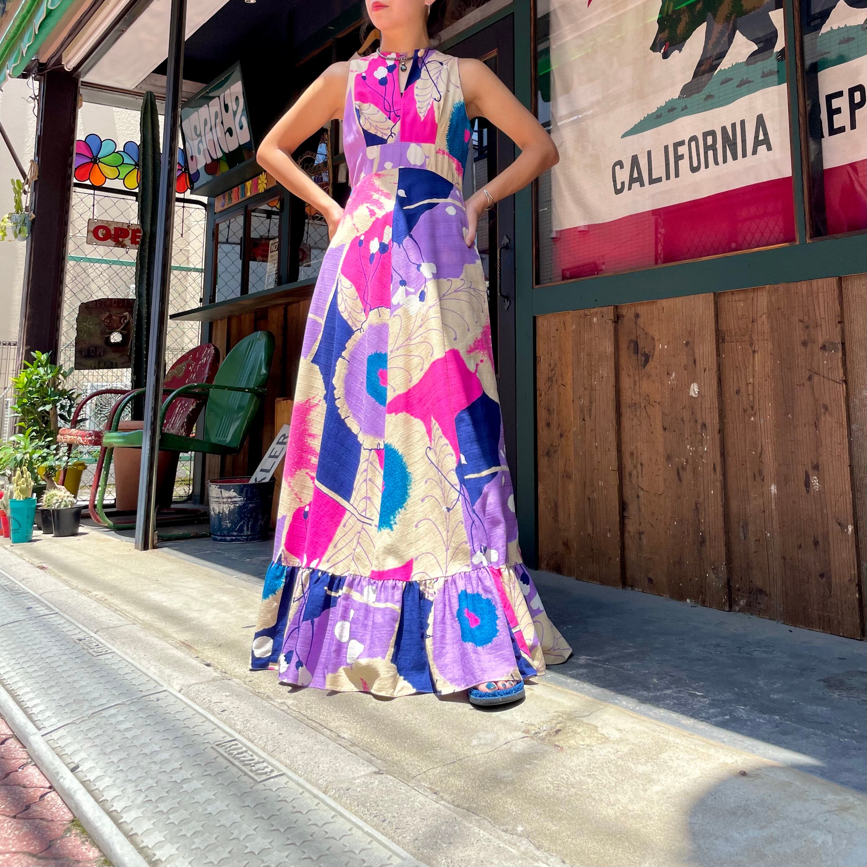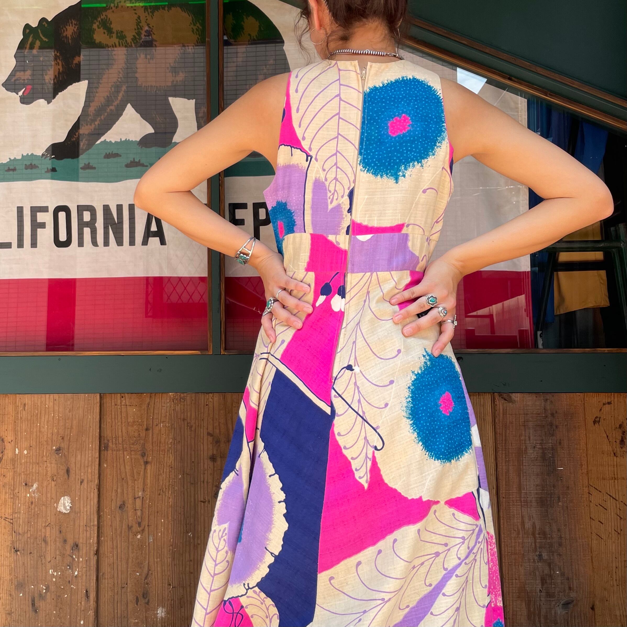浴衣にもありそうな色味が素敵な70年代頃のハワイアンドレスです。