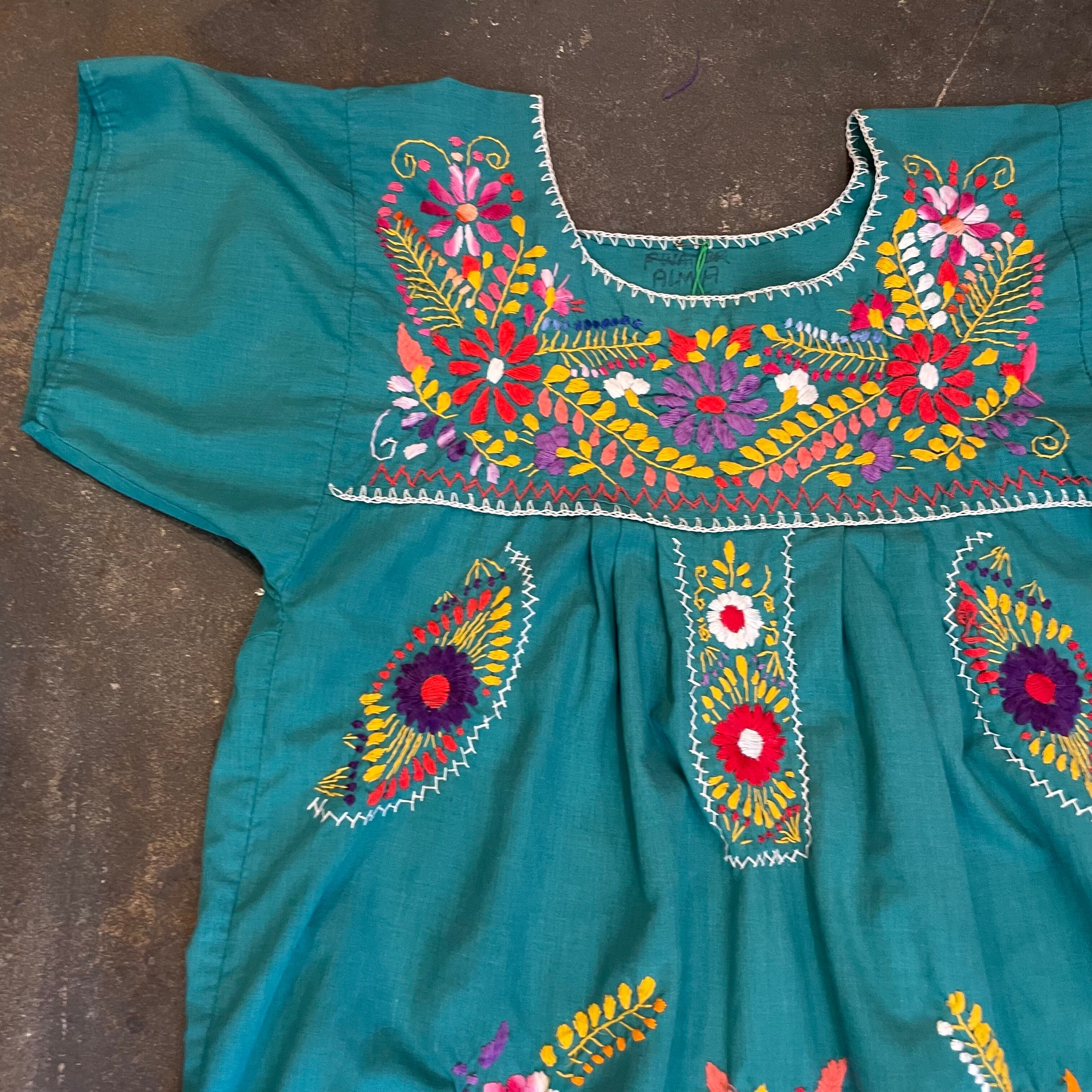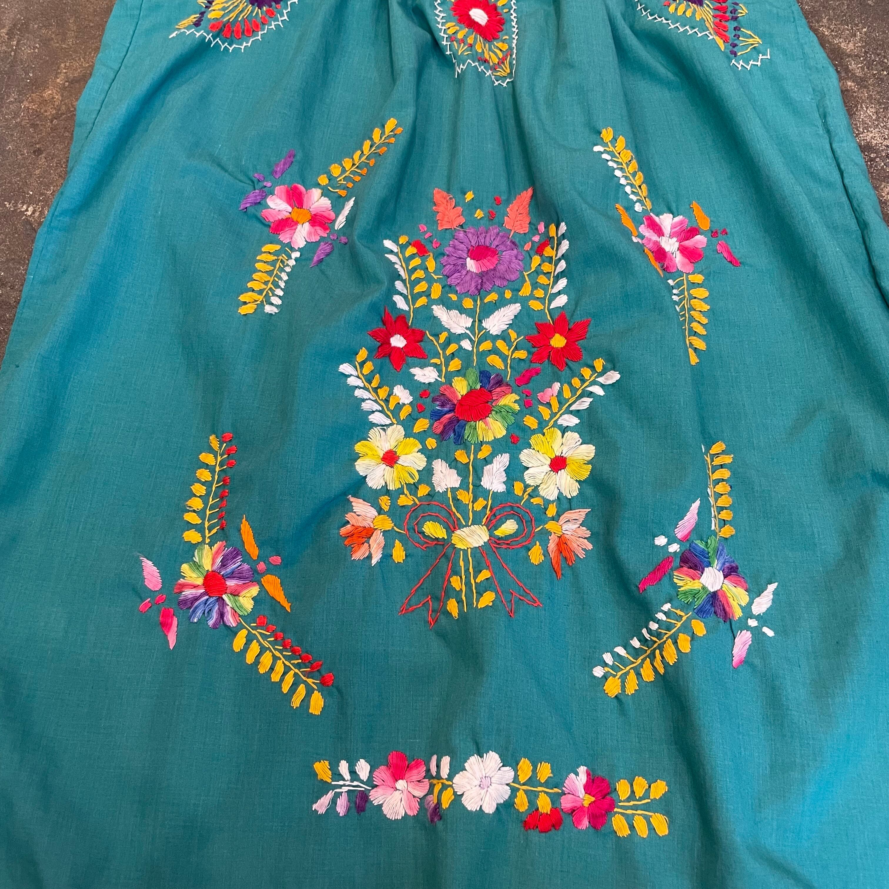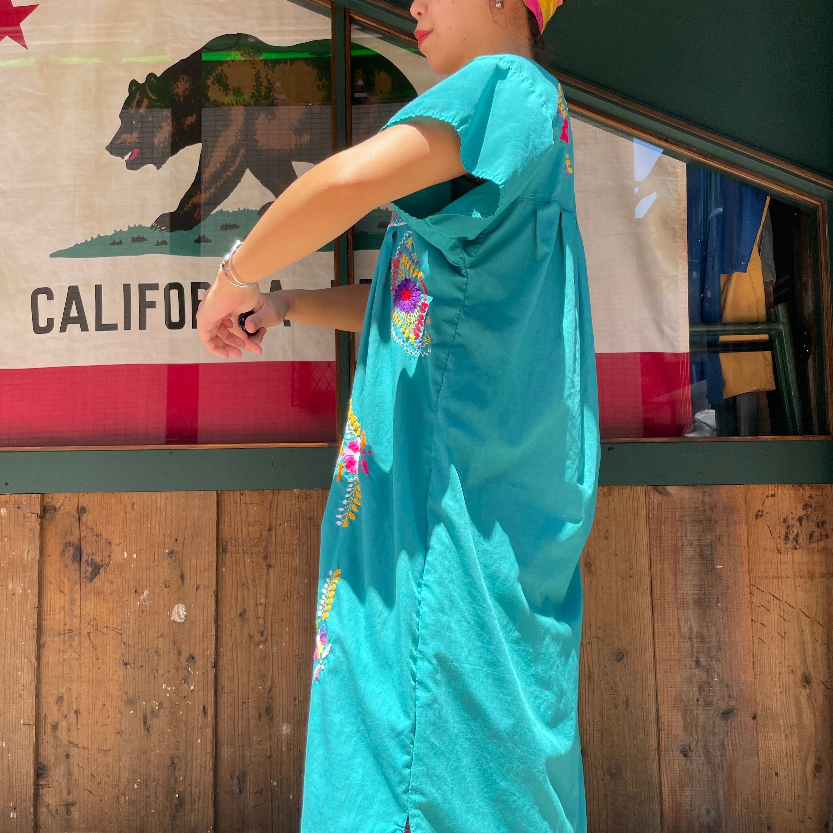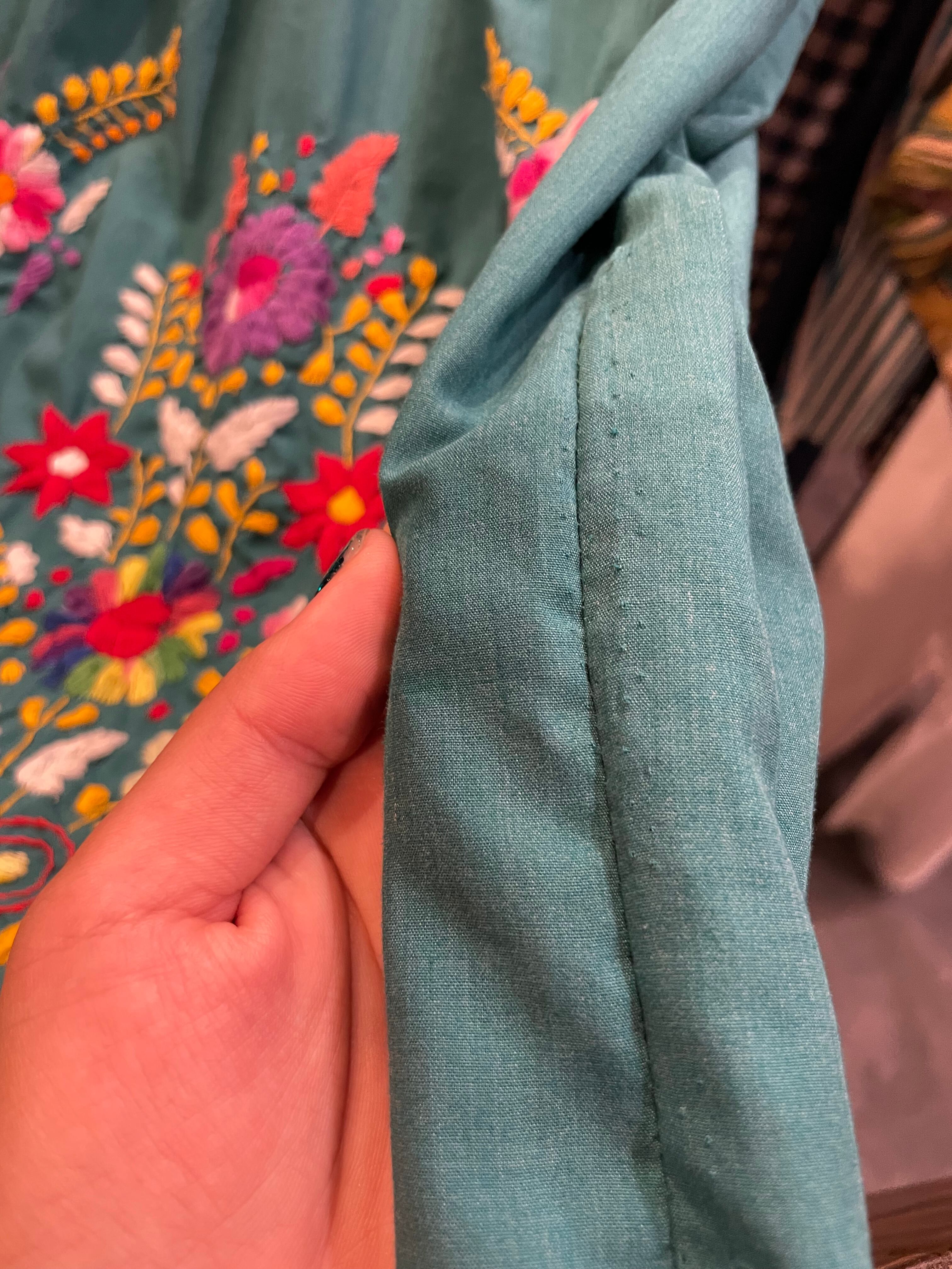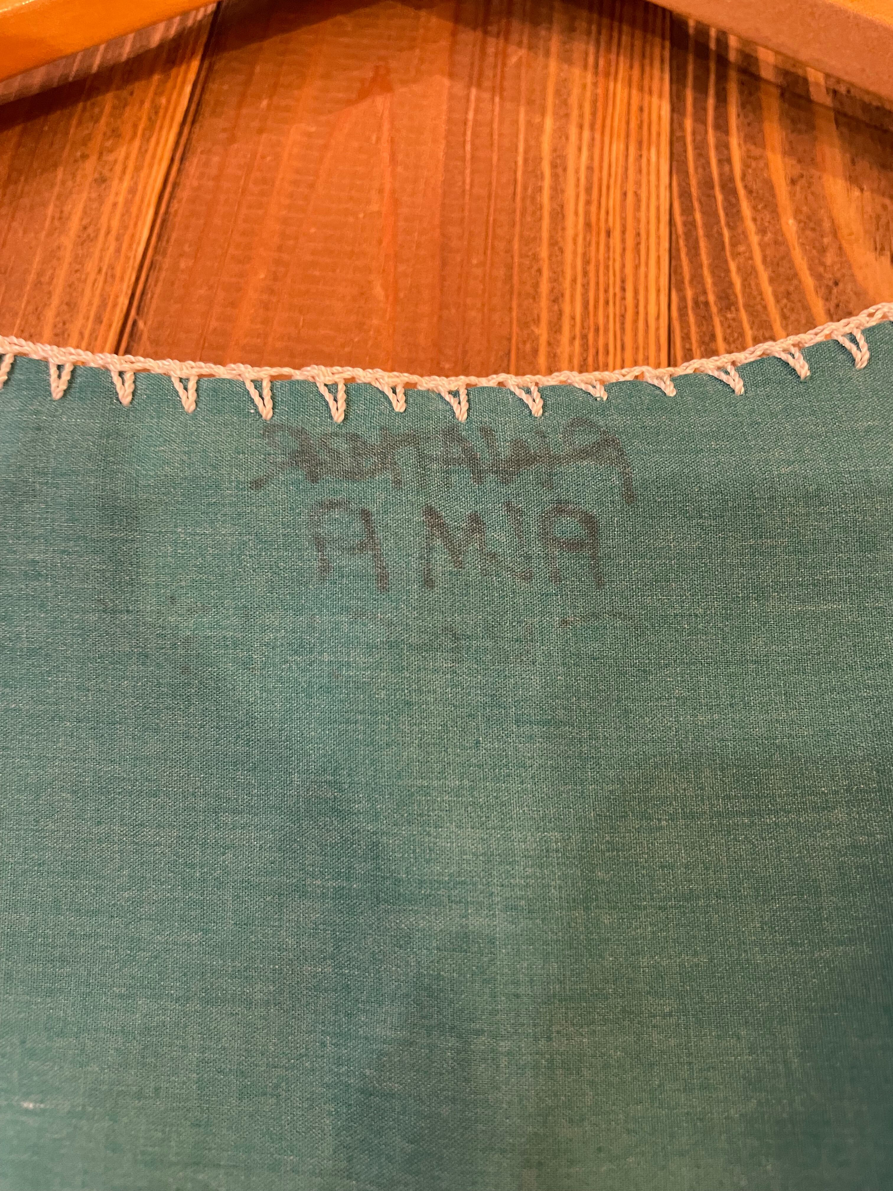 エメラルドグリーンっぽい絶妙な色味も爽やかで素敵ですし、ハッピーな刺繍も気分の上がる一枚です。