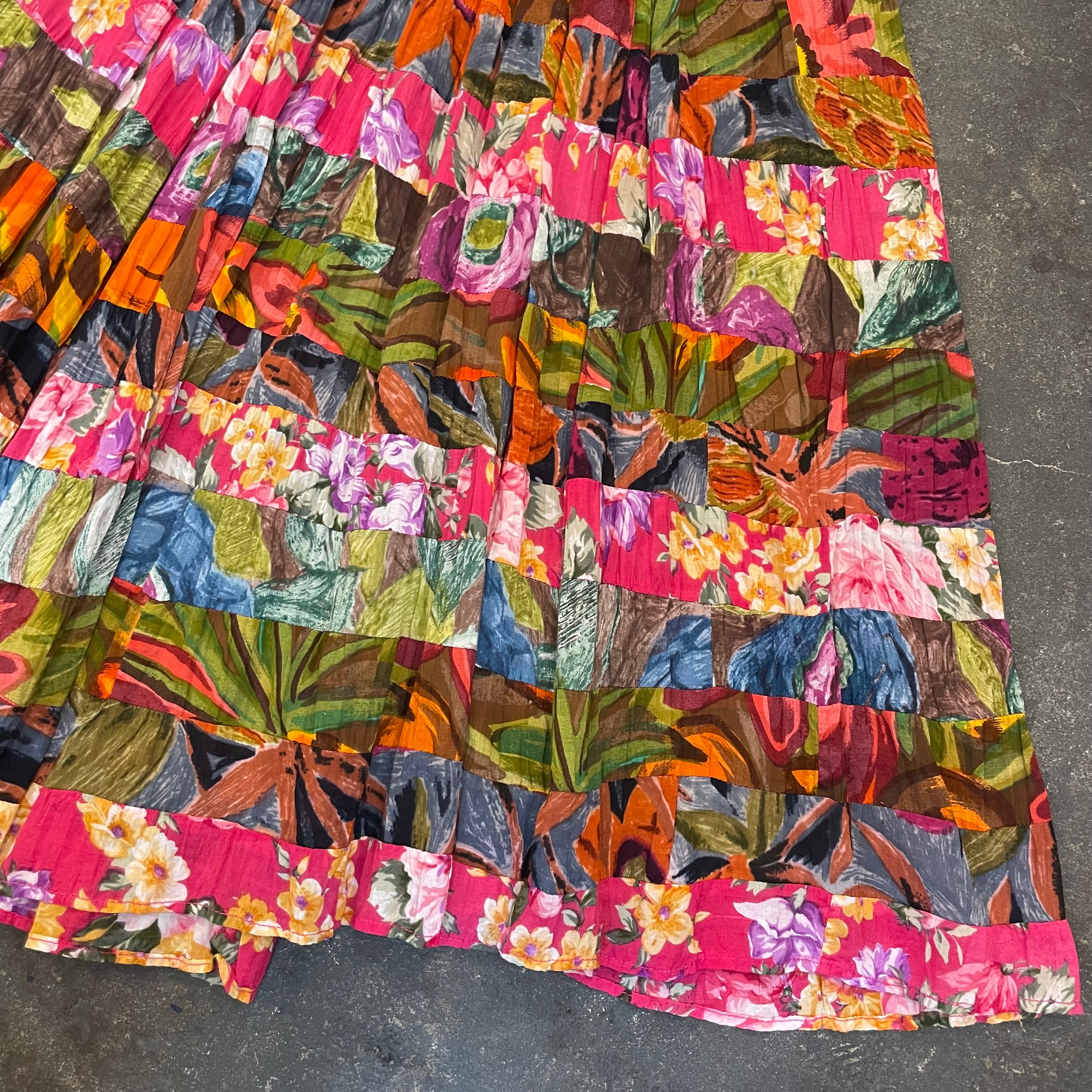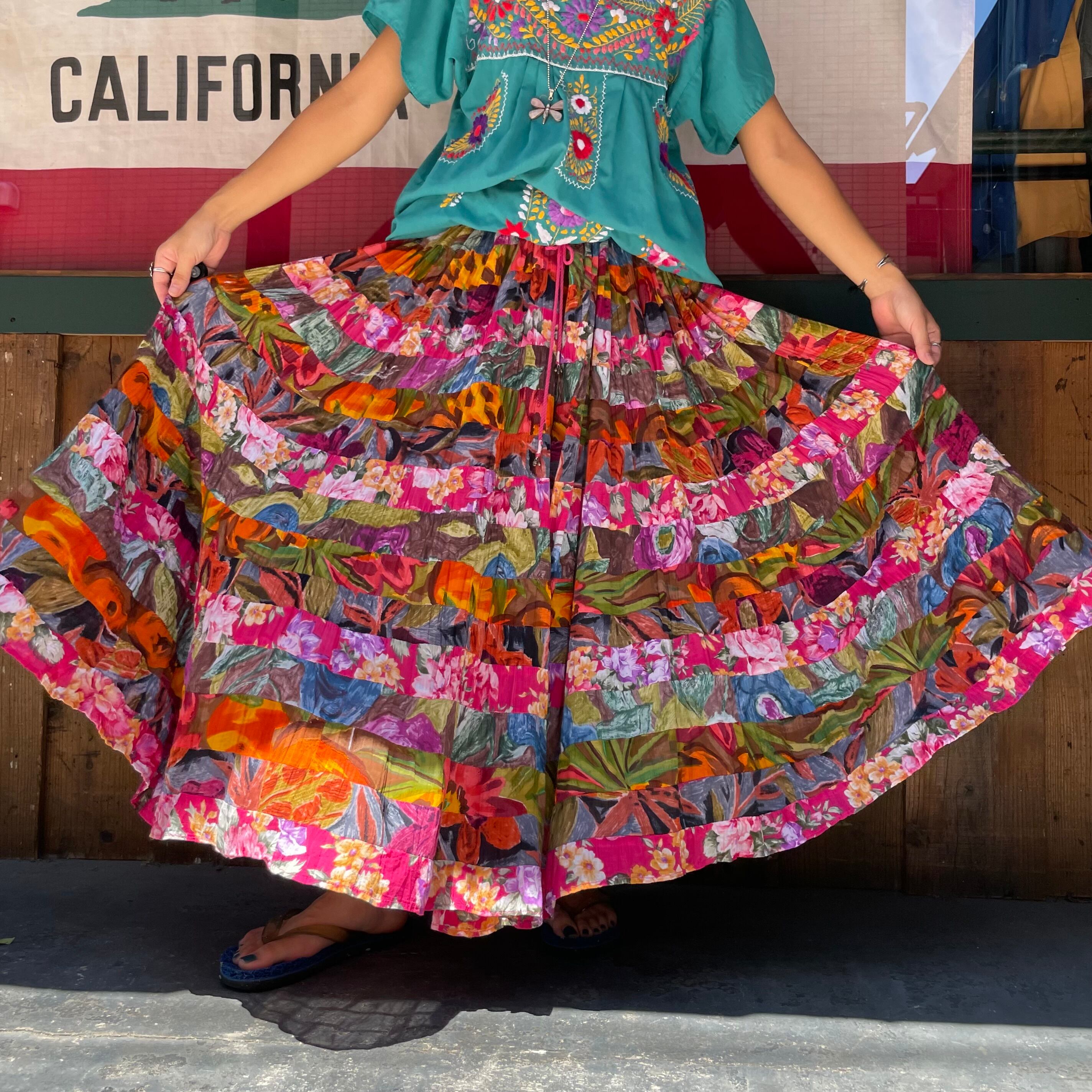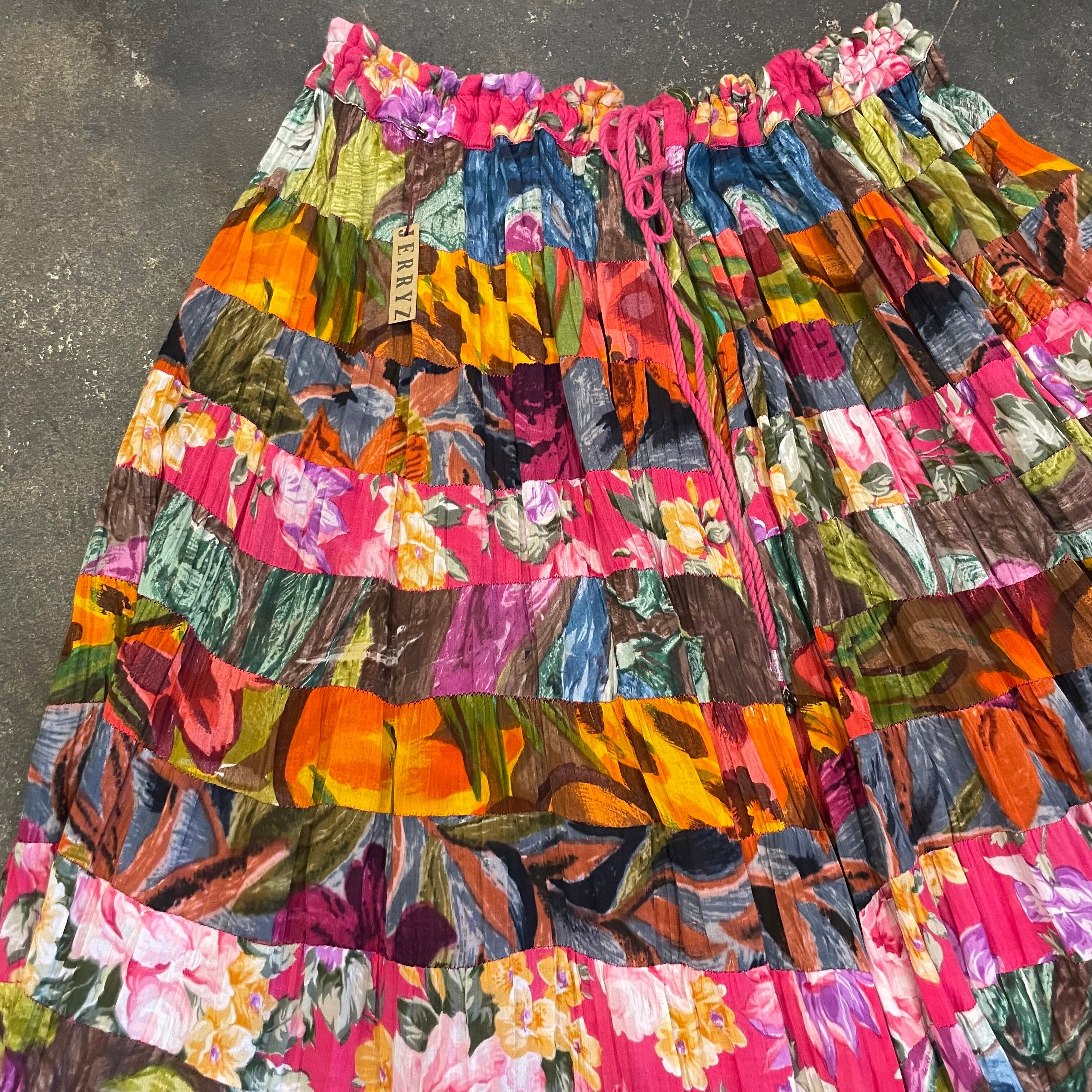 ピンクベースのいろんな生地の細かな切り替えがとてもかわいいスカートです。
