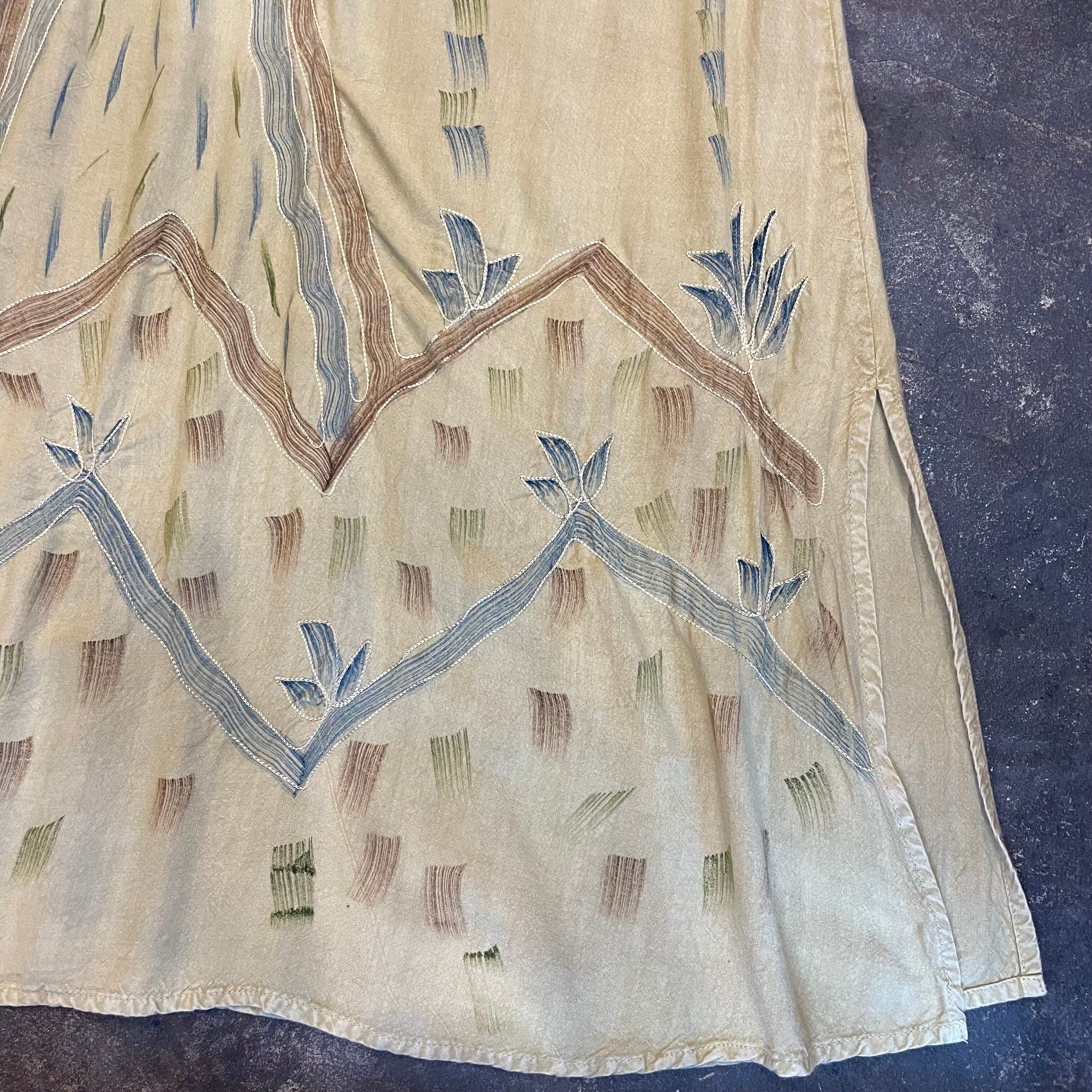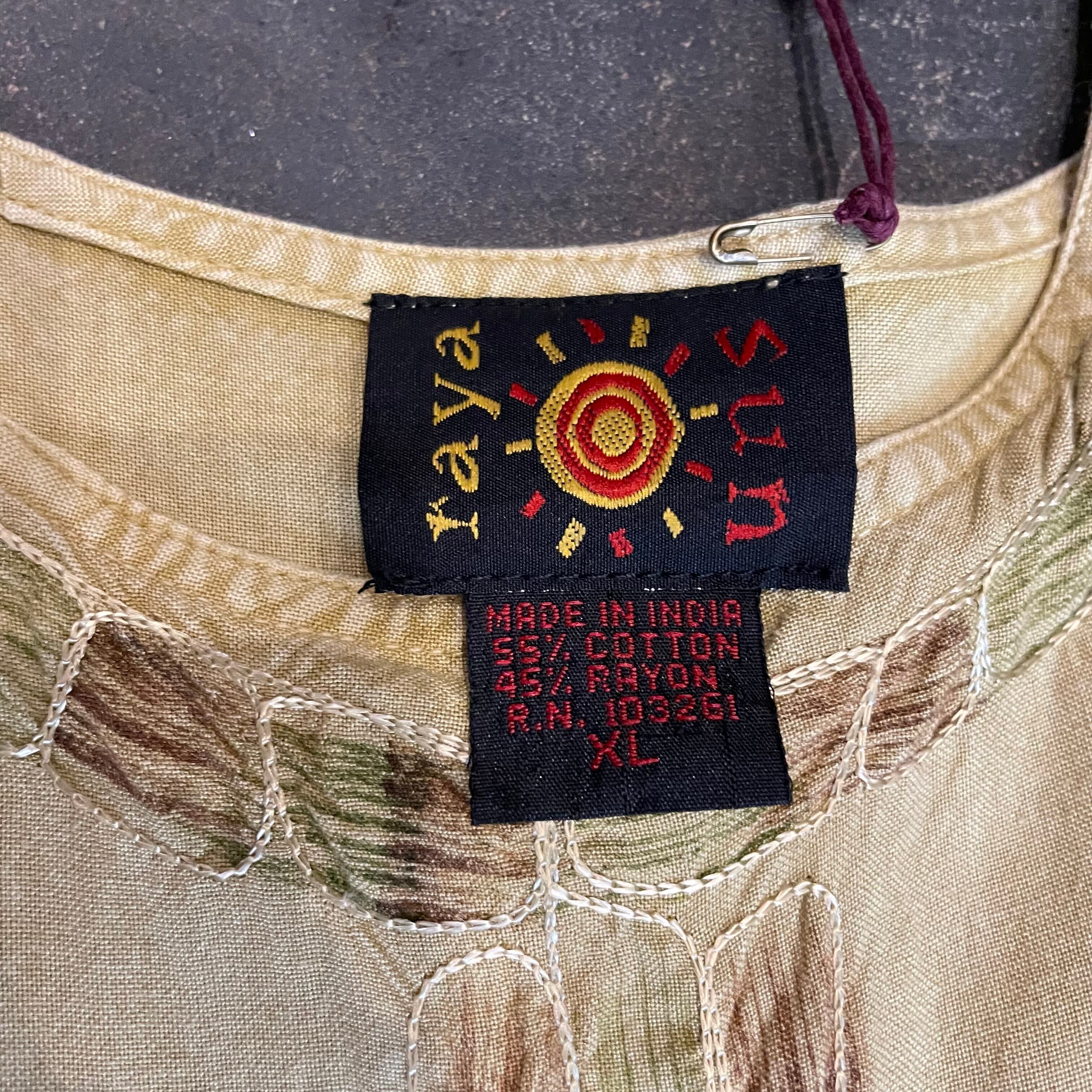 ハンドペイントのような模様を機械刺繍で縁取りしてあり、立体的な感じに見えて派手すぎないですがインパクトがあってとてもかわいい一枚です。