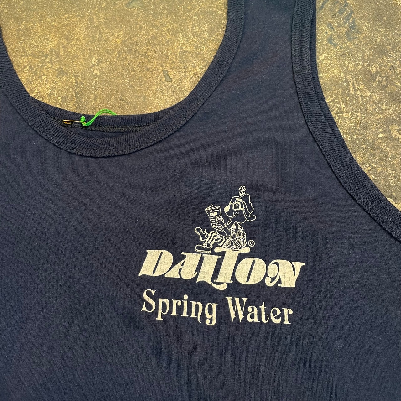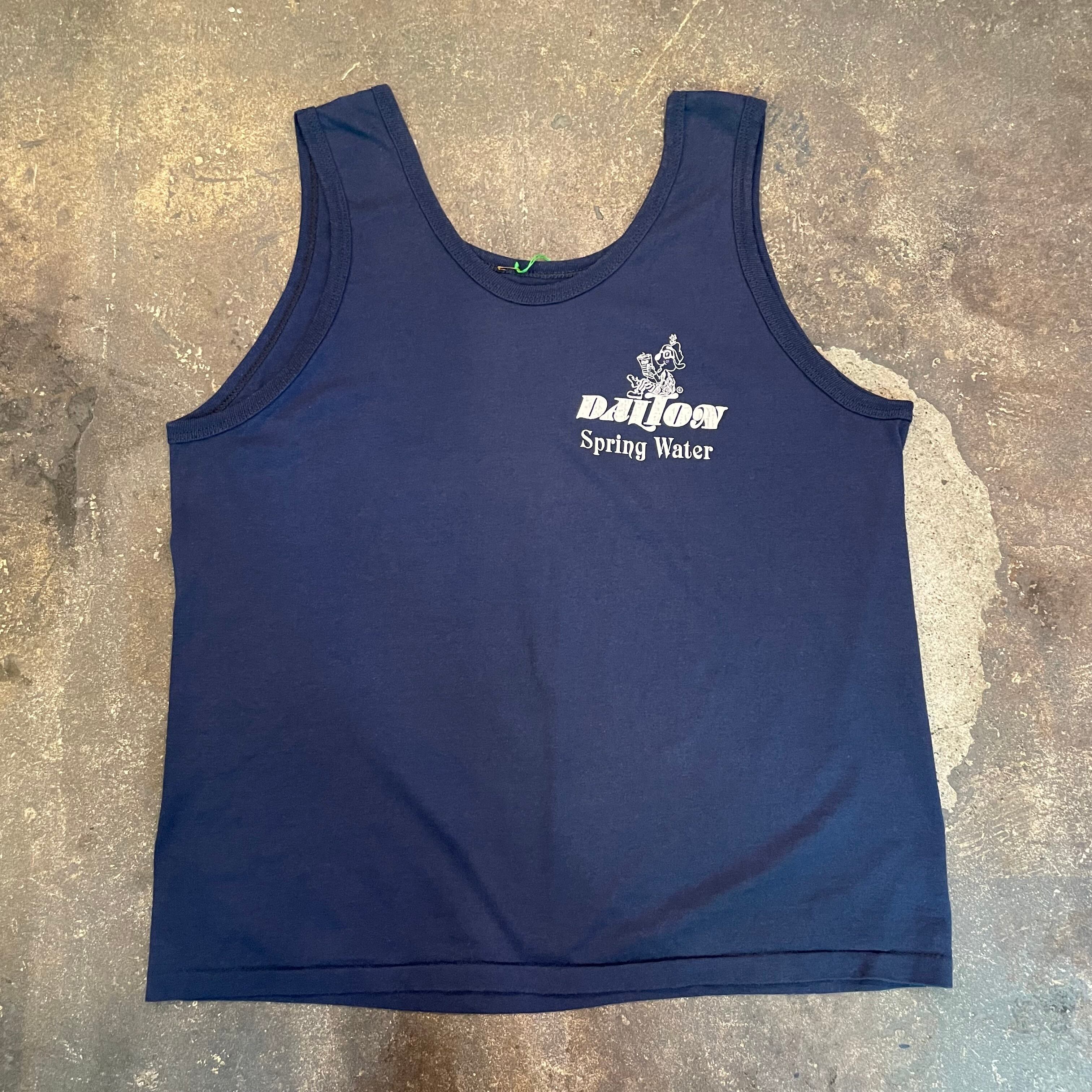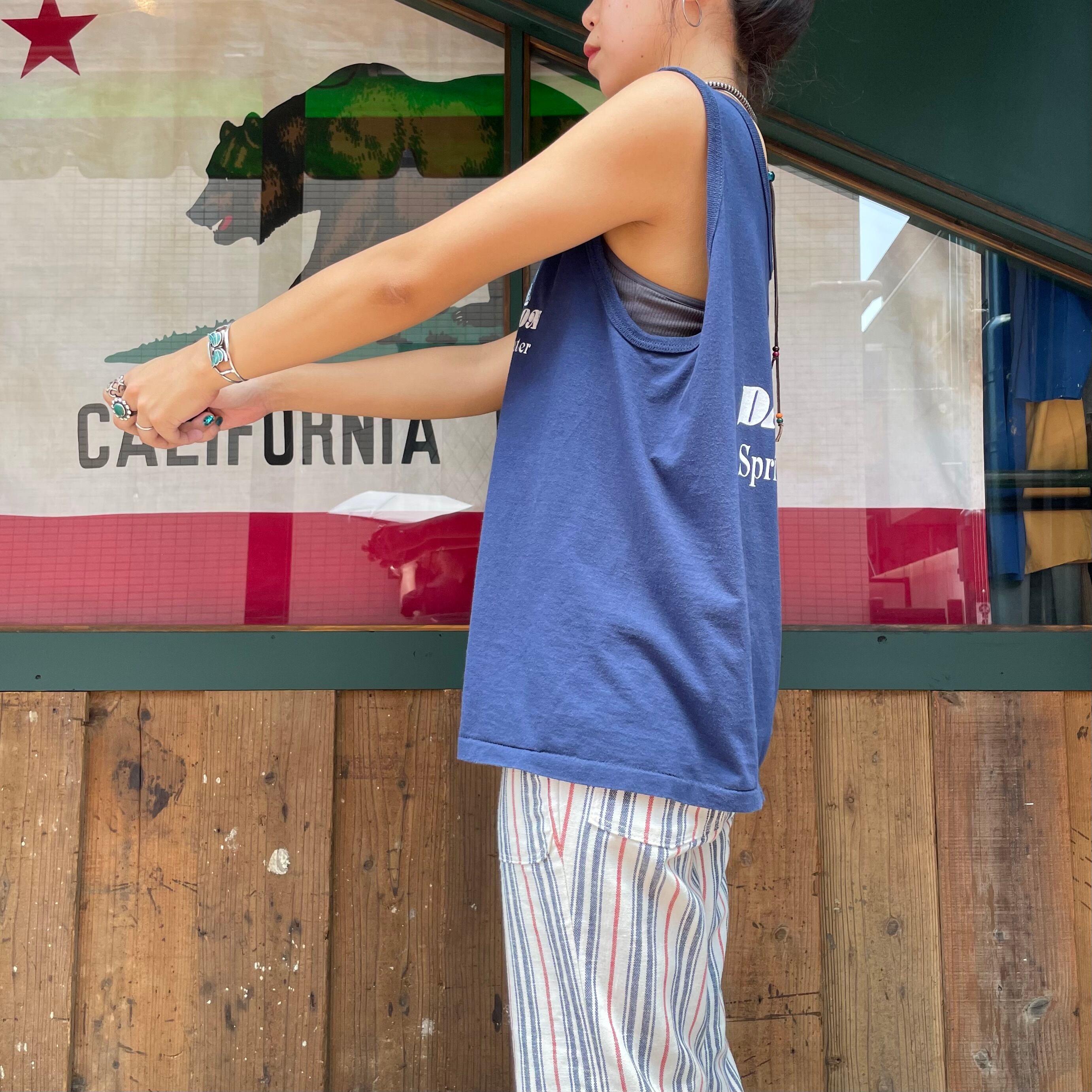 ネイビーボディに、おそらく企業系のロゴがかわいいタンクトップです。