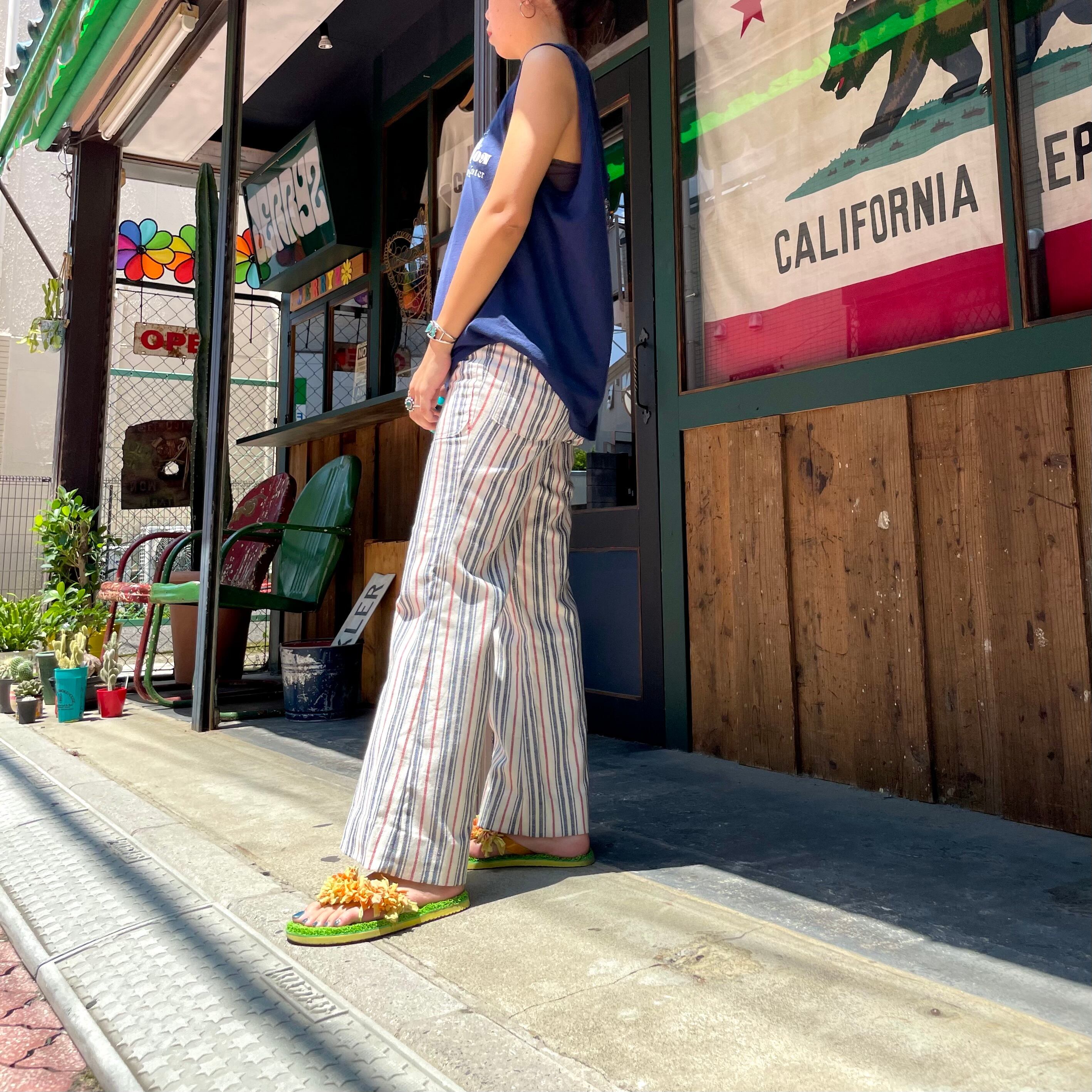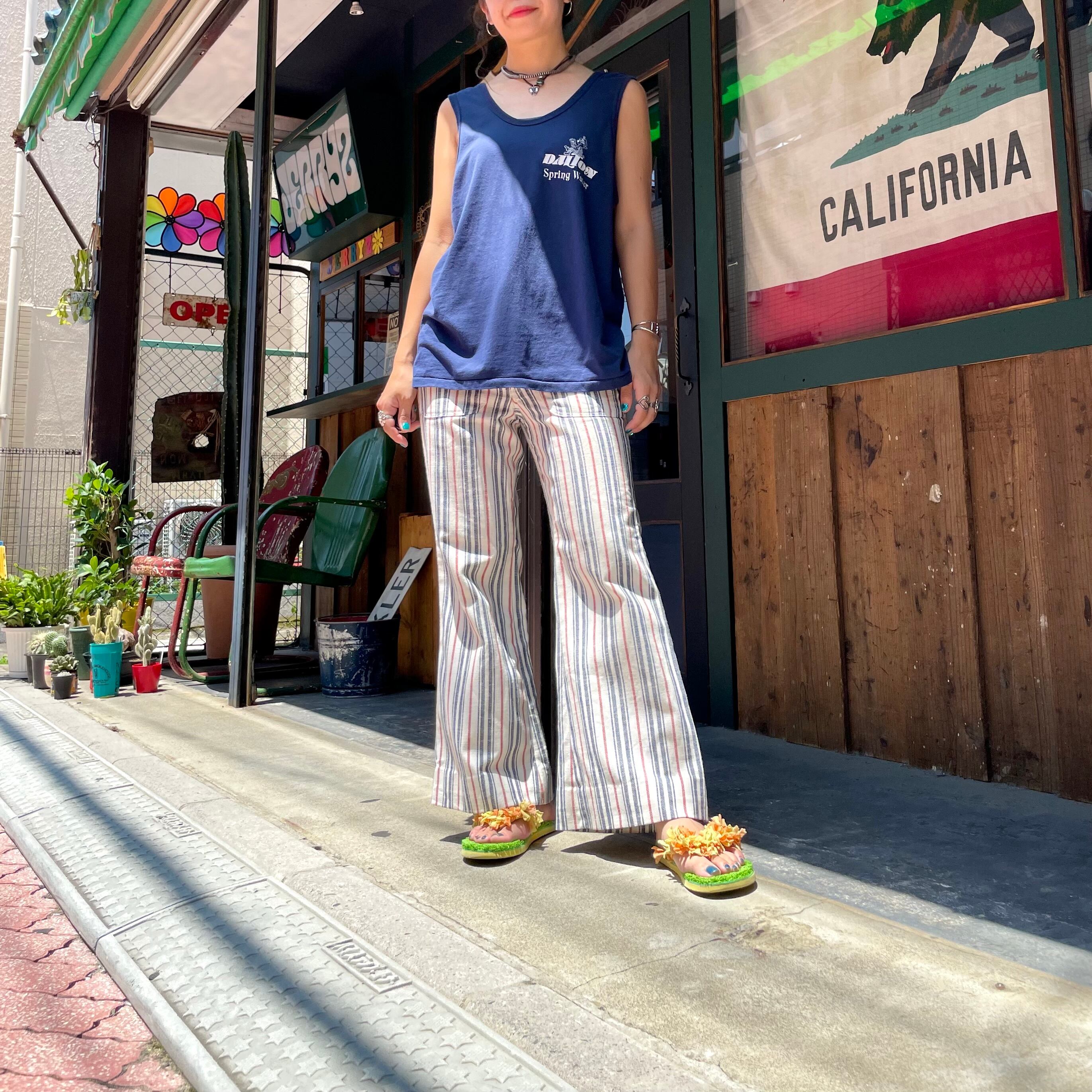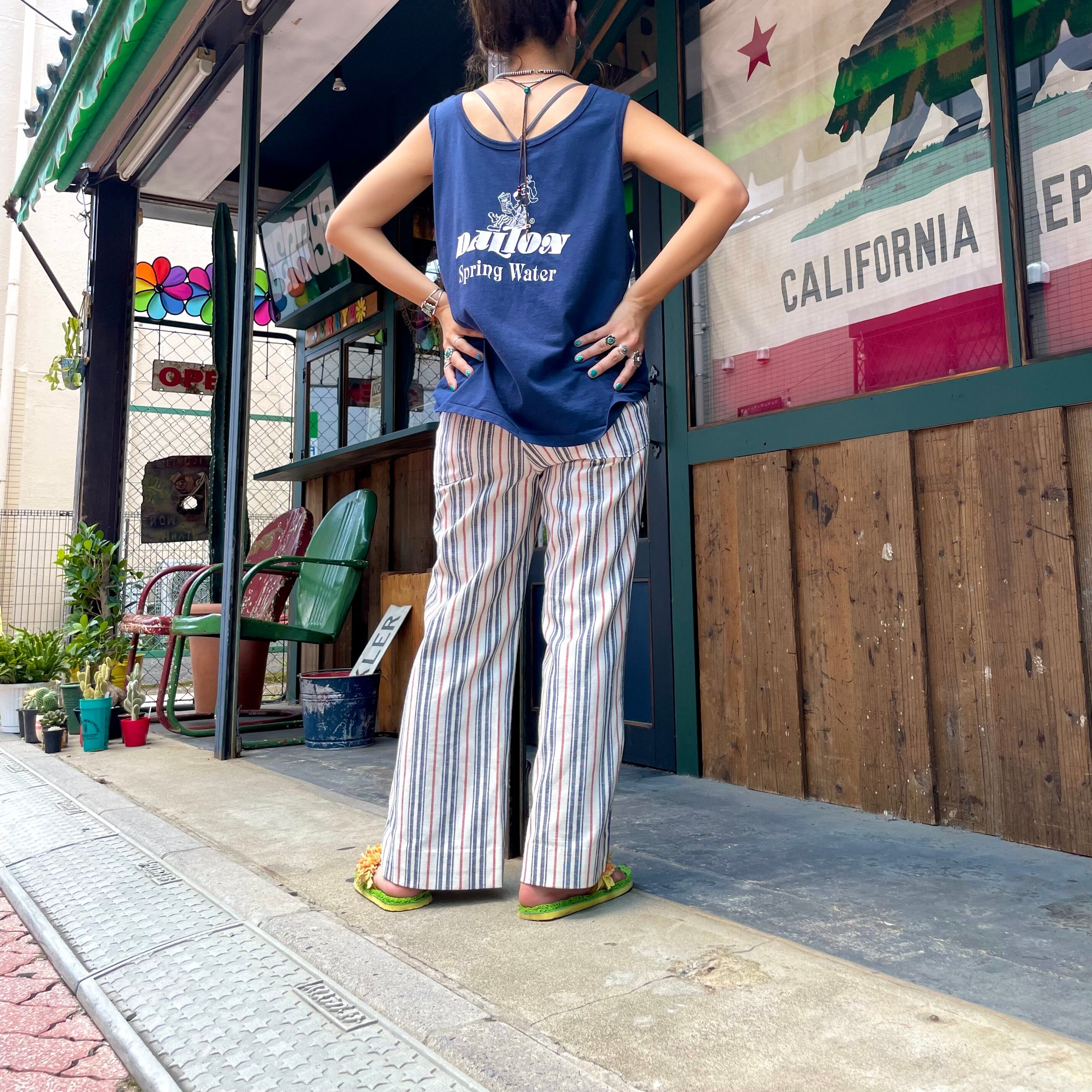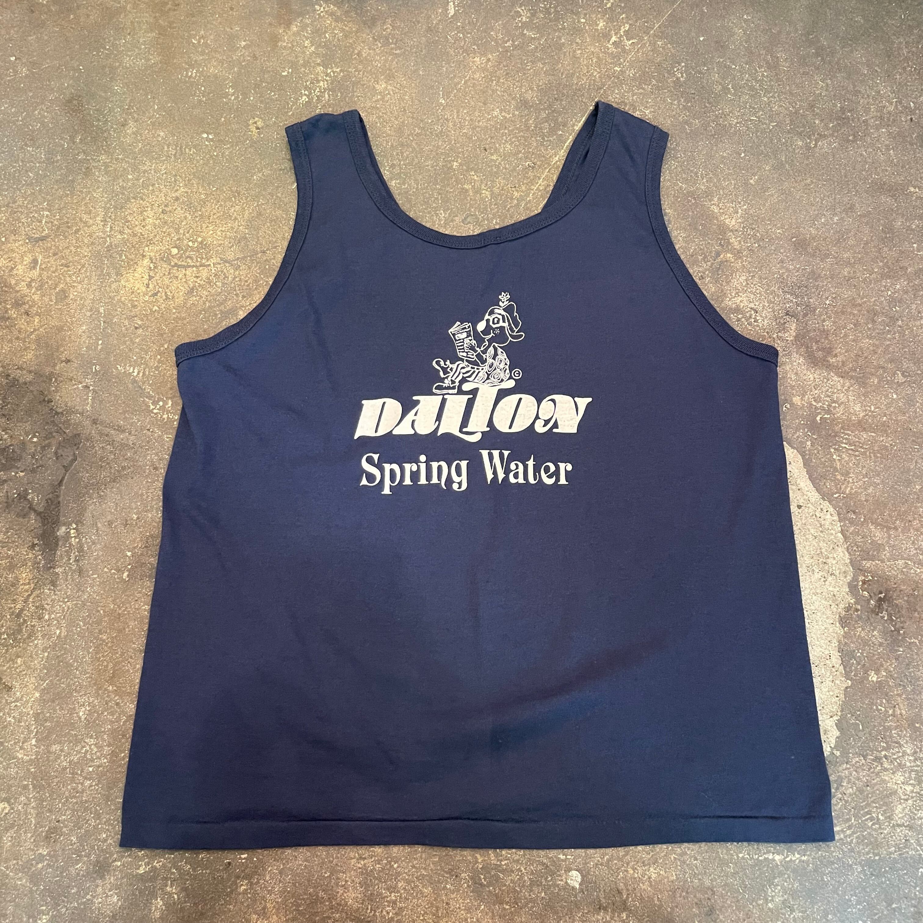 ネイビーボディに、おそらく企業系のロゴがかわいいタンクトップです。