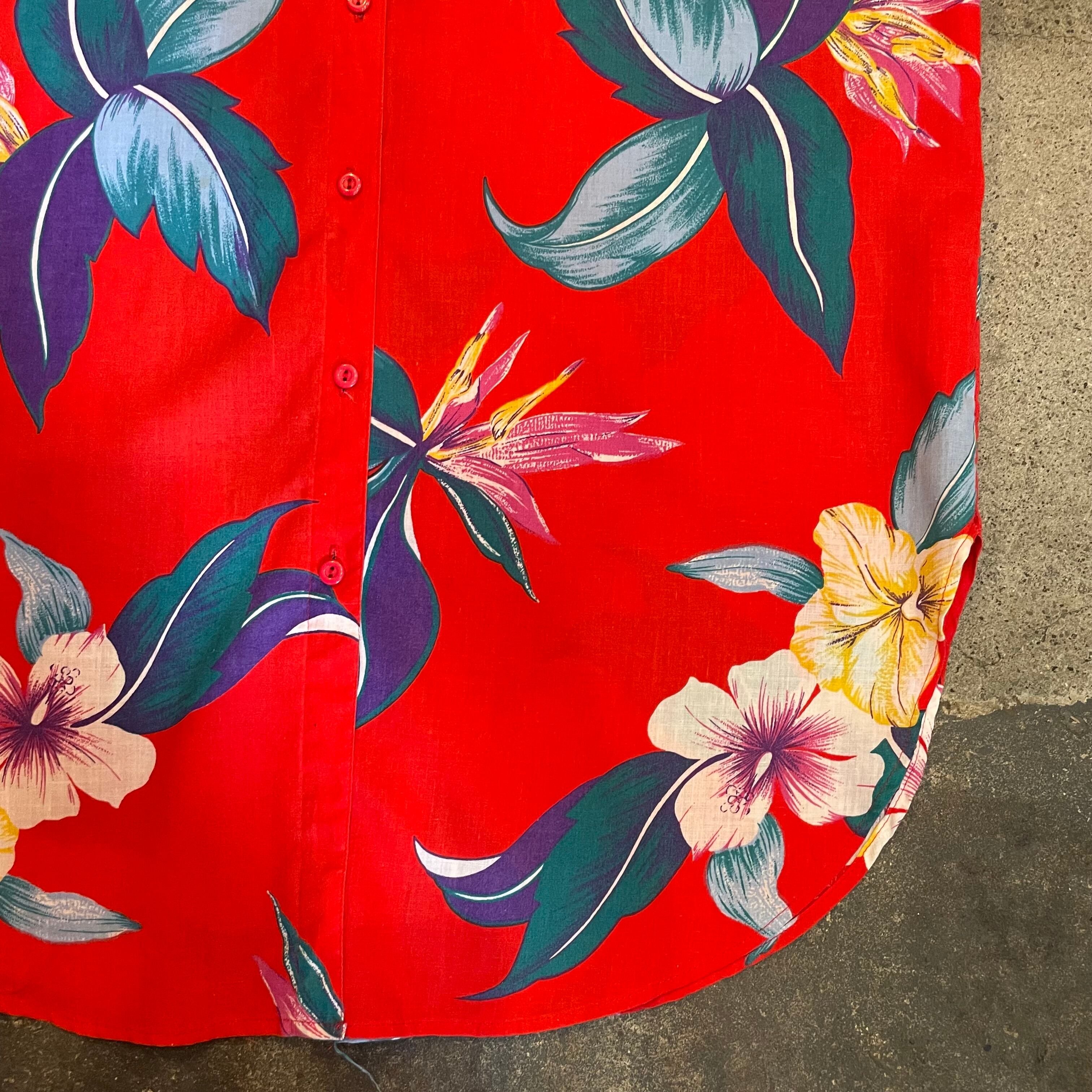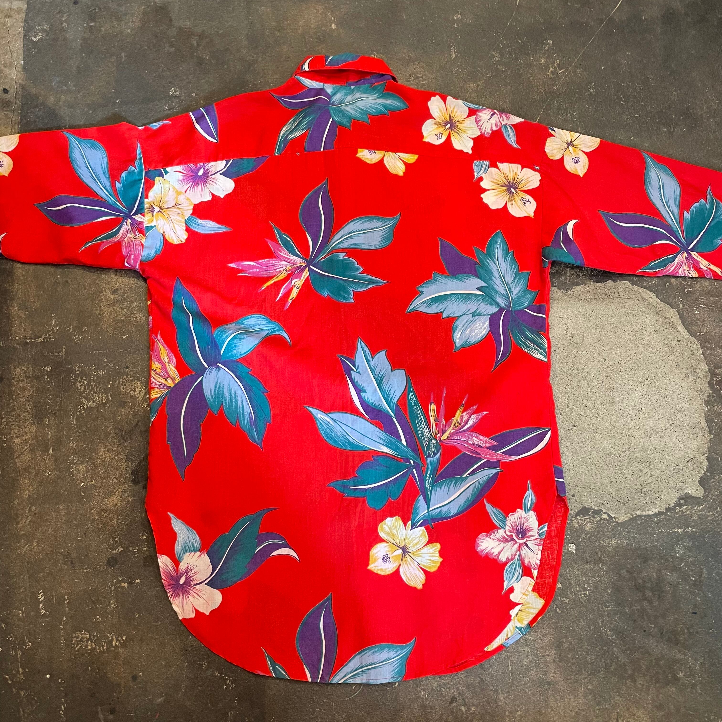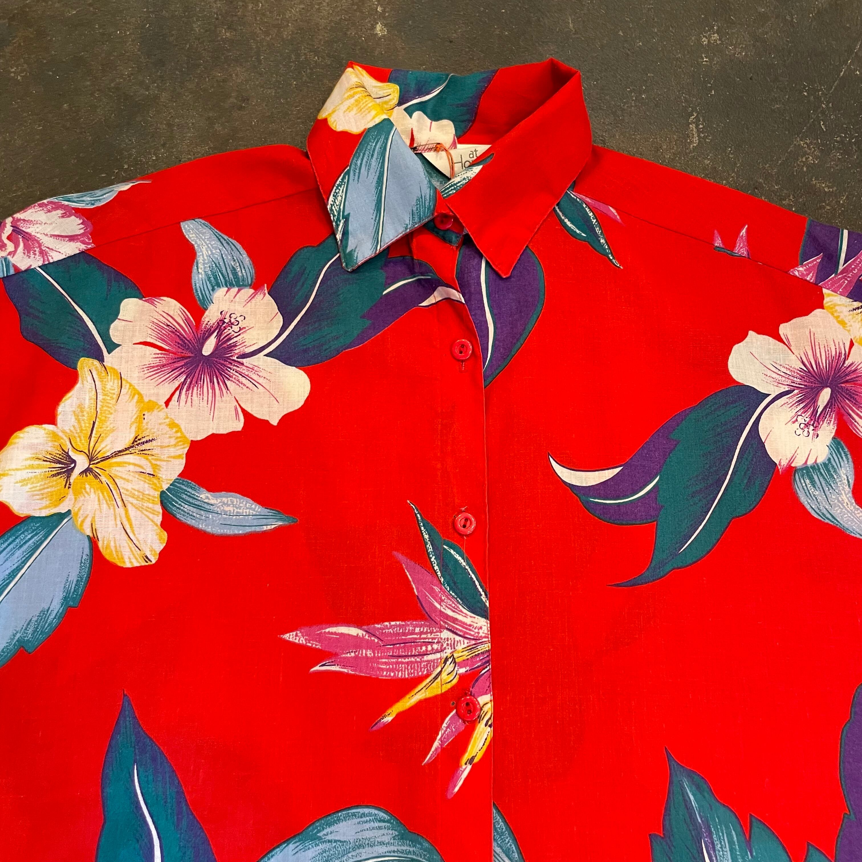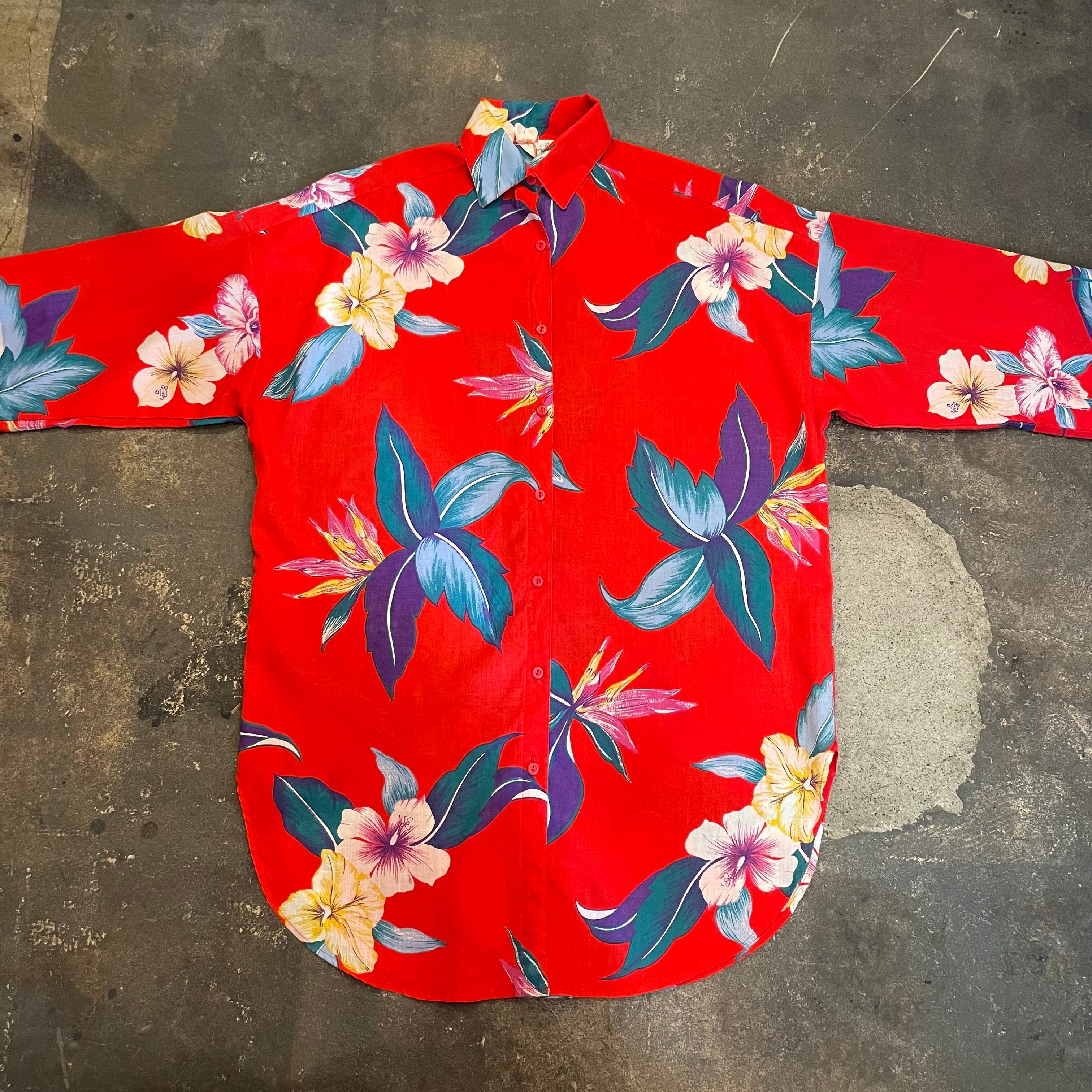 ハイビスカスや極楽鳥花のような南国感溢れる花柄が夏らしくてとてもかわいいシャツです。