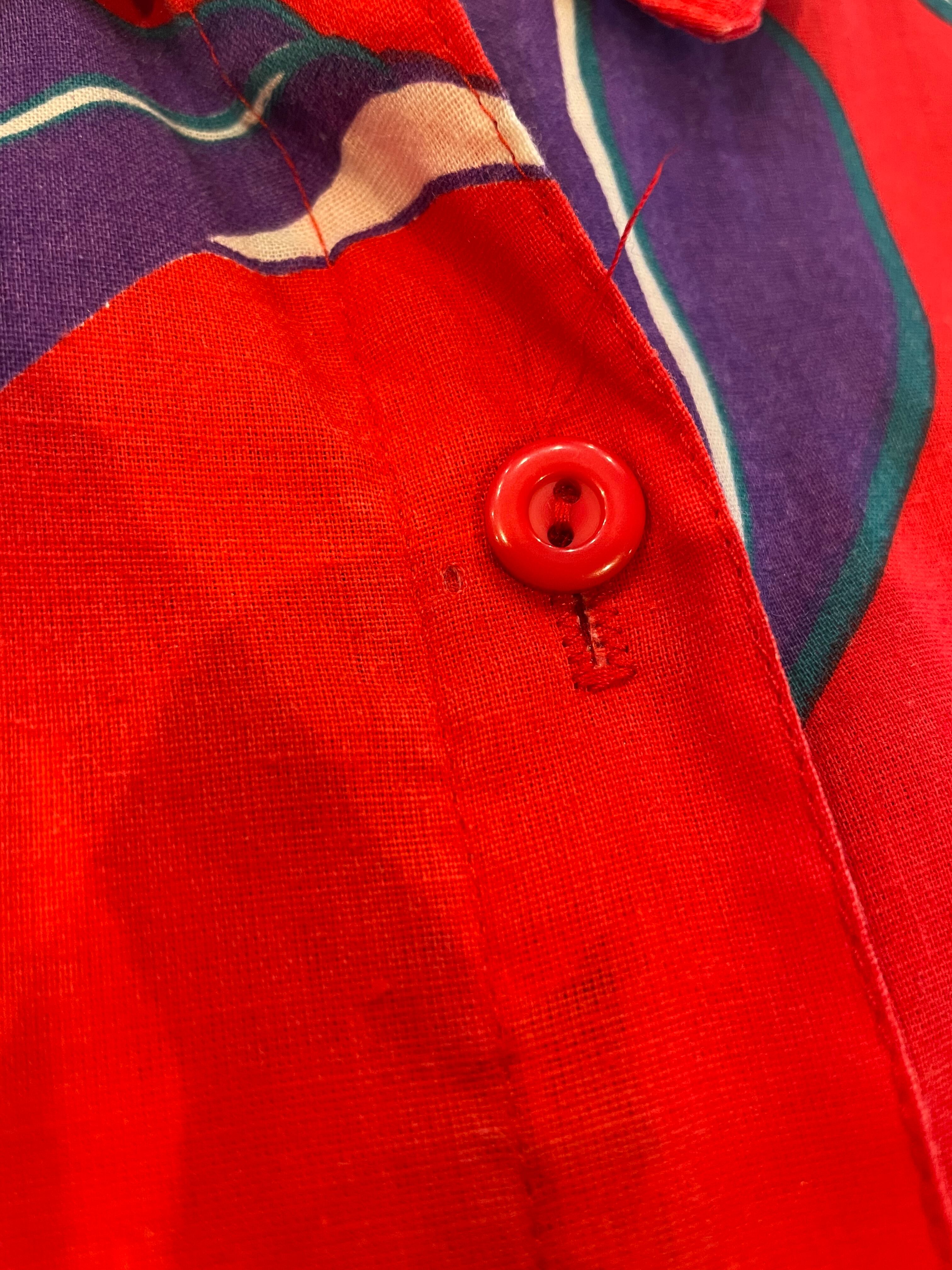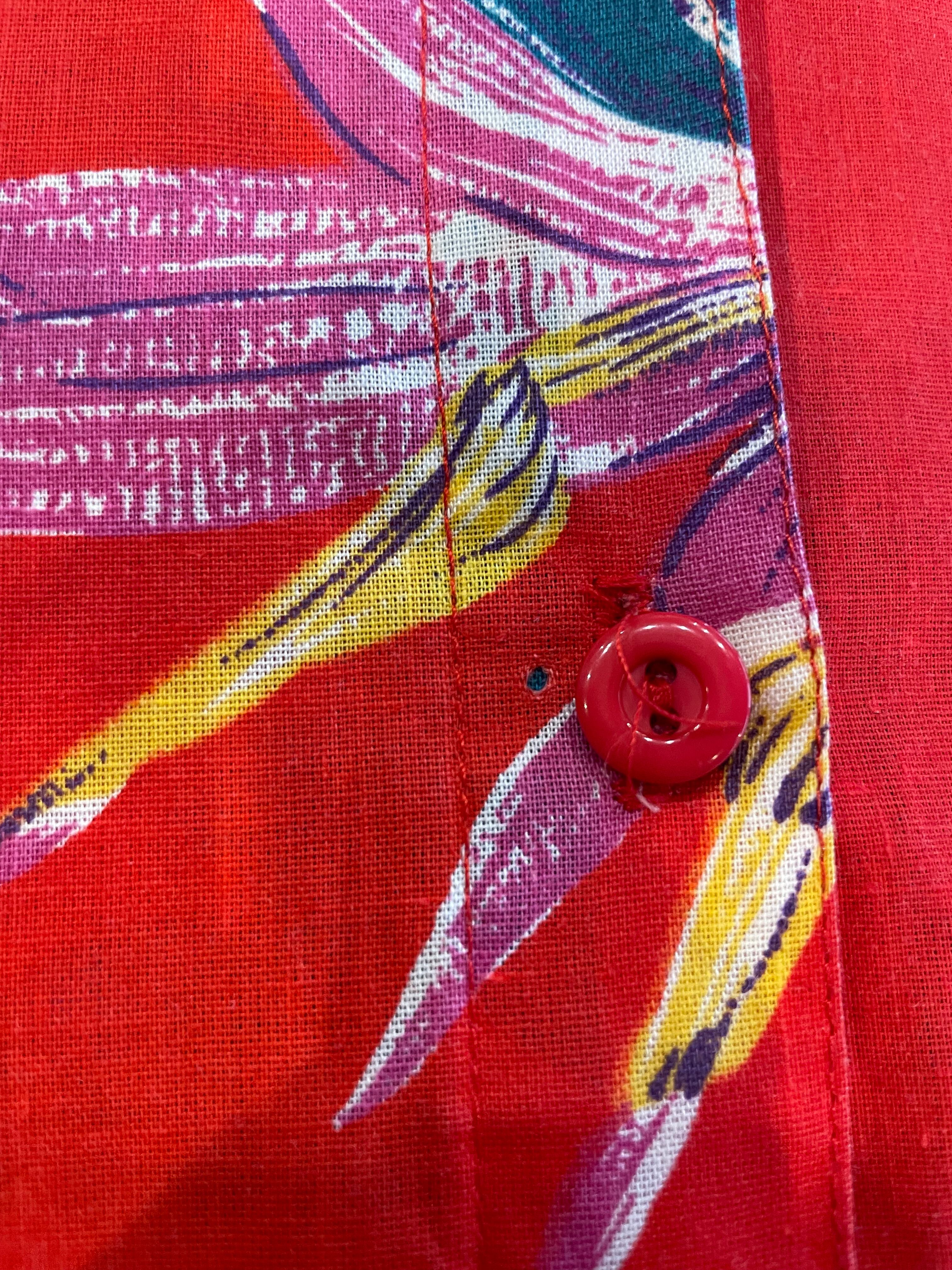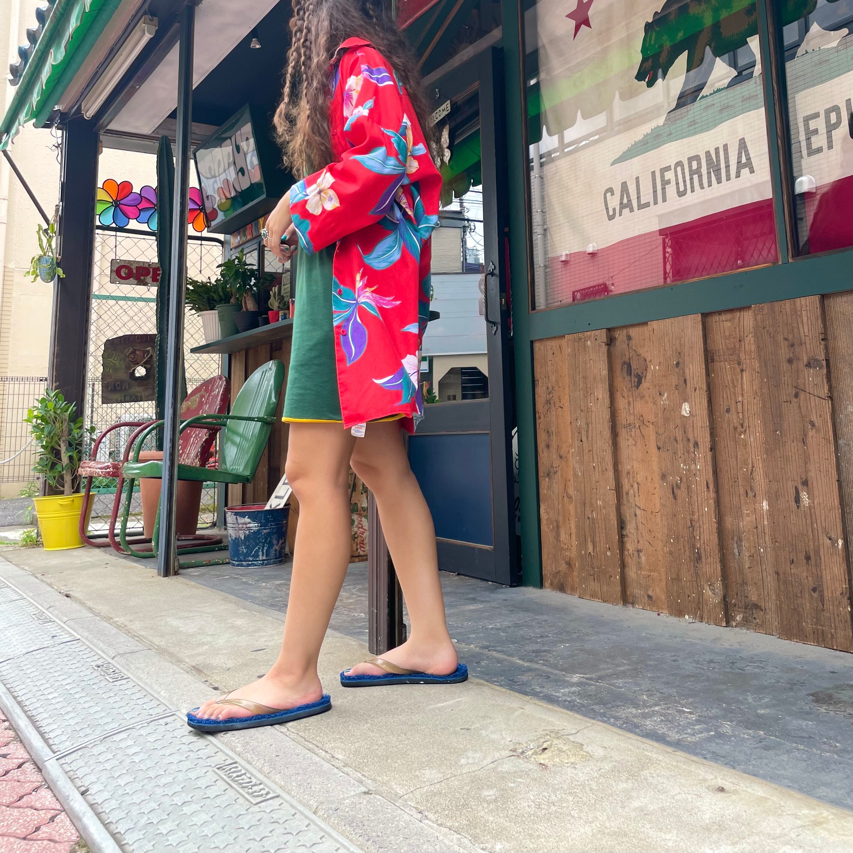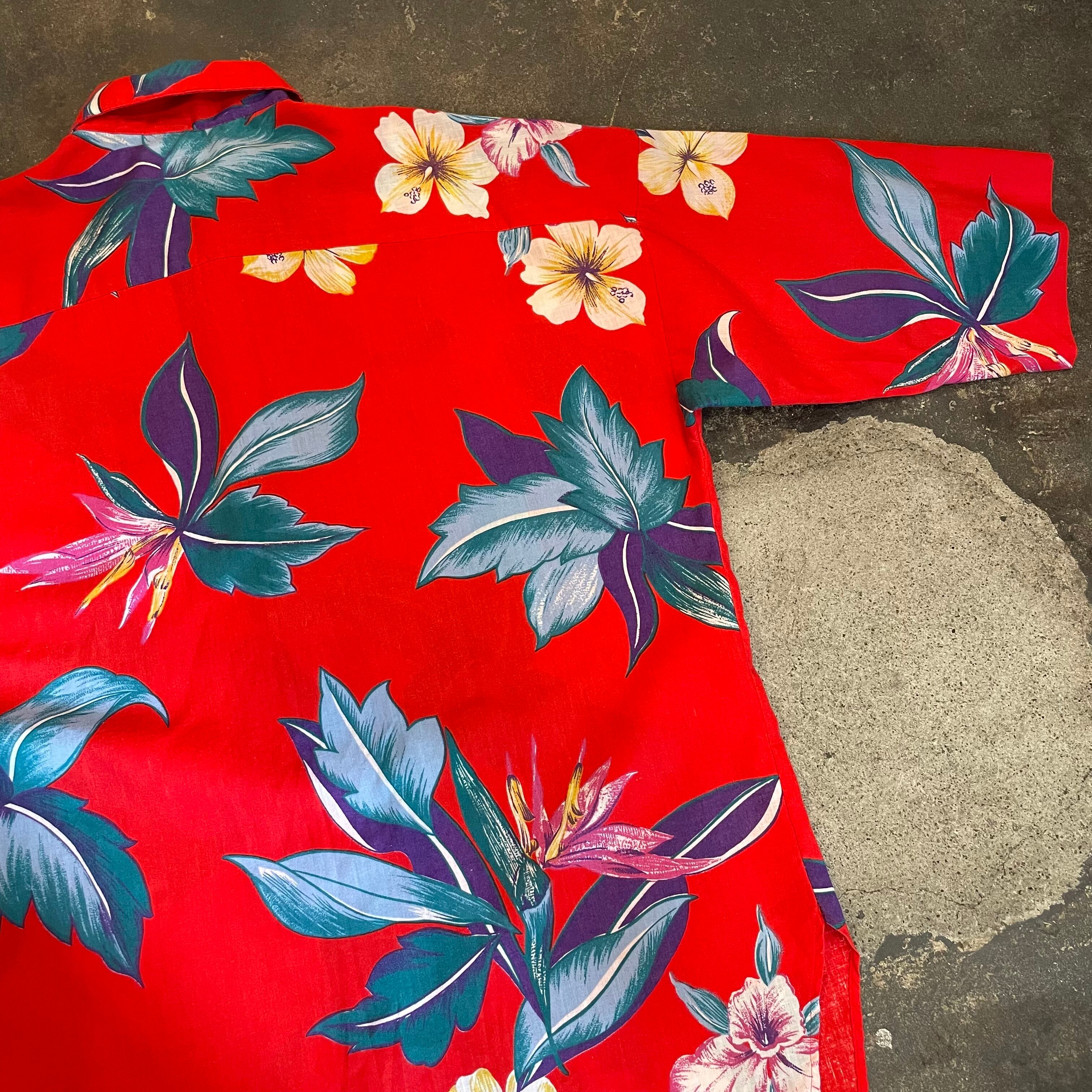 ハイビスカスや極楽鳥花のような南国感溢れる花柄が夏らしくてとてもかわいいシャツです。