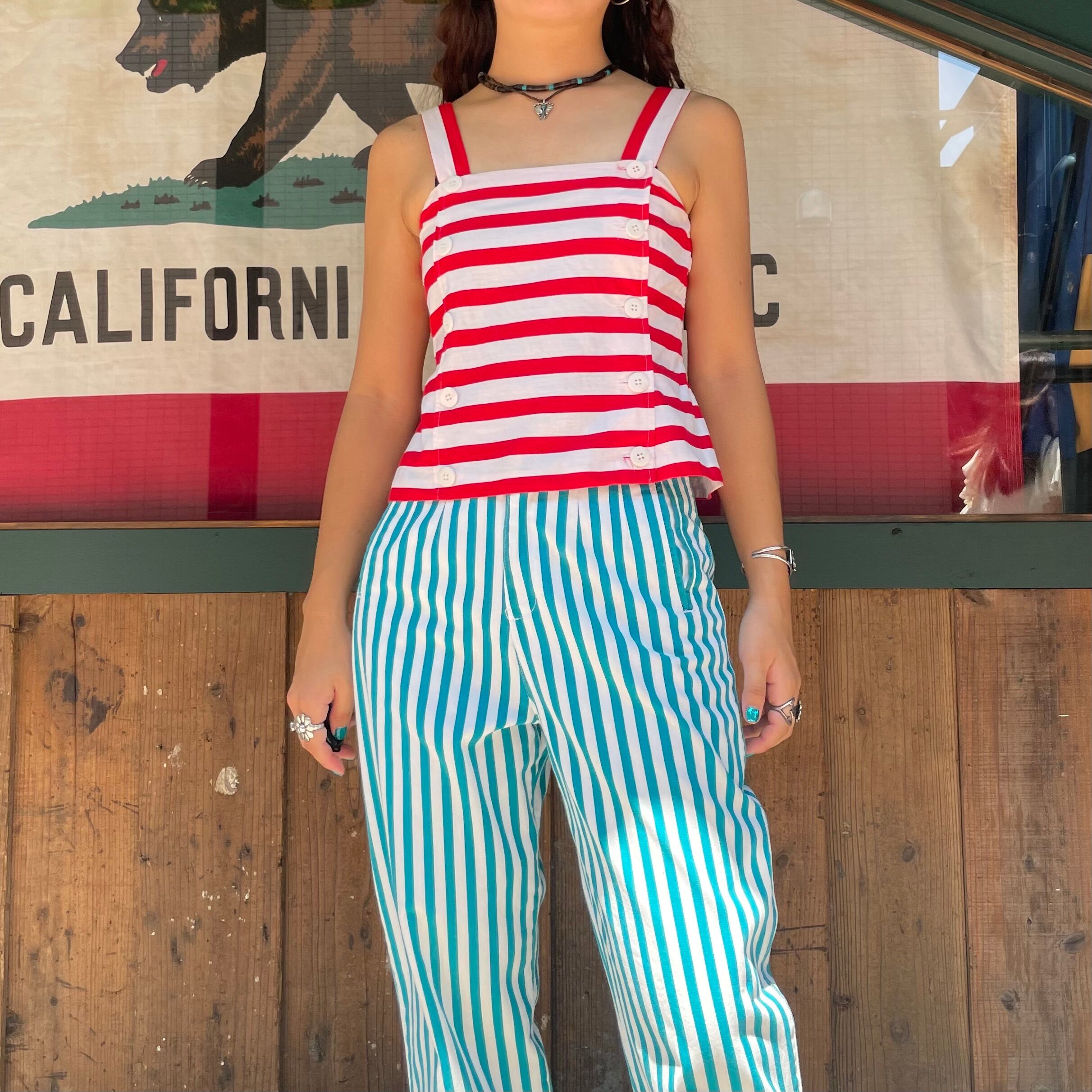 赤白のボーダーがとてもかわいいキャミソールトップです。