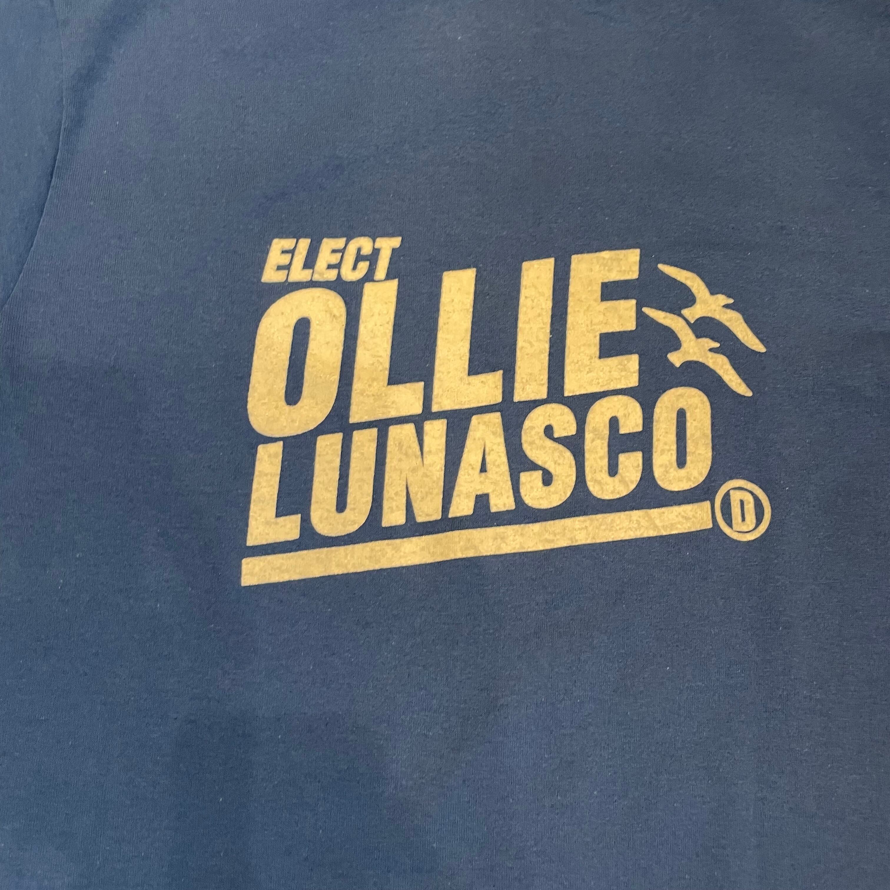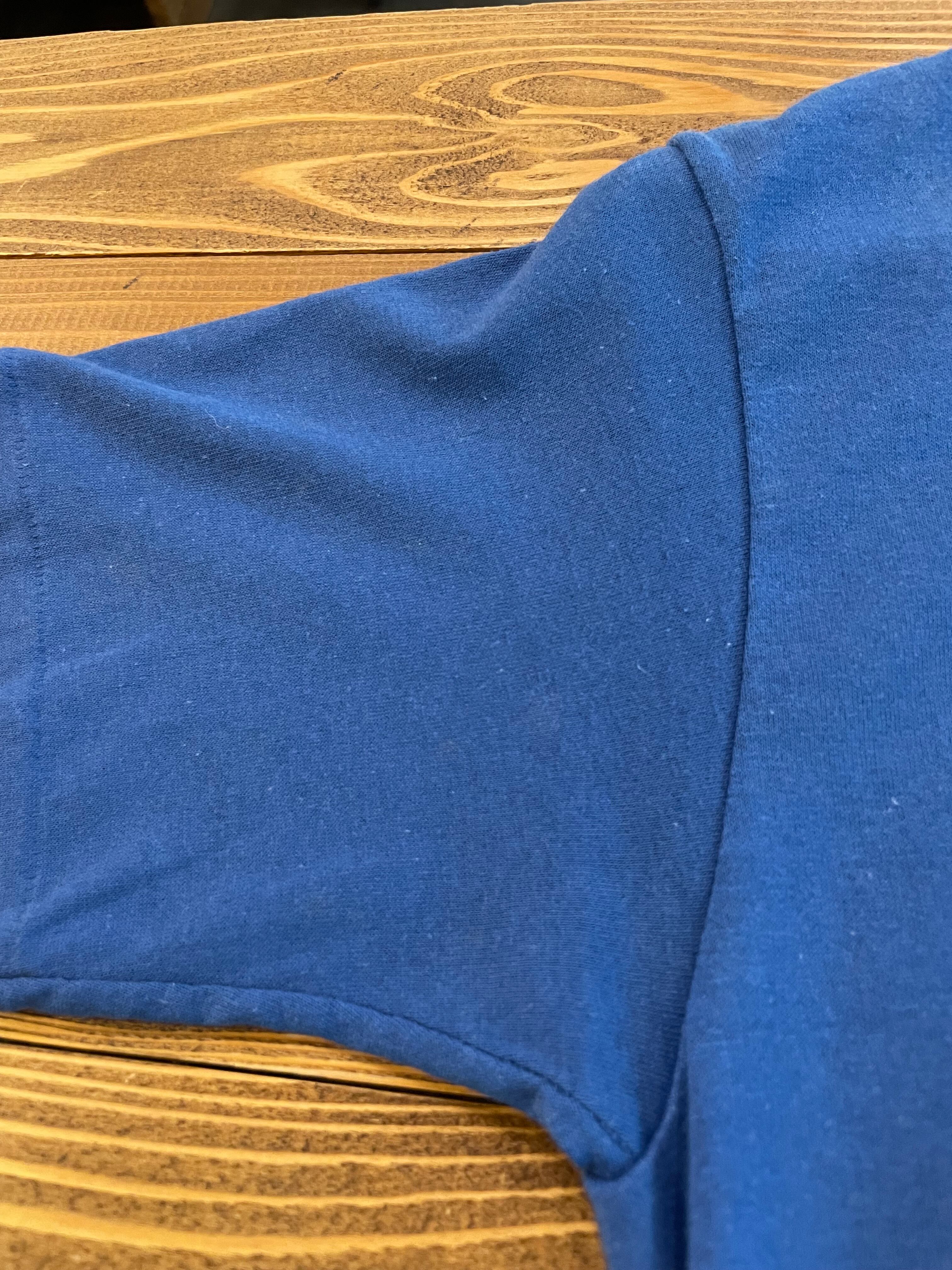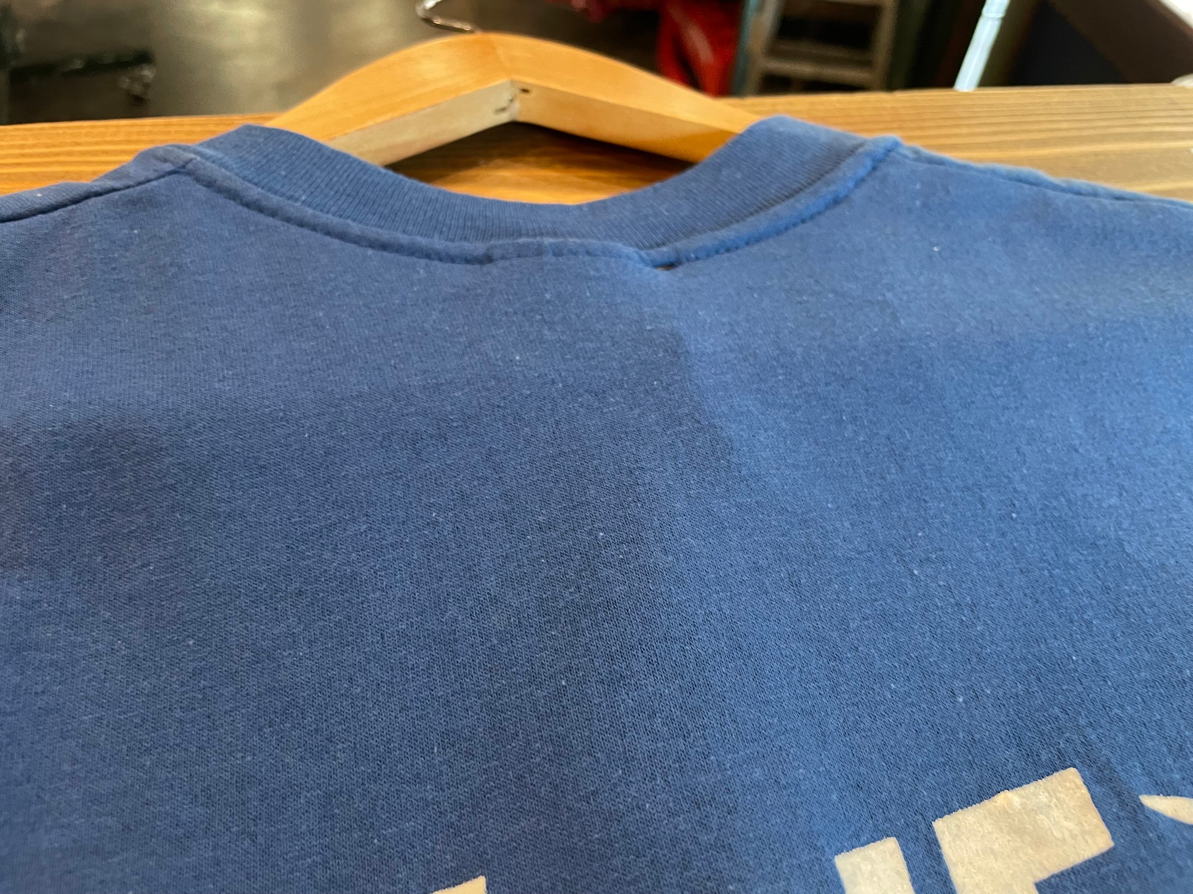 前も後ろもバランスの良い感じのプリントで、青ボディに白プリントで爽やかですね。