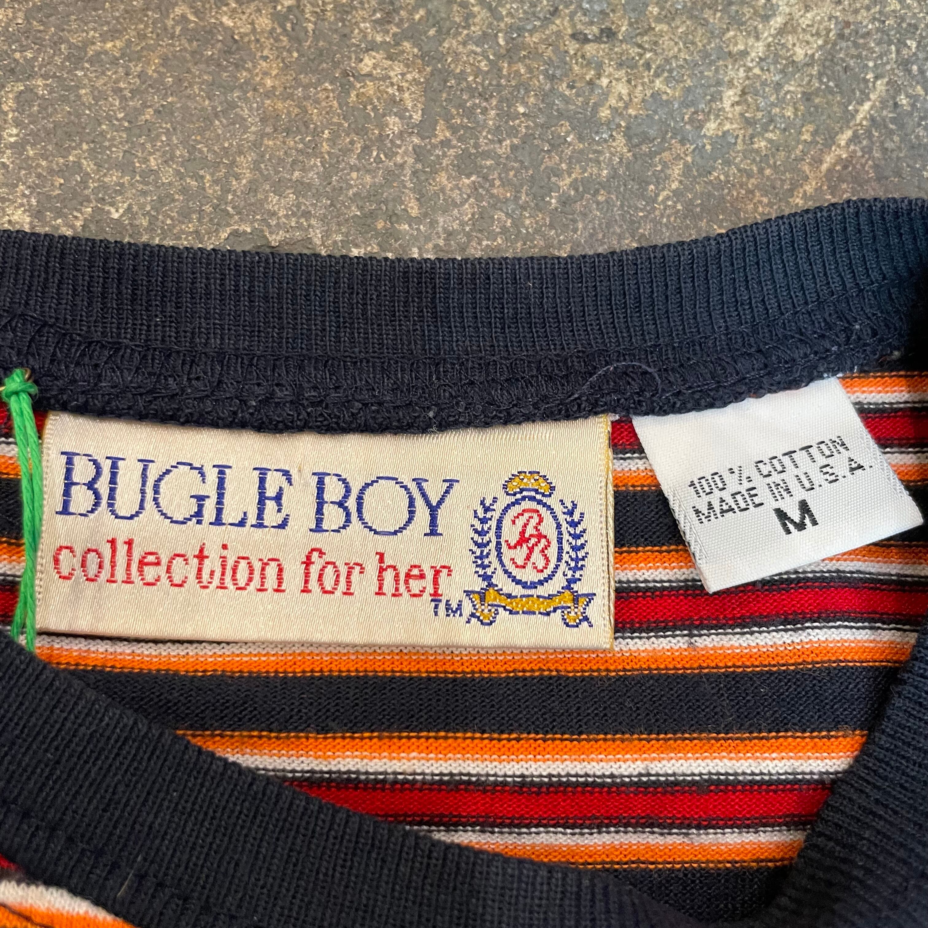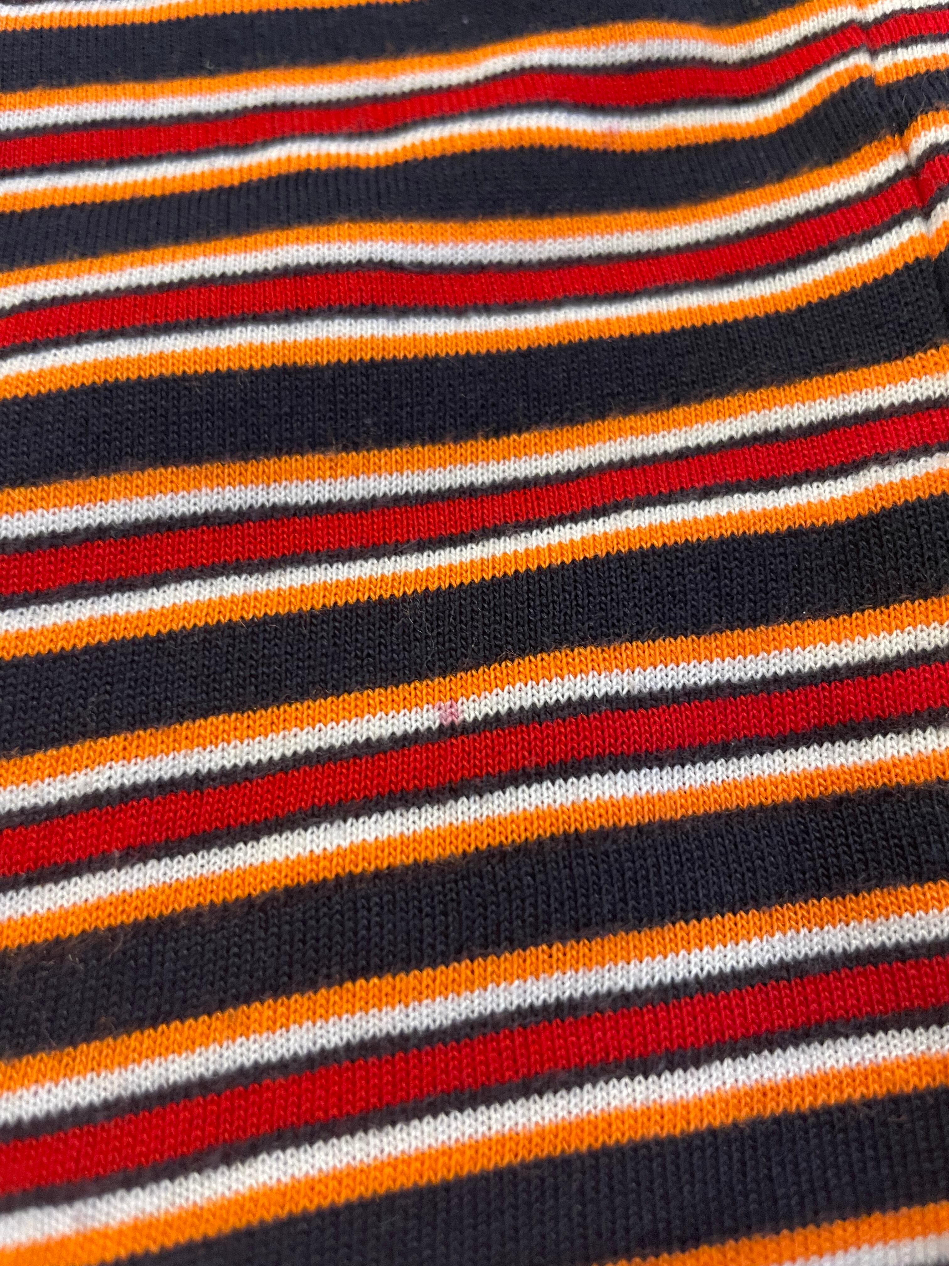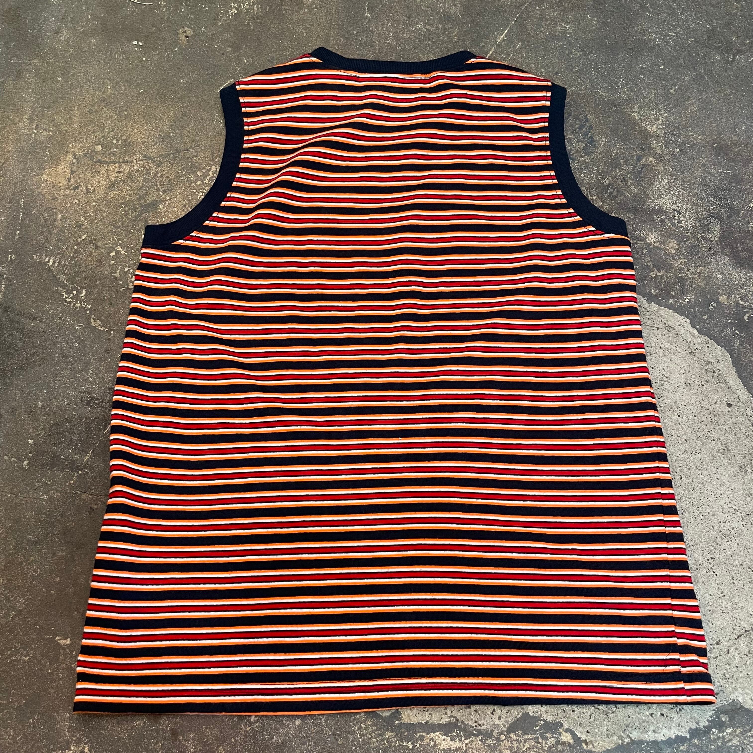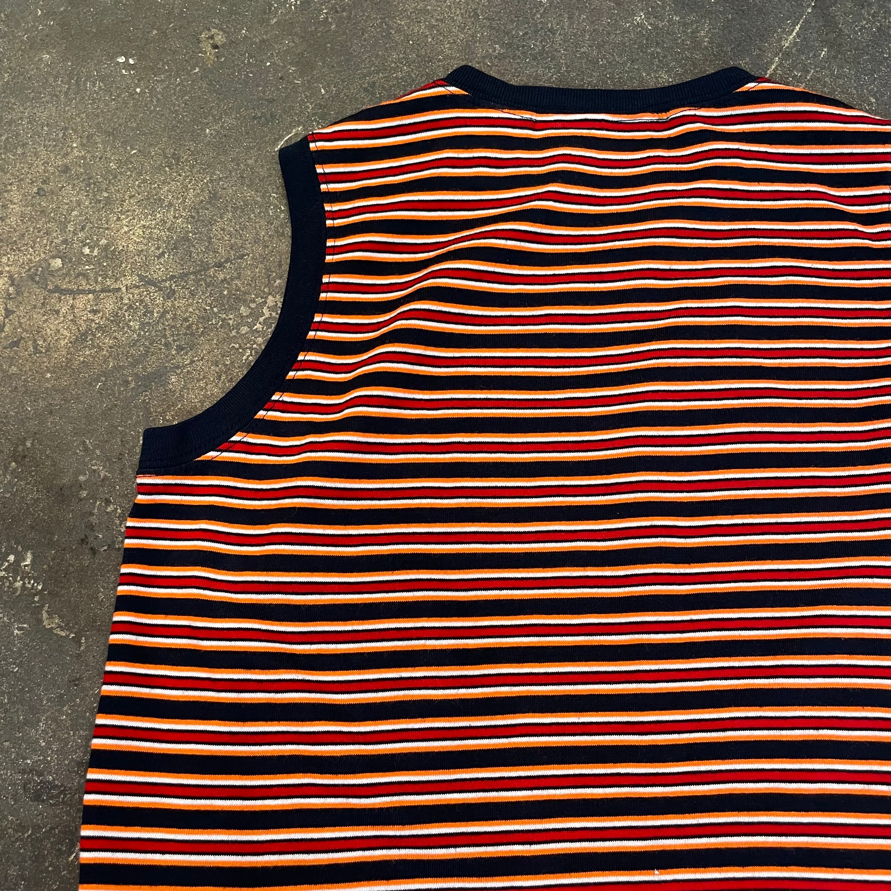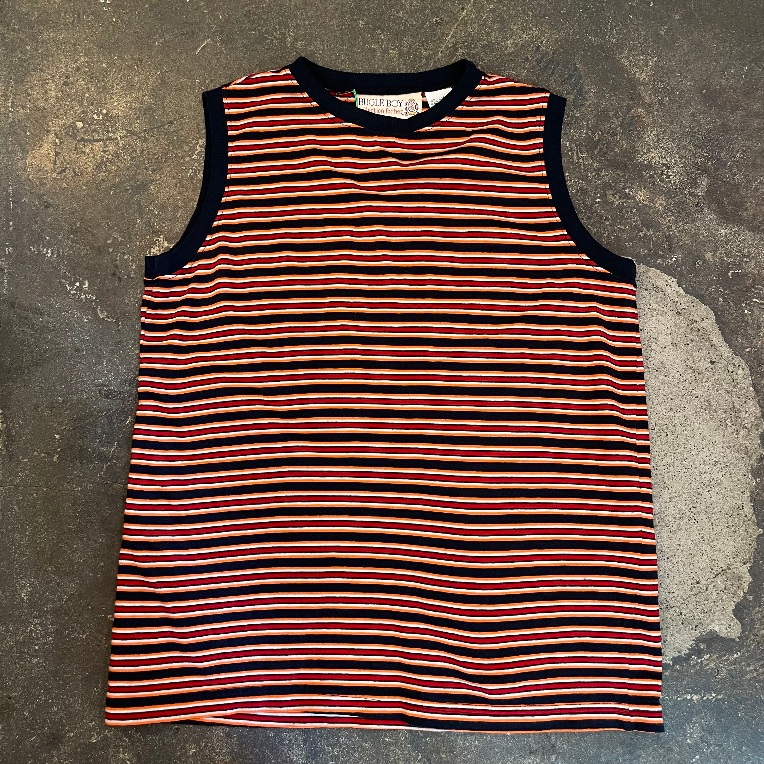 赤やオレンジのボーダーがポップでかわいいタンクトップです。