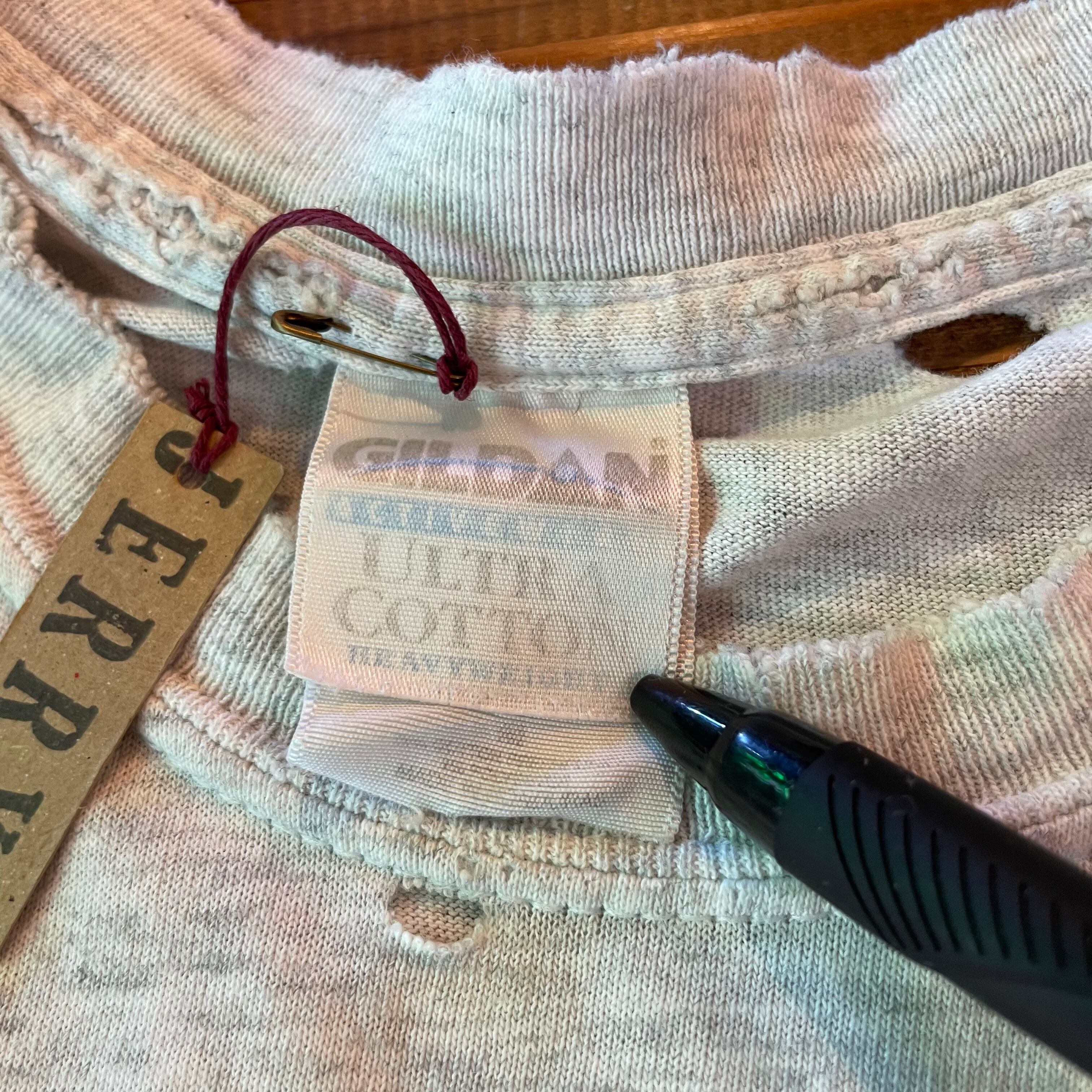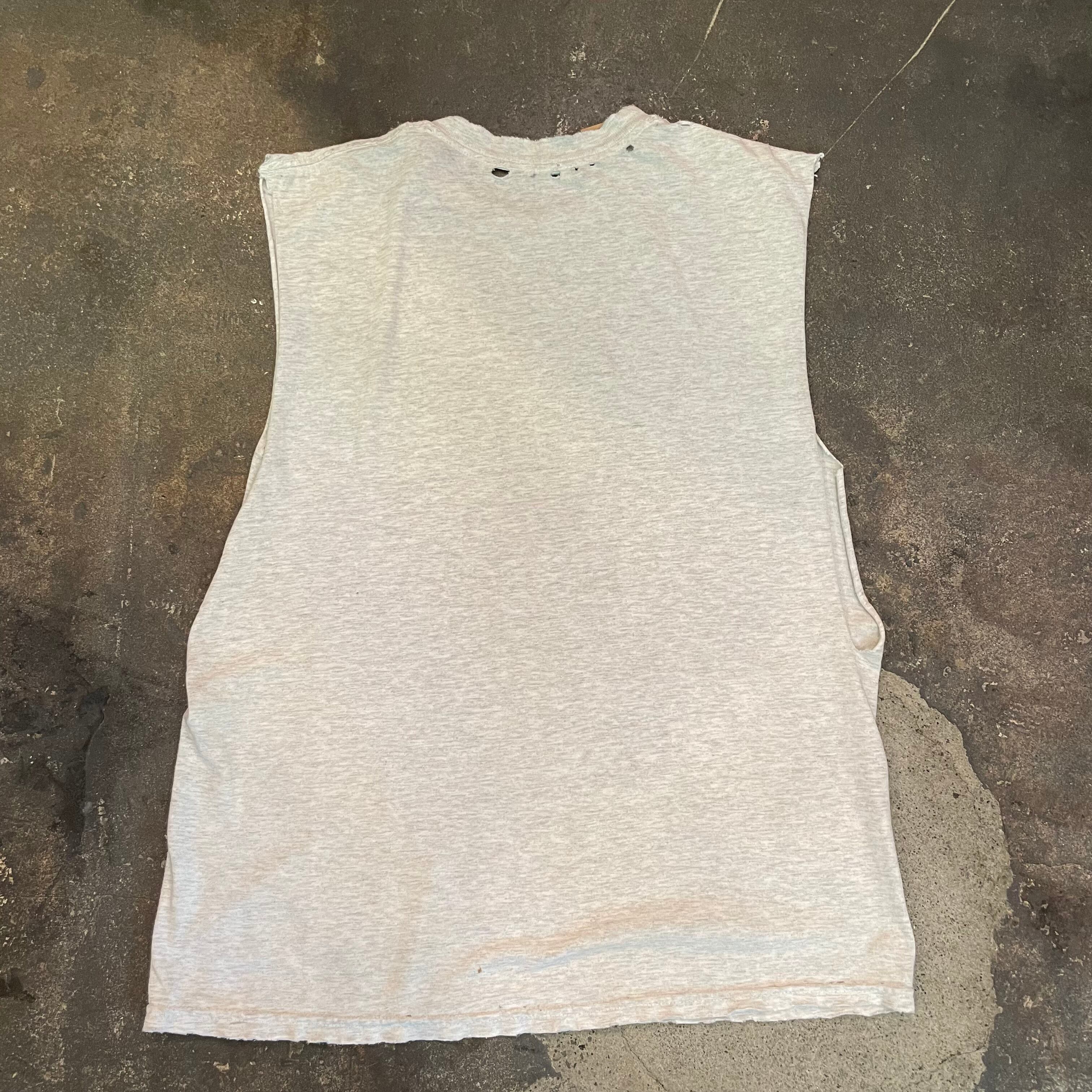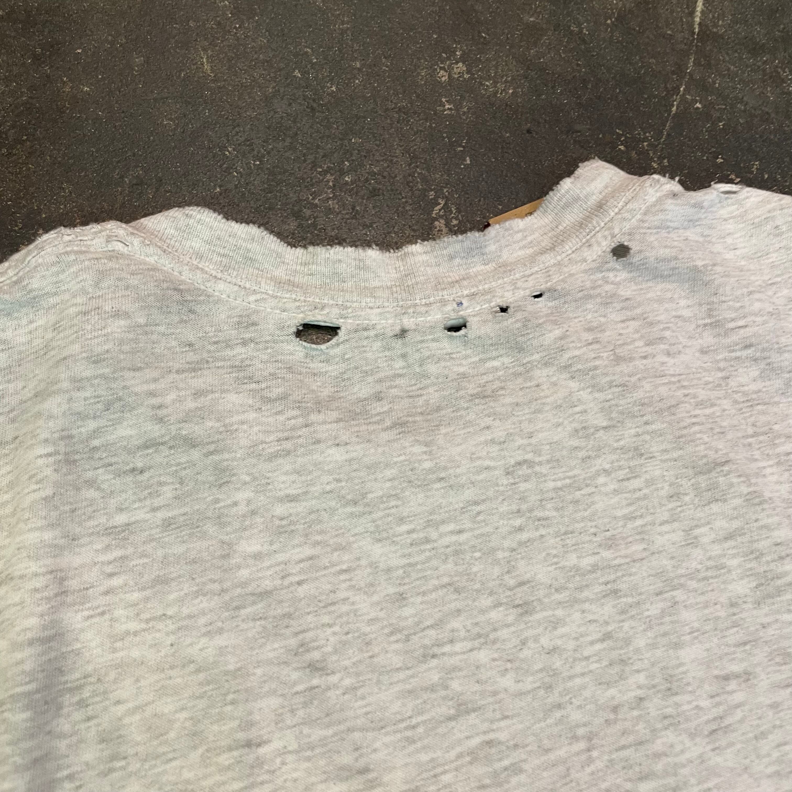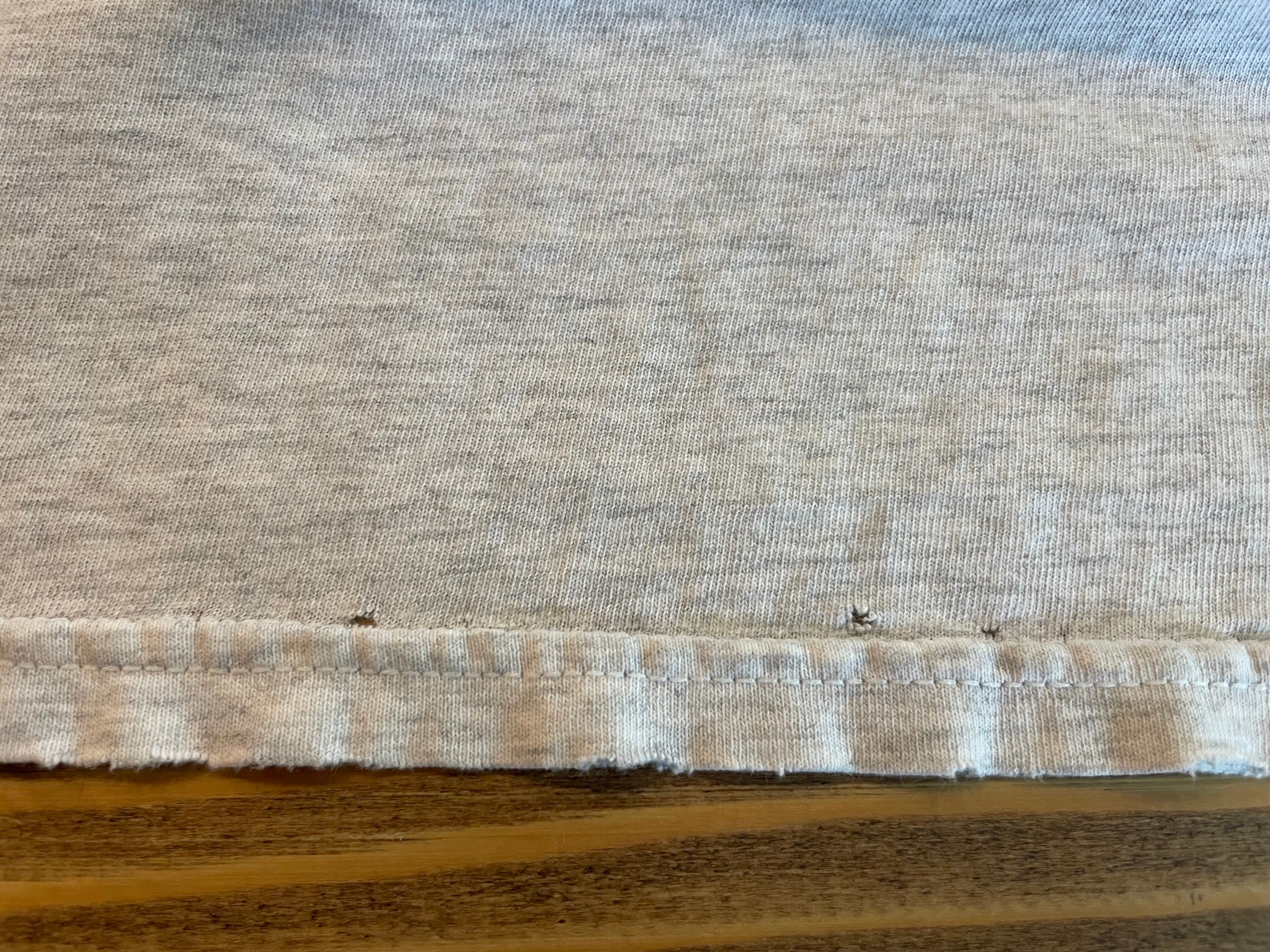 襟ぐりや裾に穴や擦れ、生地の薄くなっている箇所、脇に若干の黄ばみ、等かなりダメージのある商品です。