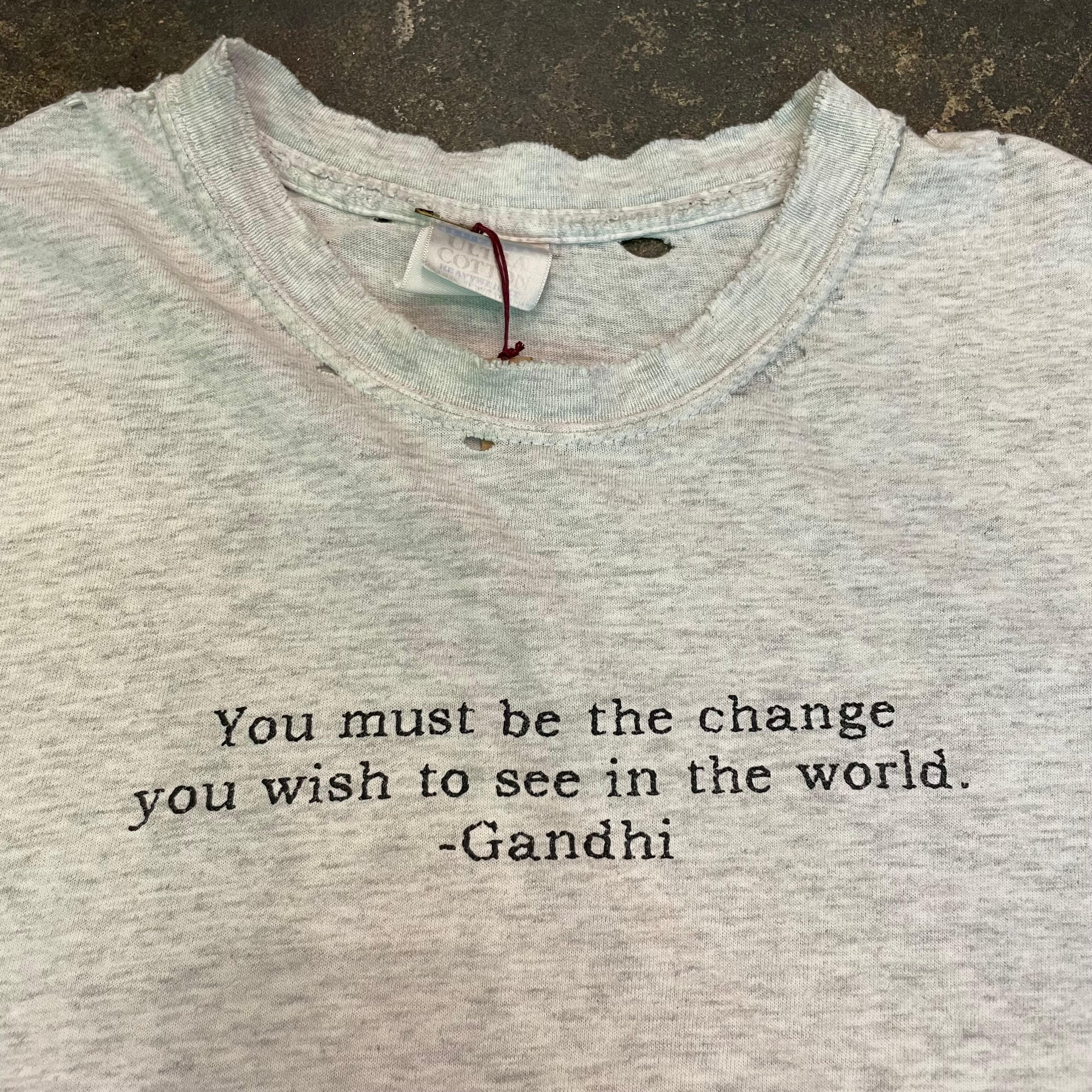 ガンジーの言葉のシンプルなプリントも良い感じですし、脇腹まで切られた袖ぐりが風通しが良くて涼しいです。