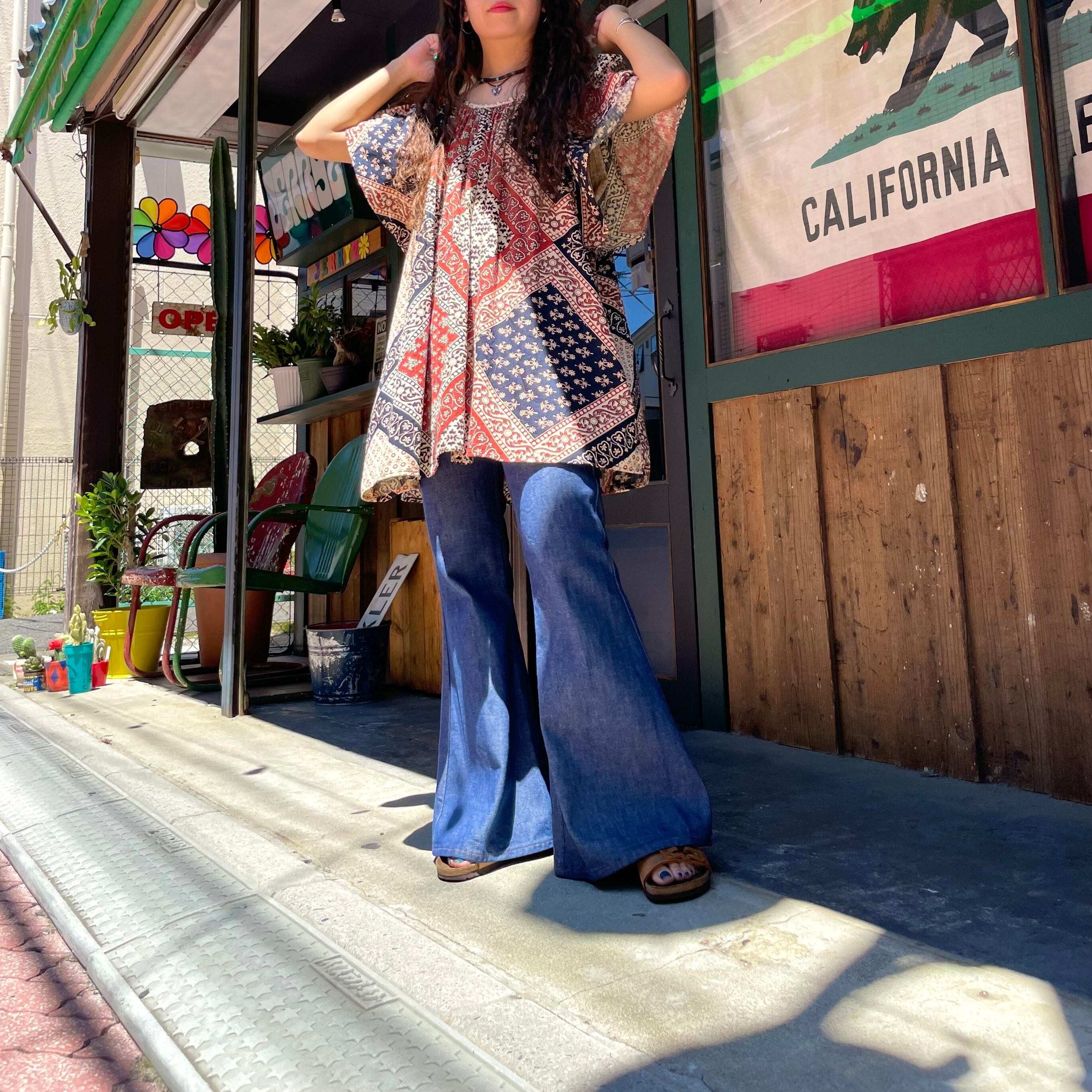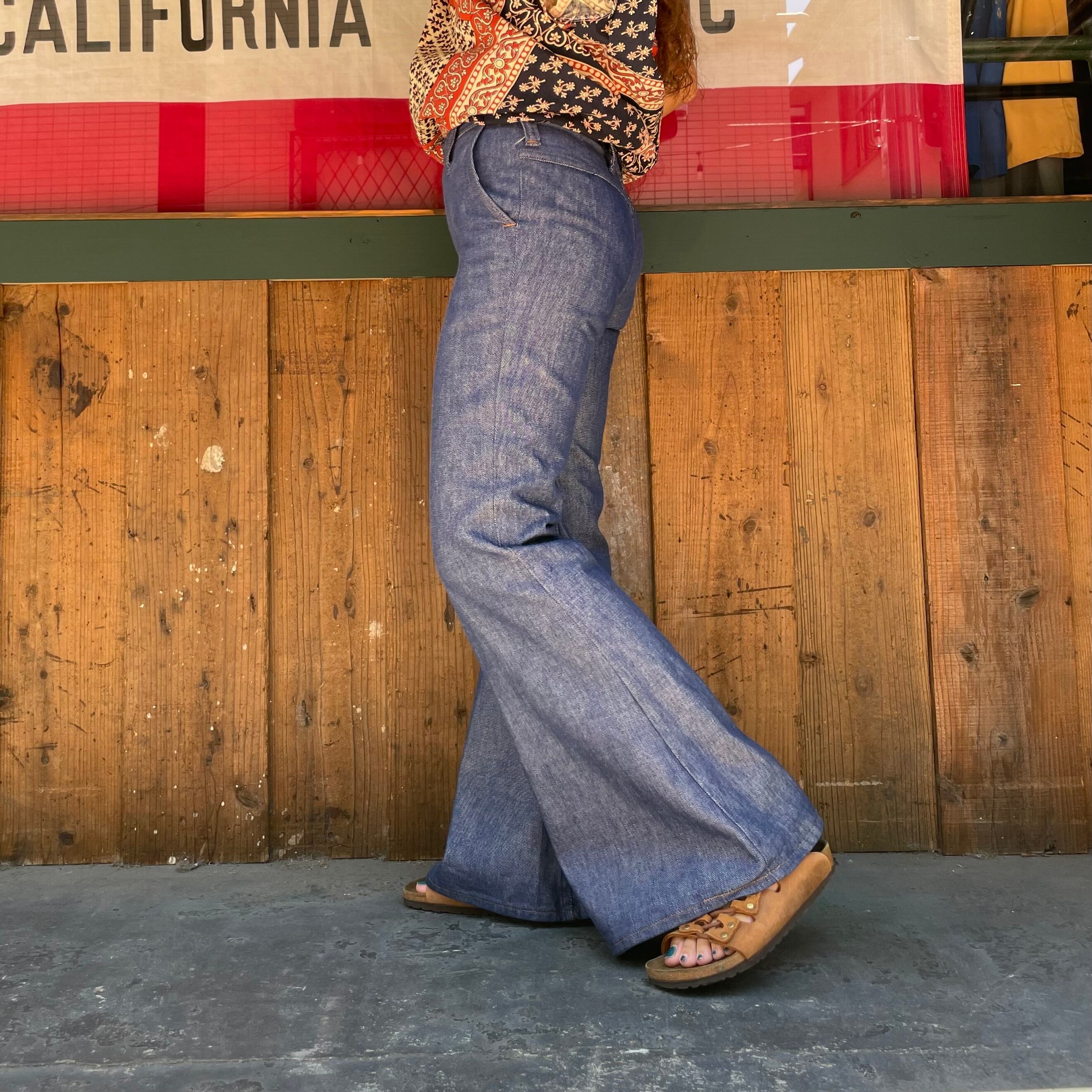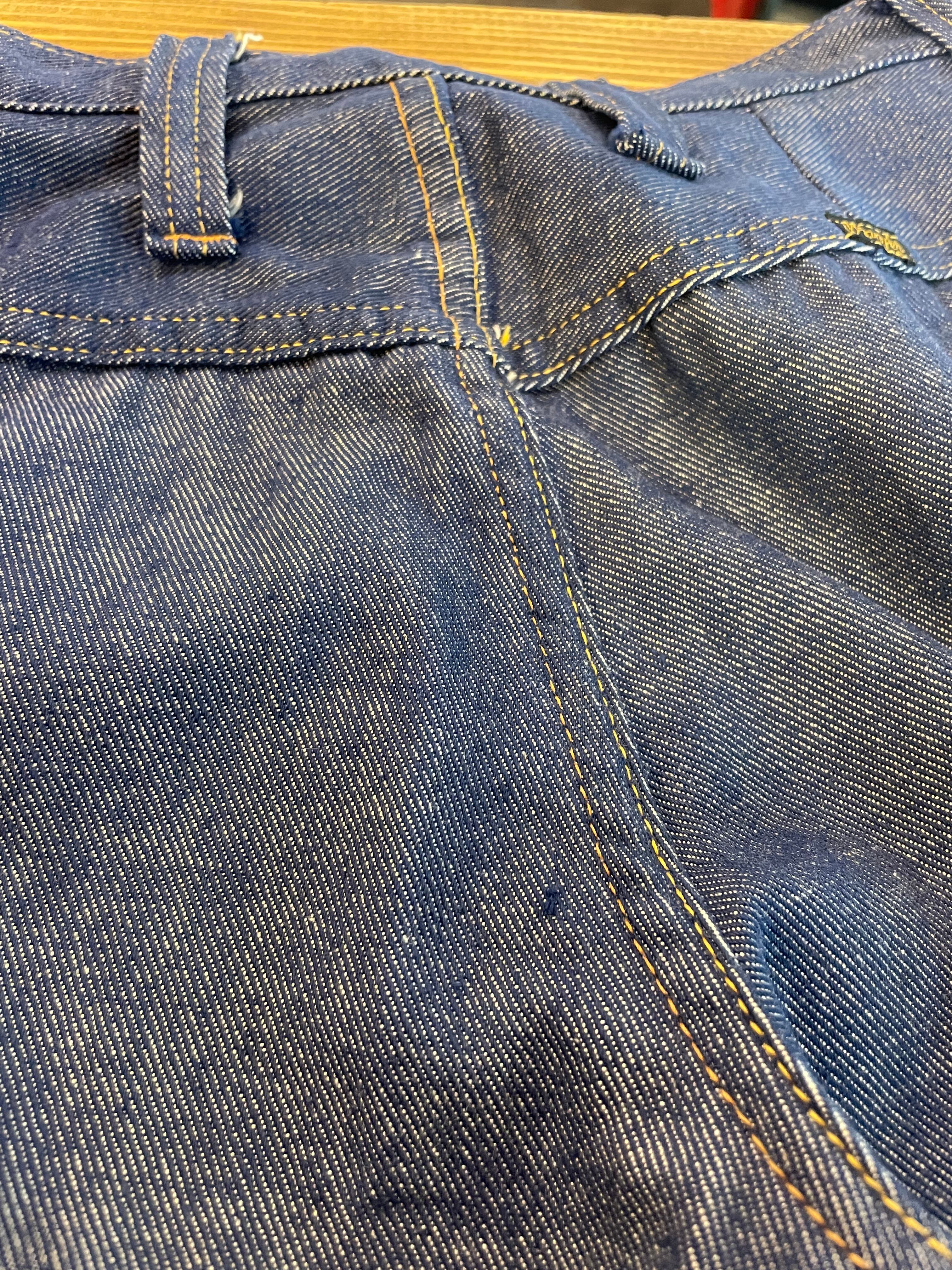 70年代頃USA製Wranglerのデニムフレアパンツです。ザ・ベルボトムなかなりフレアなシルエットがかっこいいですね。