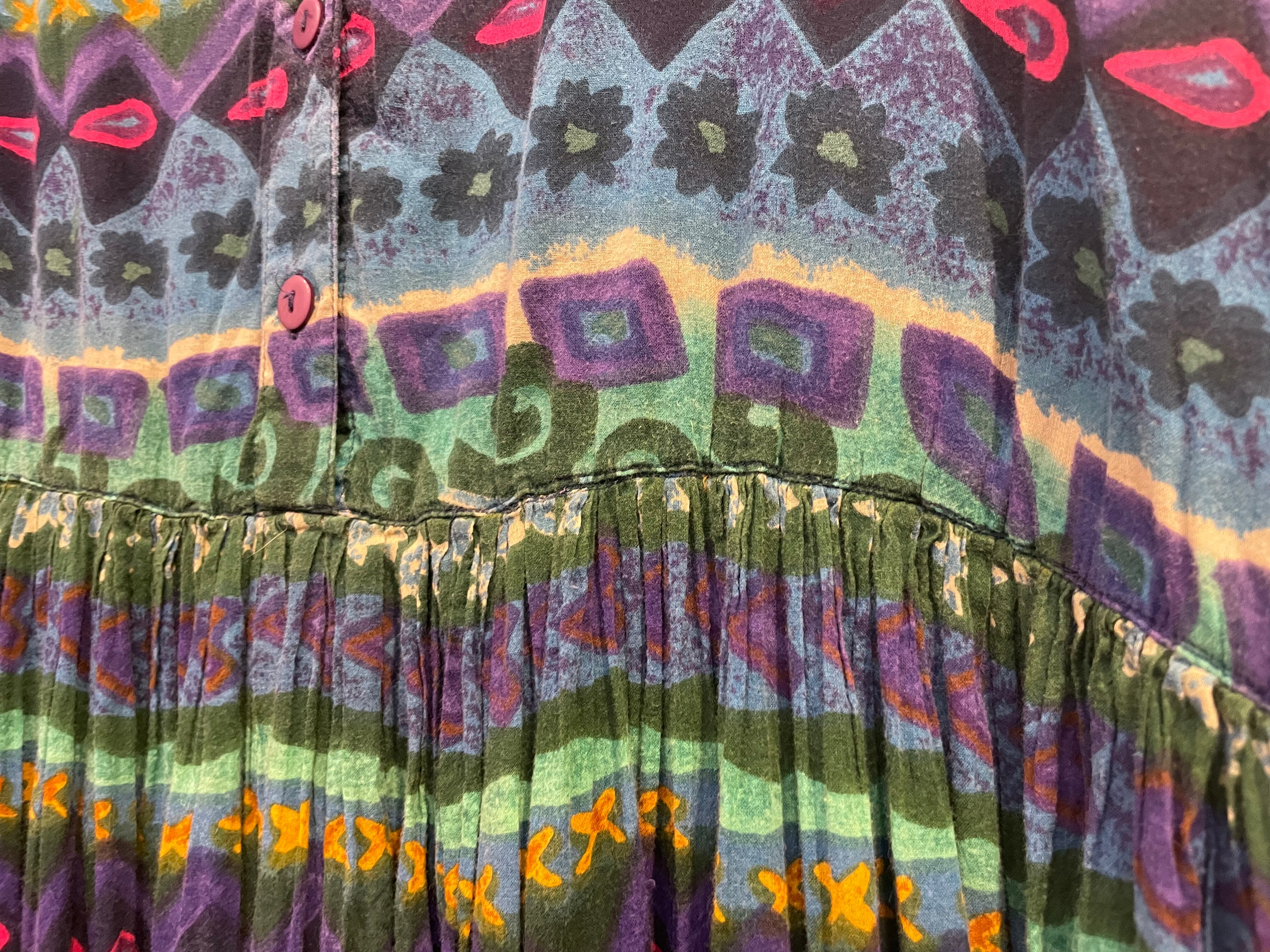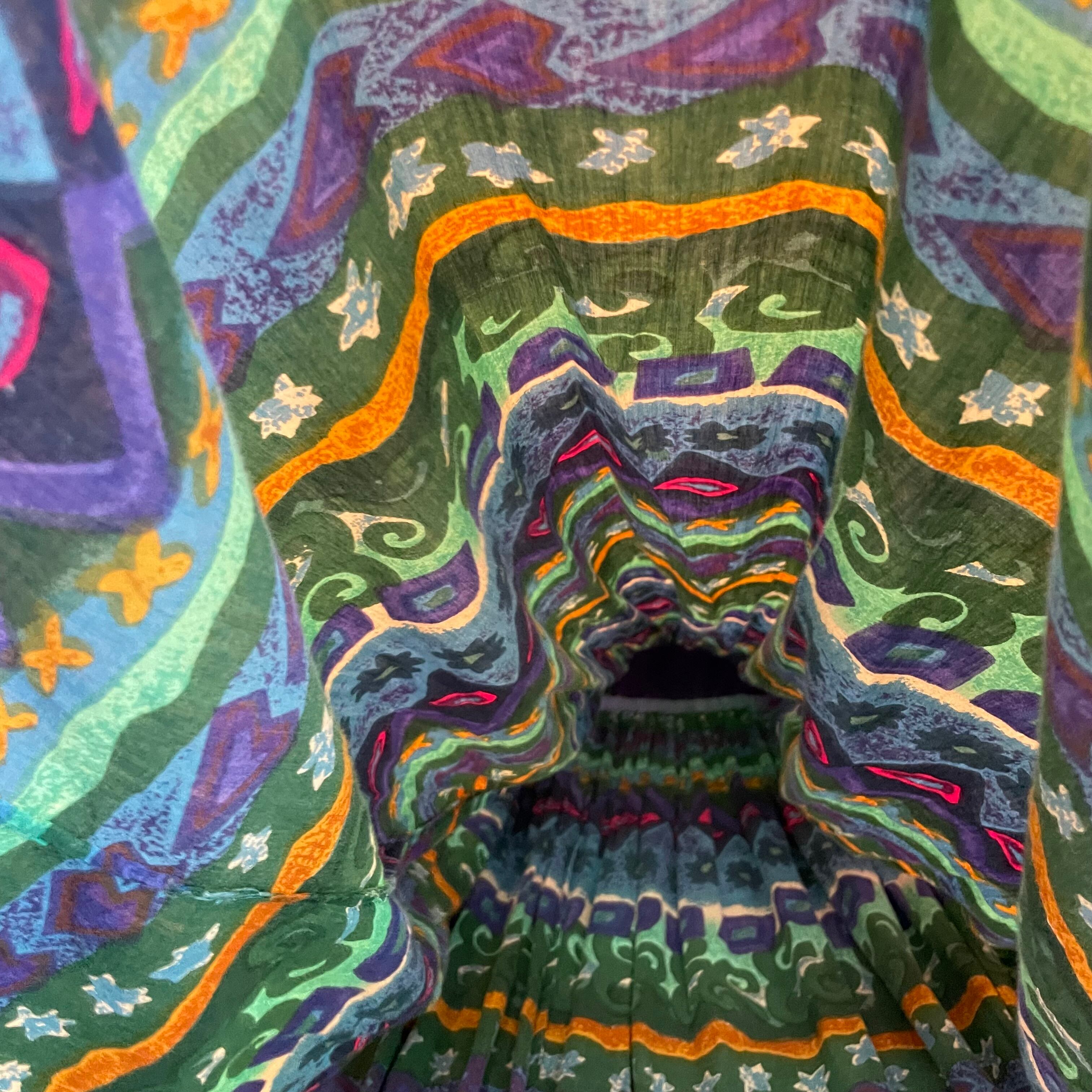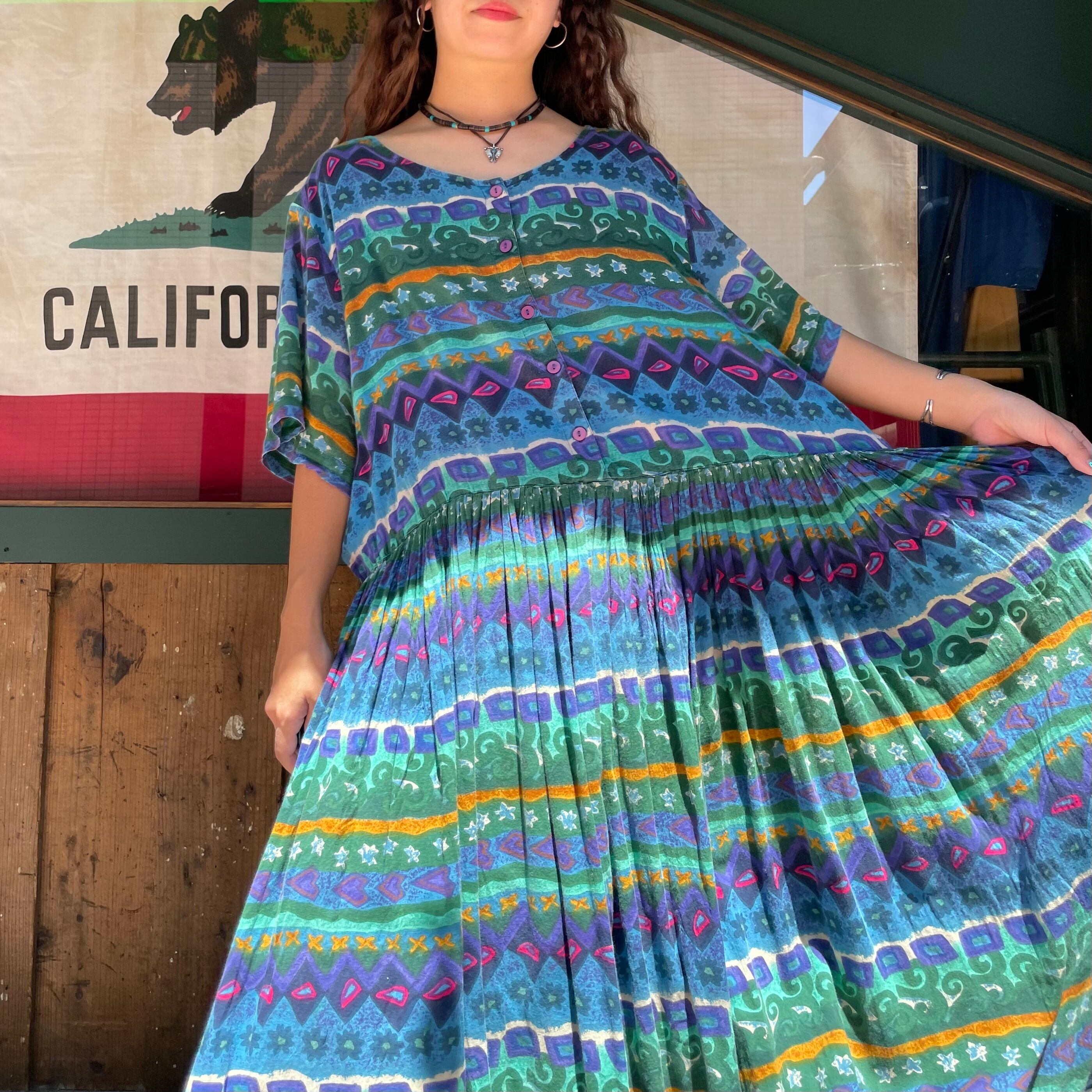 ゆったりなサイズ感で風通しがよくさらに涼しいですし、柄的に見た目にも涼しくておすすめです。身頃部分は裏地が付いていて、スカート部分は透けるほど薄いです。