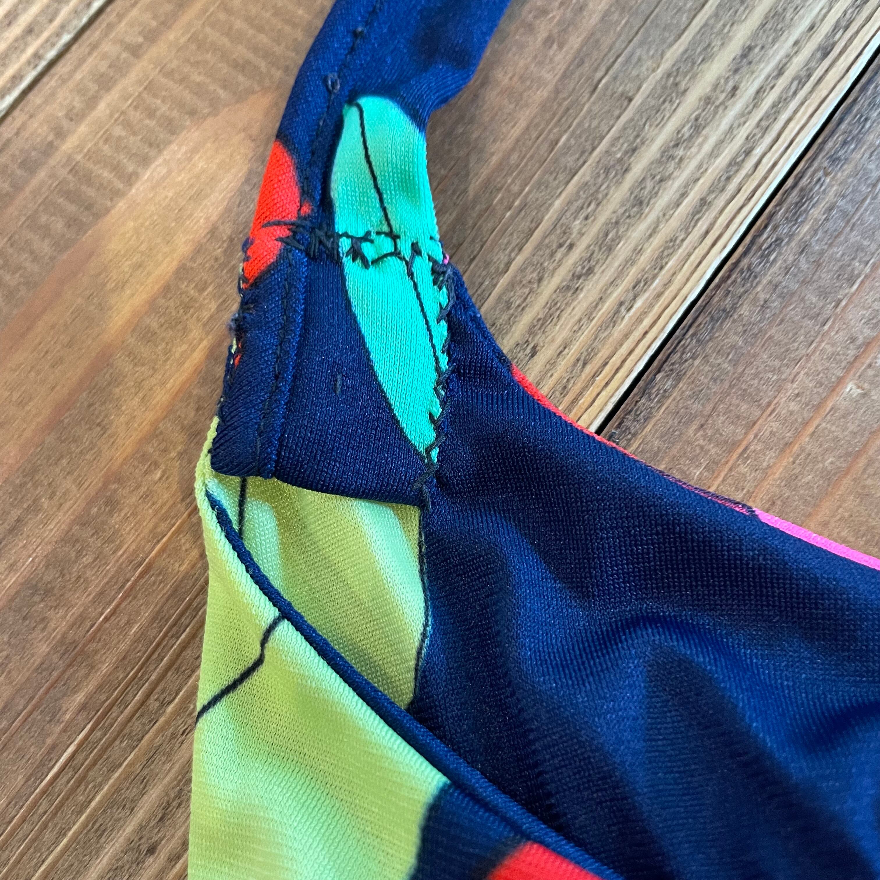 胸下切り替えできれいに広がるAラインシルエットがとても素敵ですし、水着のような伸縮性のある生地感が動きやすく楽ちんで良いですね。