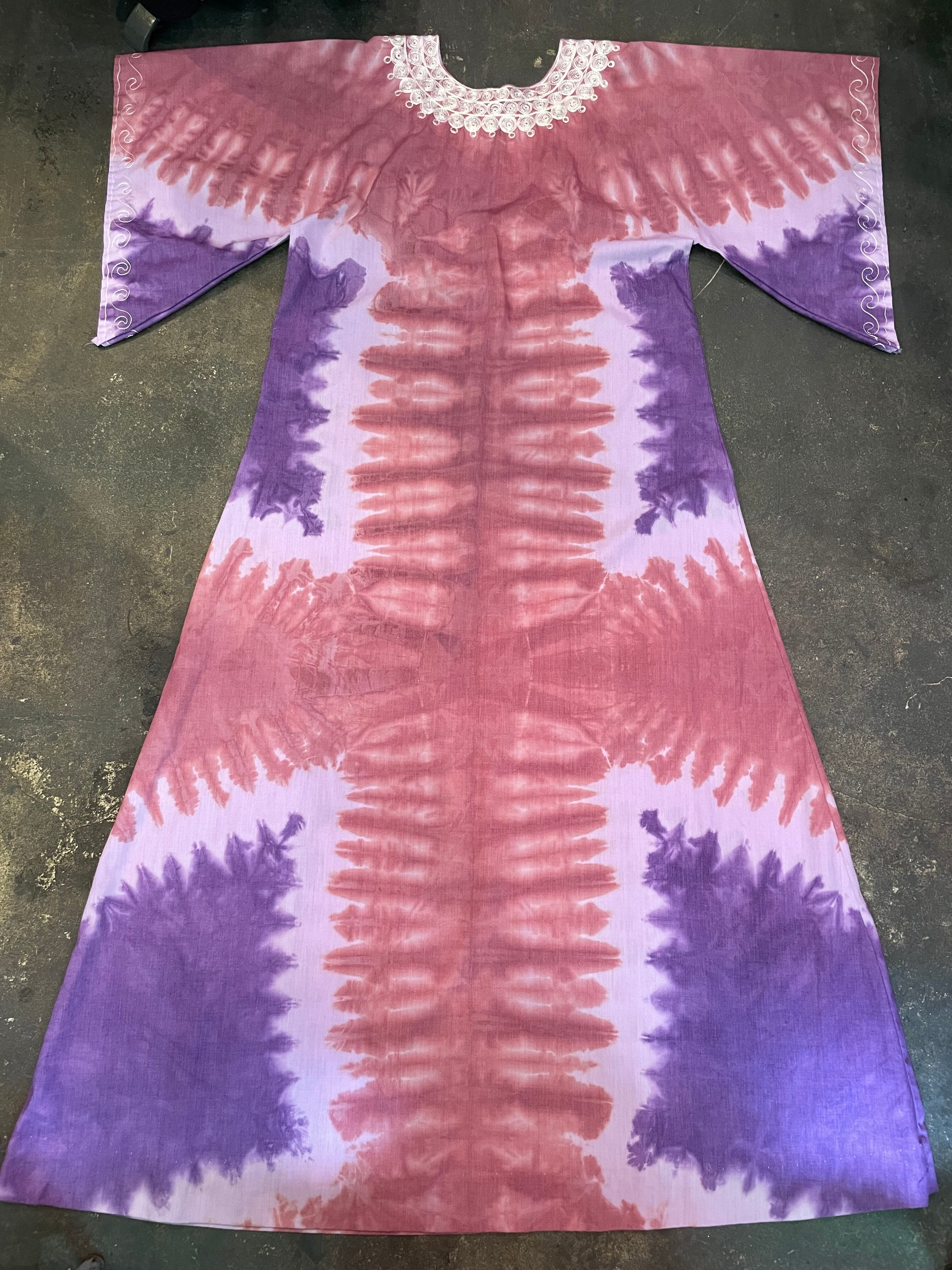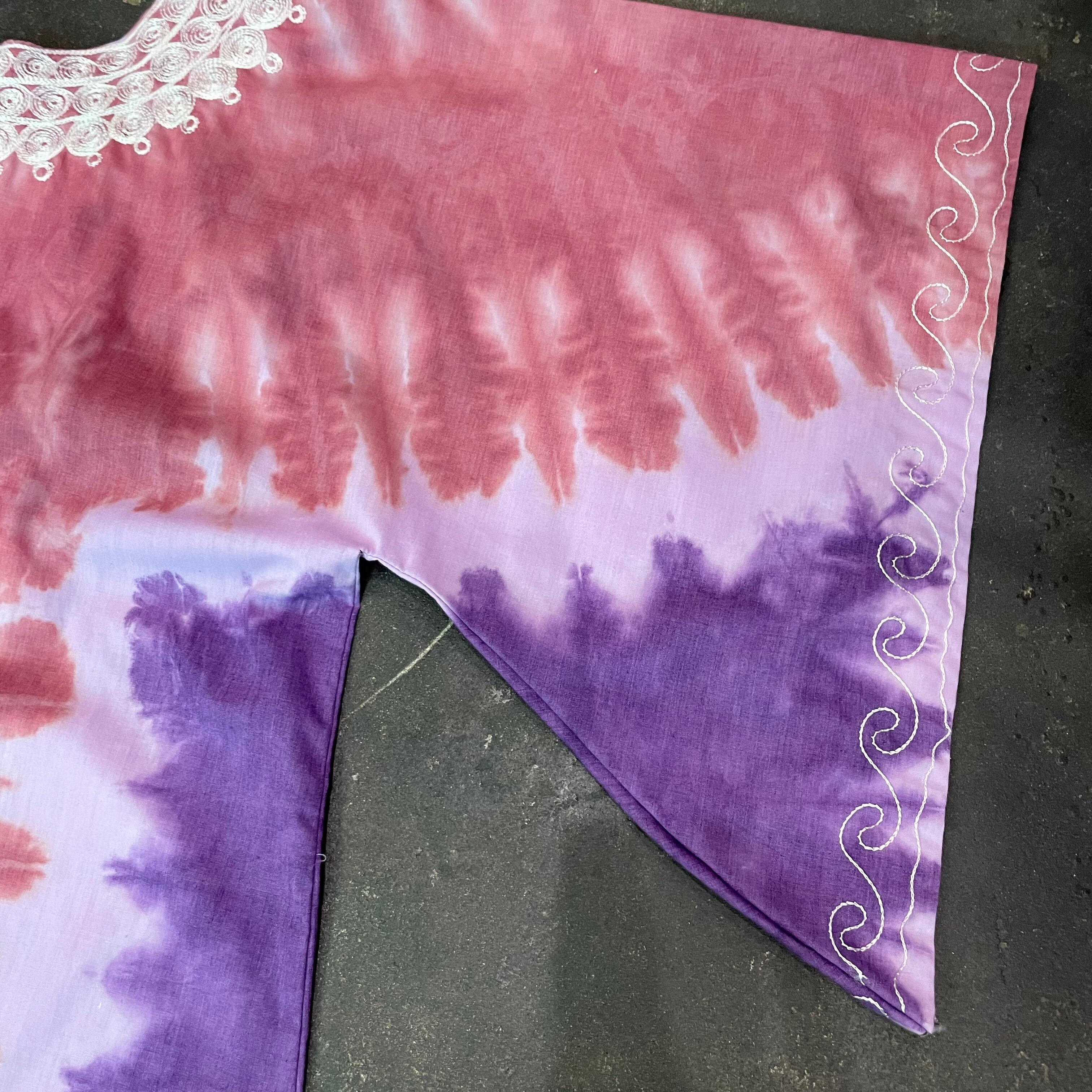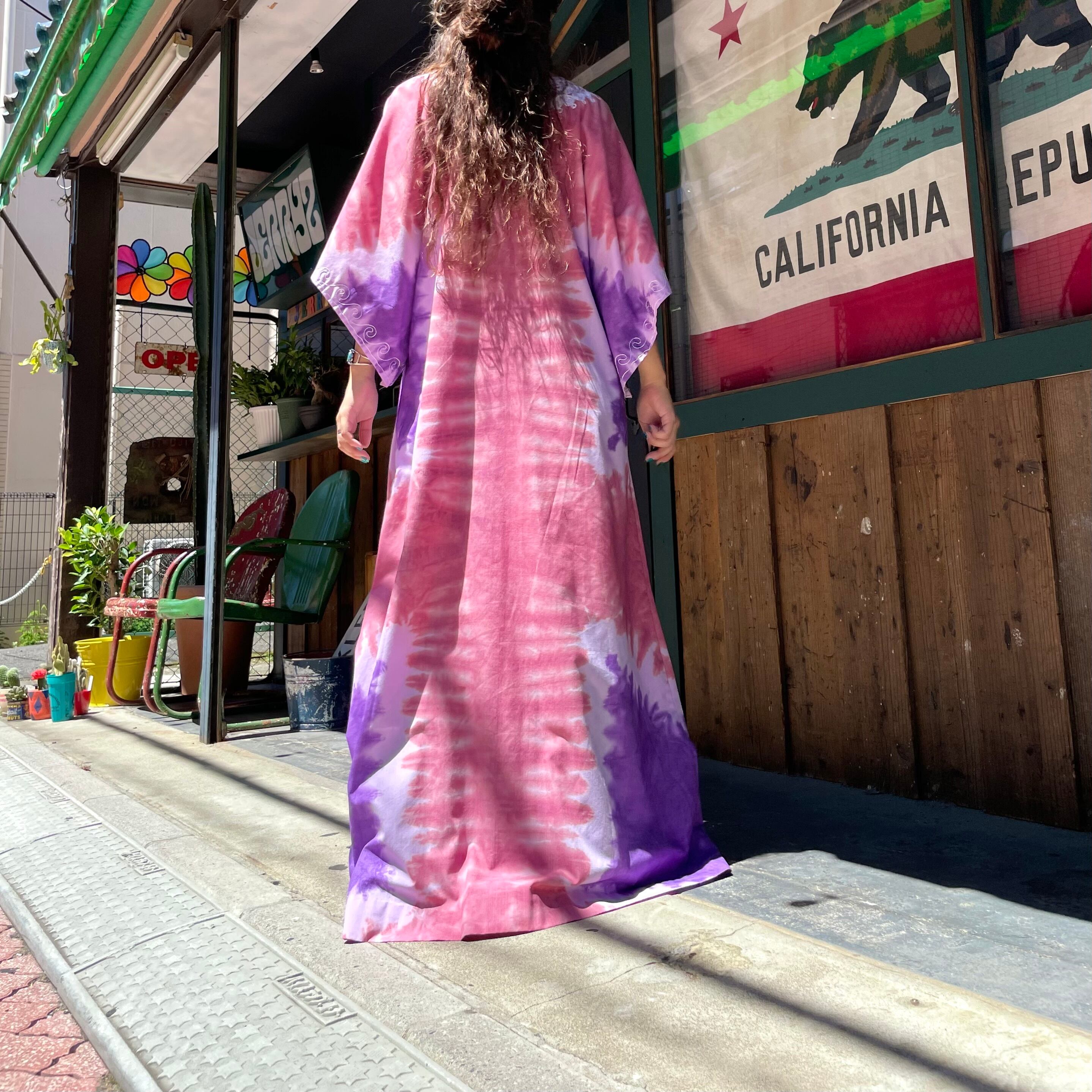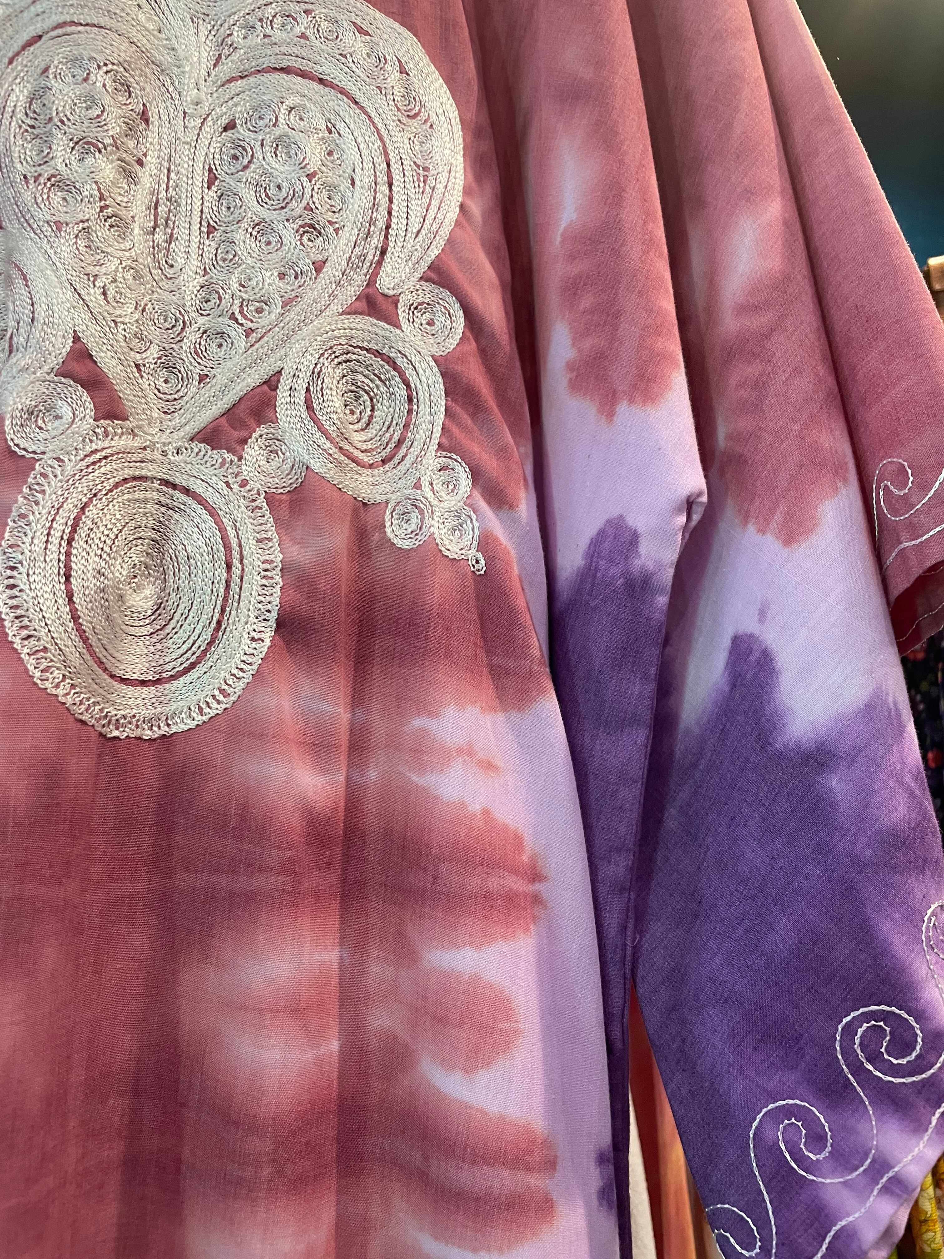 きれいな色味の染めと細かい機械刺繍がとても素敵なワンピースです。