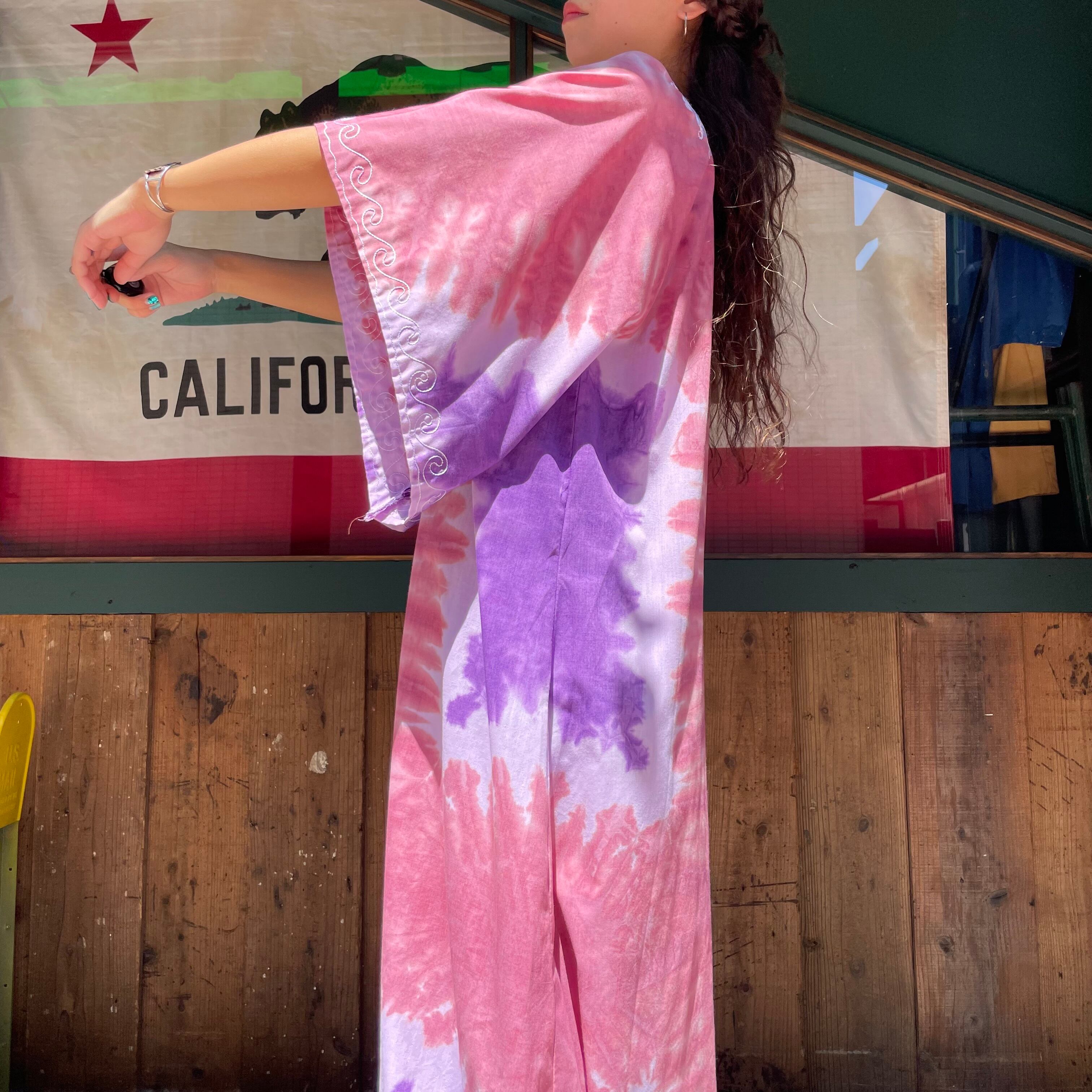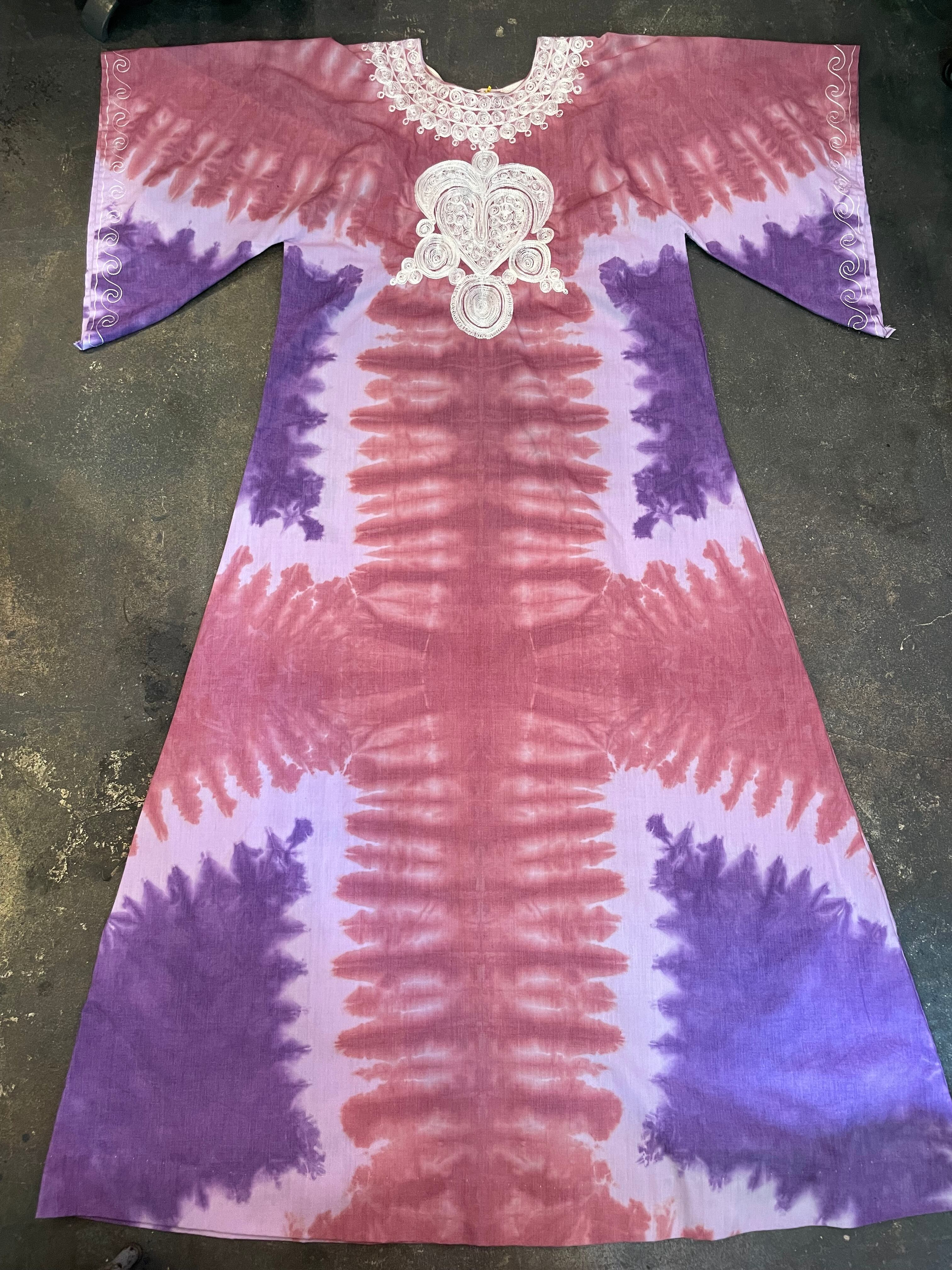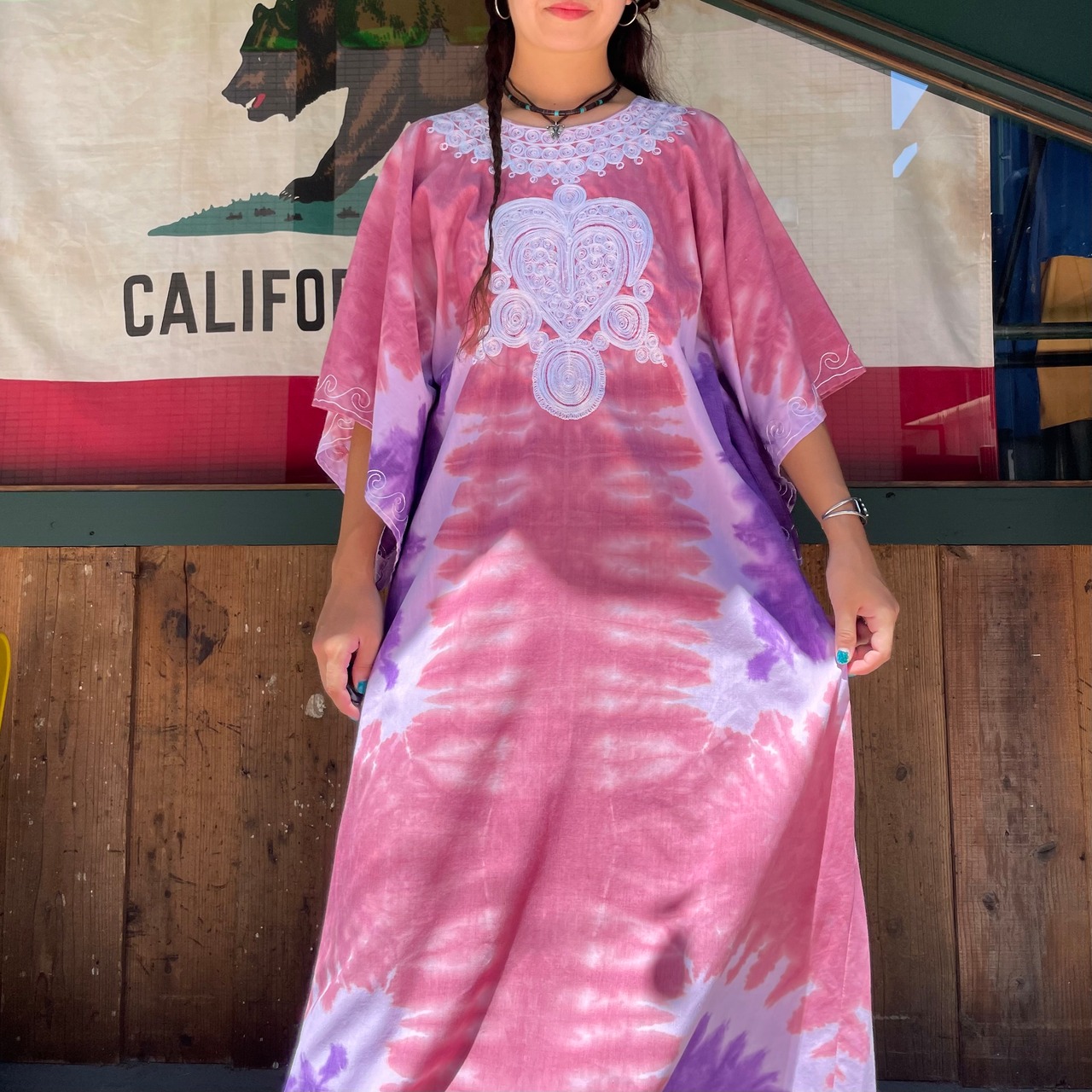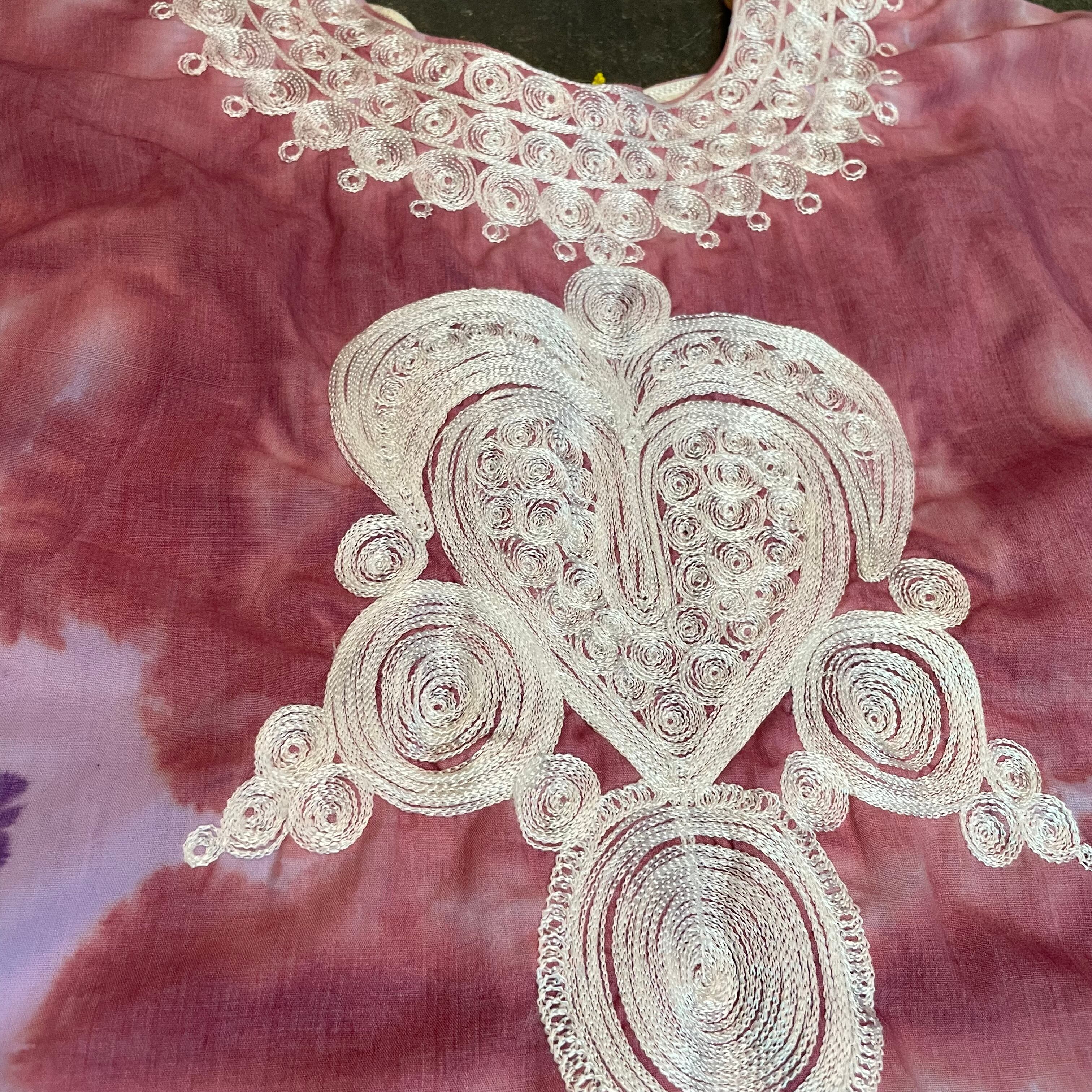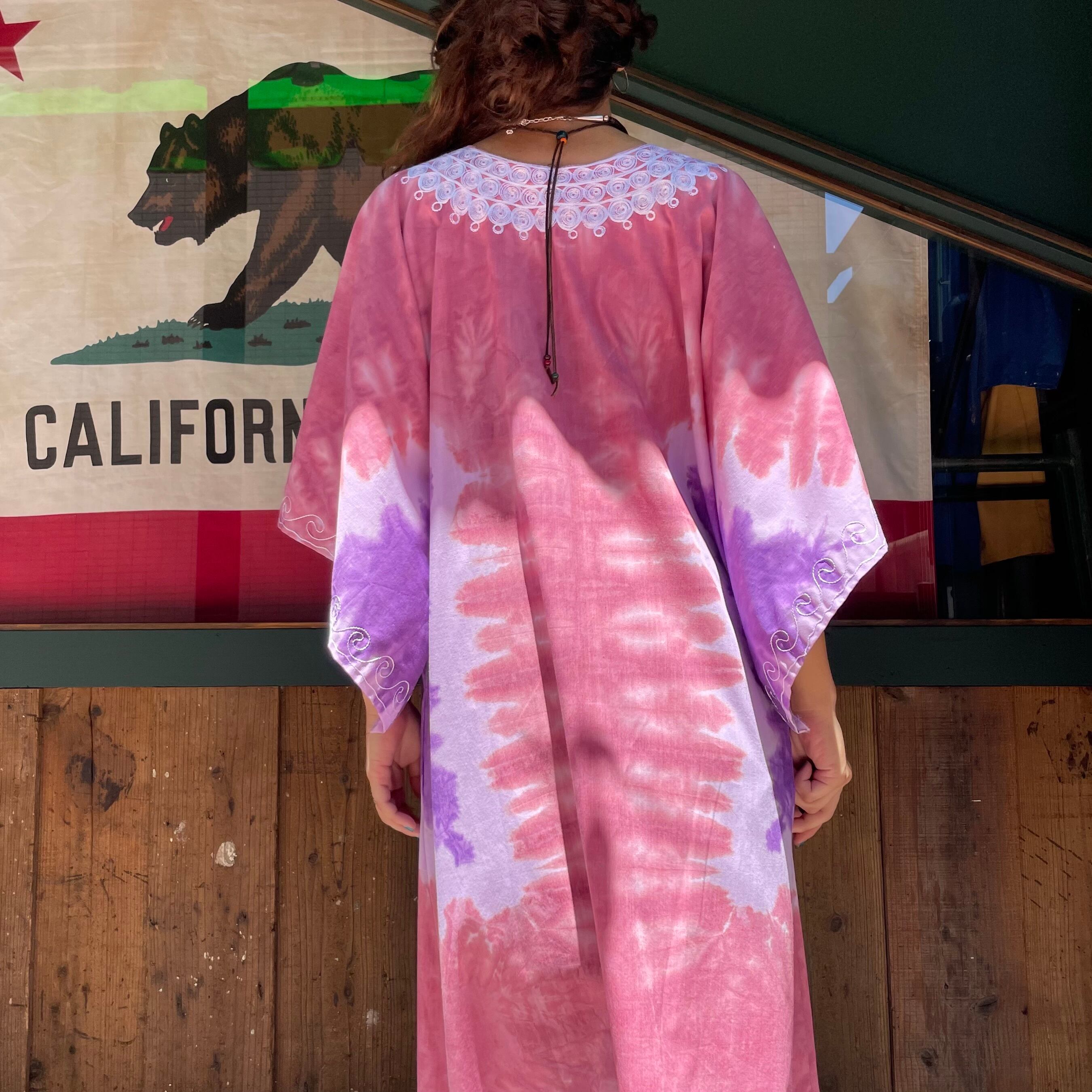 きれいな色味の染めと細かい機械刺繍がとても素敵なワンピースです。