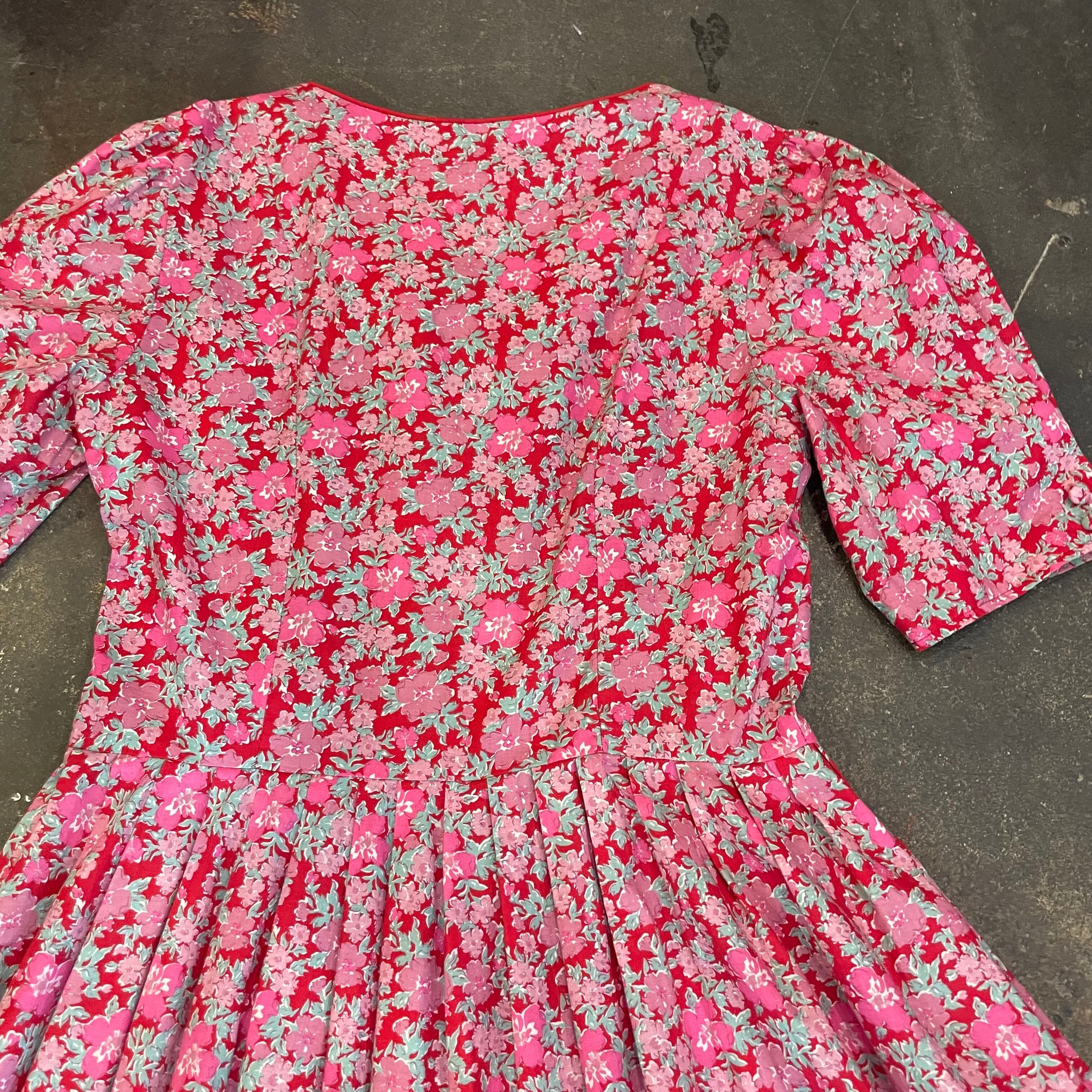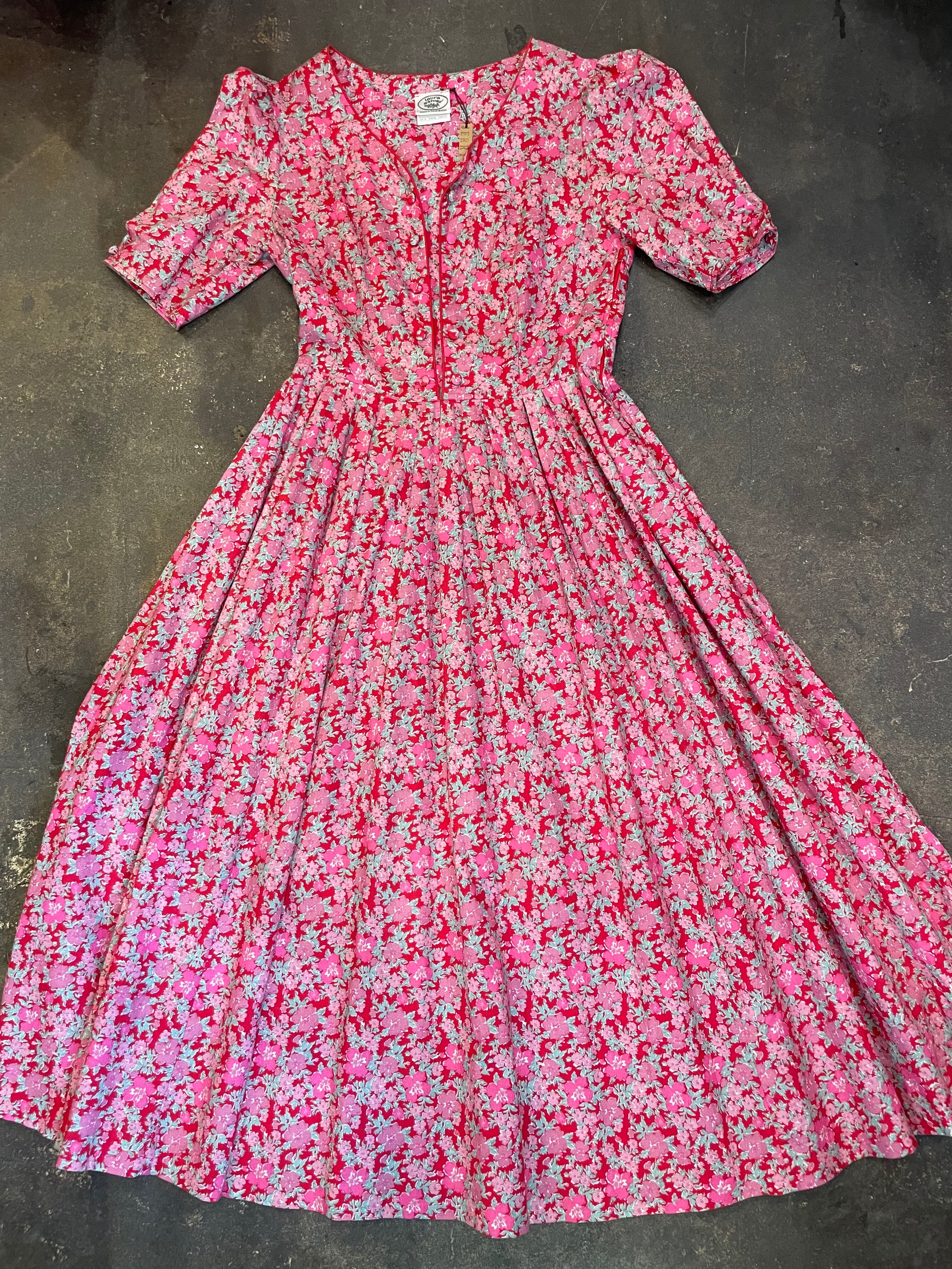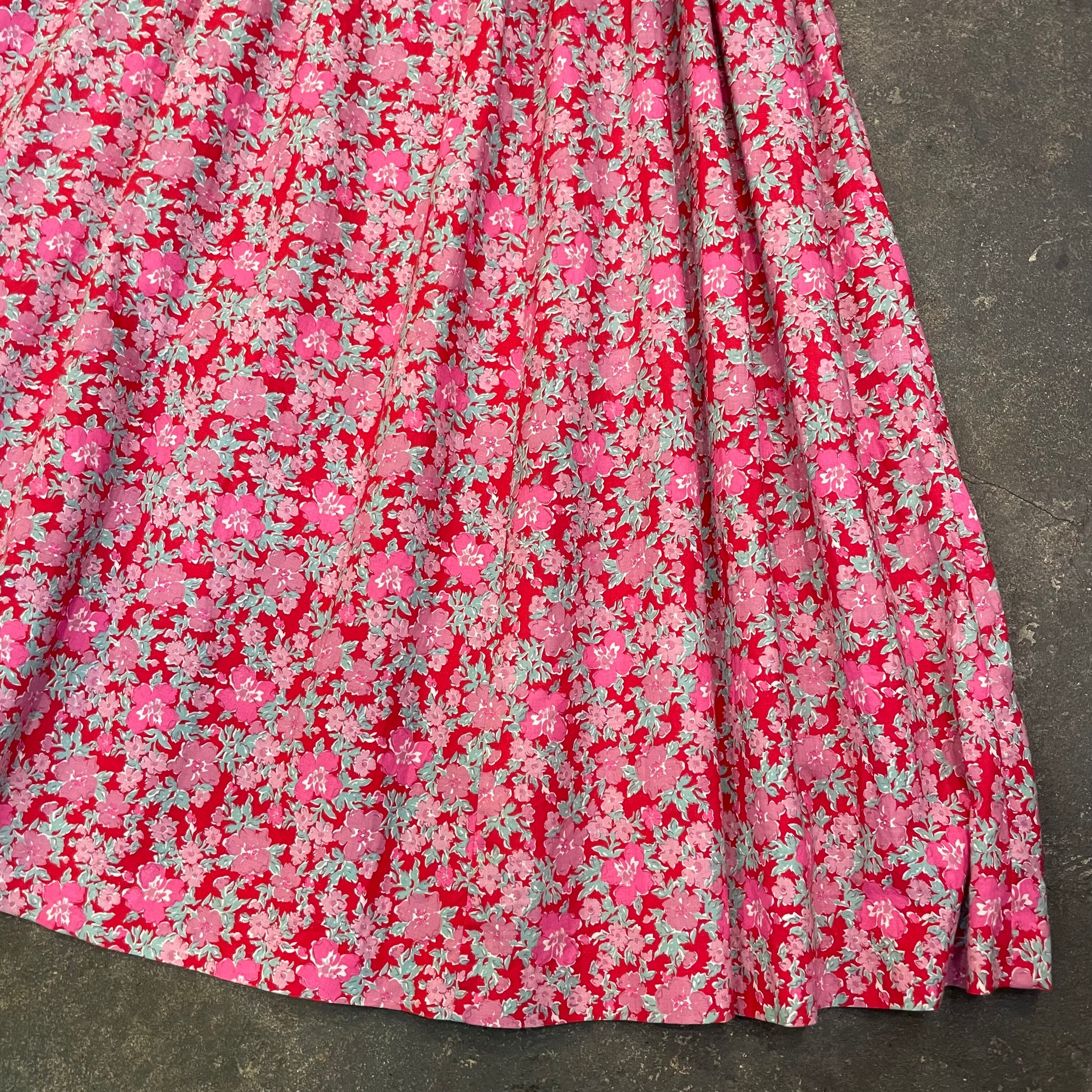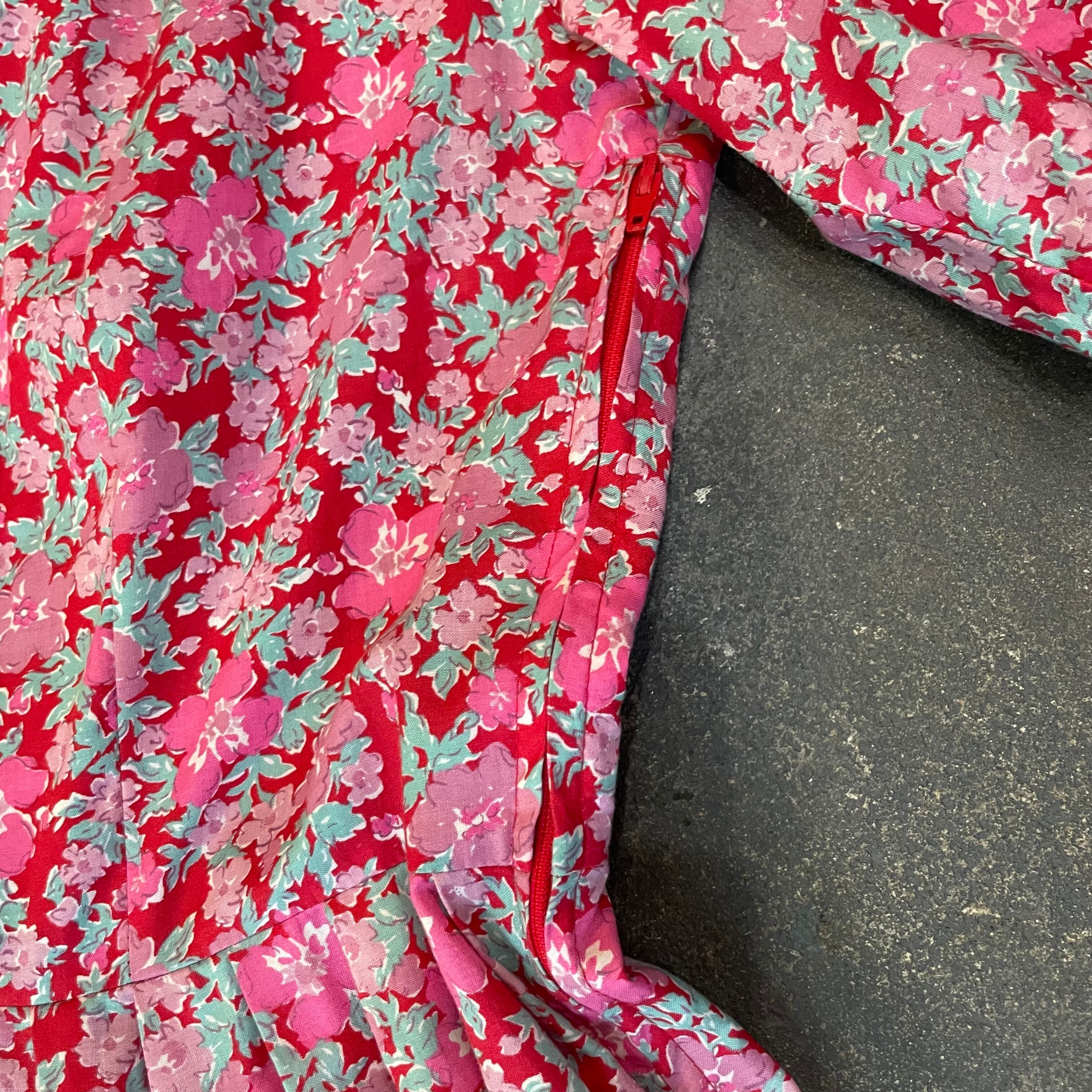 赤ベースにピンクの花柄というなんともかわいらしい色味のワンピースです。