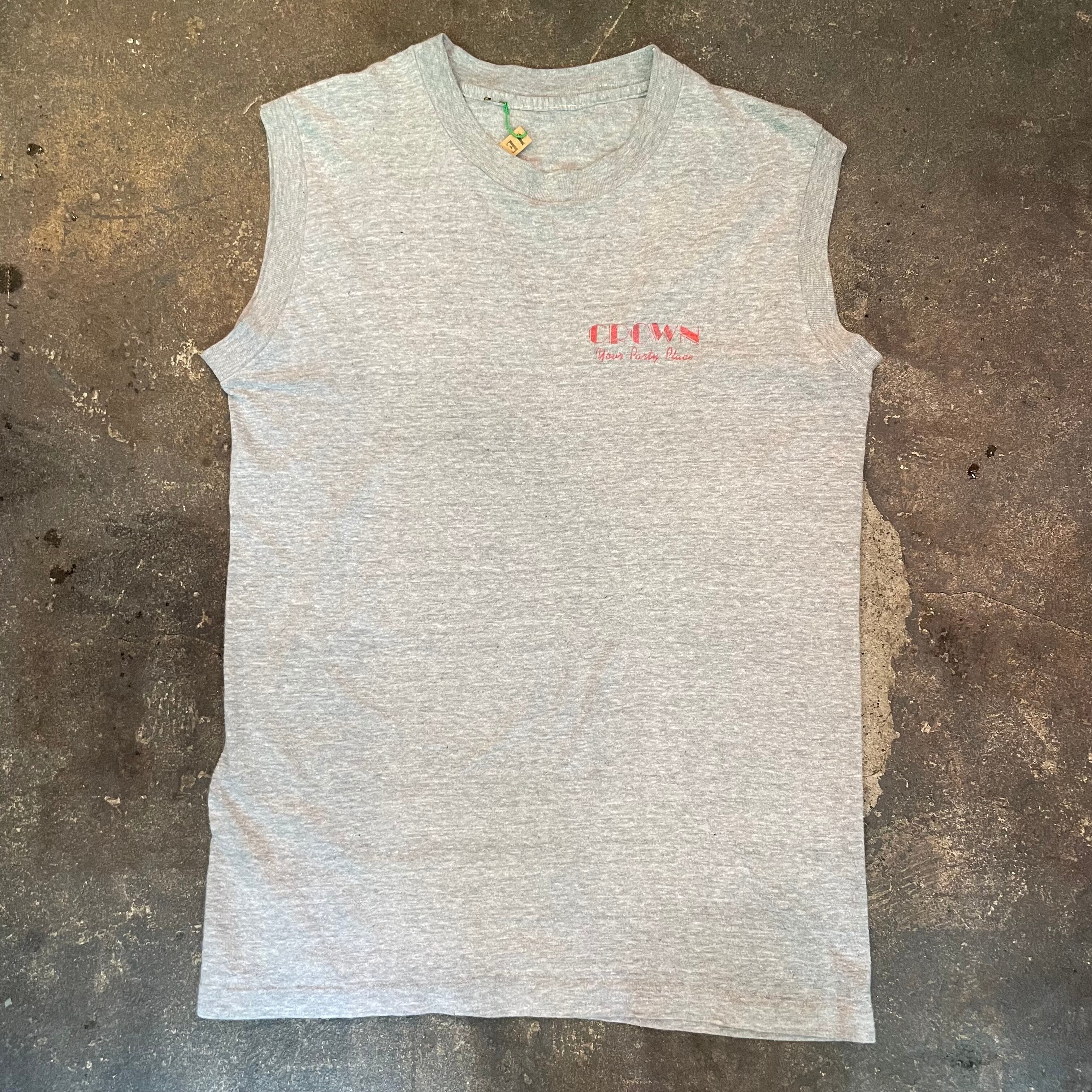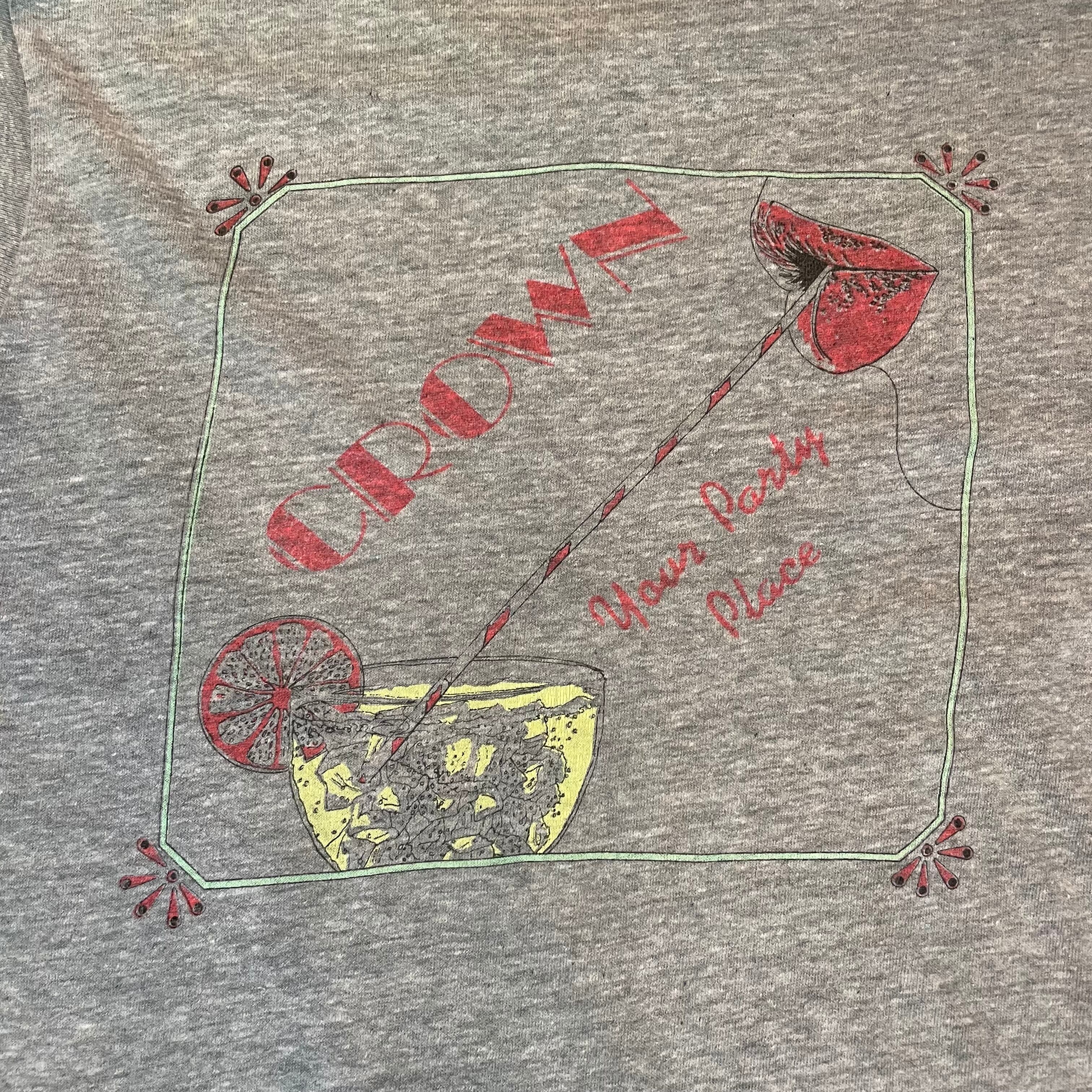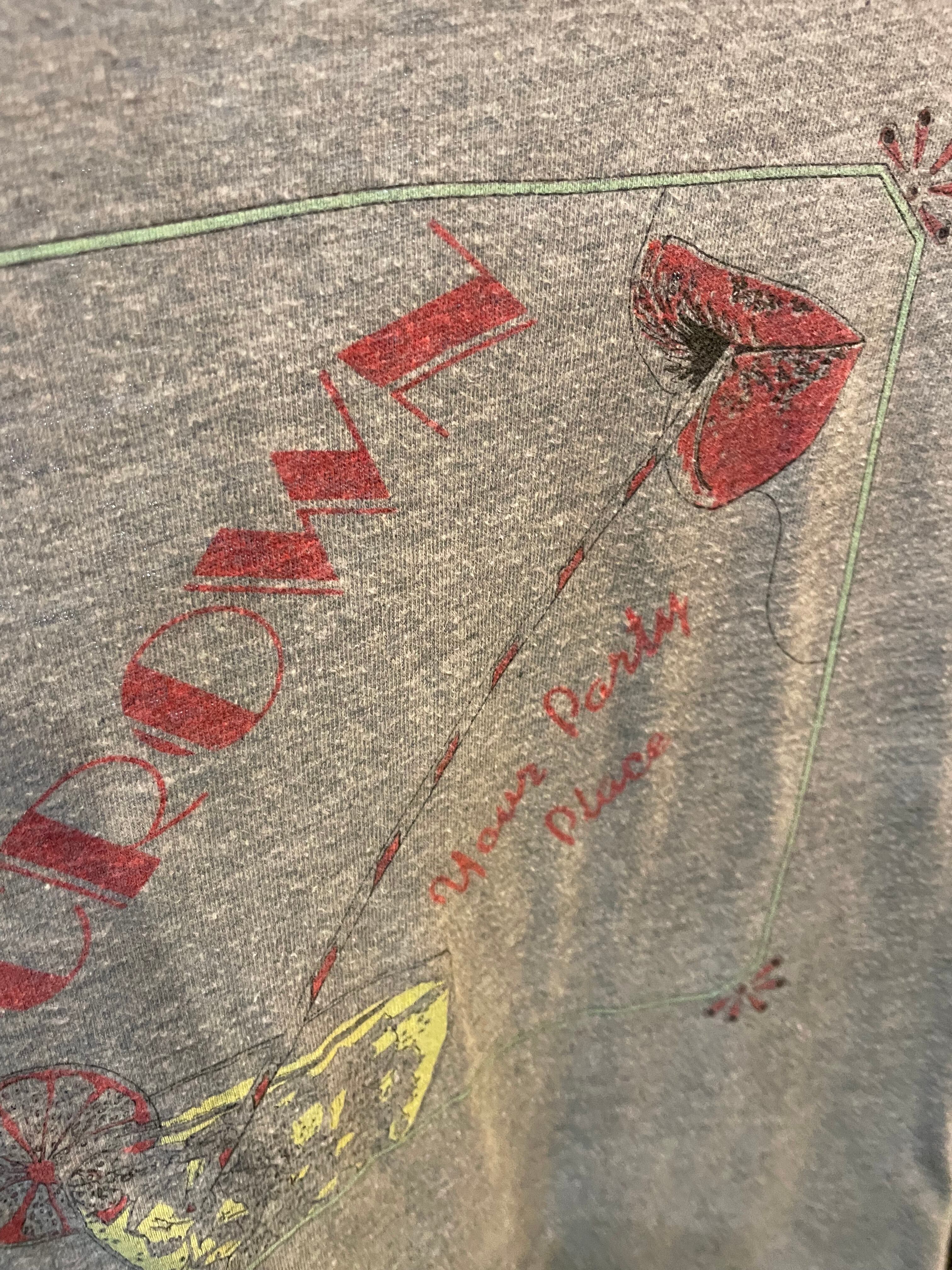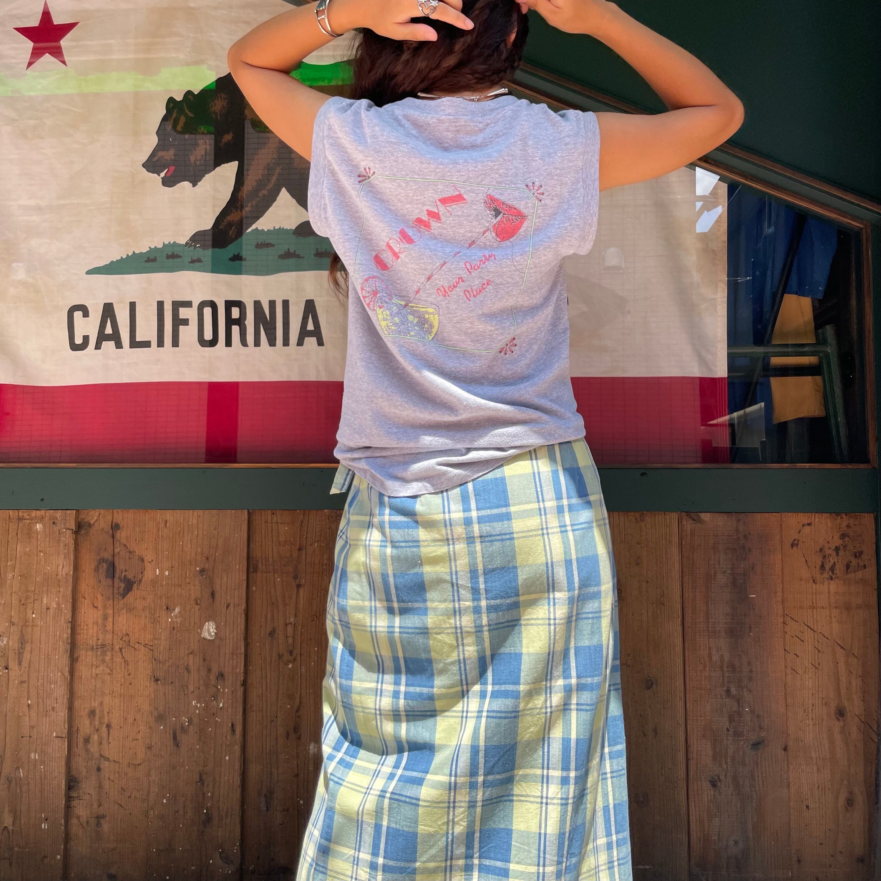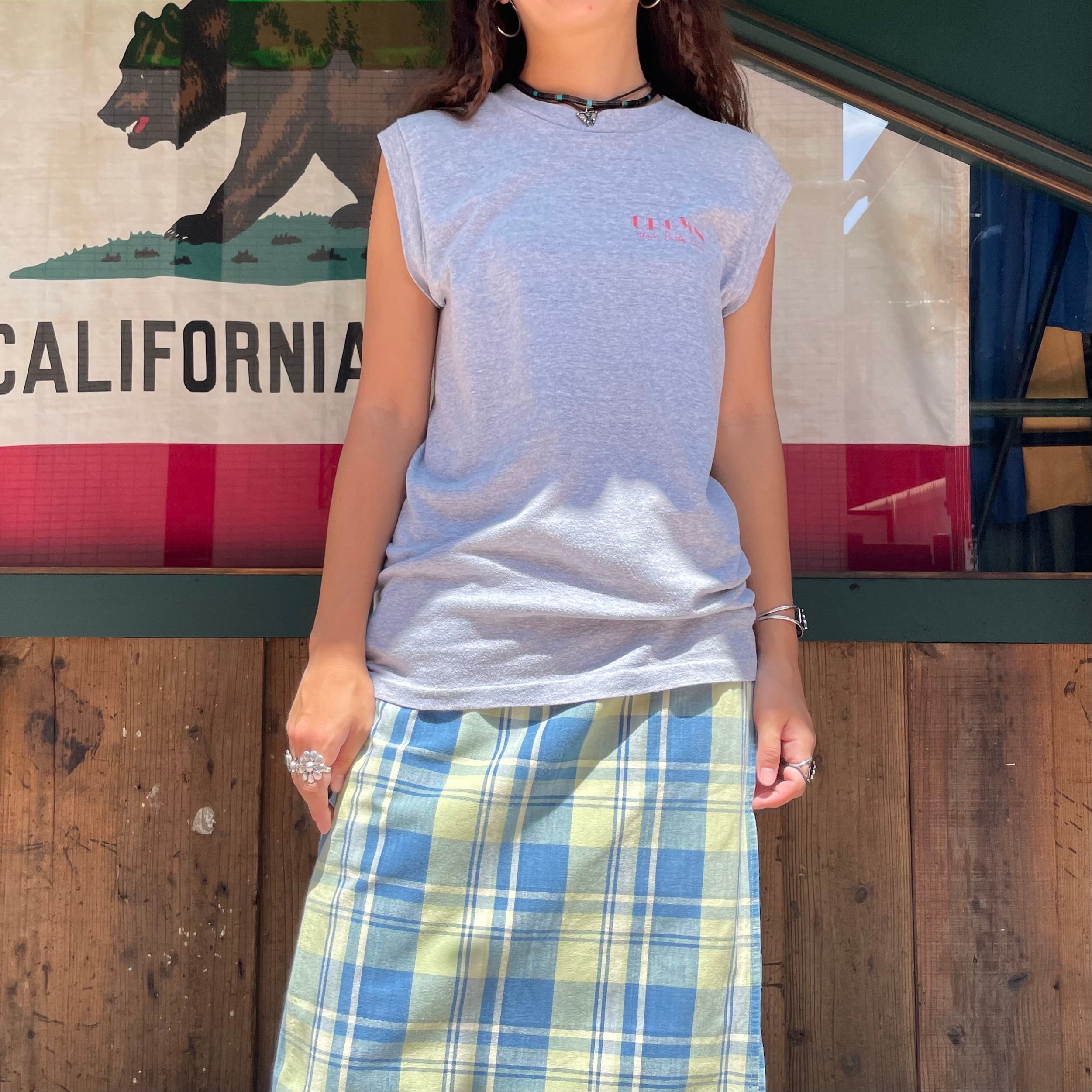 バックプリントがとてもかわいいタンクトップです。レモネード?お酒?を呑んでいる唇のデザインがポップで、それが背中なところが良いですね。前はロゴのみのシンプルな感じが合わせやすいと思います。
