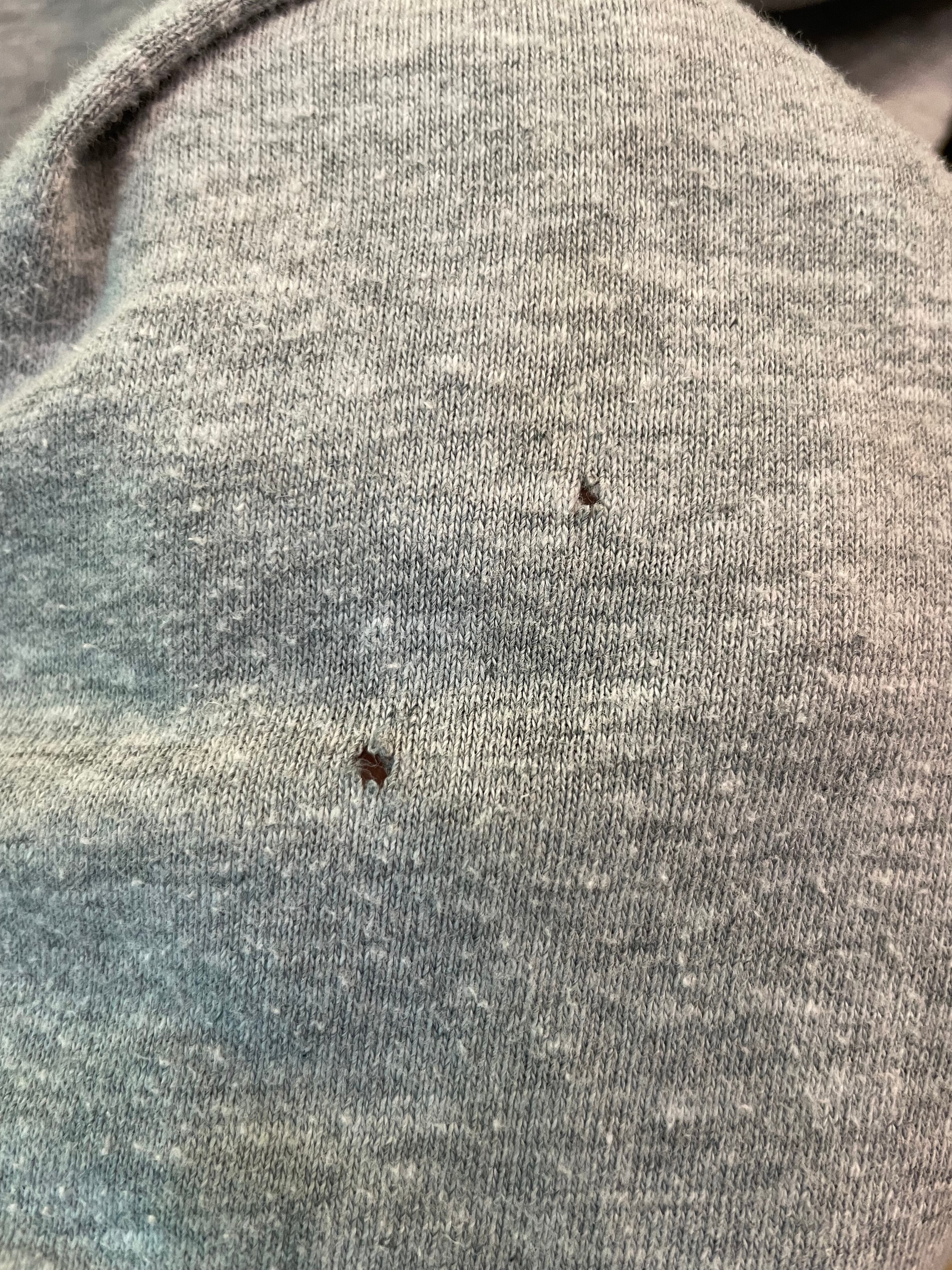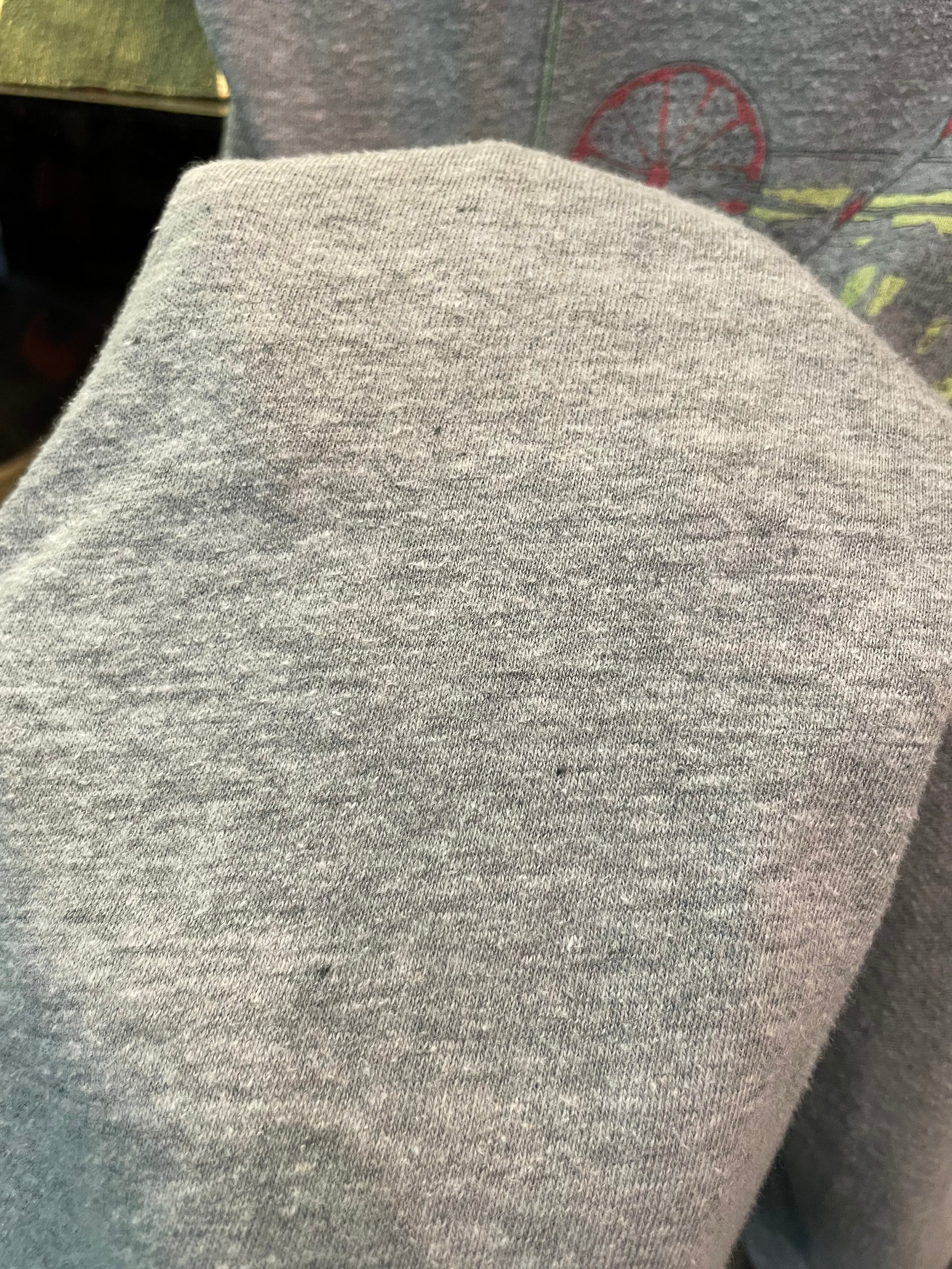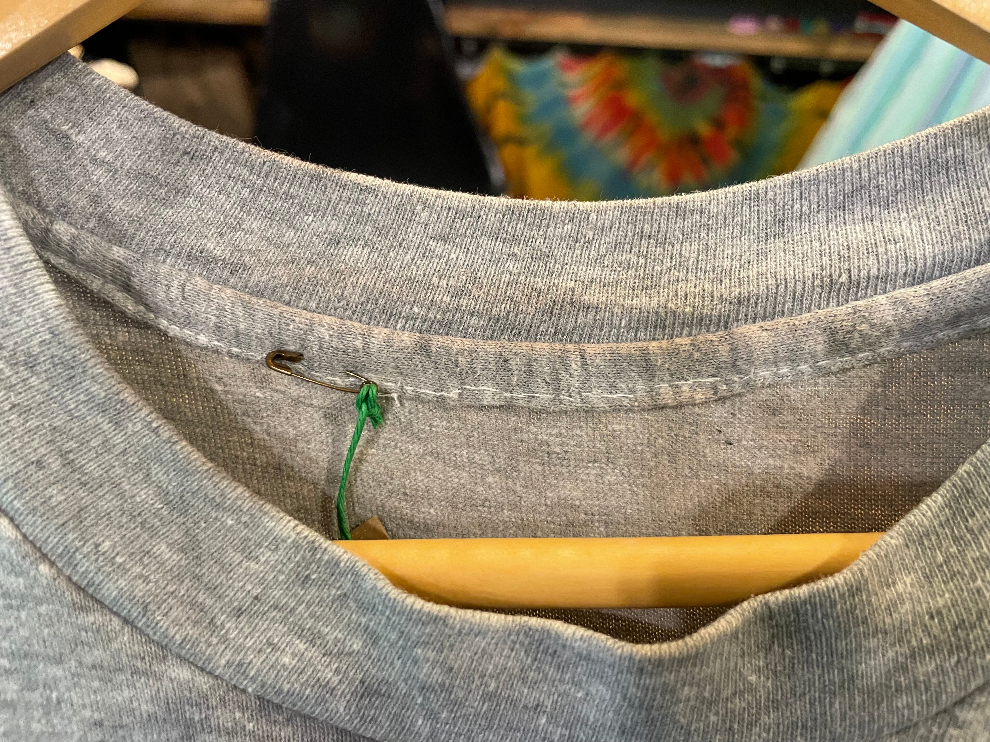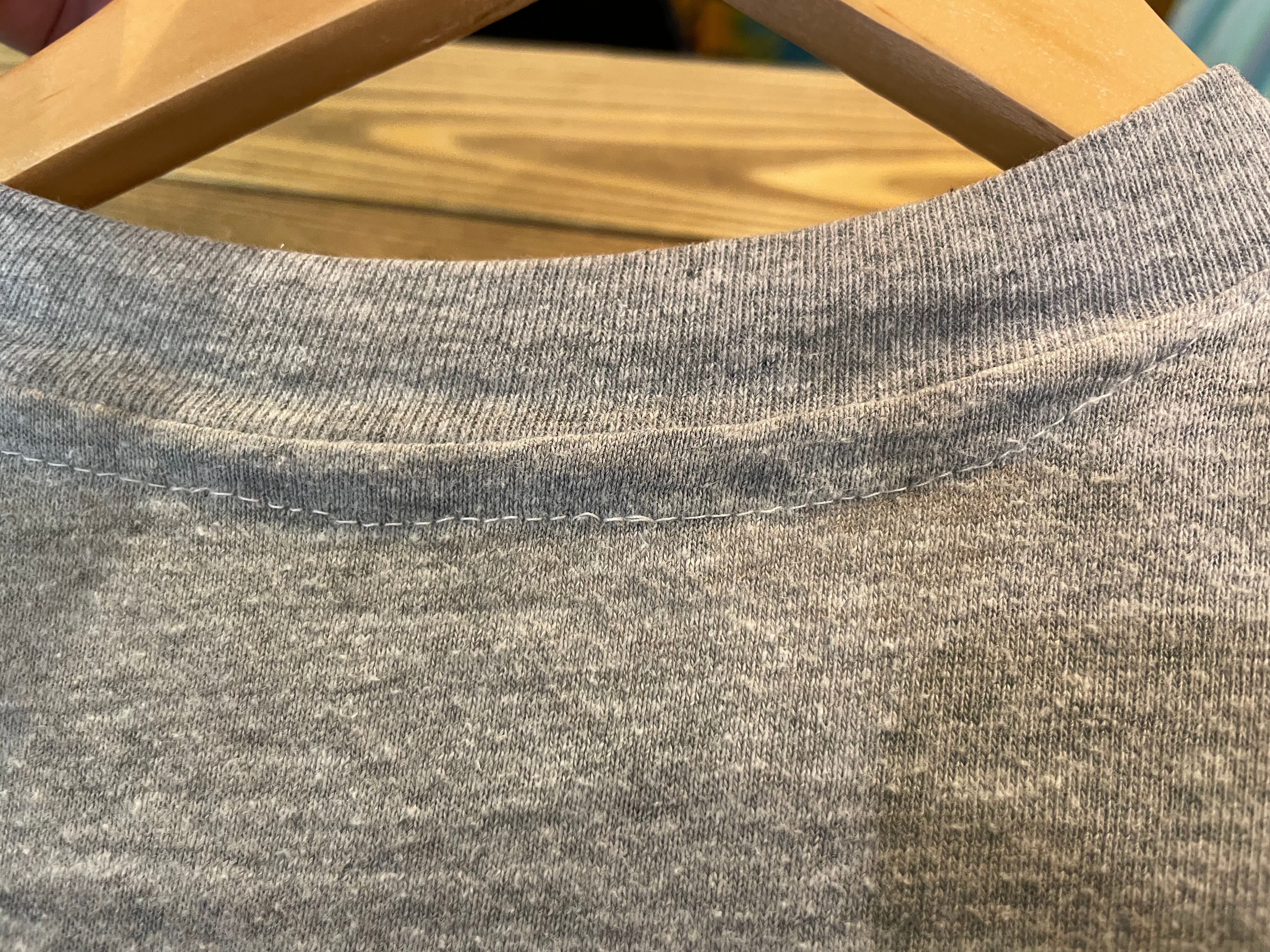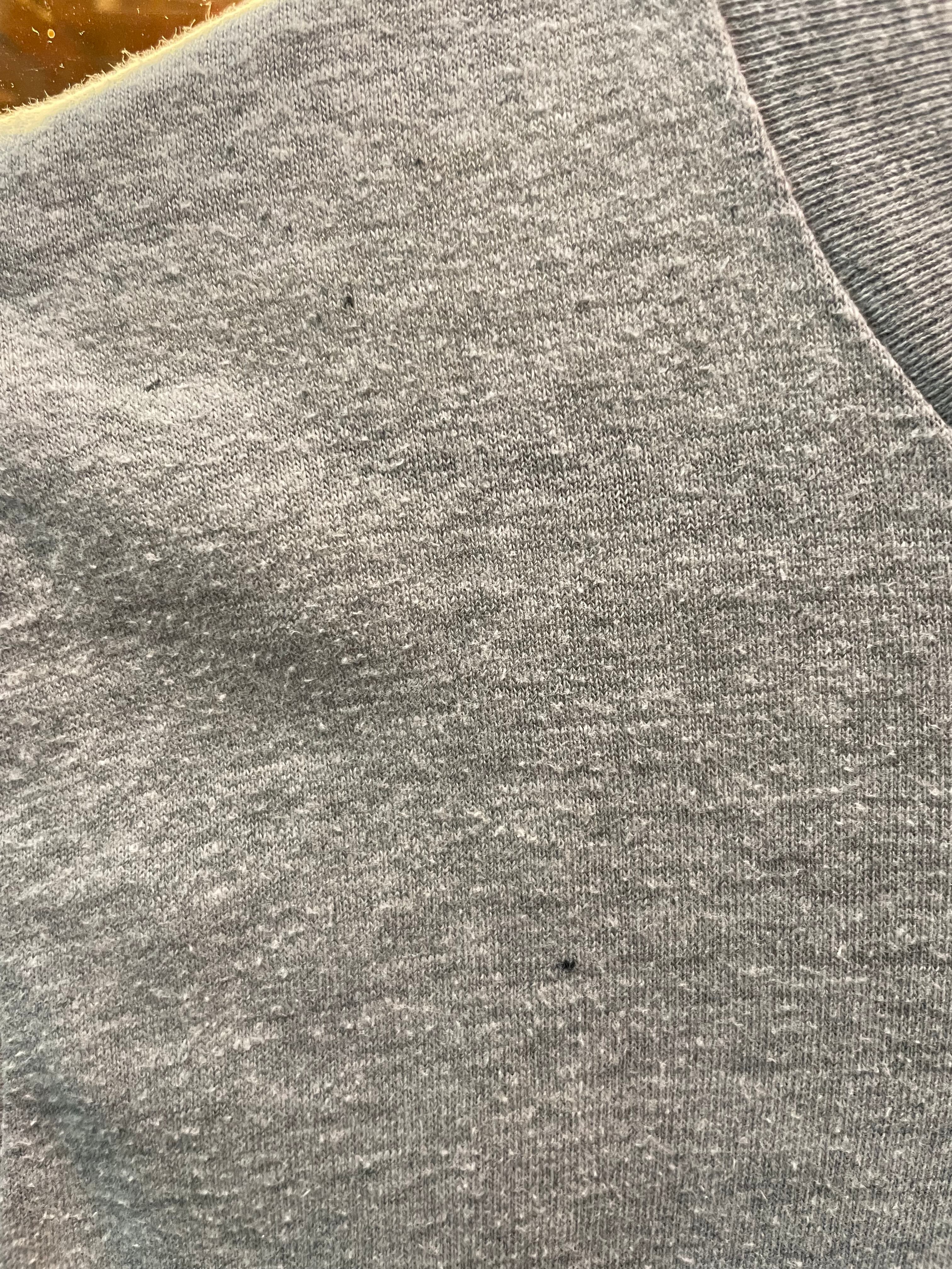 シミやキズ、襟ぐりのほつれリペア、全体的な毛羽立ち等、ダメージのある商品です。
