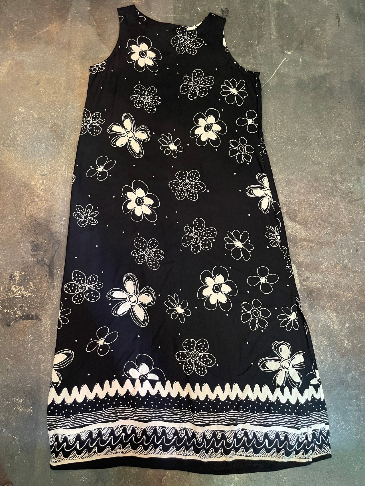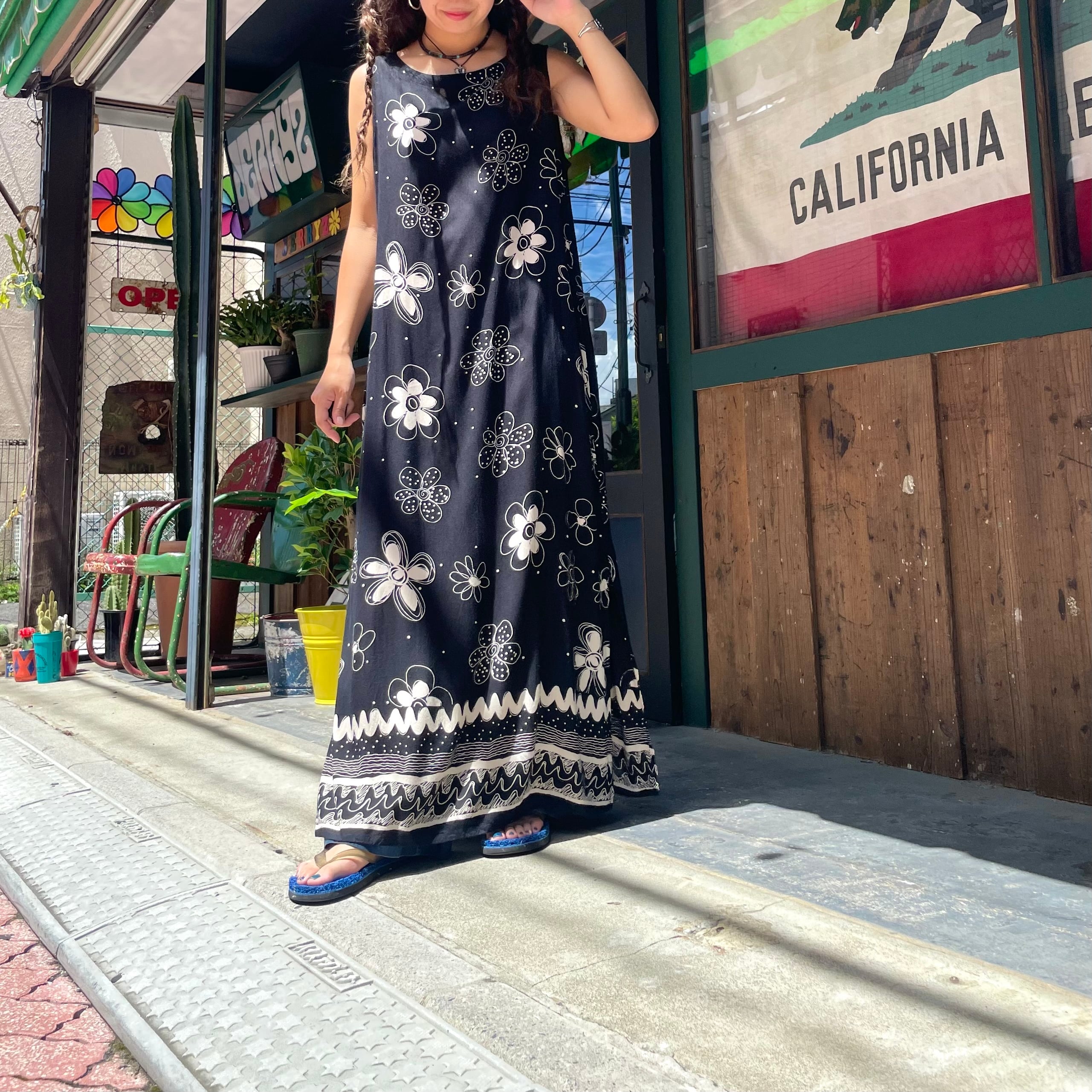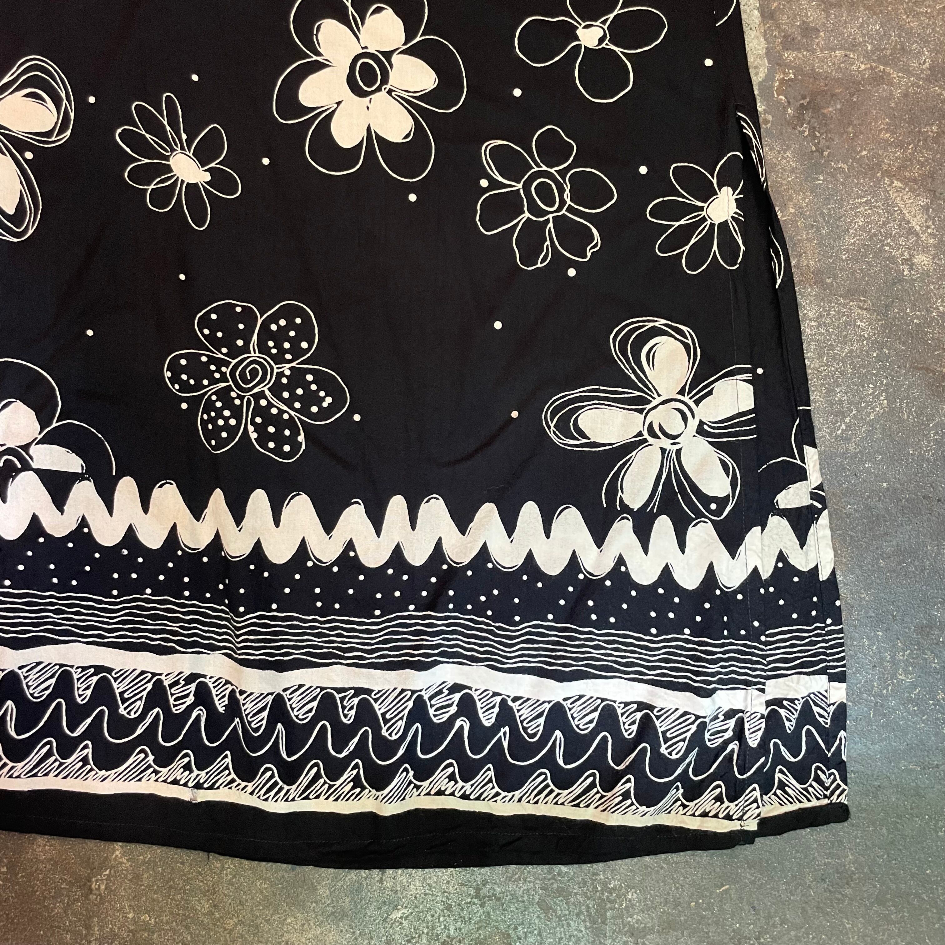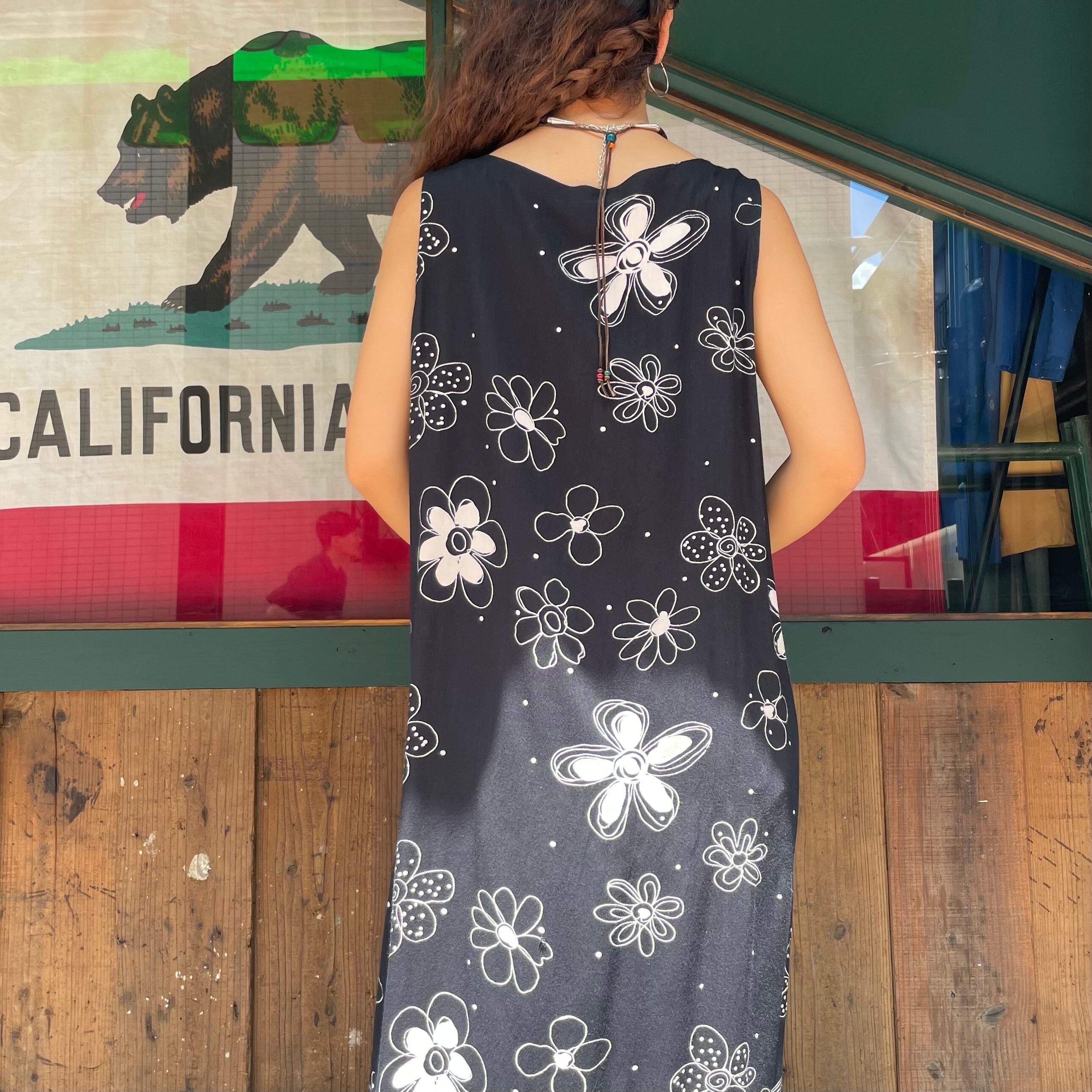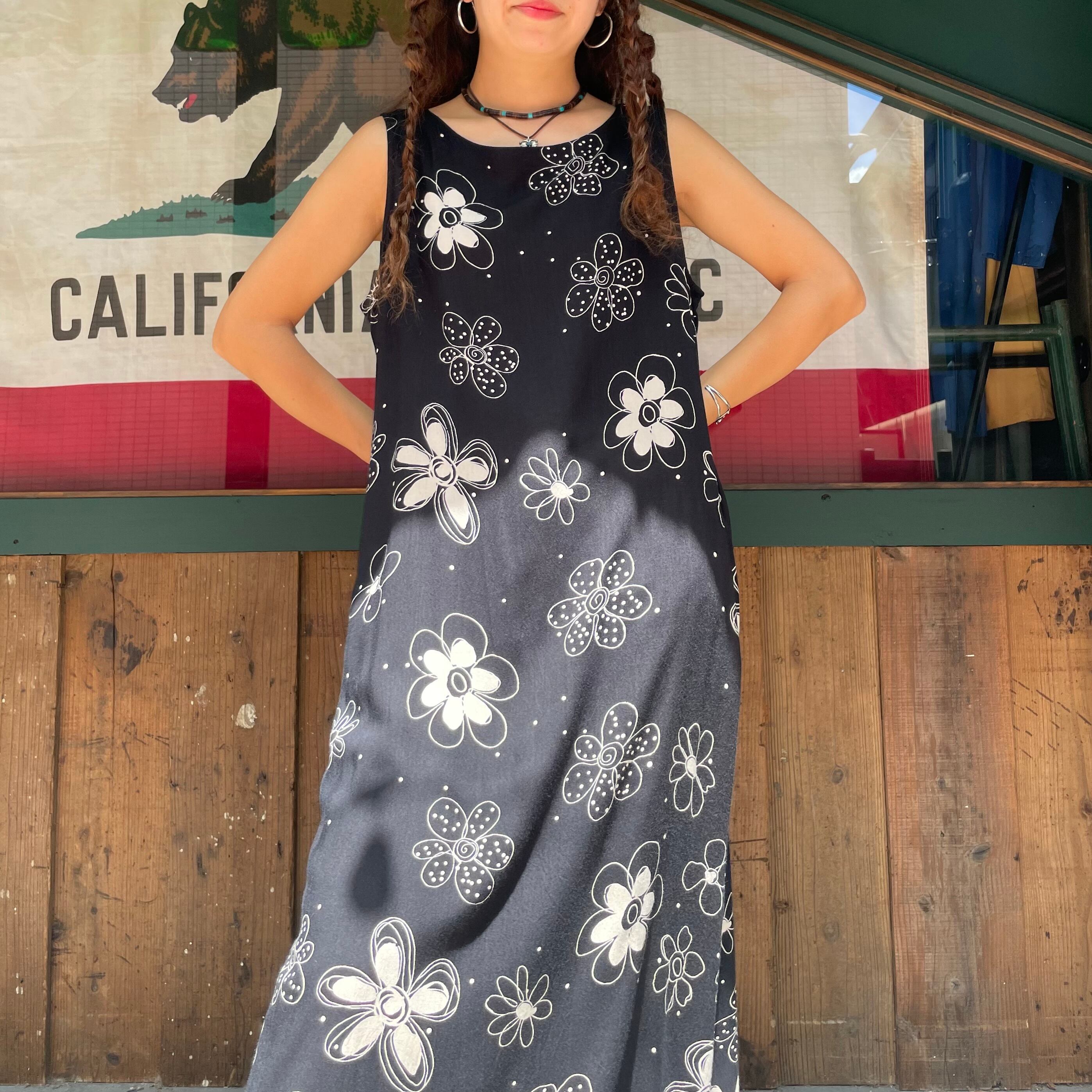黒地に落書きのような花柄がかわいいワンピースです。