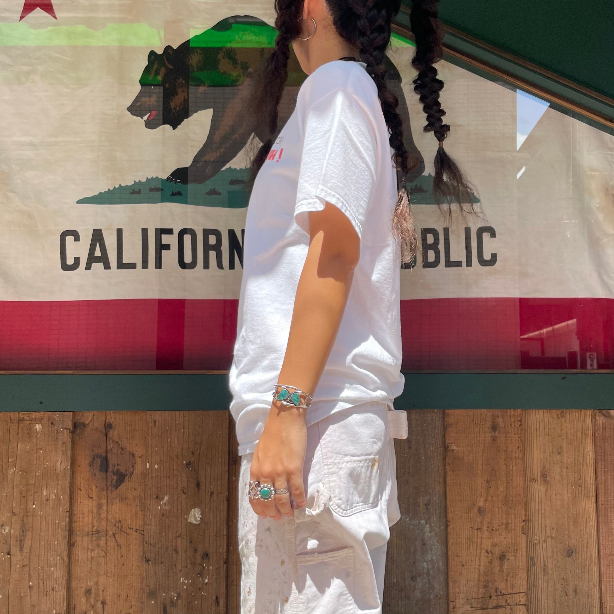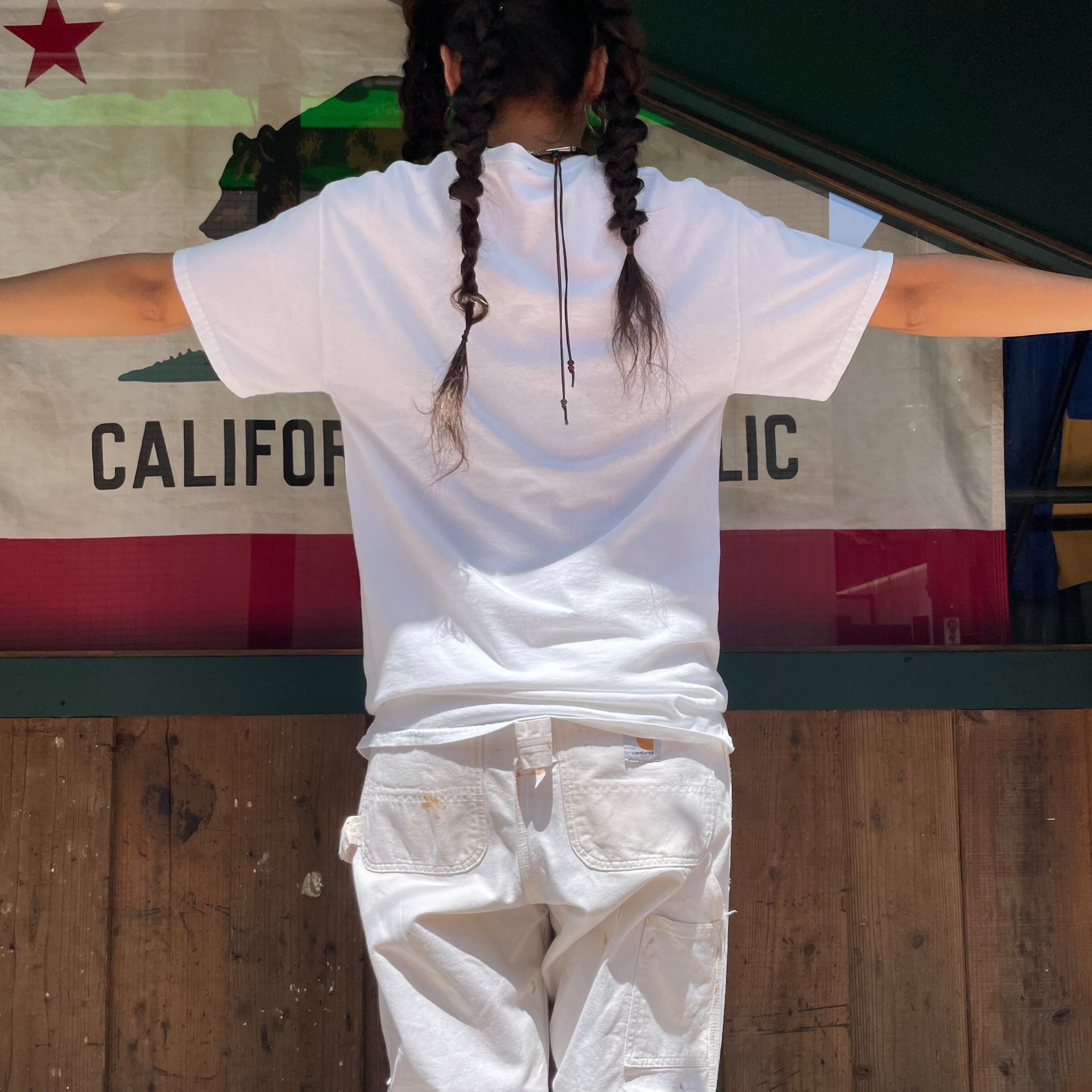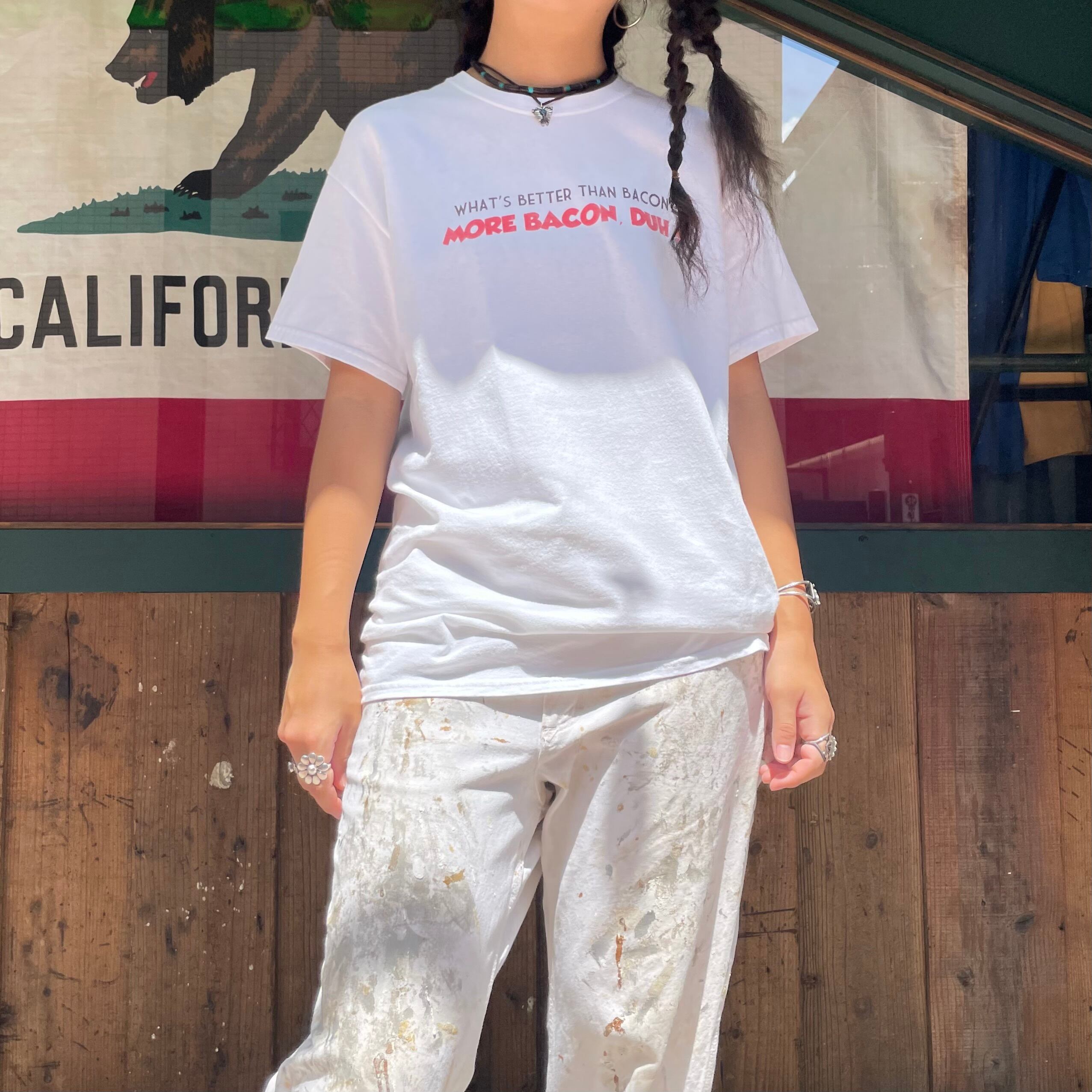 白地にシンプルな文字のみのプリントがかわいいTシャツです。