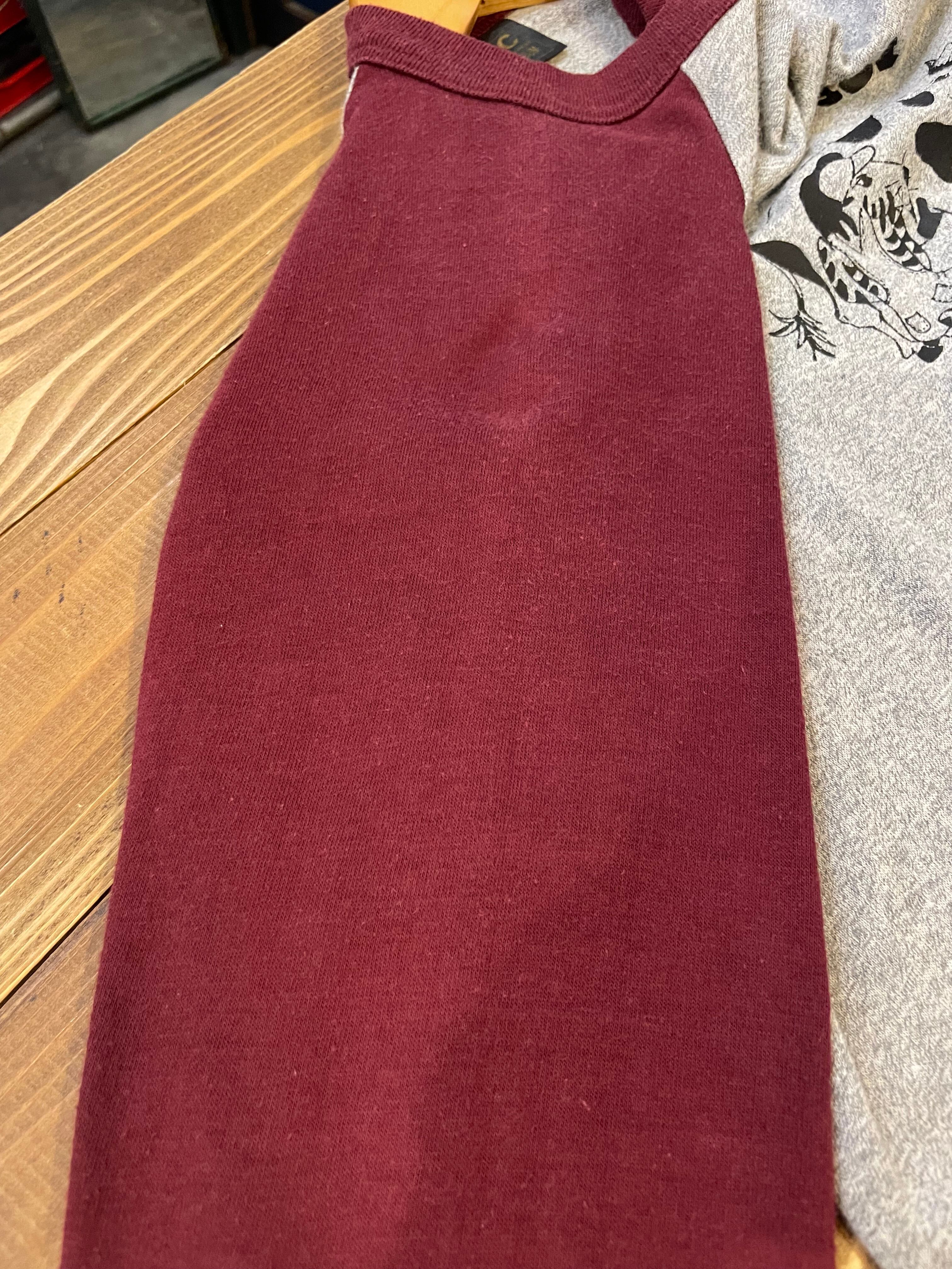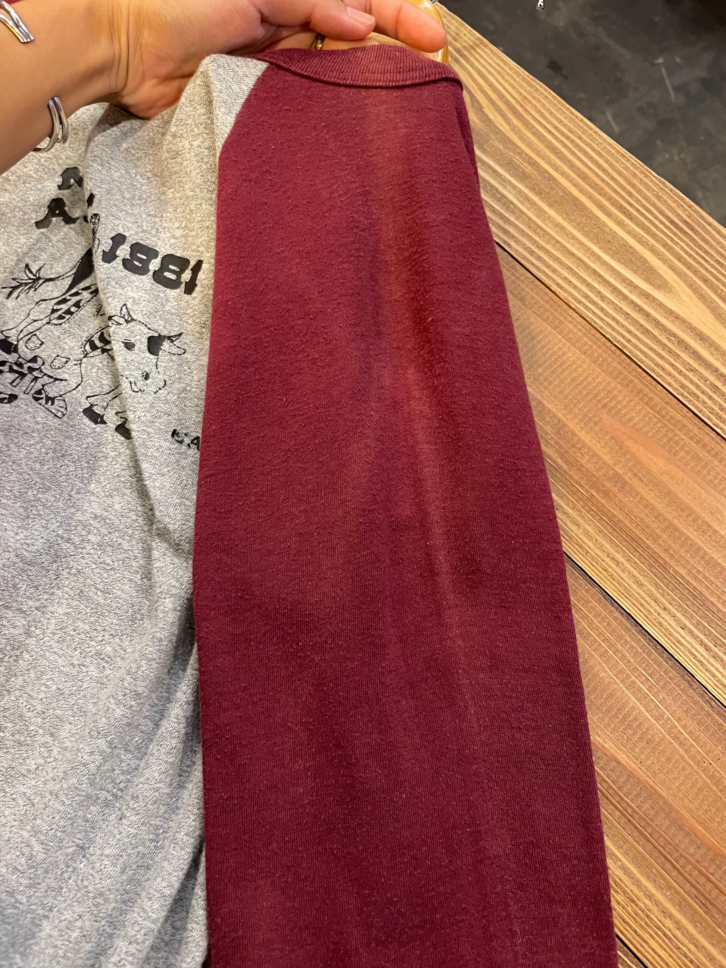 袖の日焼けや全体的な毛羽立ち、プリントの剥げ等全体的に使用感のある商品ですので古着にご理解のある方のご購入をお願い致します。