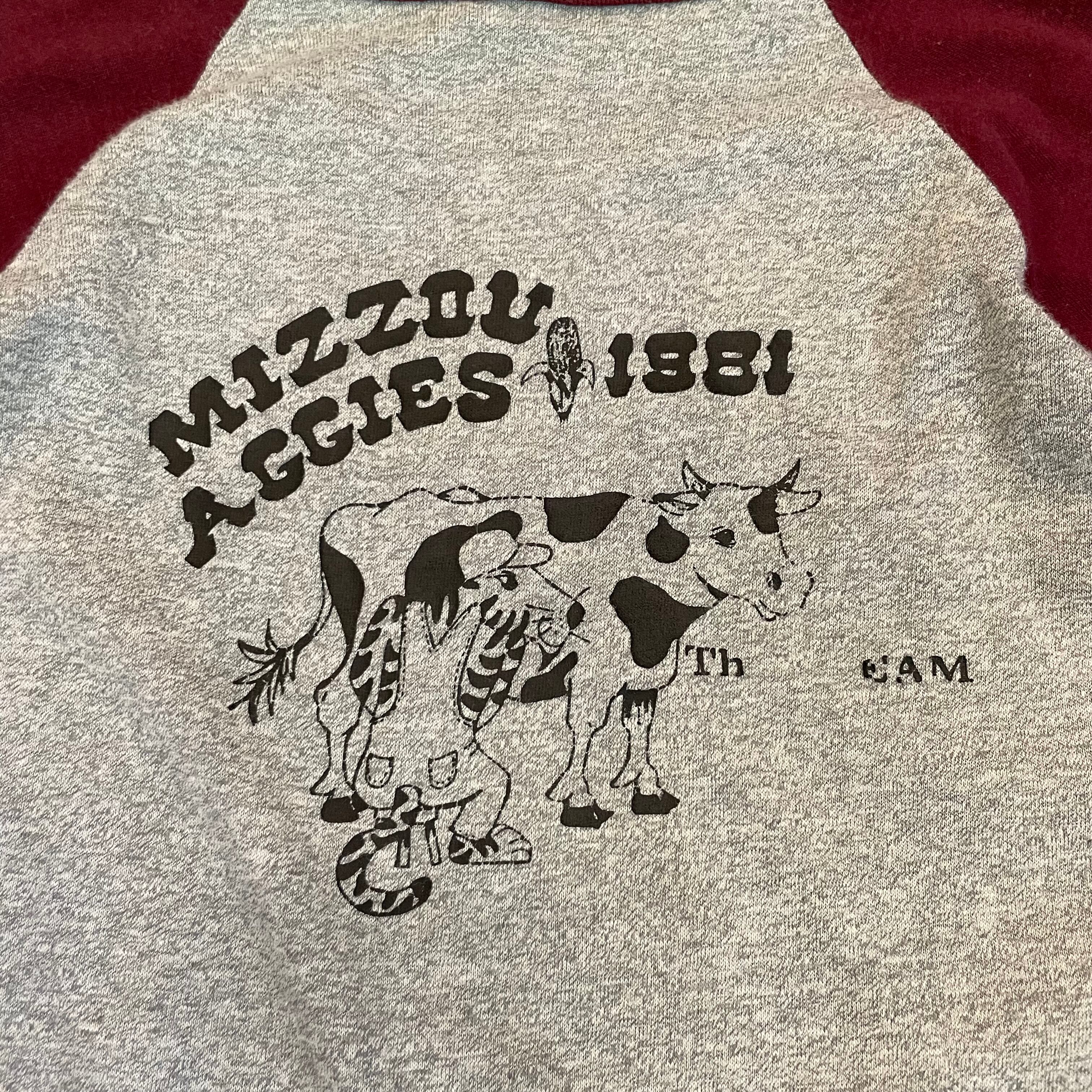 虎が牛の乳搾り?をしているイラストがかわいいラグランです。