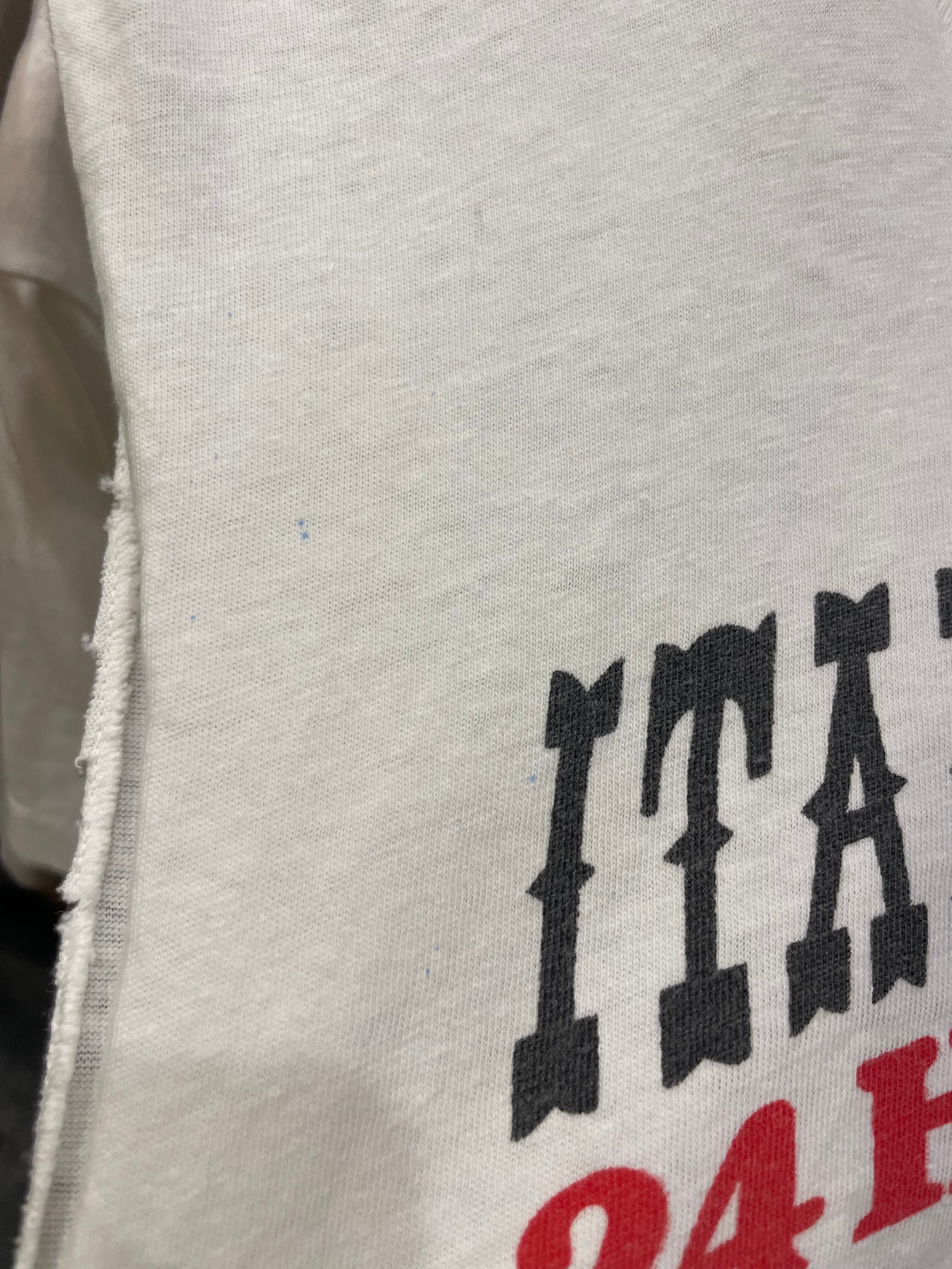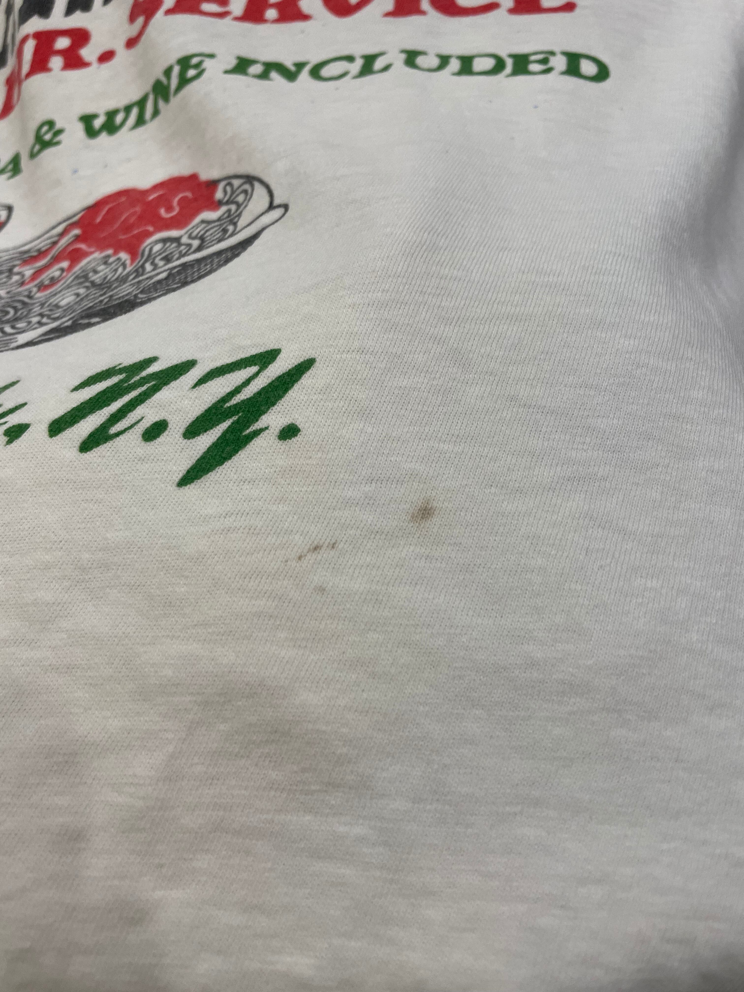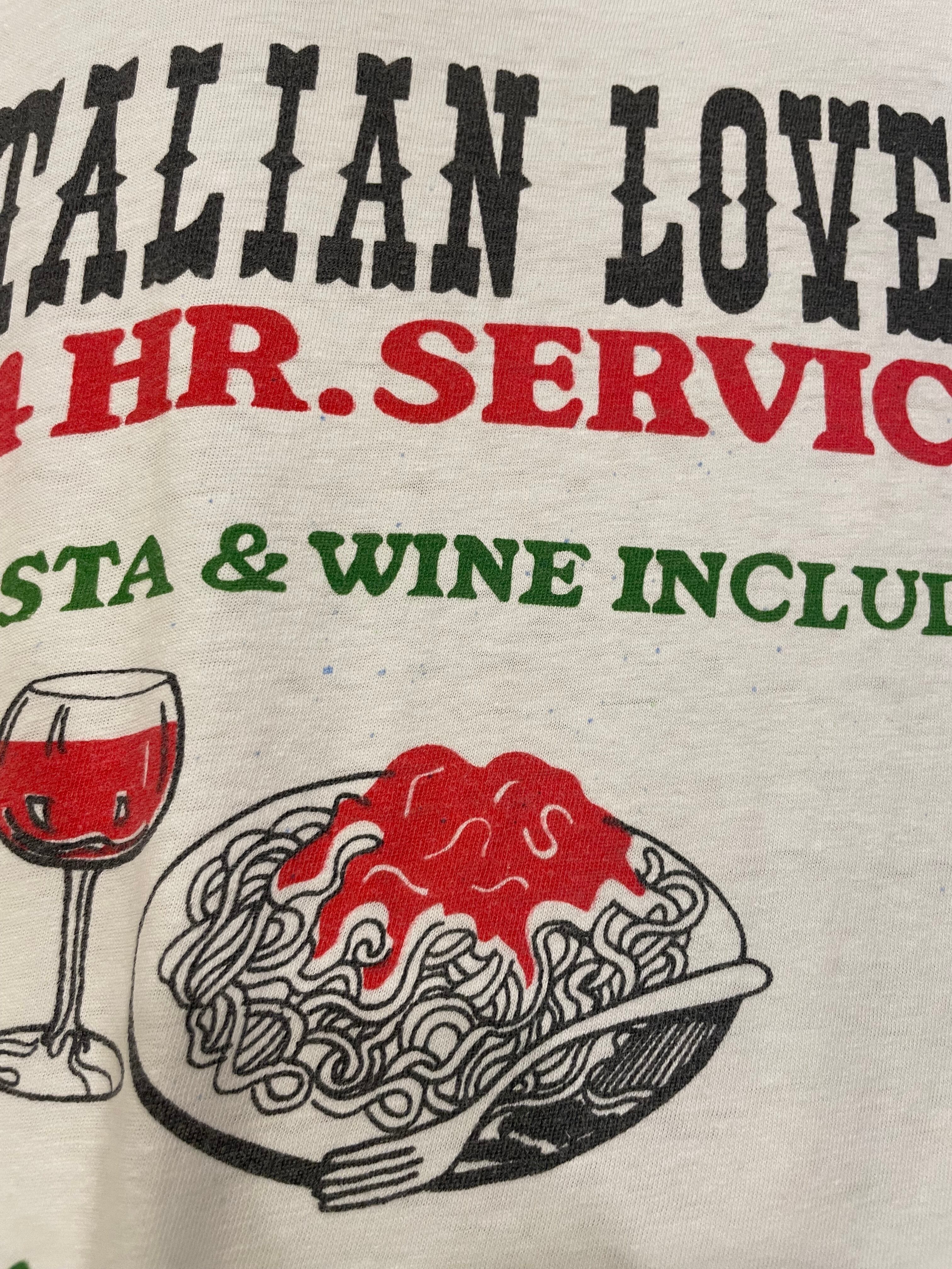 書体や色味イラストなど、とてもバランスの良い染み込みプリントがかわいい80年代USA製のTシャツです。