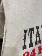袖が思い切りカットしてあり、ロックミシンがかけてあるものの破れやキズ等かなりダメージがあり、それが逆に雰囲気があってかっこいい一枚です。