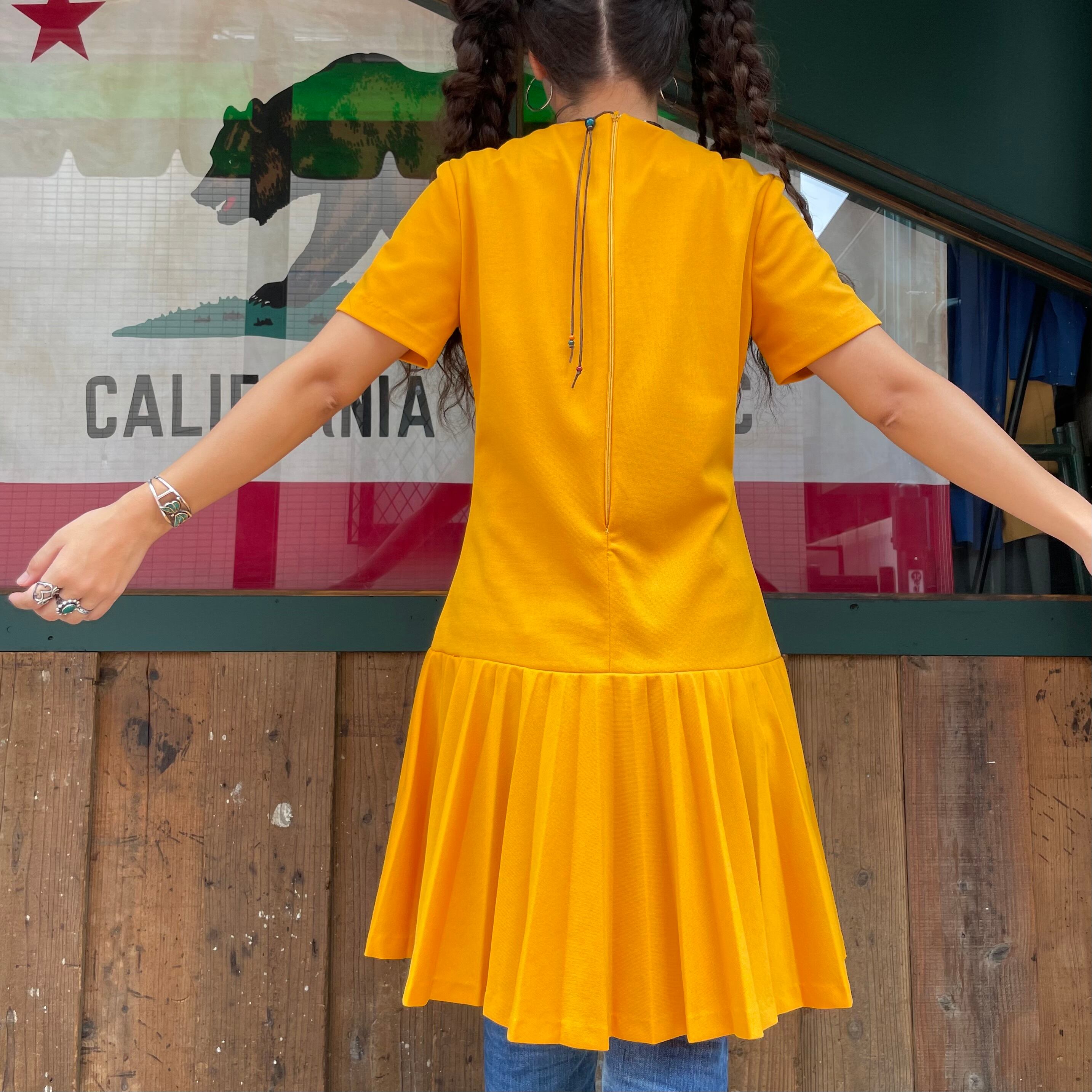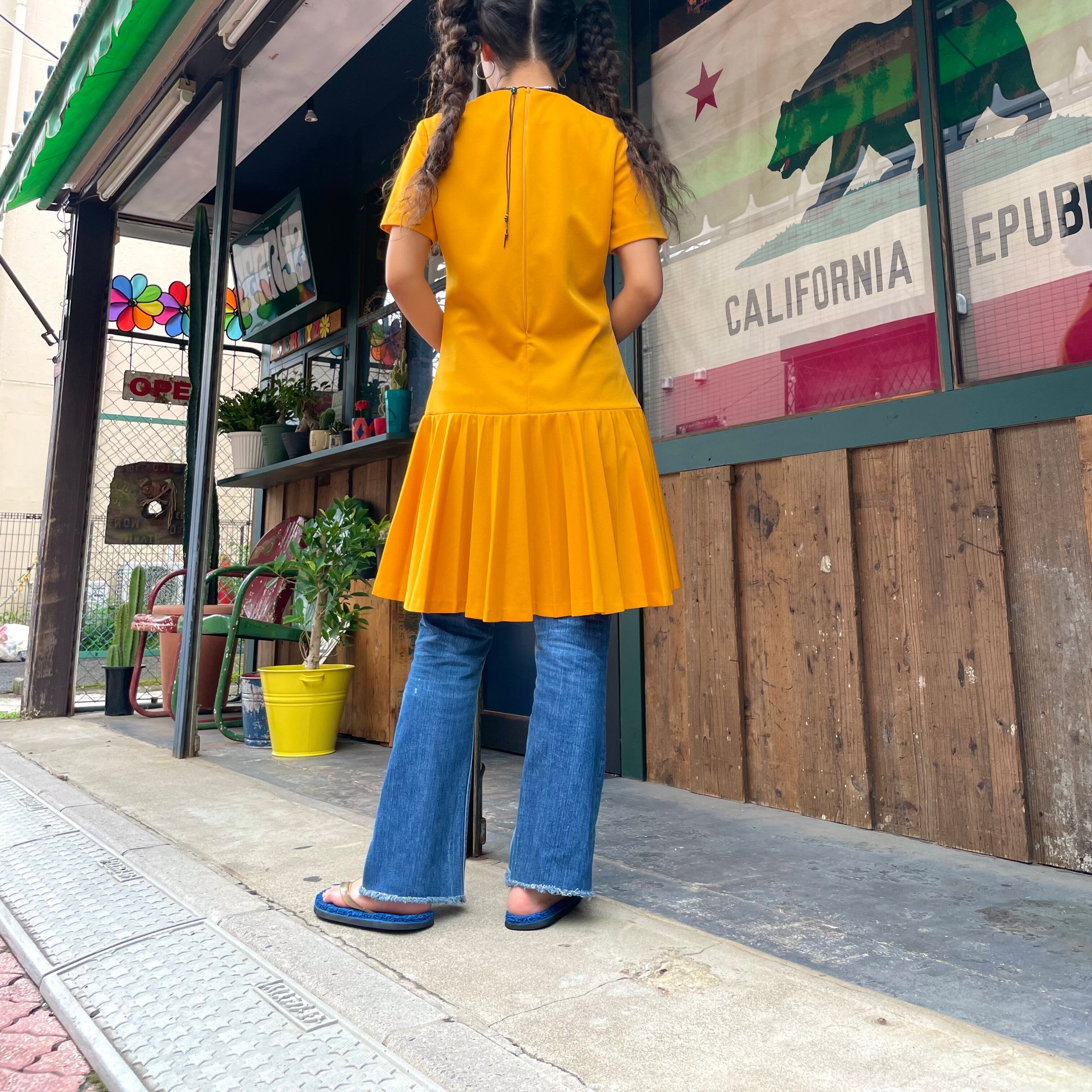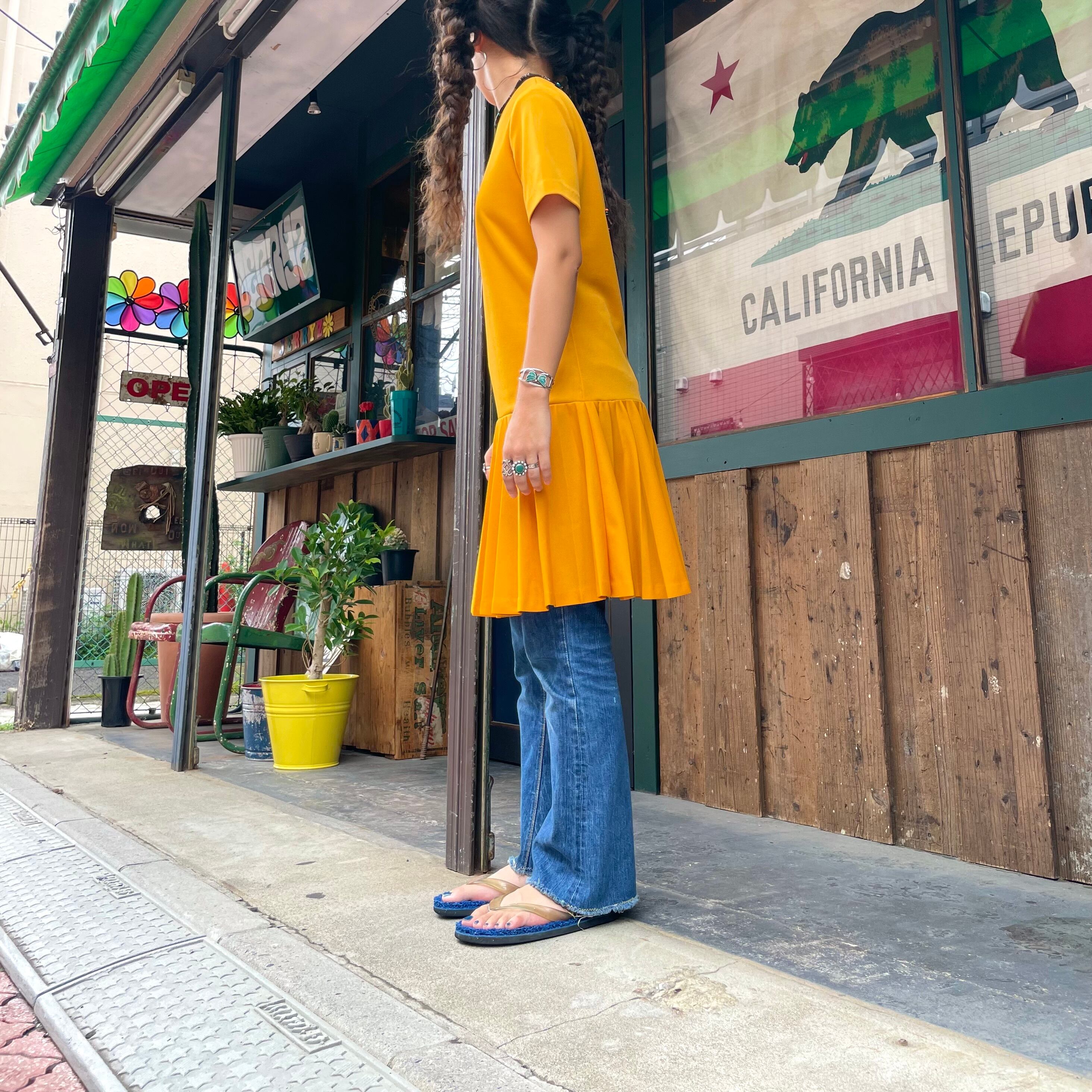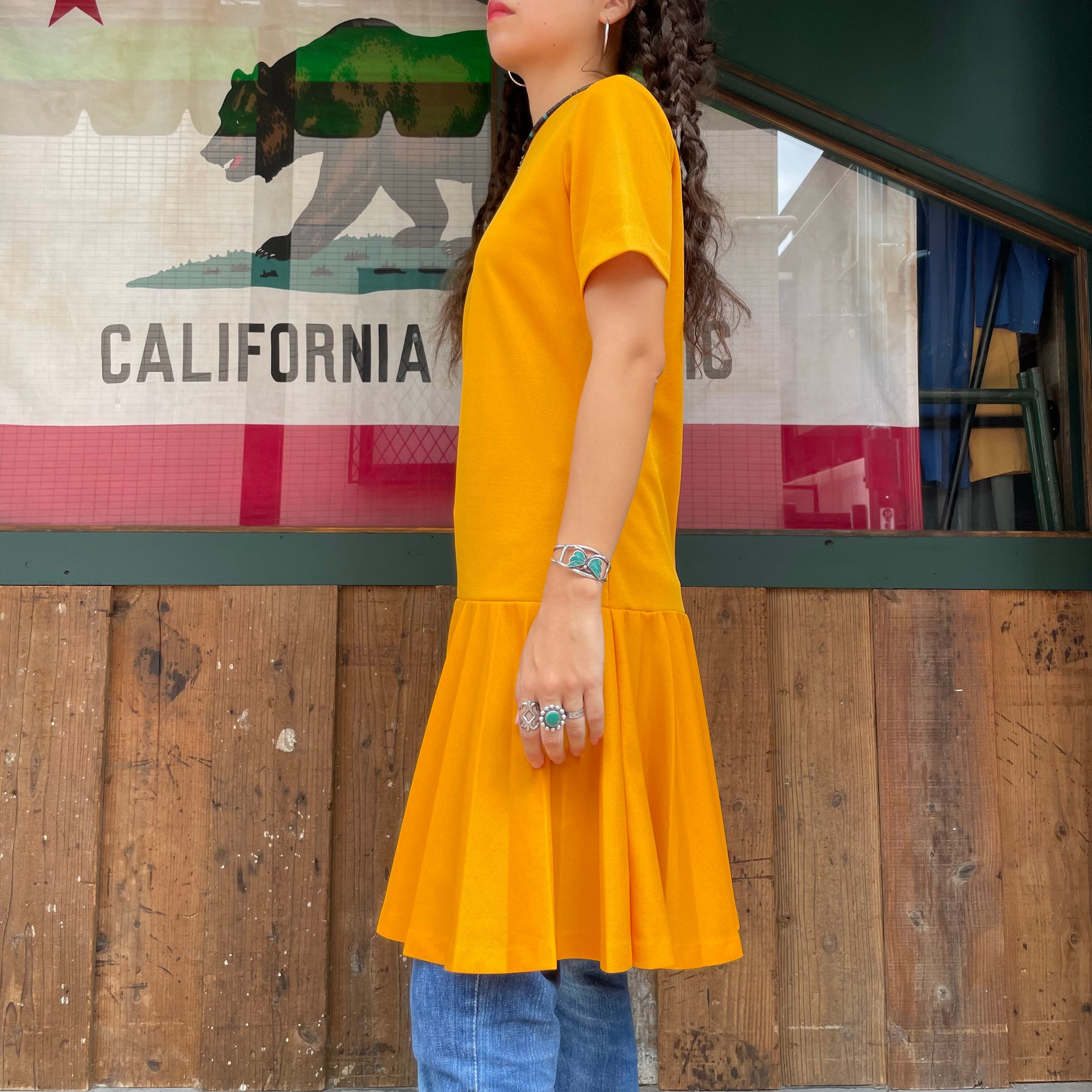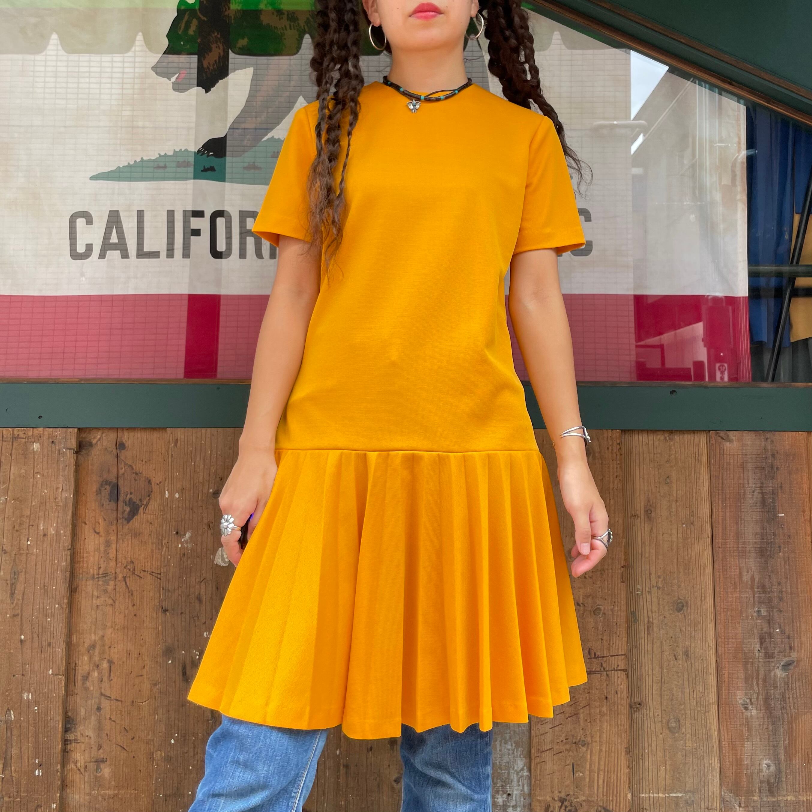 マスタード寄りな明るい黄色一色がかわいい、60年代頃のワンピースです。