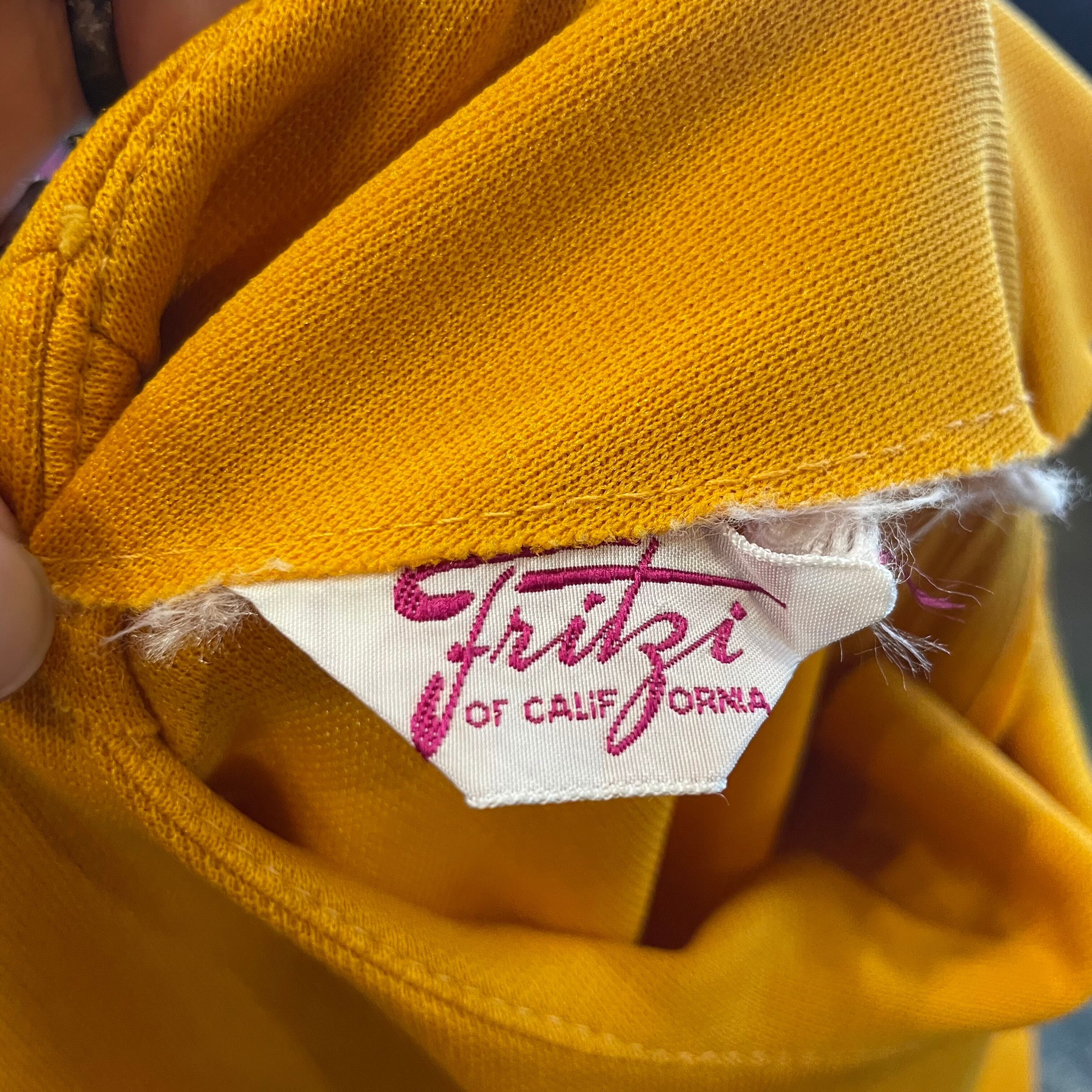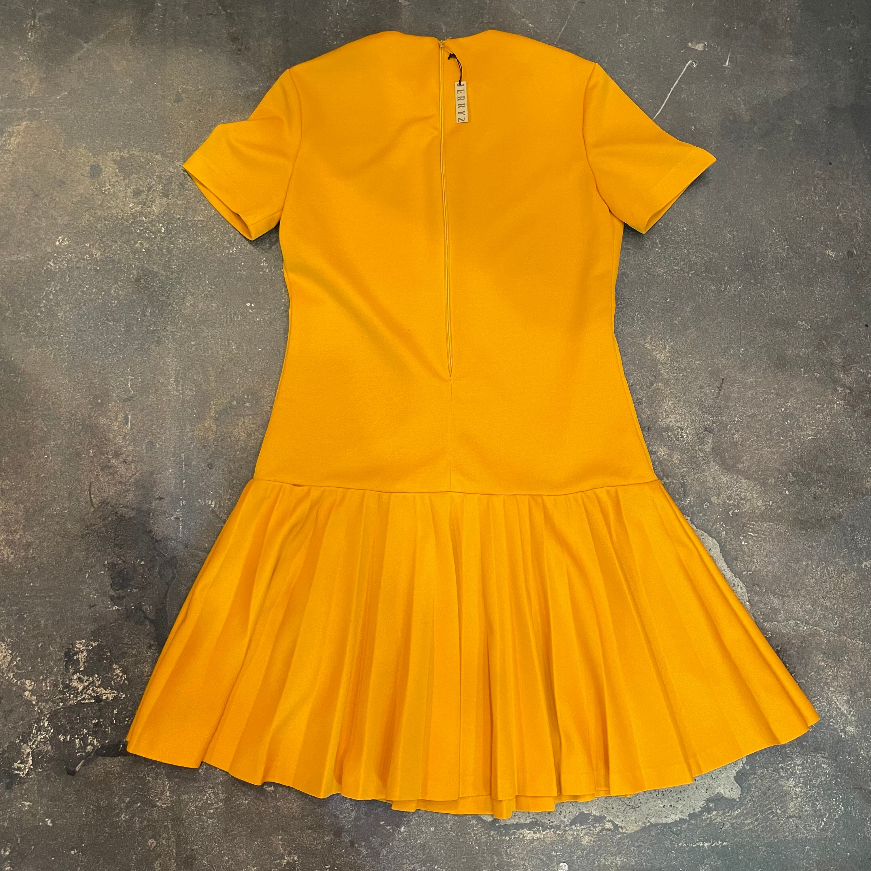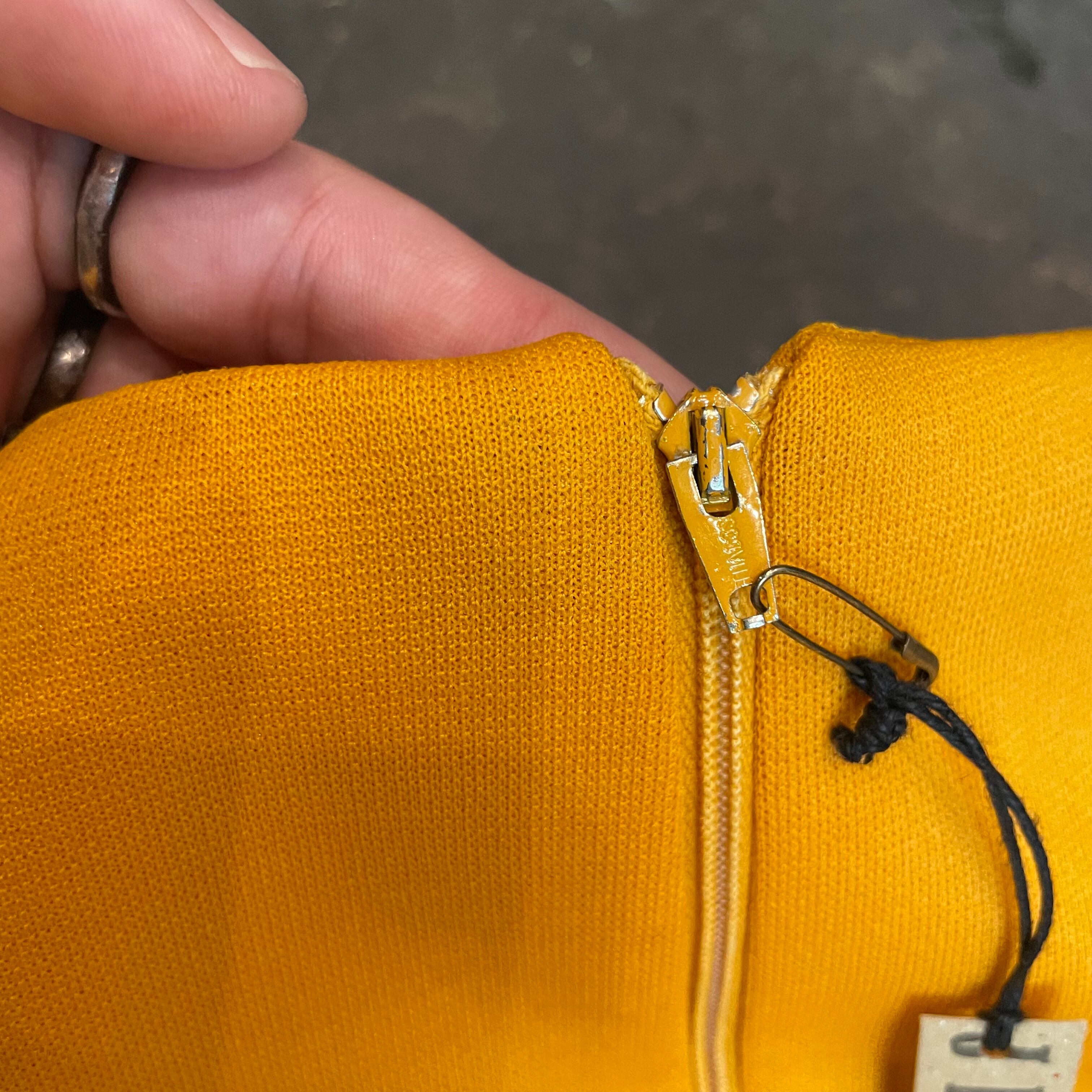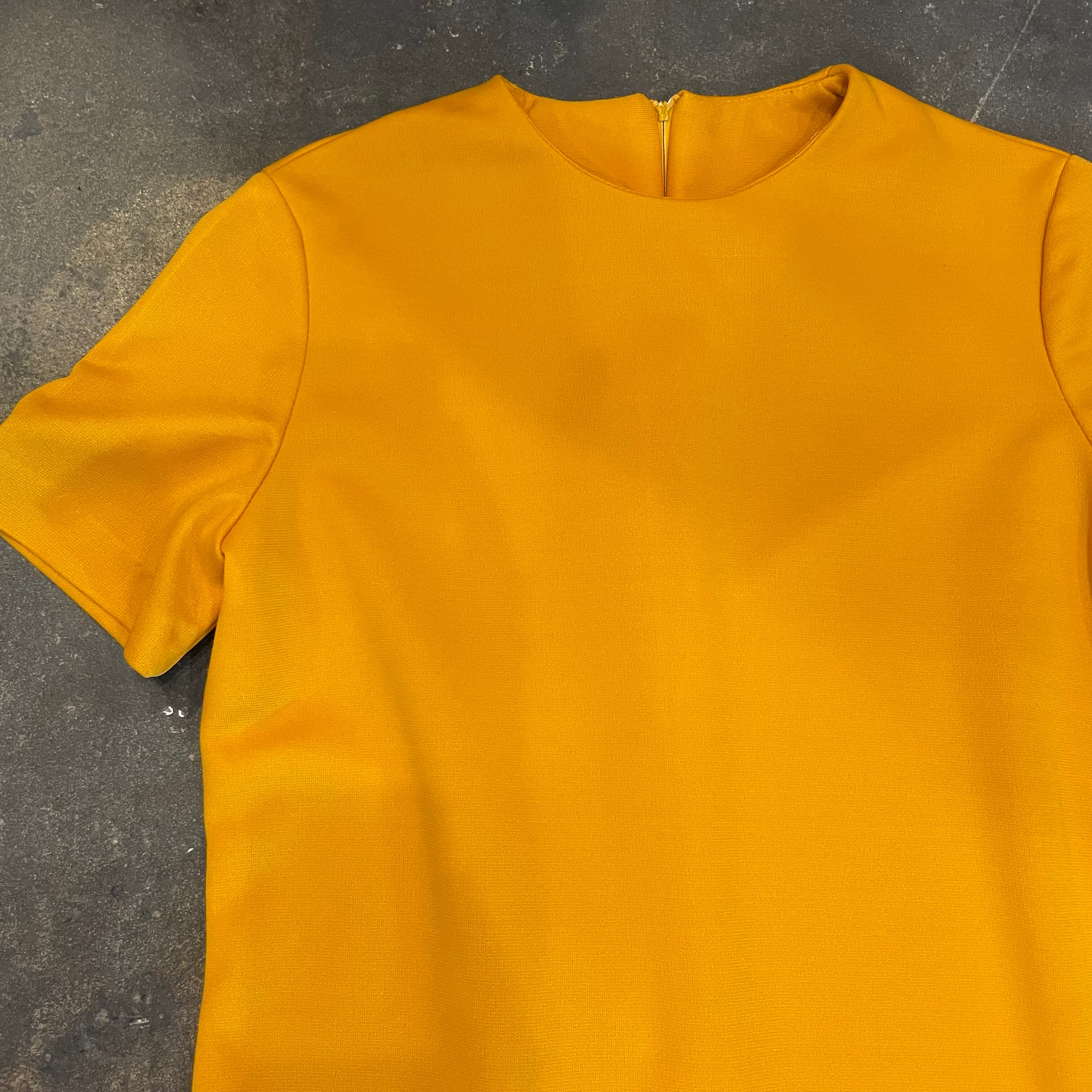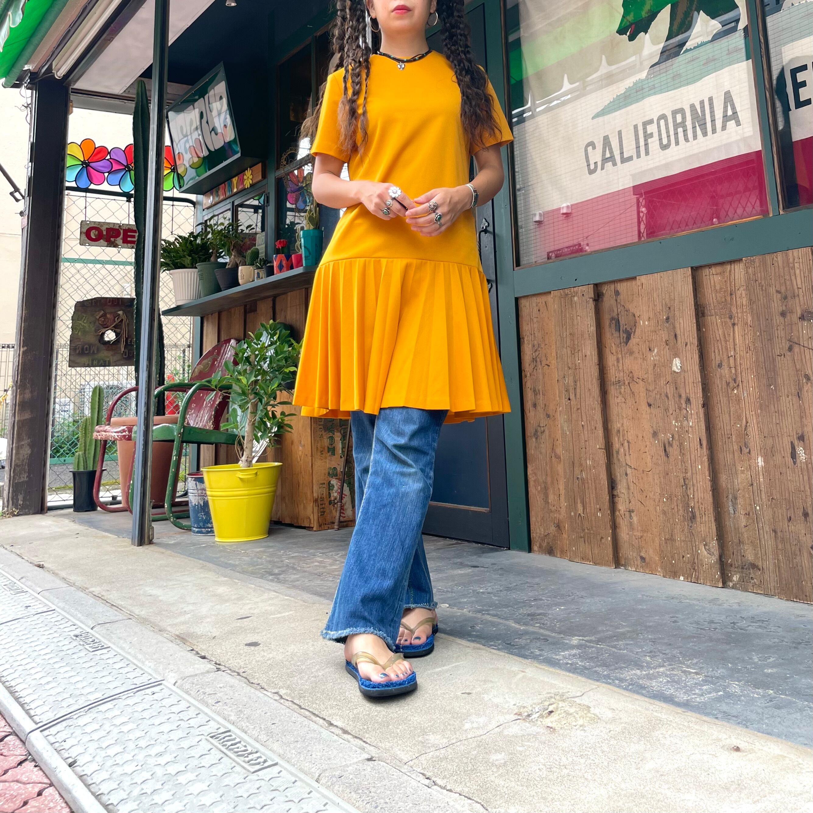 マスタード寄りな明るい黄色一色がかわいい、60年代頃のワンピースです。
