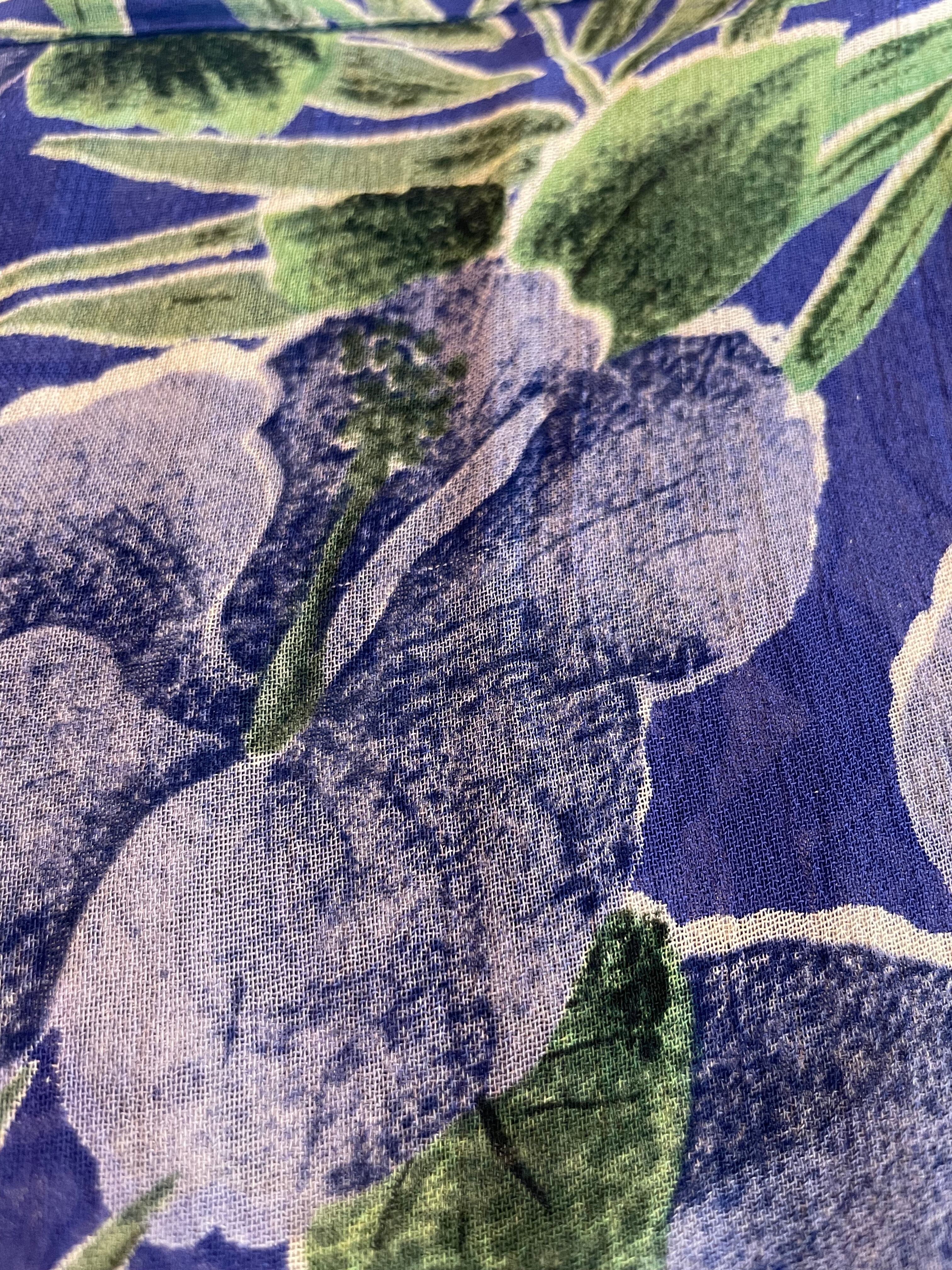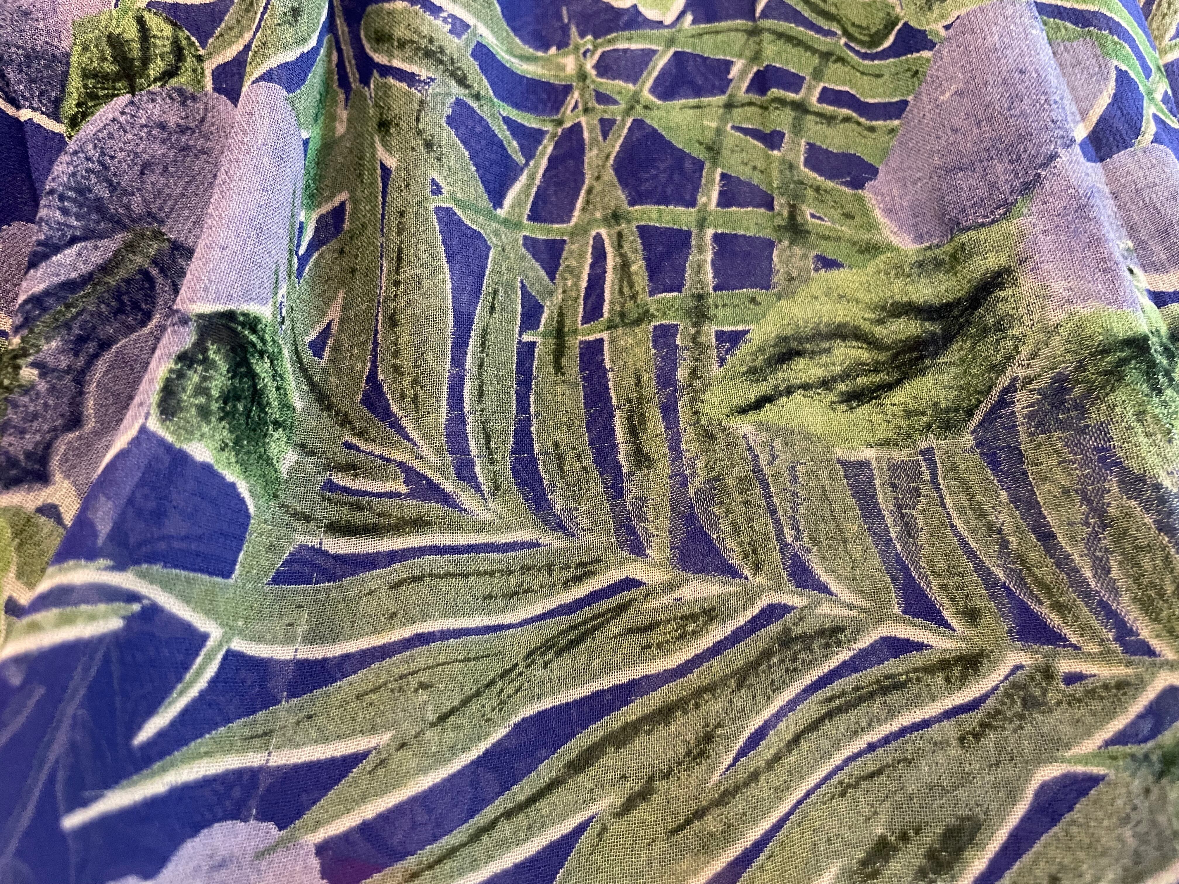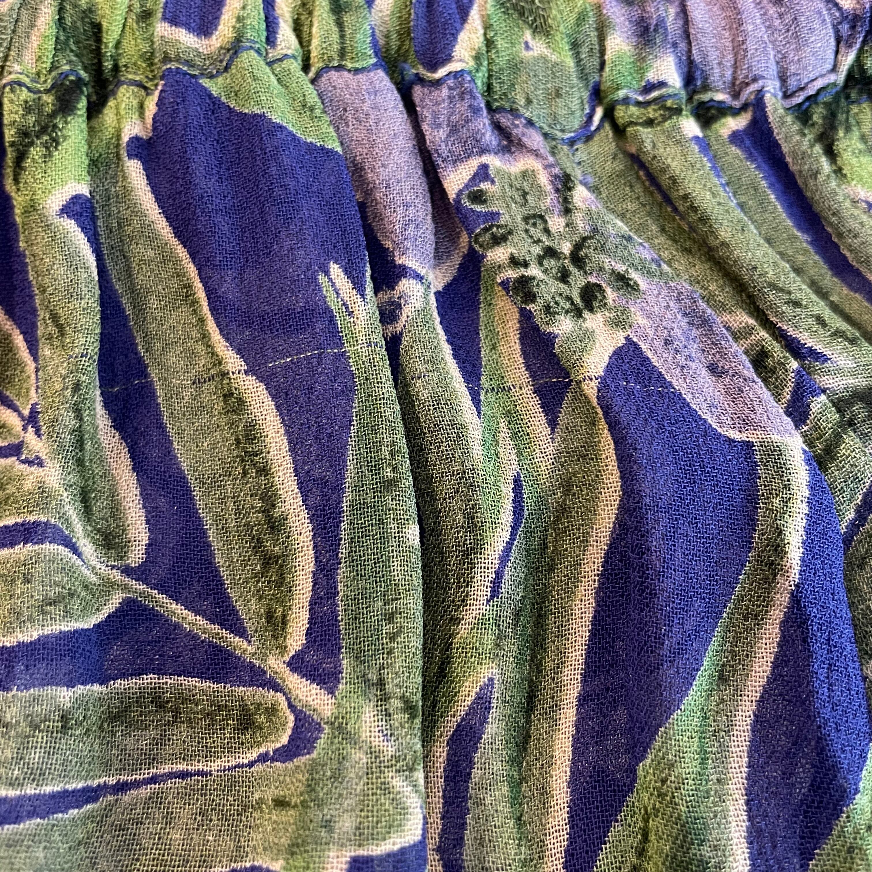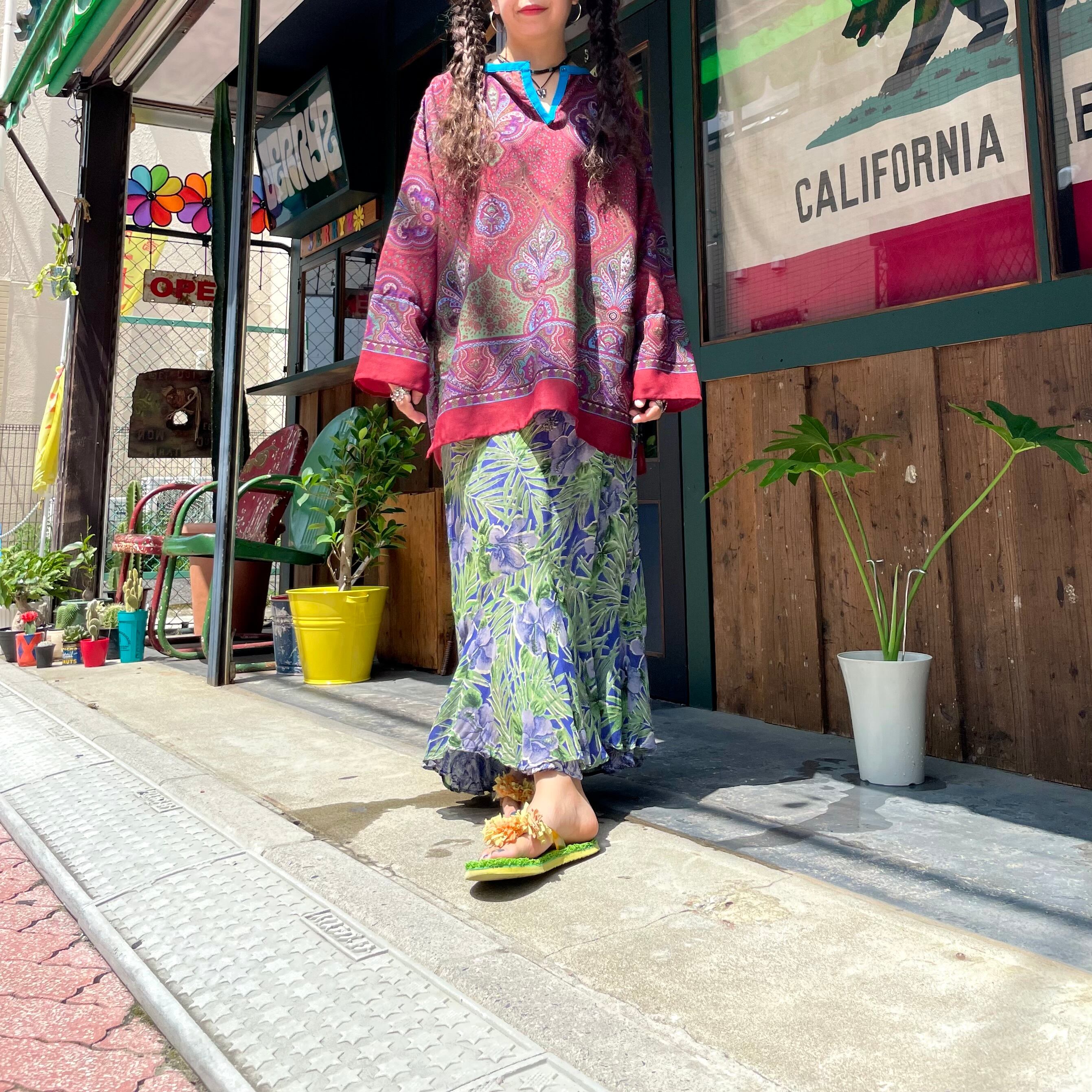 ハイビスカスっぽい雰囲気のお花と南国っぽい植物の柄がかわいいスカートです。