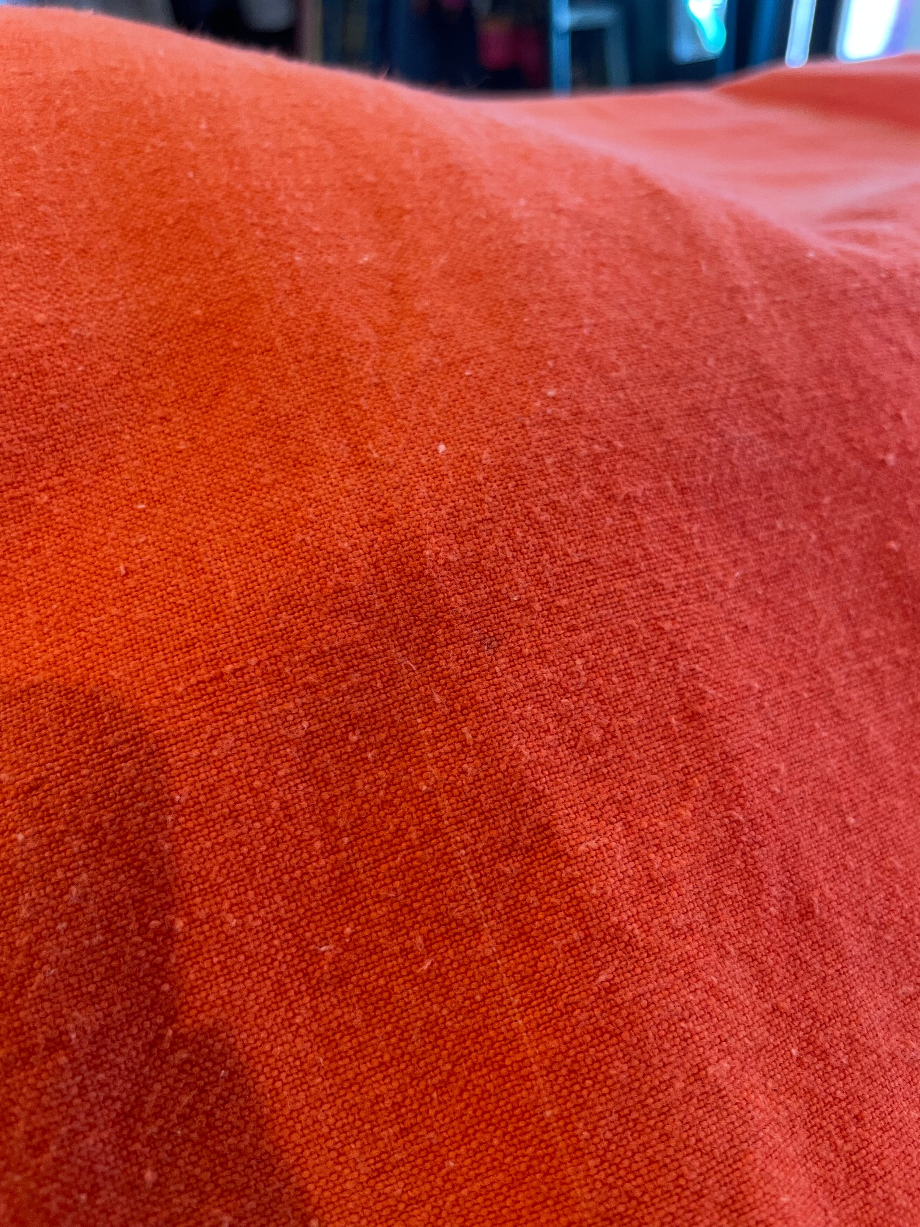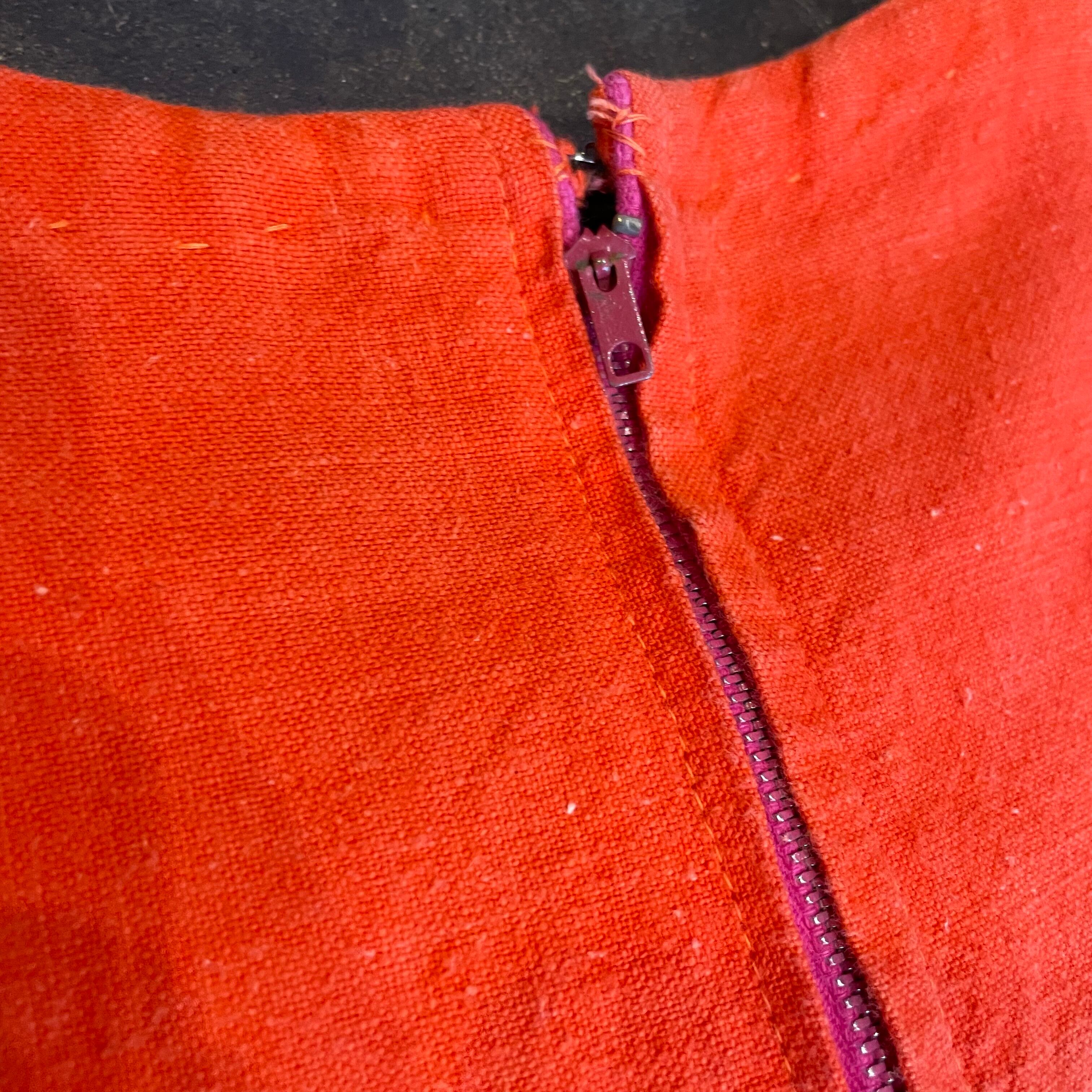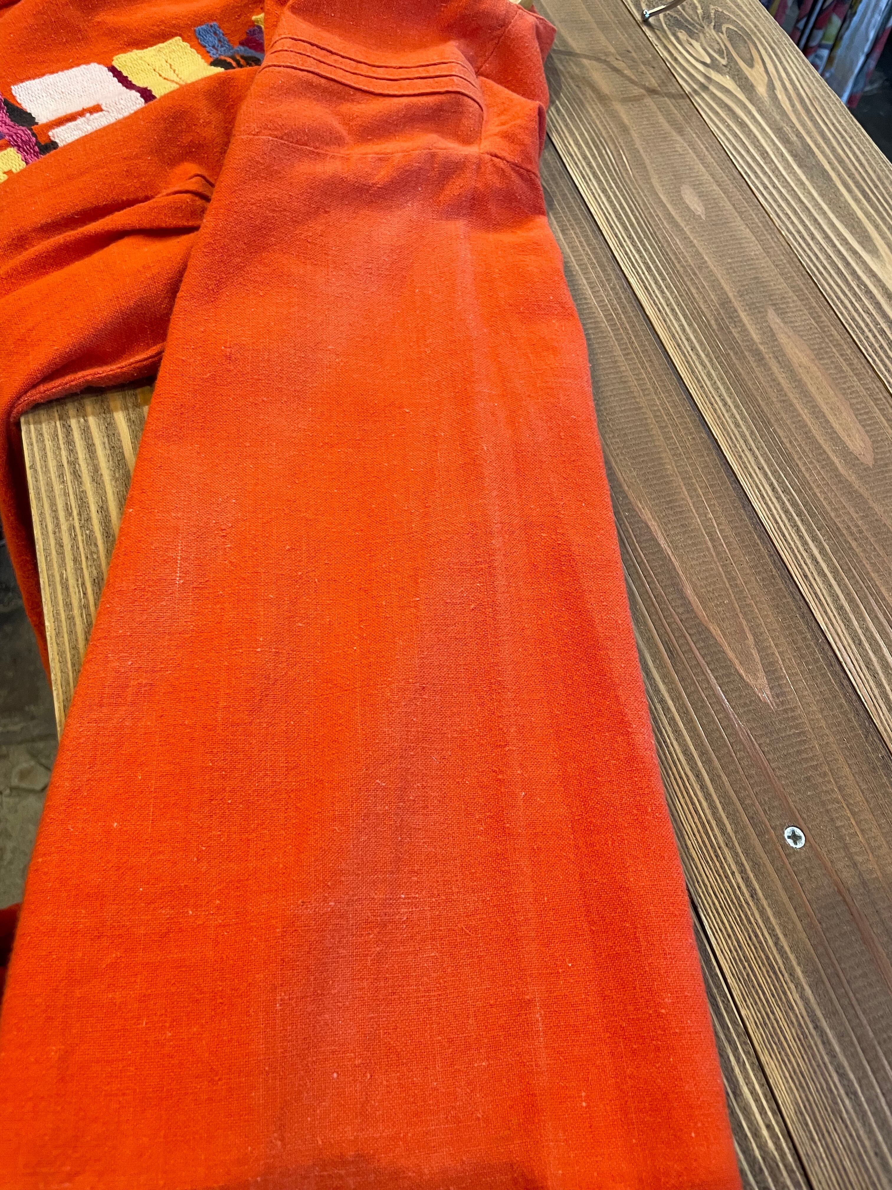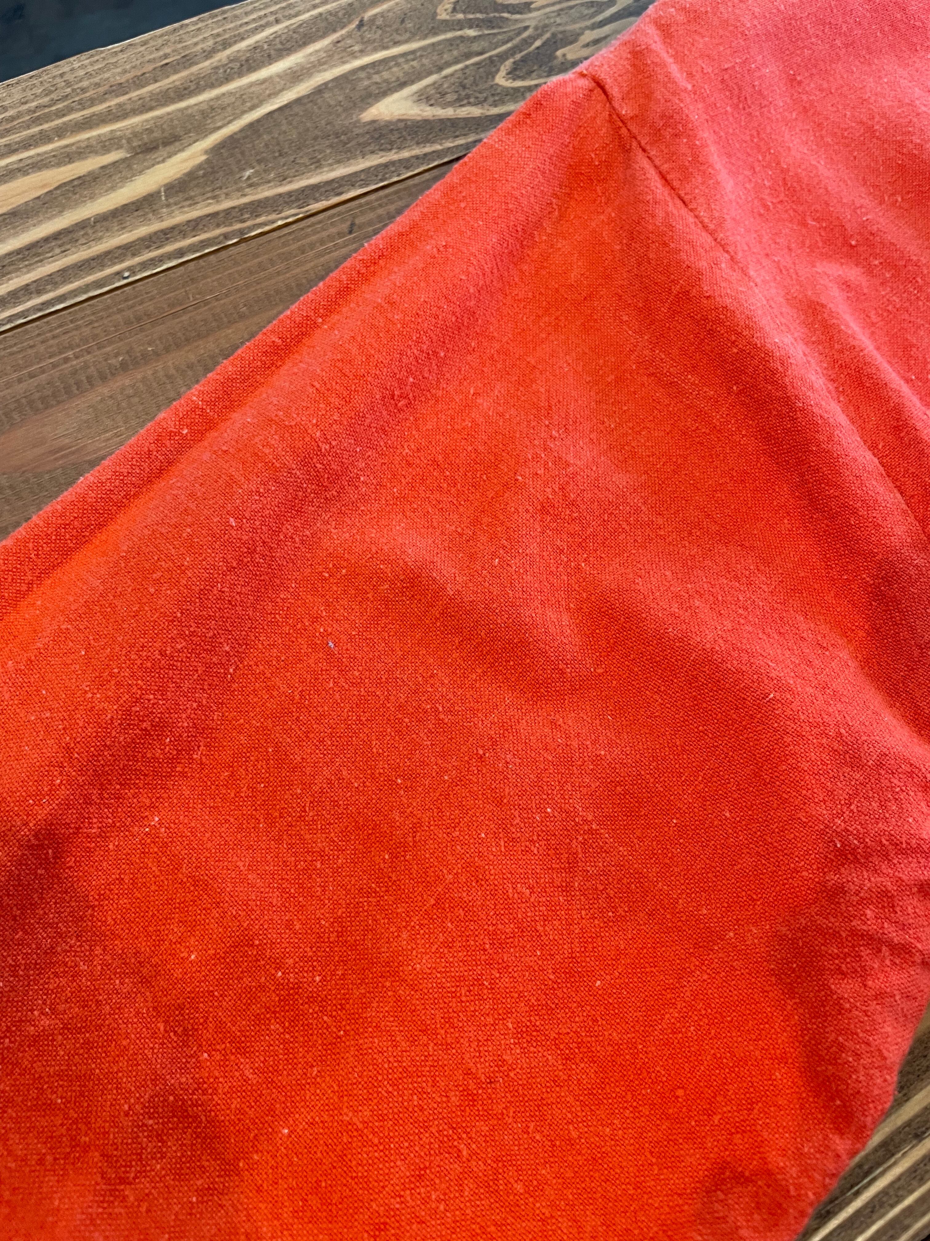 鮮やかなオレンジ色が眩しく一枚で十分かわいいのですが、スエードベストやロングベストなどを合わせたり小物で遊ぶのも良さそうです!