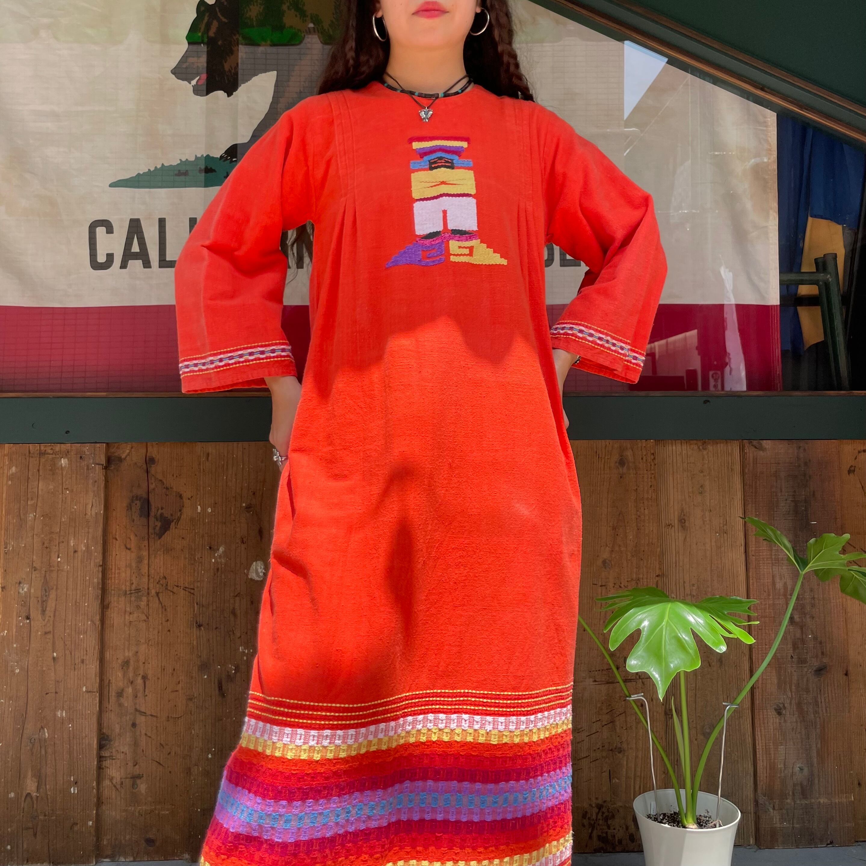グアテマラっぽい雰囲気の刺繍や織り模様がかわいいワンピースです。