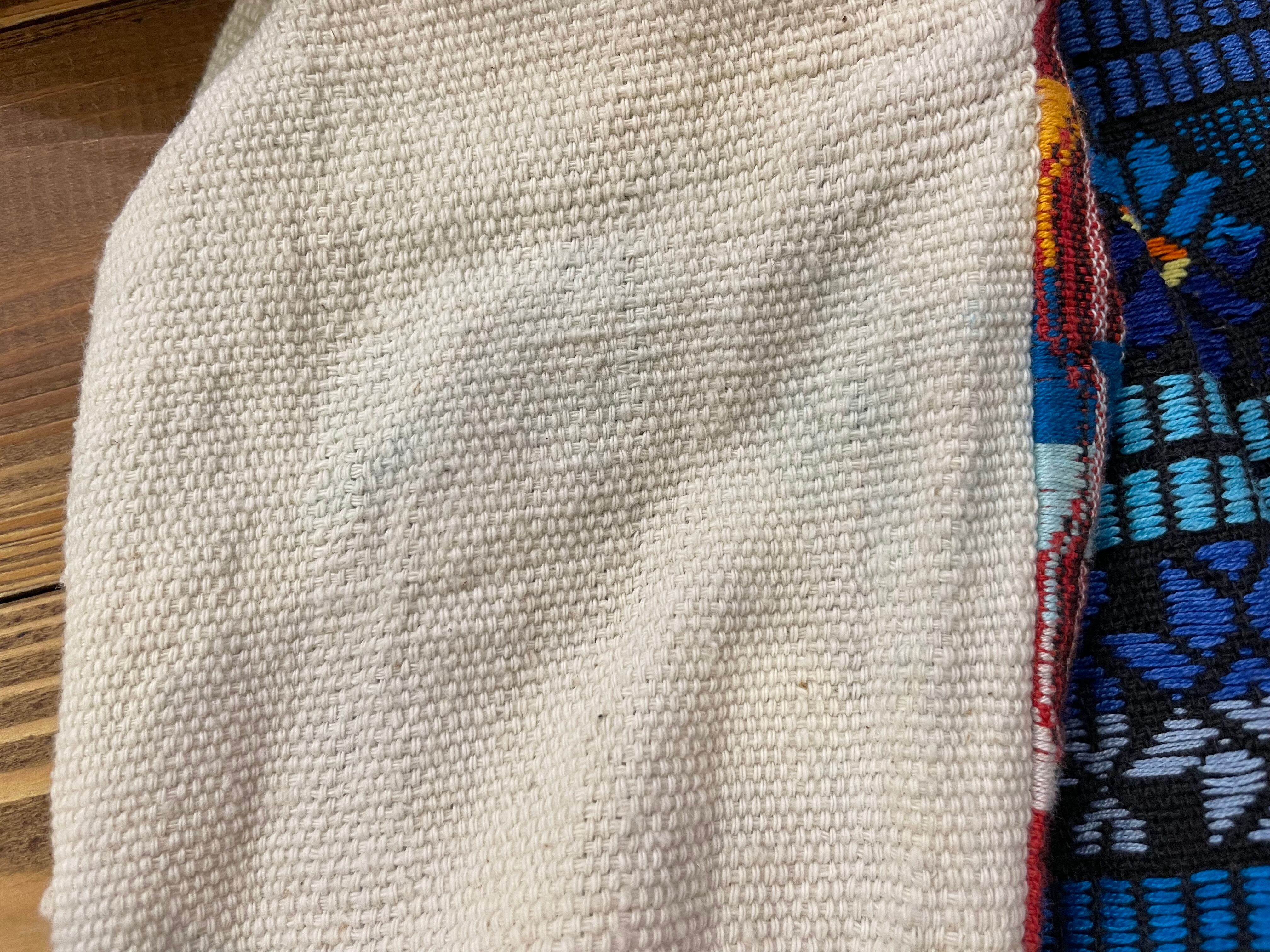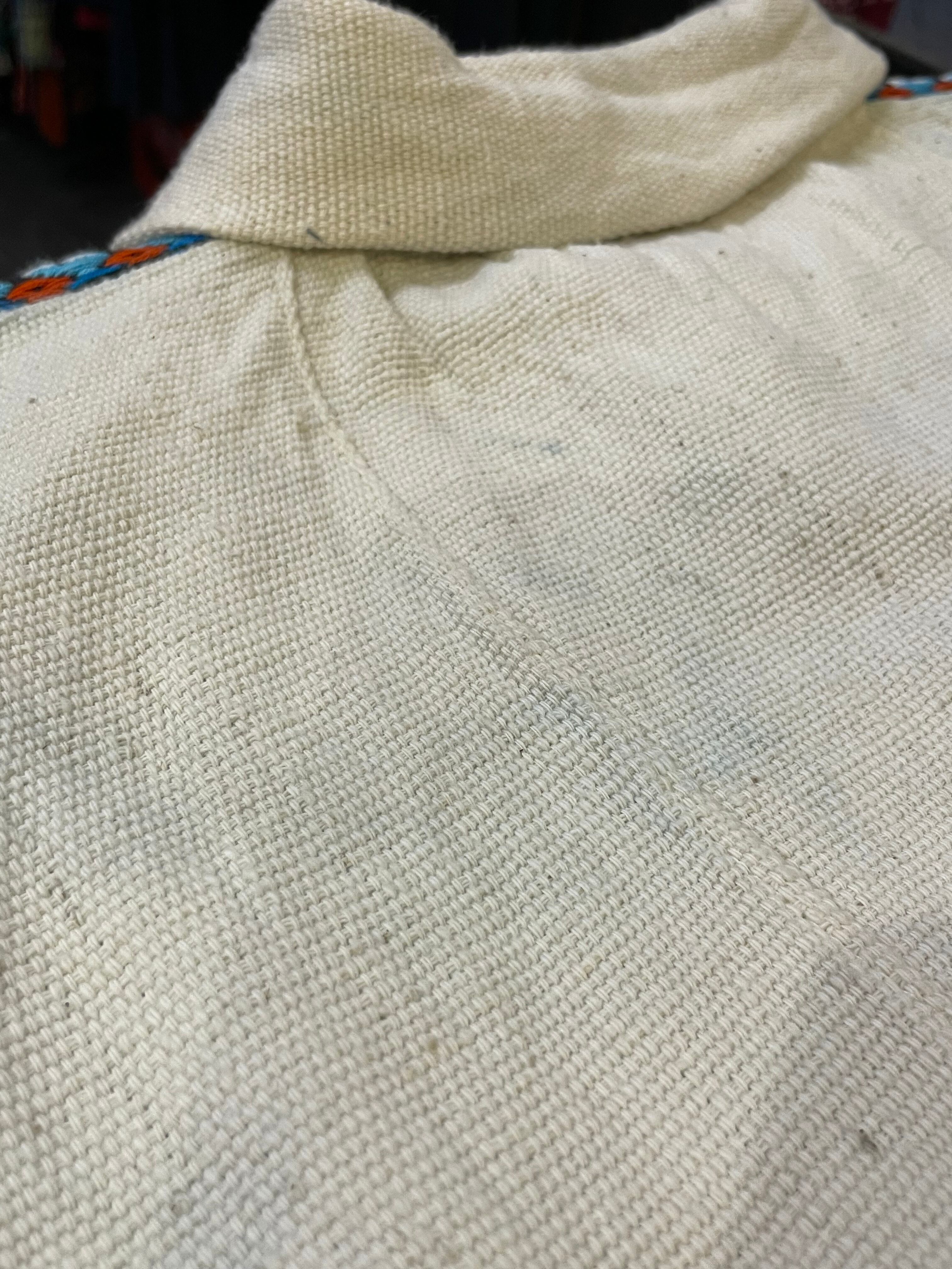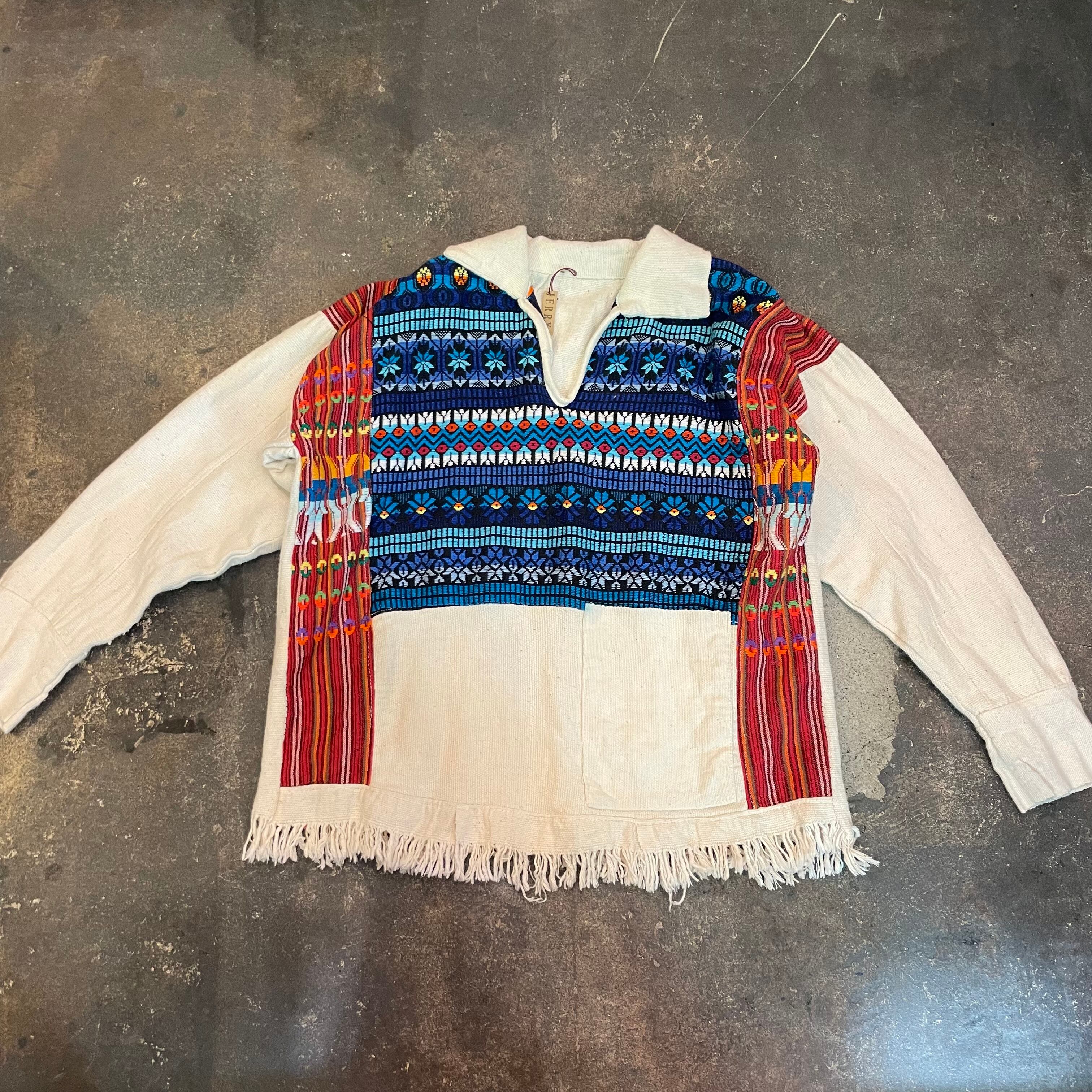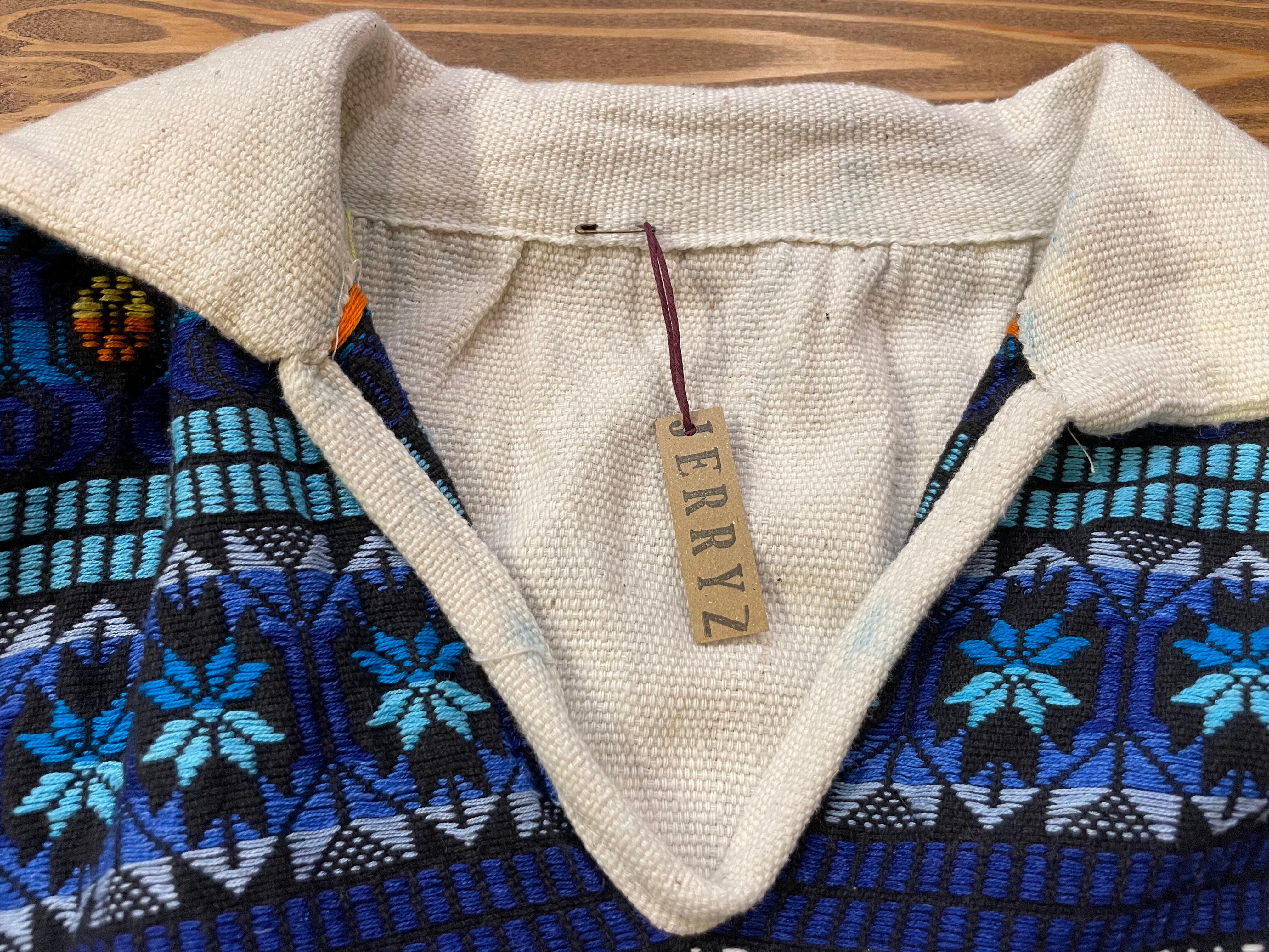 素材はメキシカンパーカーよりは薄手で柔らかく、裾のフリンジや開襟な感じも気の抜けたラフな雰囲気が魅力的です。